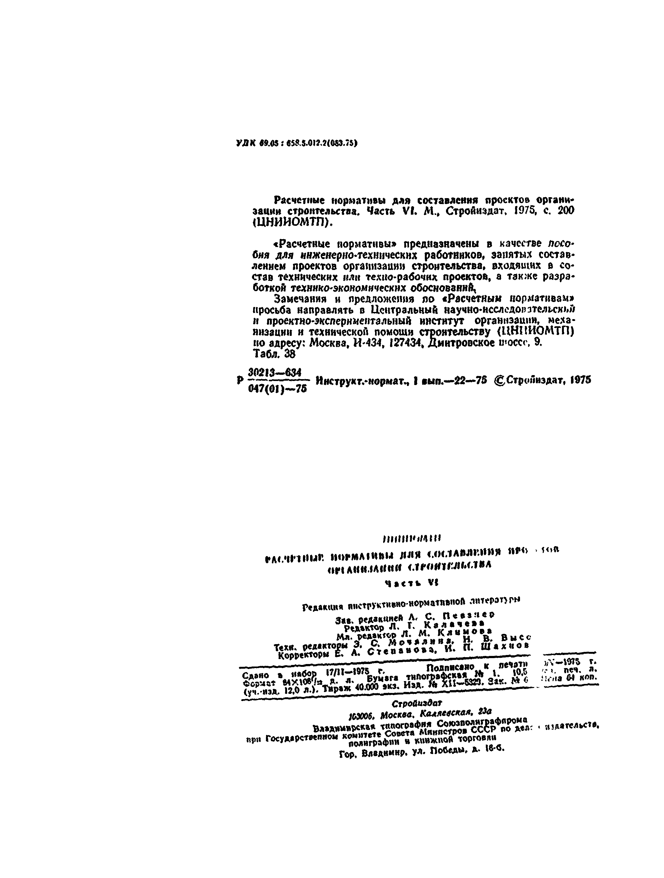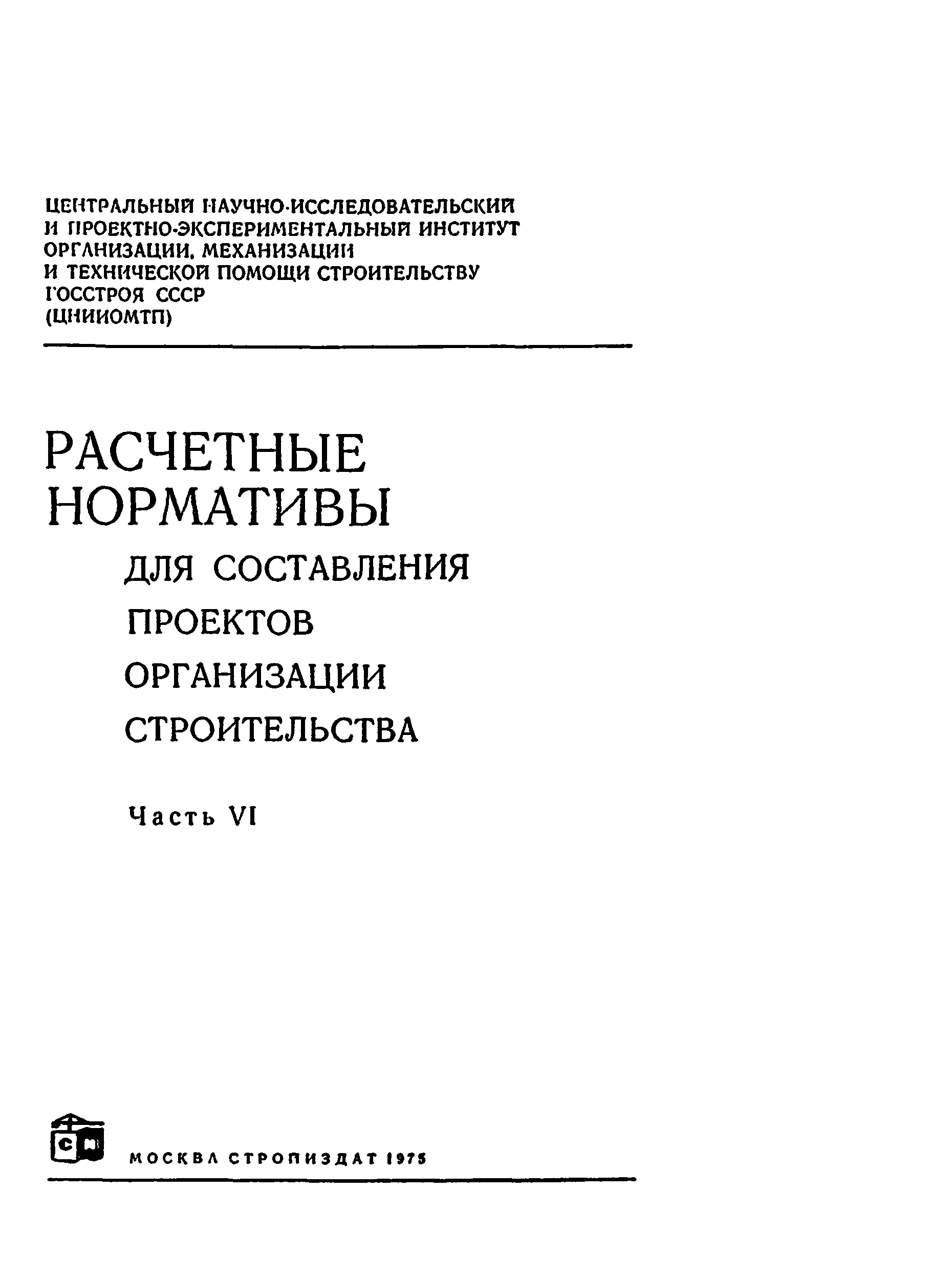 Расчетные нормативы для составления проектов организации строительства. Часть VI| Статус: | действует | | Название рус.: | Расчетные нормативы для составления проектов организации строительства. Часть VI | | Дата добавления в базу: | 01.09.2013 | | Дата актуализации: | 01.01.2021 | | Область применения: | Сборник содержит нормативные показатели потребности в энергетических, материально-технических ресурсах и транспортных средствах, а также показатели объемов работ, затрат труда и расхода конструкций, изделий, полуфабрикатов и основных строительных материалов для составления проектов организации строительства жилых 5 - 9-этажных зданий, промышленных и энергетических объектов, угольных разрезов, заводов и баз строительной индустрии, сельскохозяйственных производственных комплексов животноводческого направления и плодоовощных производственных комплексов | | Оглавление: | Предисловие Общая часть (1-8) Приложение | | Разработан: | ЦНИИОМТП