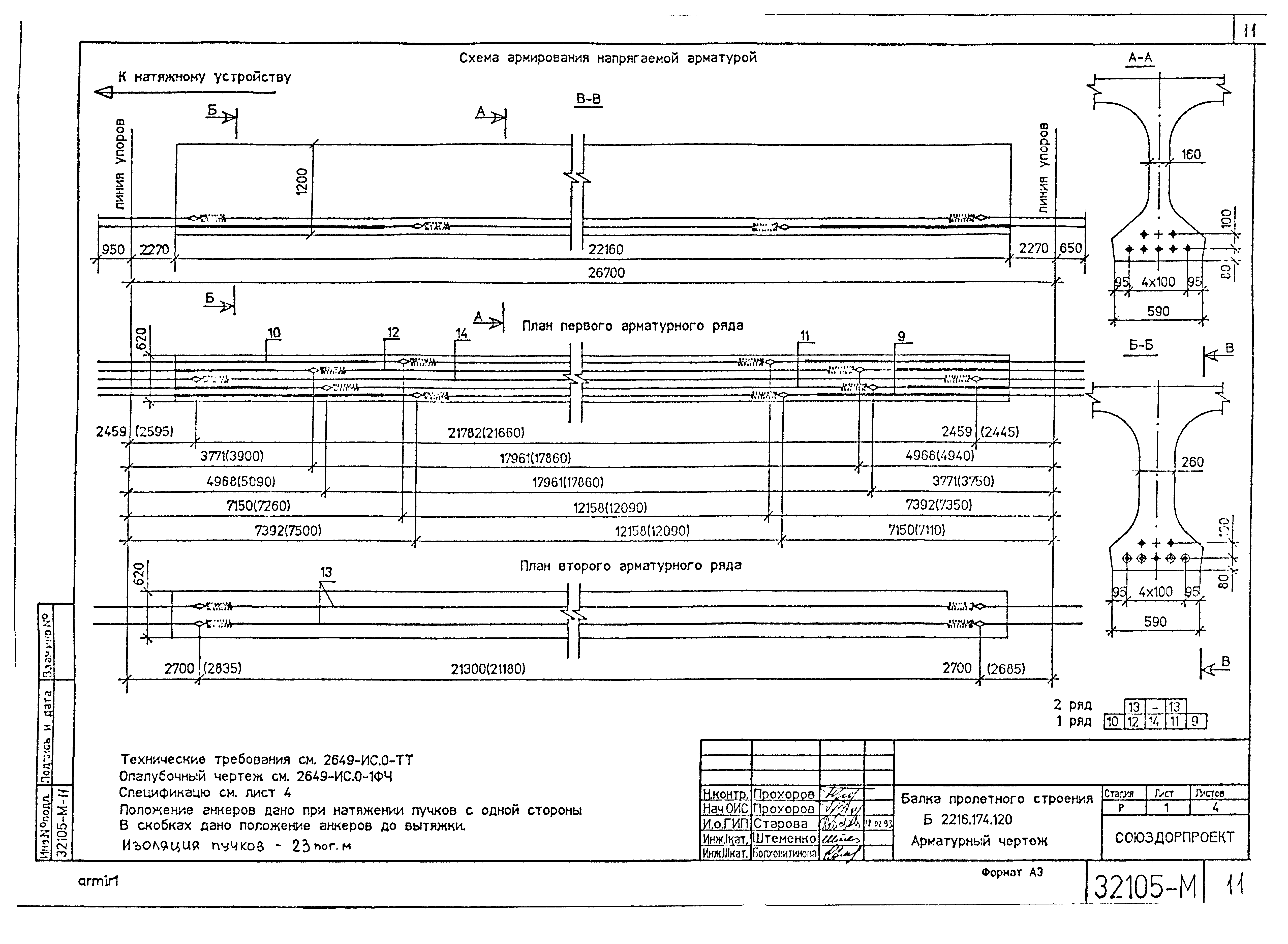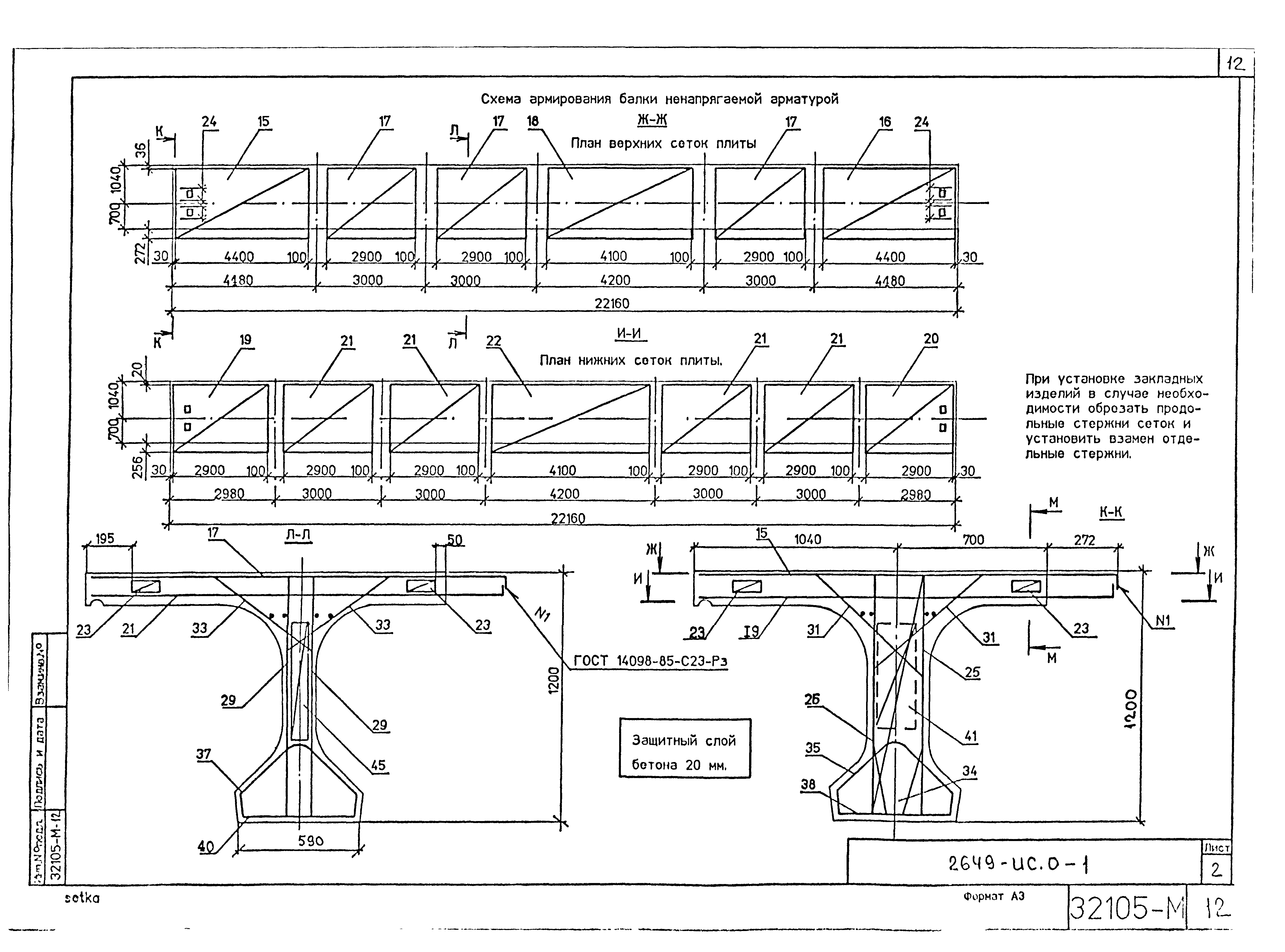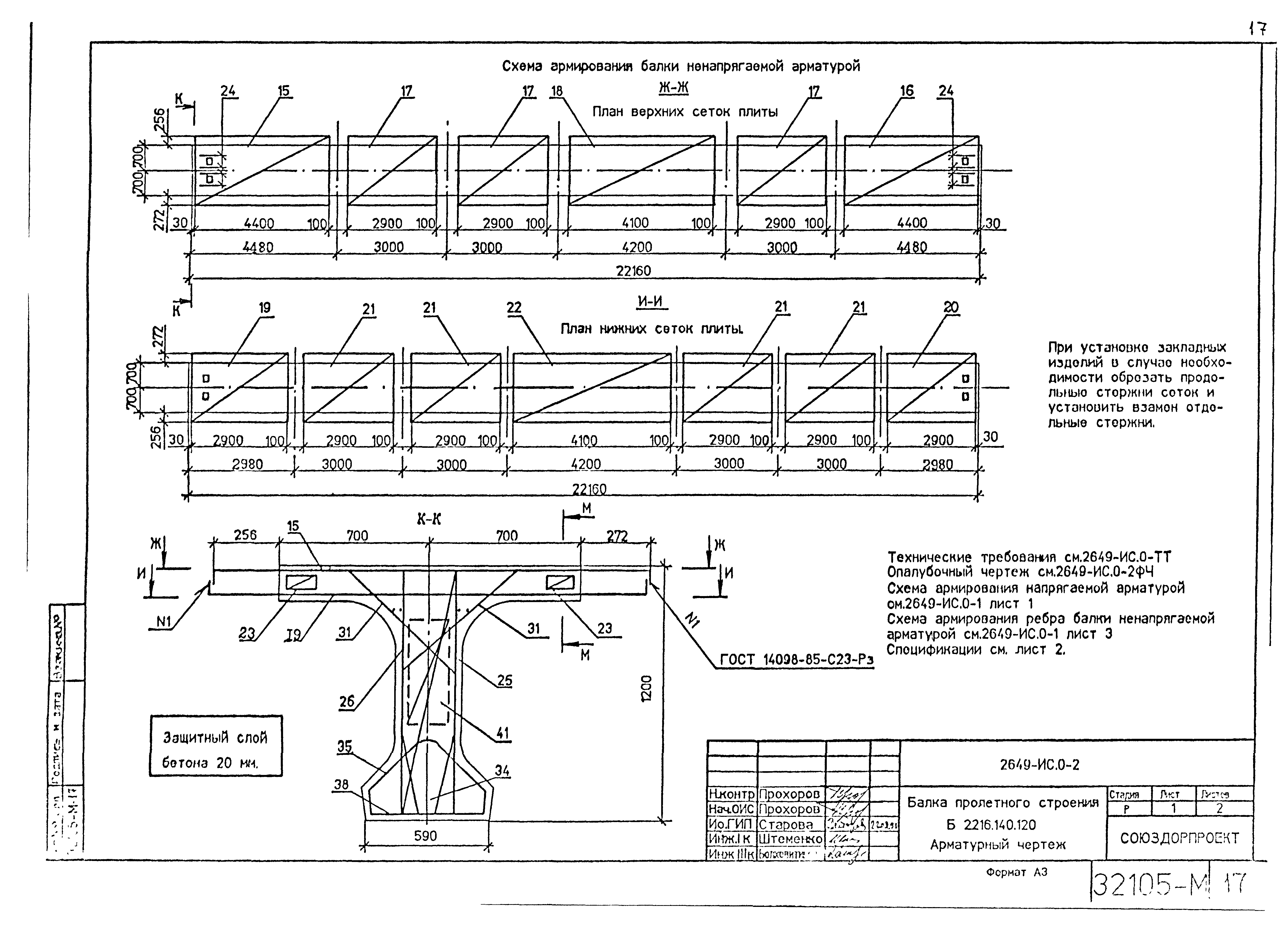 Скачать Выпуск 0. Балки пролетного строения длиной 22, 16 м, изготавливаемые в опалубке балок длиной 24 м по типовому проекту инв.№384/46. Рабочие чертежиДата актуализации: 01.01.2021