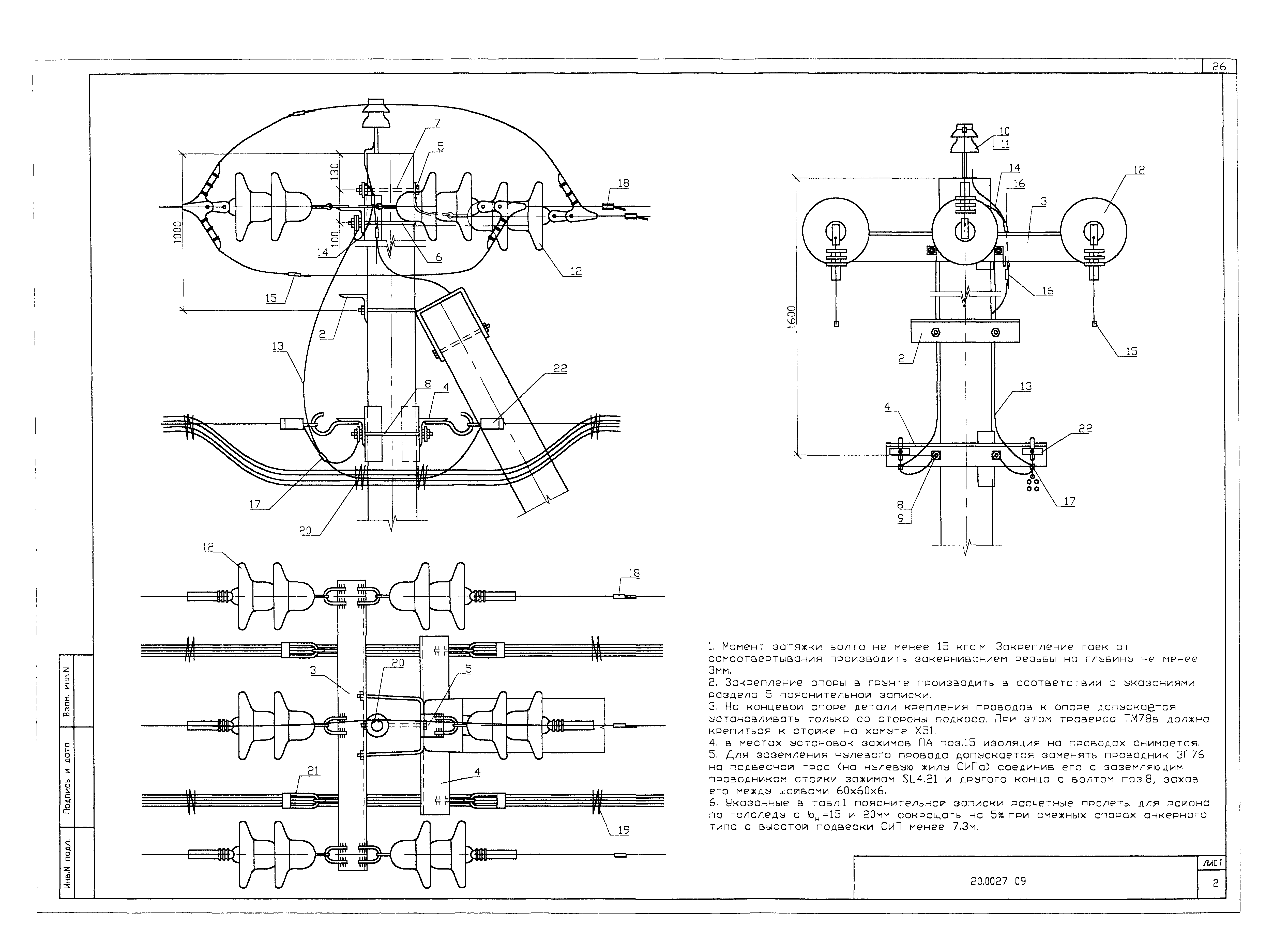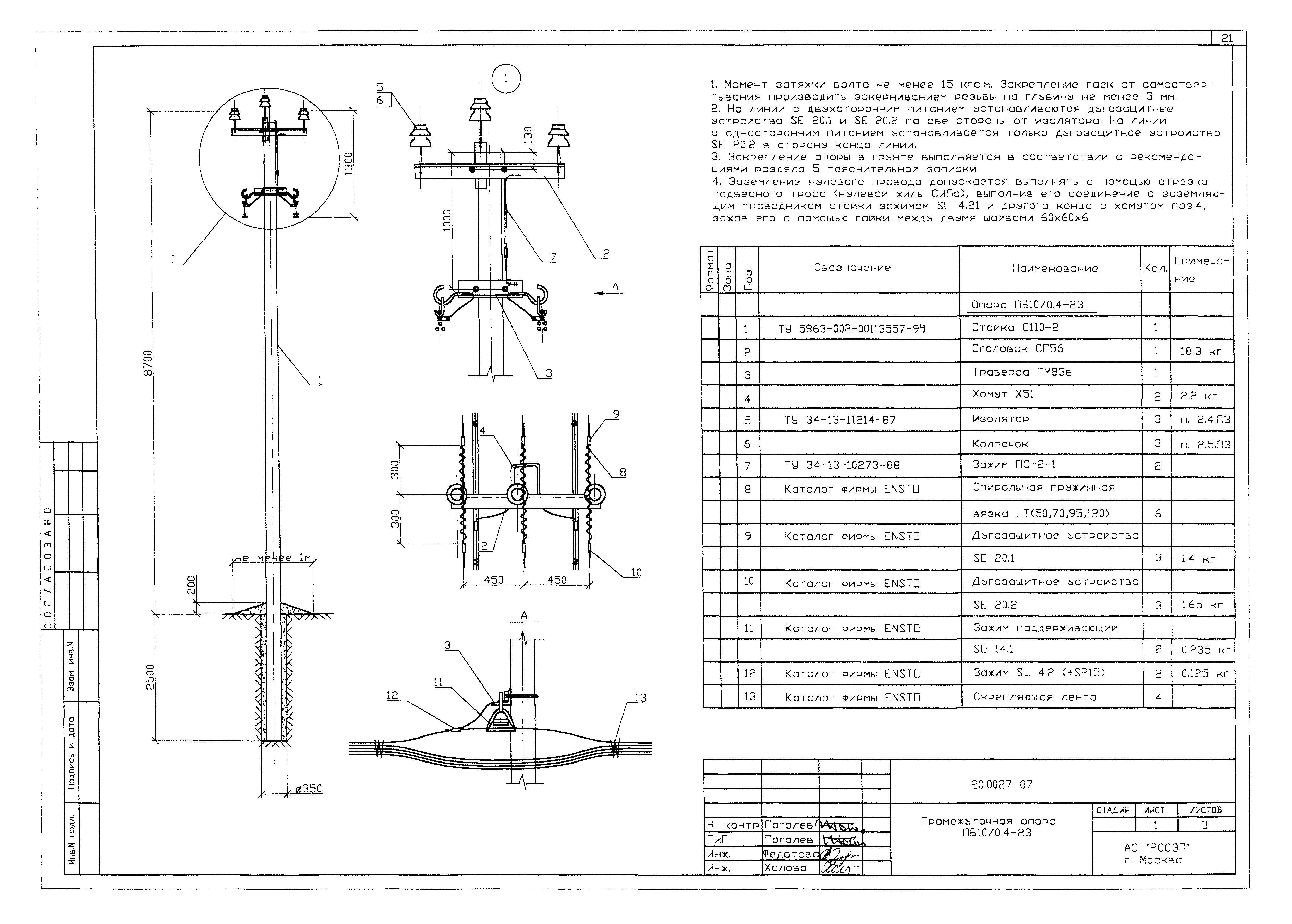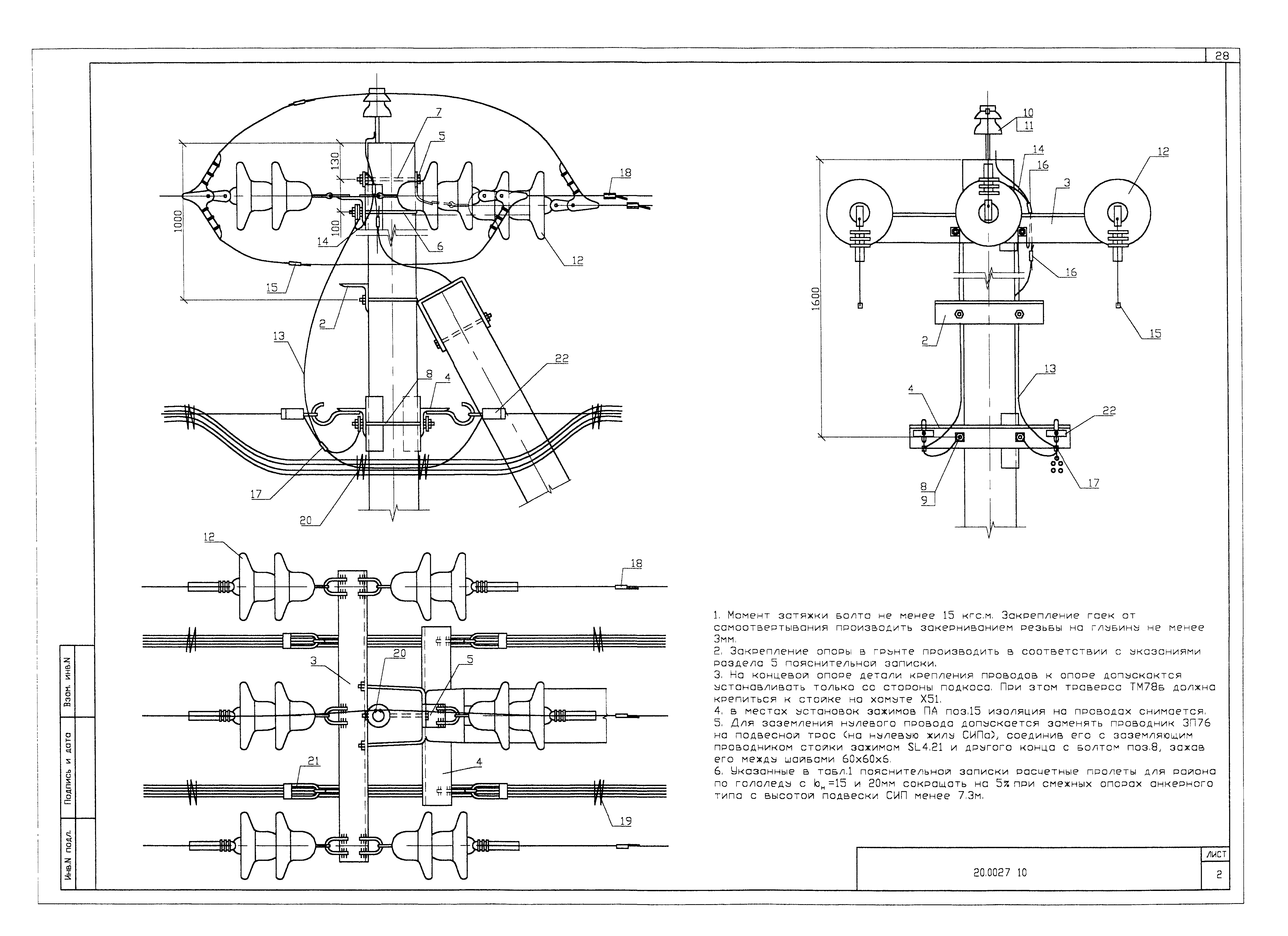 Скачать Железобетонные опоры для совместной подвески защищенных проводов ВЛ 10 кВ и самонесущих изолированных проводов двухцепной ВЛ 0,4 кВ. Рабочие чертежиДата актуализации: 01.01.2021