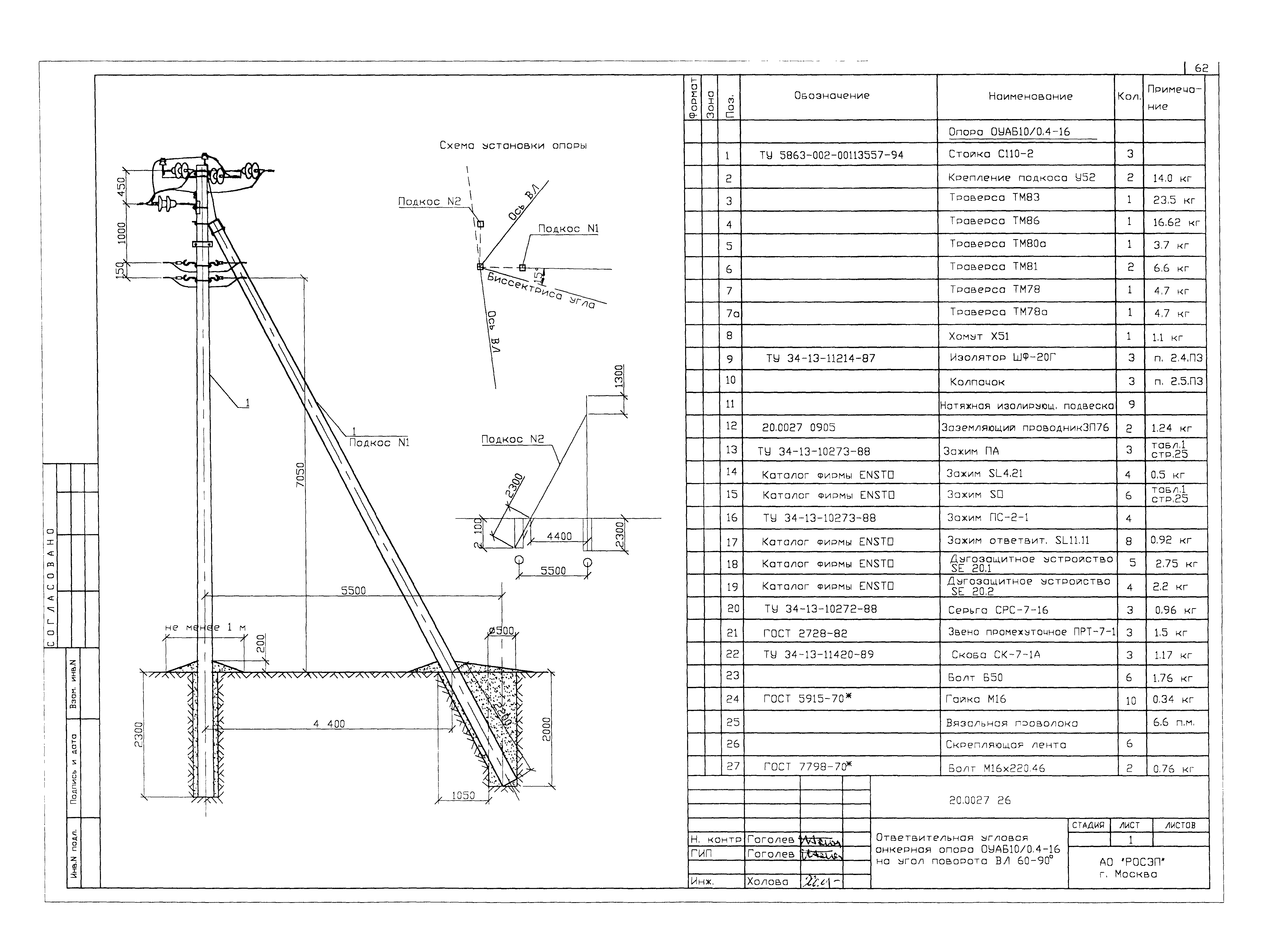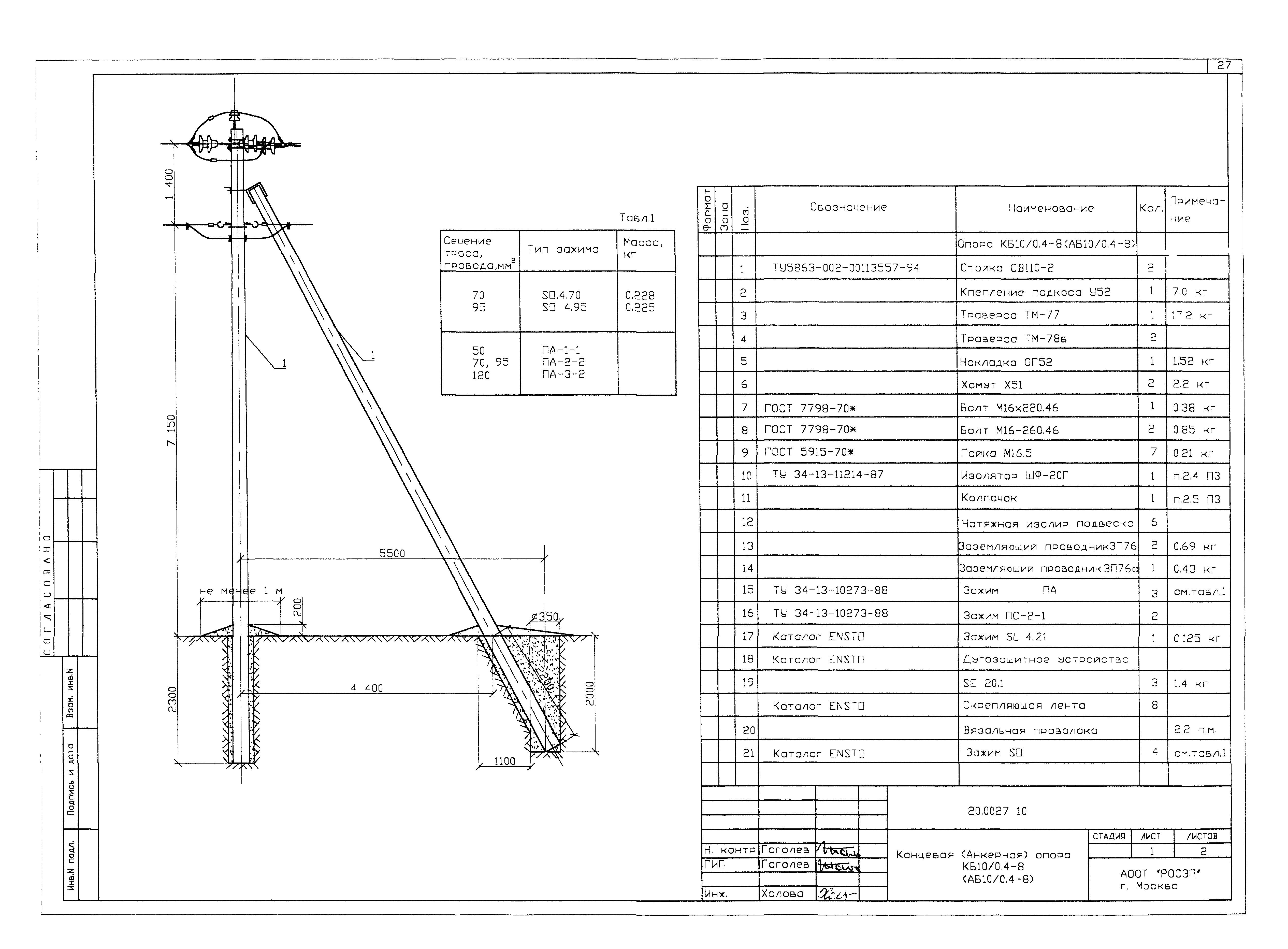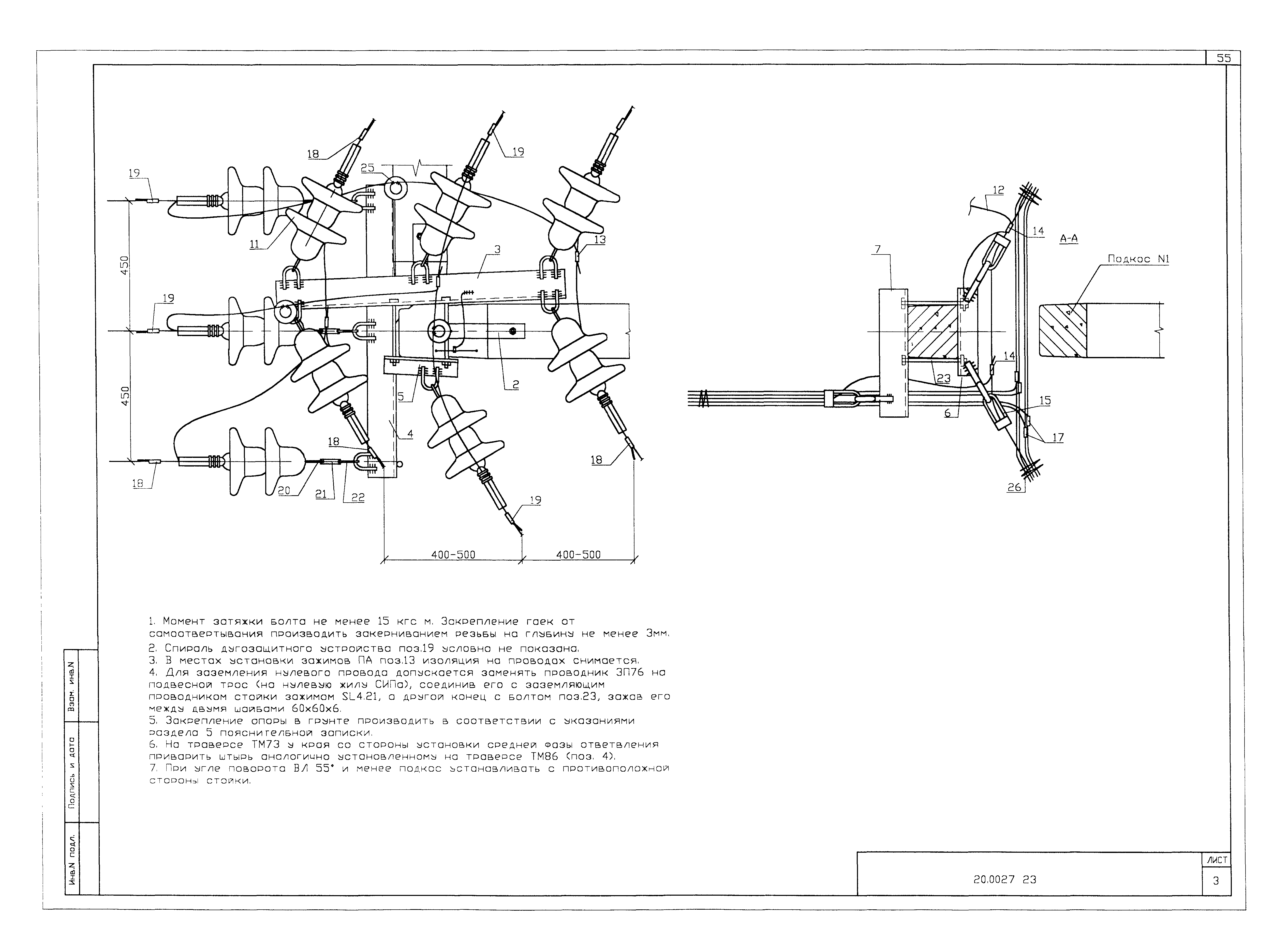 Скачать Железобетонные опоры для совместной подвески защищенных проводов ВЛ 10 кВ и самонесущих изолированных проводов двухцепной ВЛ 0,4 кВ. Рабочие чертежиДата актуализации: 01.01.2021