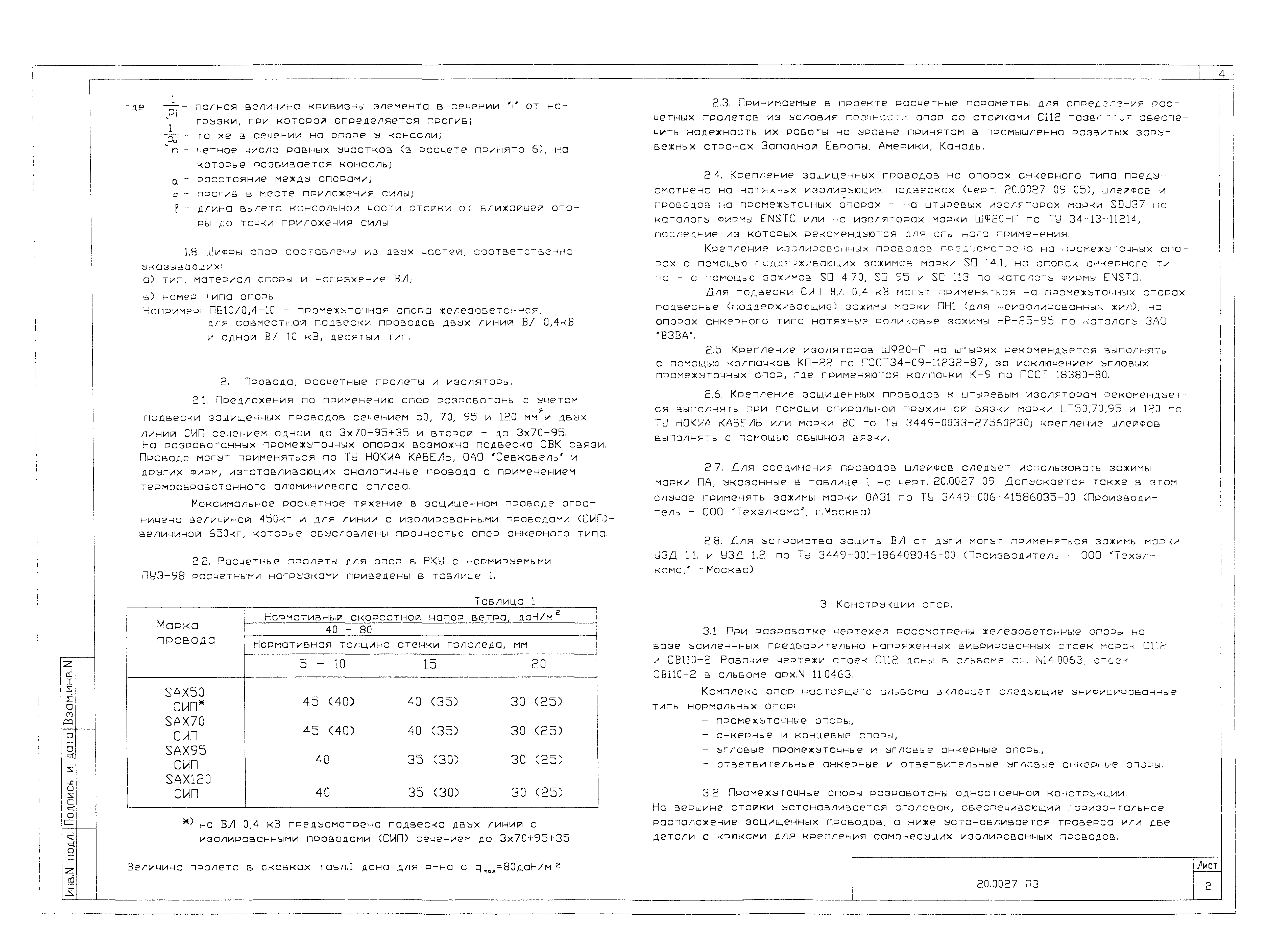 Железобетонные опоры для совместной подвески защищенных проводов ВЛ 10 кВ и самонесущих изолированных проводов двухцепной ВЛ 0,4 кВ. Рабочие чертежи| Статус: | не определен законодательством | | Название рус.: | Железобетонные опоры для совместной подвески защищенных проводов ВЛ 10 кВ и самонесущих изолированных проводов двухцепной ВЛ 0,4 кВ. Рабочие чертежи | | Дата добавления в базу: | 01.09.2013 | | Дата актуализации: | 01.01.2021 | | Дата введения: | 01.01.2000 | | Дата окончания срока действия: | 30.06.2003 | | Область применения: | Альбом содержит разработанные по дополнительному соглашению к договору №25 от 05.04.99 г. с РАО "ЕЭС России", задание 3,8 рабочие чертежи железобетонных опор для совместной подвески защищенных проводов ВЛ 10 кВ и изолированных проводов низкого напряжения, сооружаемых в ненаселенной и населенной местности на базе стоек марок СВ110 и С112, утвержденных для применения РАО "ЕЭС России" (протокол №11-02 от 15.06.95 г.) | | Разработан: | АООТ РОСЭП