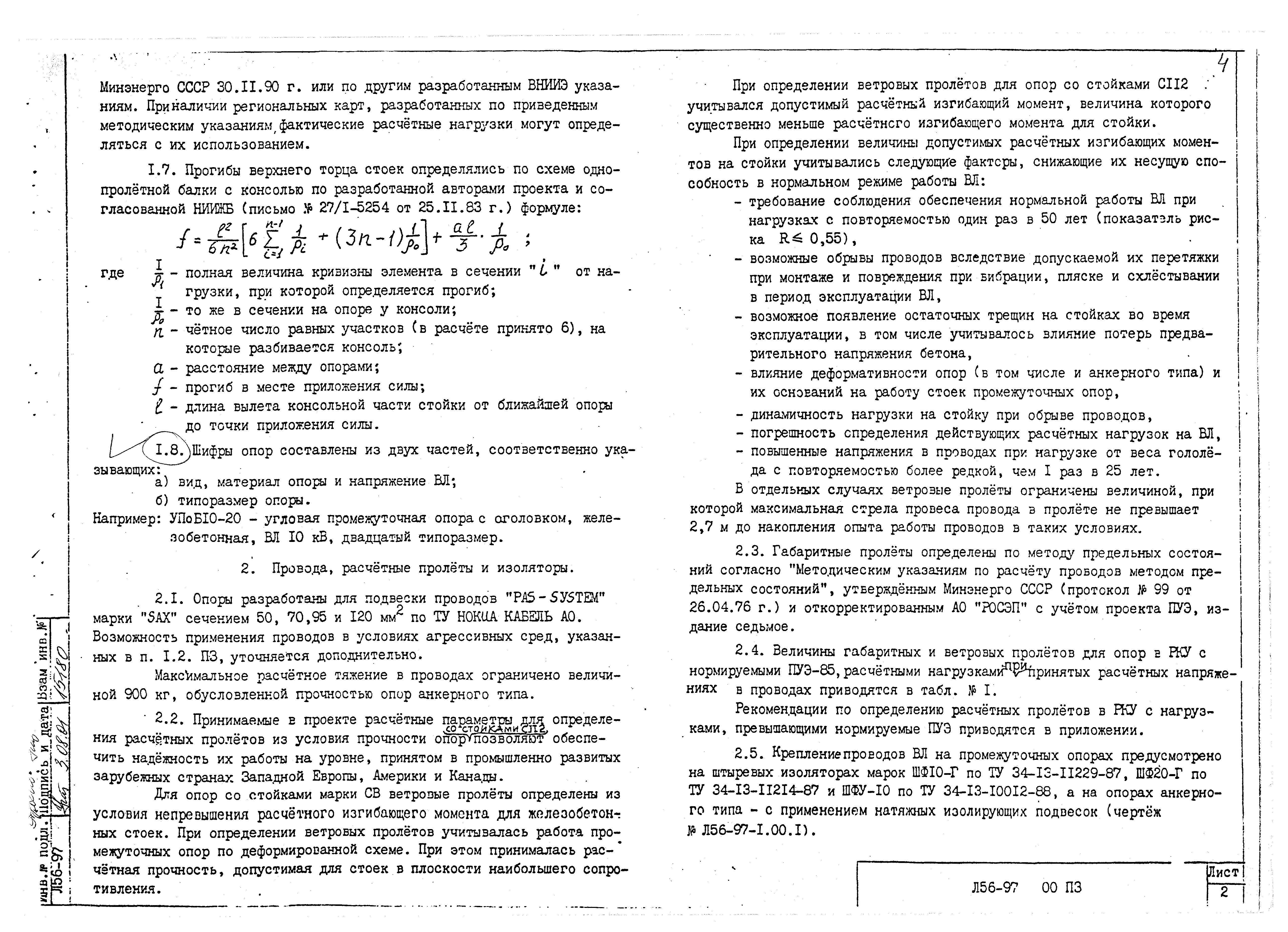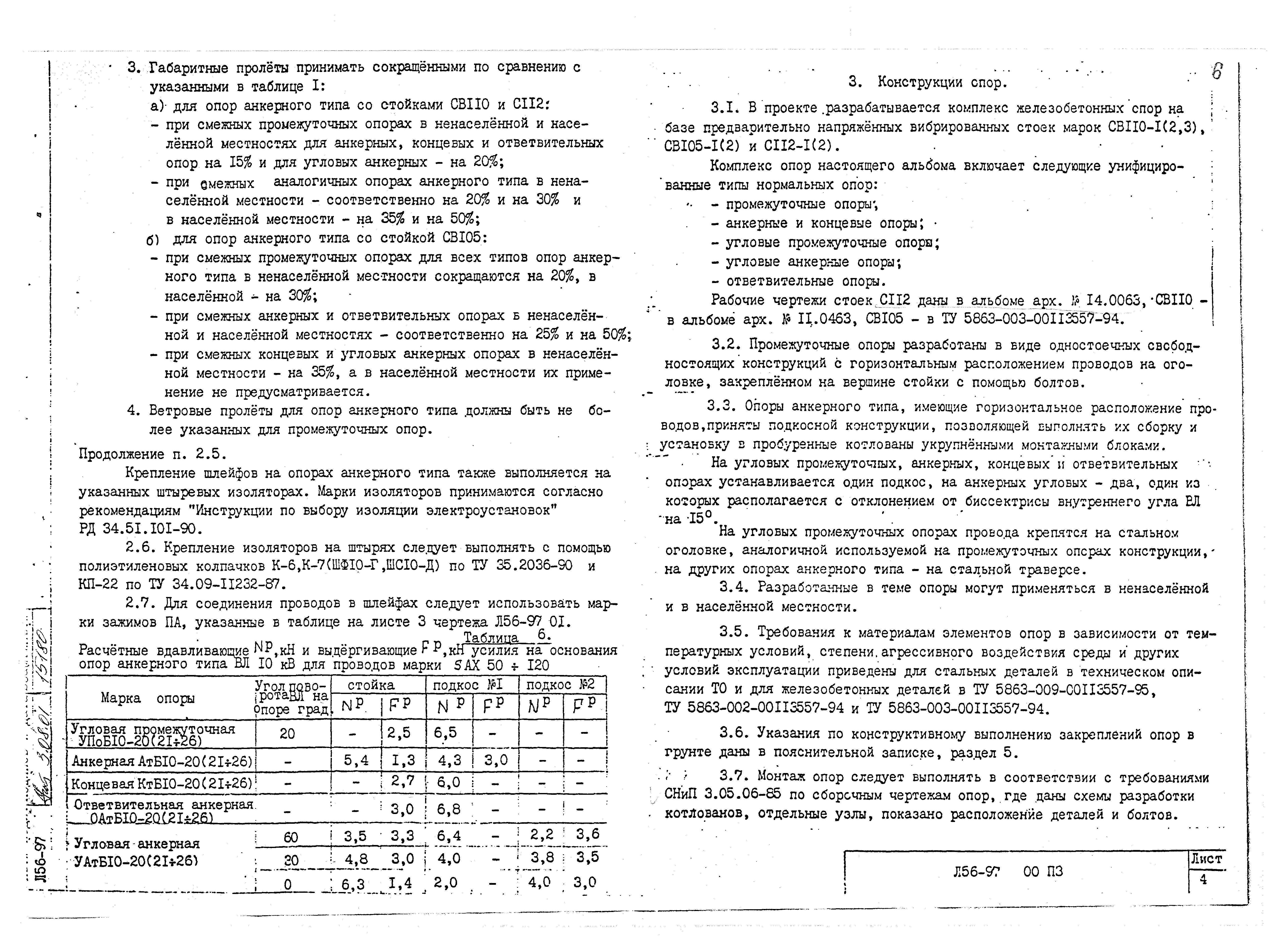 Одноцепные железобетонные опоры со стойками СВ 110, С112, СВ105 ВЛ 10 кВ с защищенными проводами| Статус: | не определен законодательством | | Название рус.: | Одноцепные железобетонные опоры со стойками СВ 110, С112, СВ105 ВЛ 10 кВ с защищенными проводами | | Дата добавления в базу: | 01.09.2013 | | Дата актуализации: | 01.01.2021 | | Дата введения: | 01.01.1997 | | Дата окончания срока действия: | 30.06.2003 | | Область применения: | Проект содержит рабочие чертежи одноцепных железобетонных опор линии электропередачи с защищенными проводами напряжением 6-10 кВ, сооружаемых в ненаселенной и населенной местности на базе стоек марок СВ110-1 (2,3), СВ105-1(2) и С112-1(2) | | Разработан: | АО РОСЭП