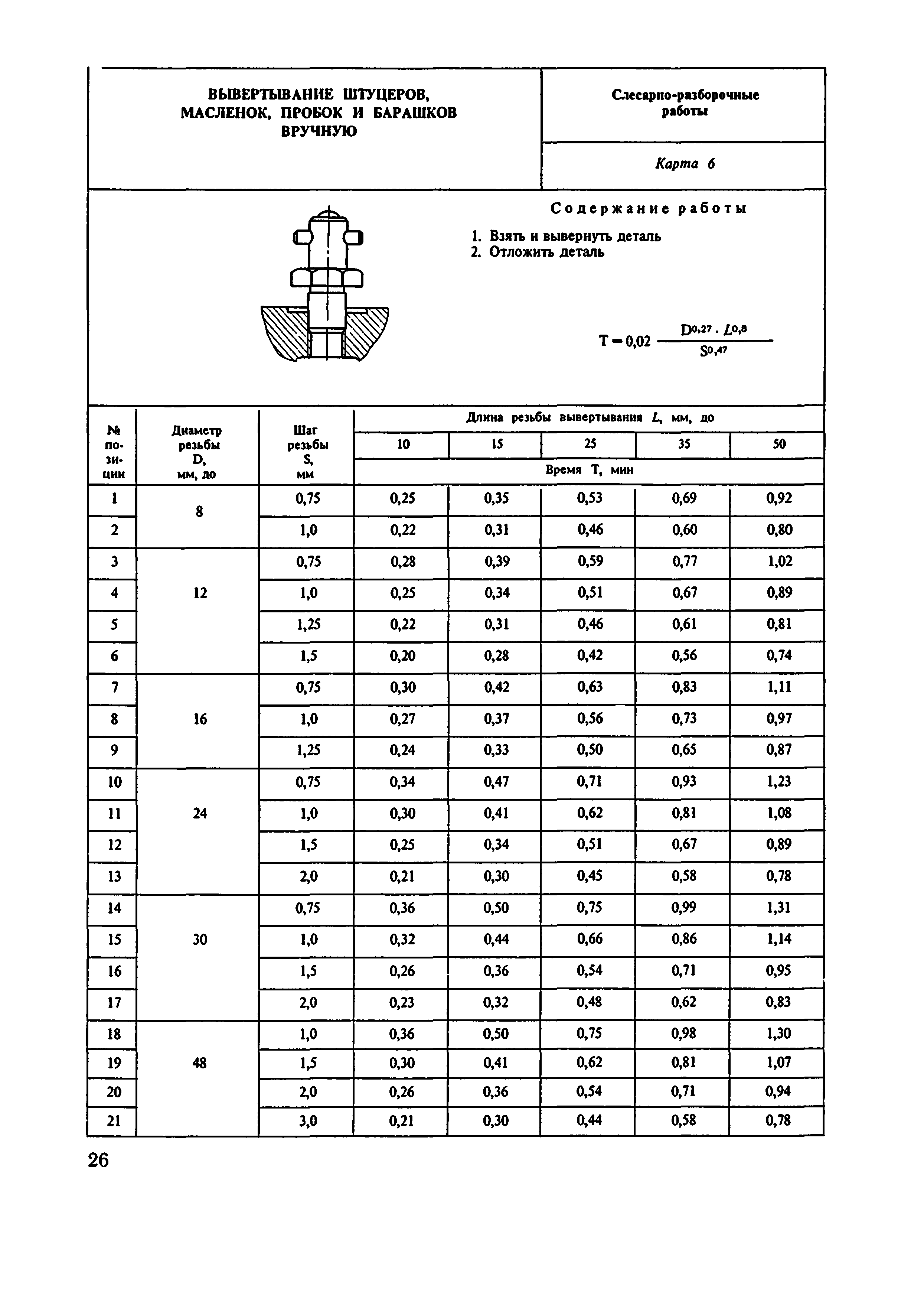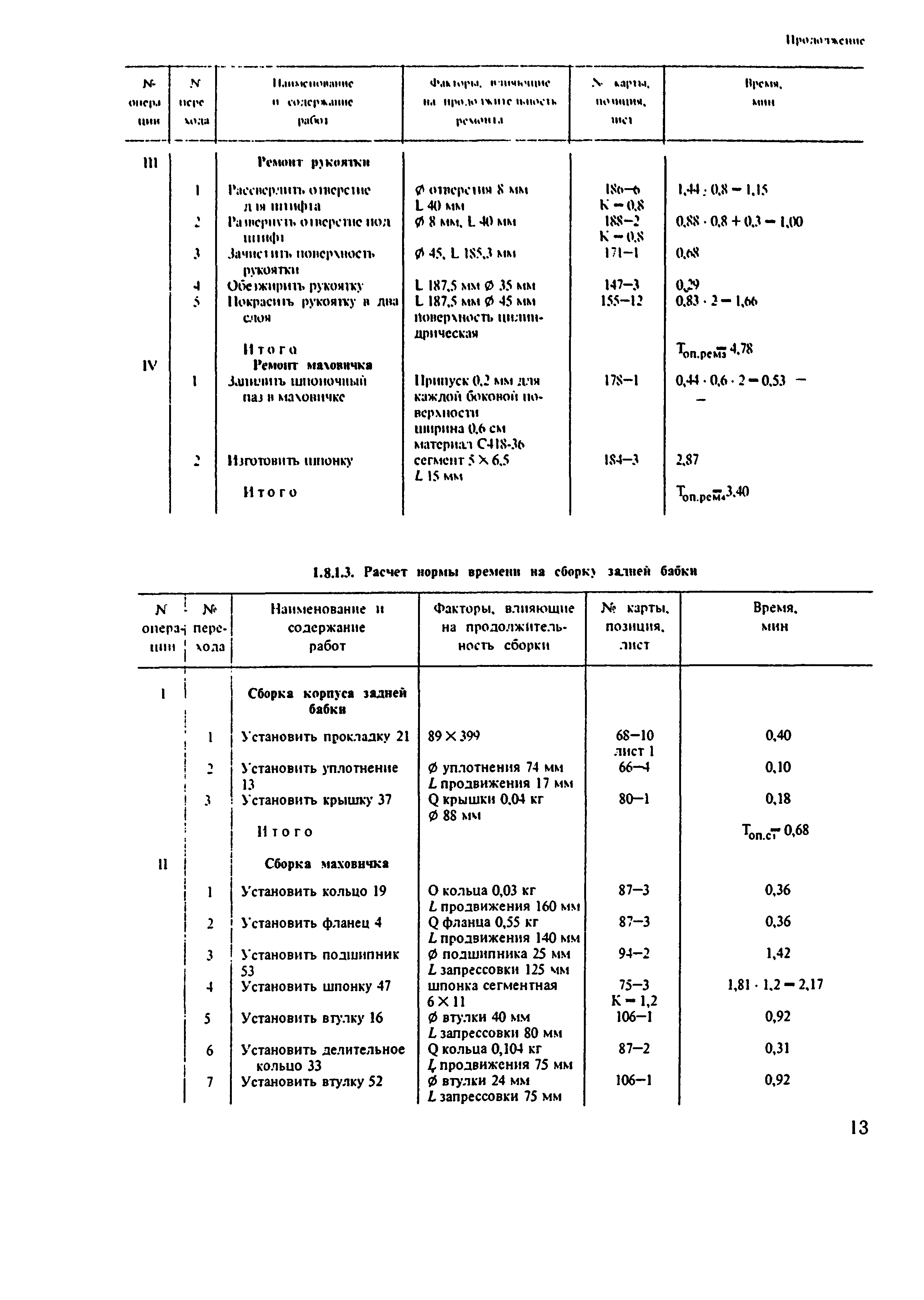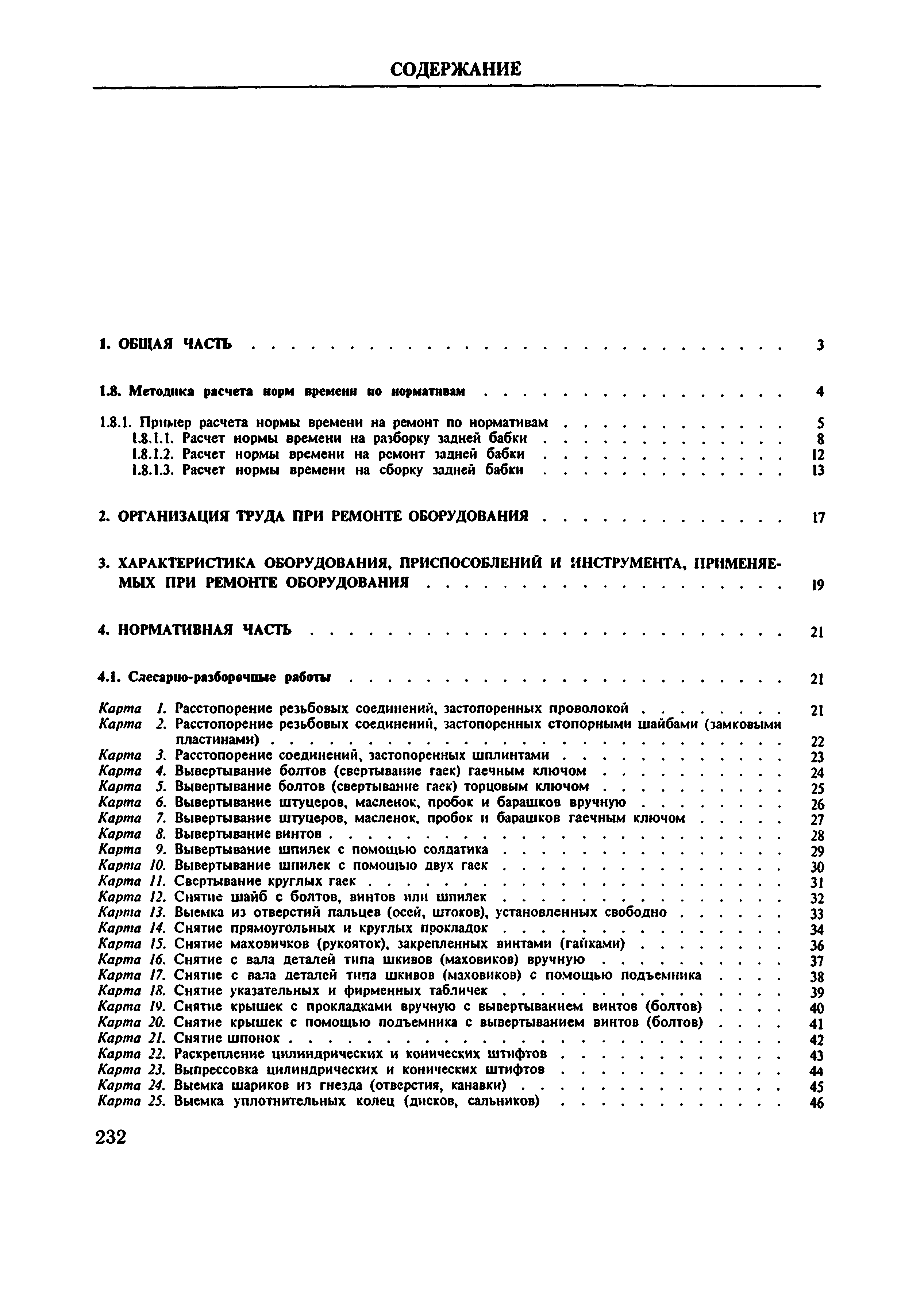 | Оглавление: | 1. Общая часть 1.8. Методика расчета норм времени по нормативам 2. Организация труда при ремонте оборудования 3. Характеристика оборудования, приспособлений и инструмента, применяемых при ремонте оборудования 4. Нормативная часть 4.1. Слесарно-разборные работы 4.2. Слесарно-сборочные работы 4.3 Вспомогательные работы 4.4. Слесарные работы |