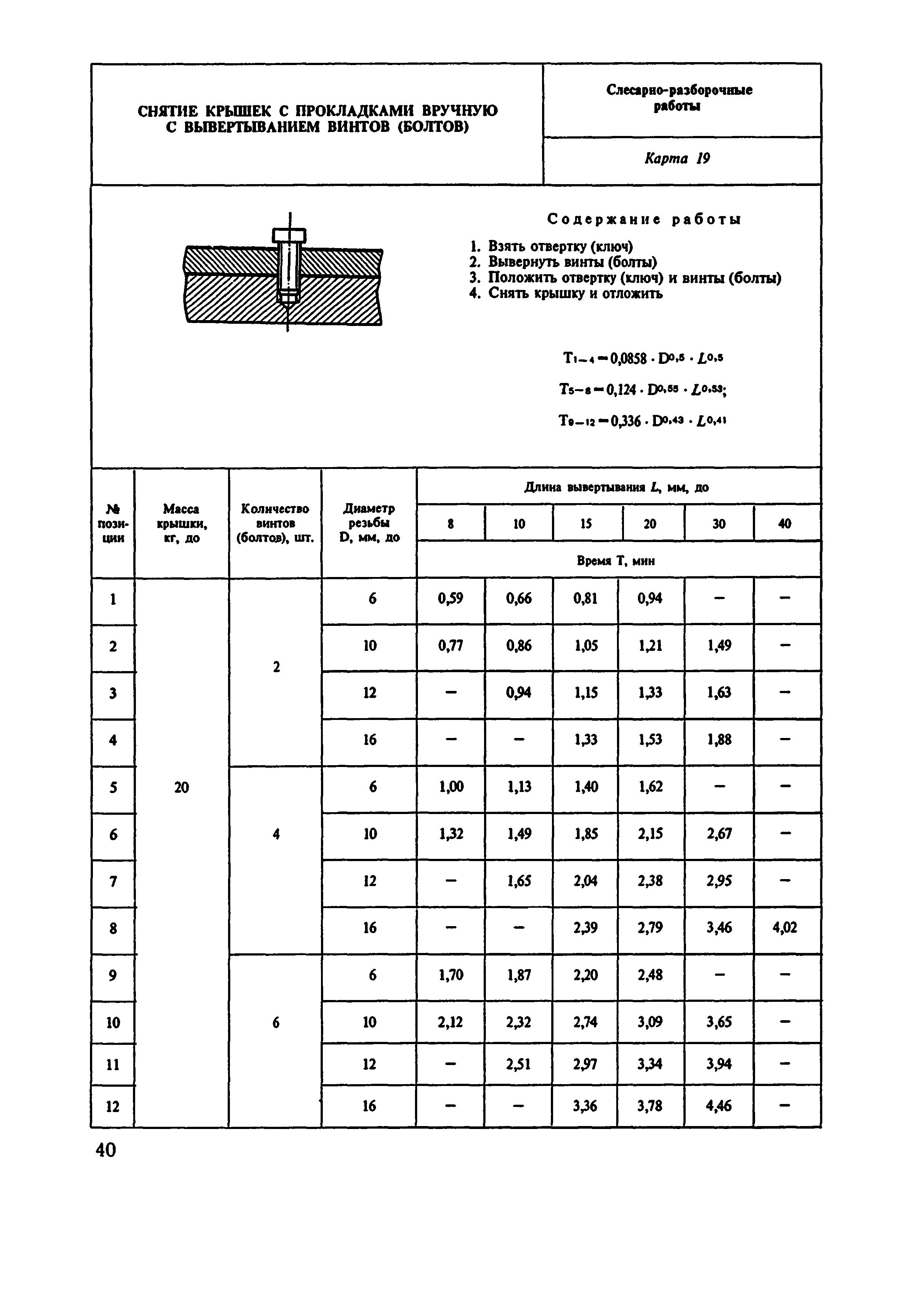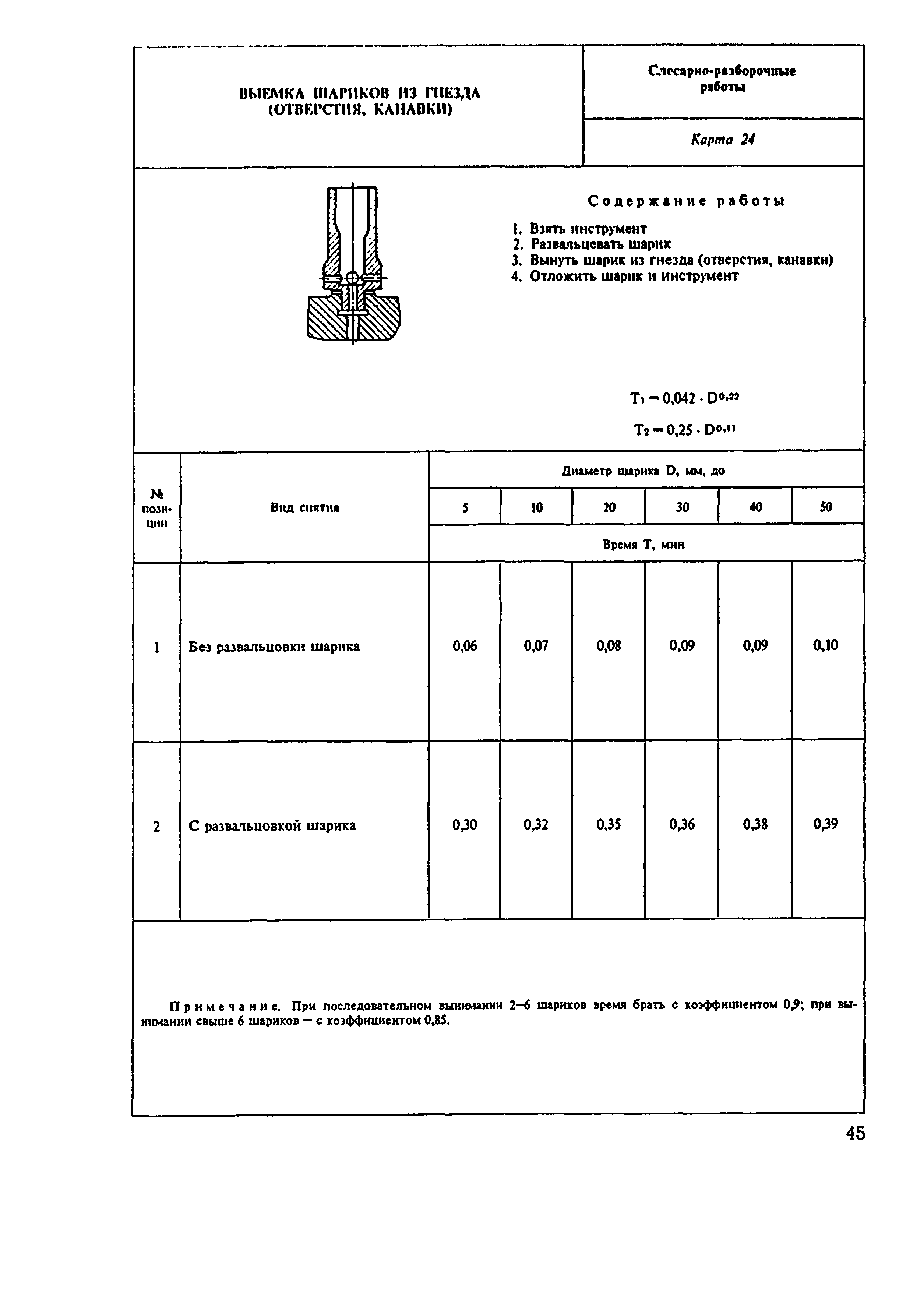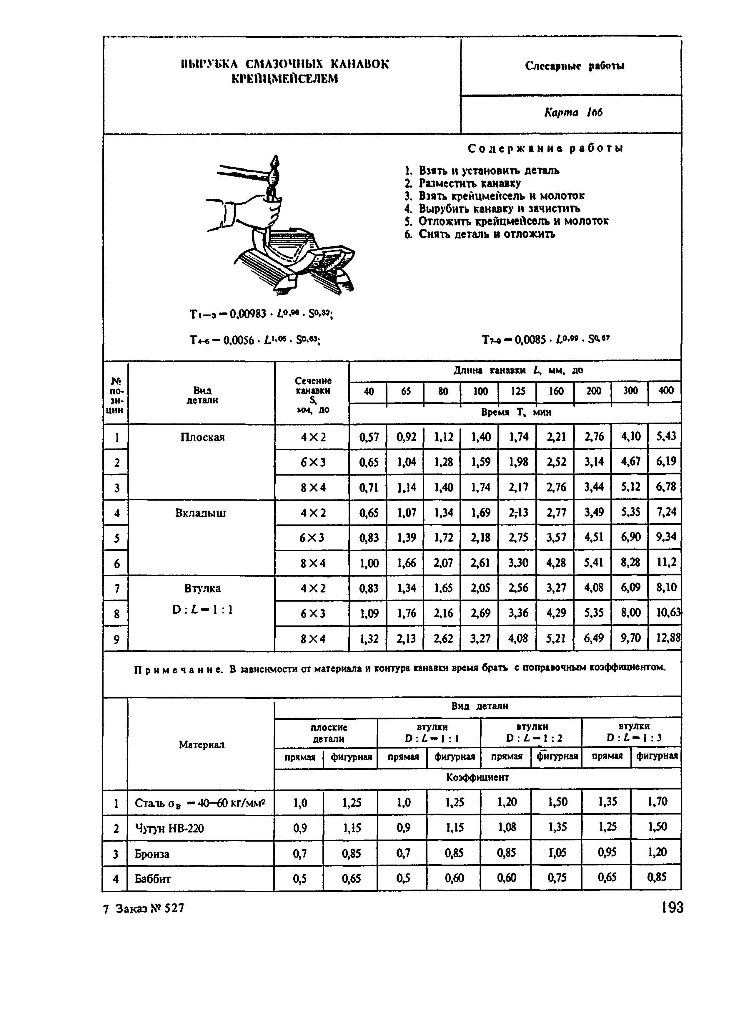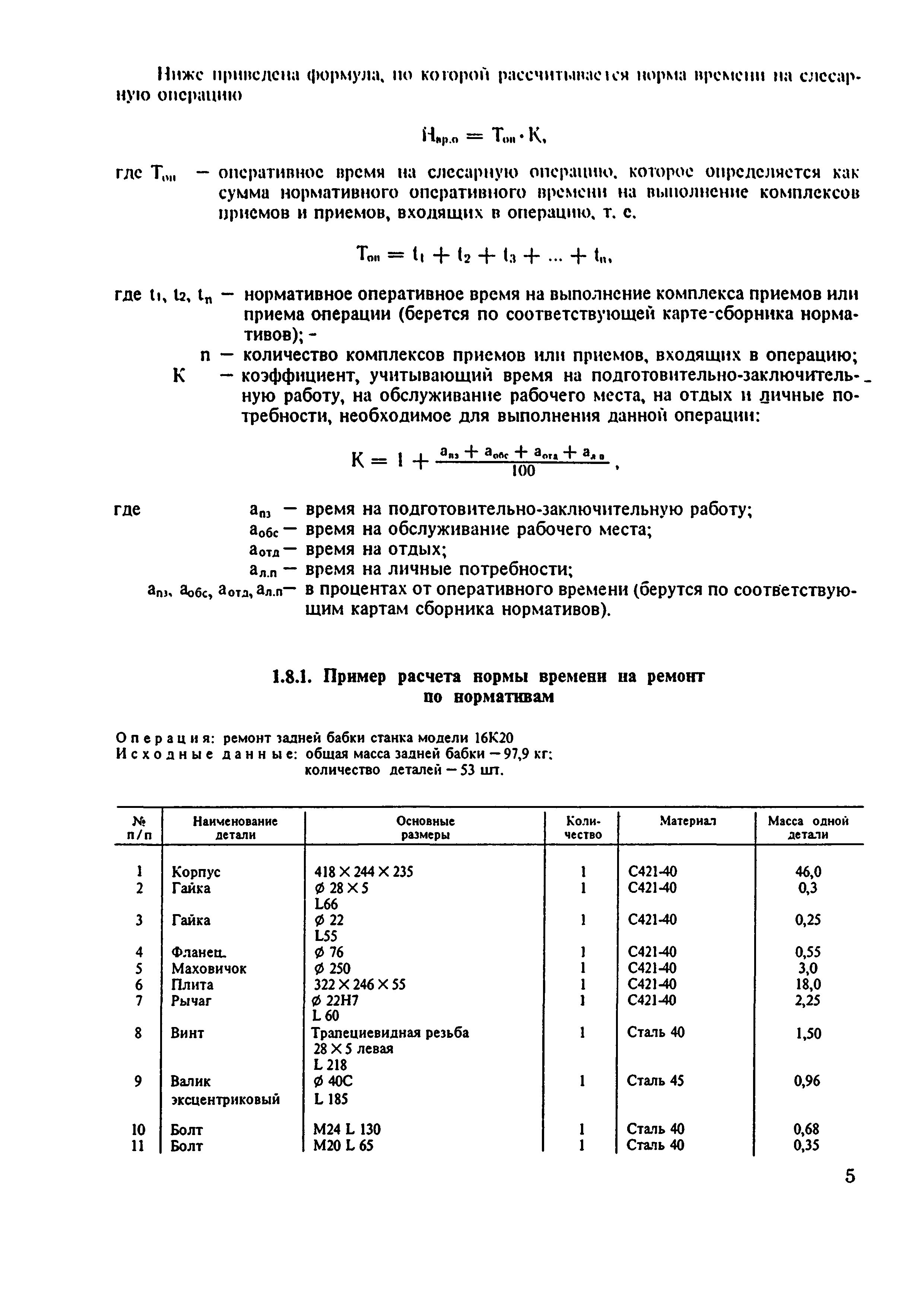 | Оглавление: | 1. Общая часть 1.8. Методика расчета норм времени по нормативам 2. Организация труда при ремонте оборудования 3. Характеристика оборудования, приспособлений и инструмента, применяемых при ремонте оборудования 4. Нормативная часть 4.1. Слесарно-разборные работы 4.2. Слесарно-сборочные работы 4.3 Вспомогательные работы 4.4. Слесарные работы |
