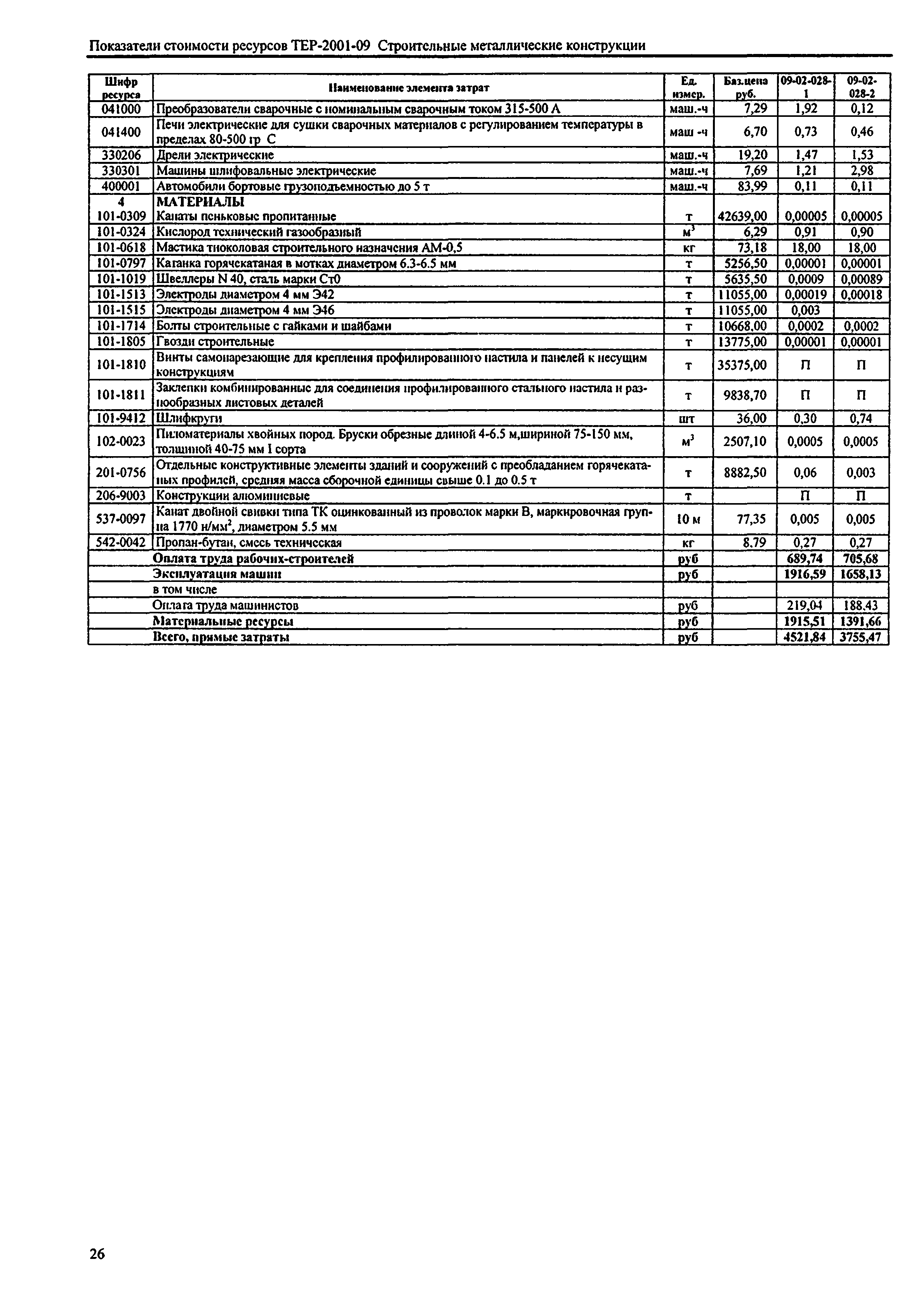 Скачать Справочное пособие к ТЕР 81-02-09-2001 Показатели стоимости ресурсов, учтенные при разработке территориальных единичных расценок на строительные работы к ТЕР-81-02-09-2001 Строительные металлические конструкции. Территориальные единичные расценки для определения стоимости строительных работ в Краснодарском краеДата актуализации: 01.01.2021