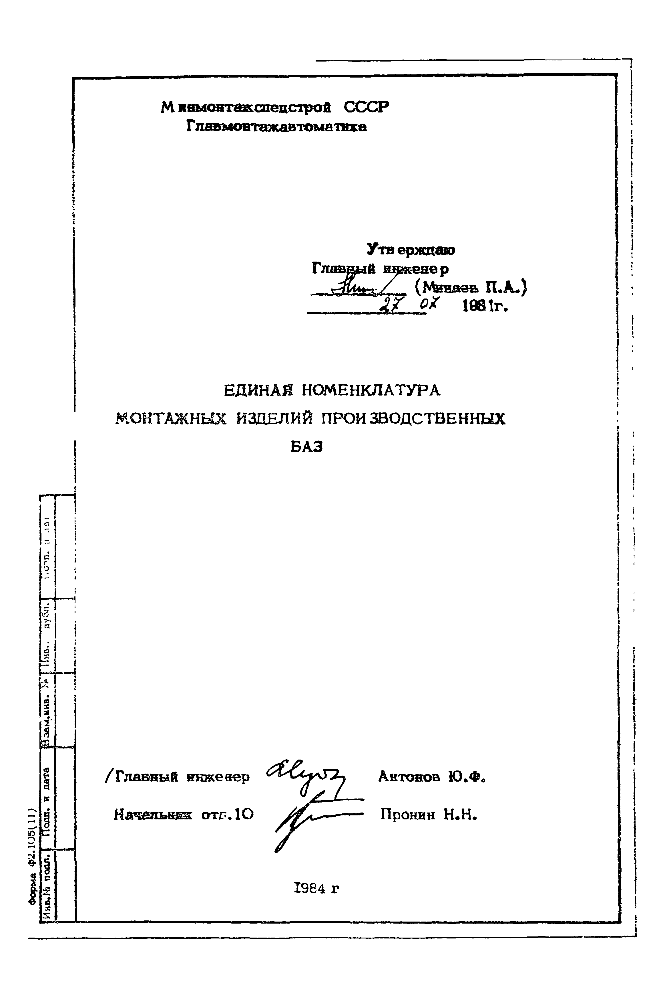 | Утверждён: | 27.07.1984 Главмонтажавтоматика