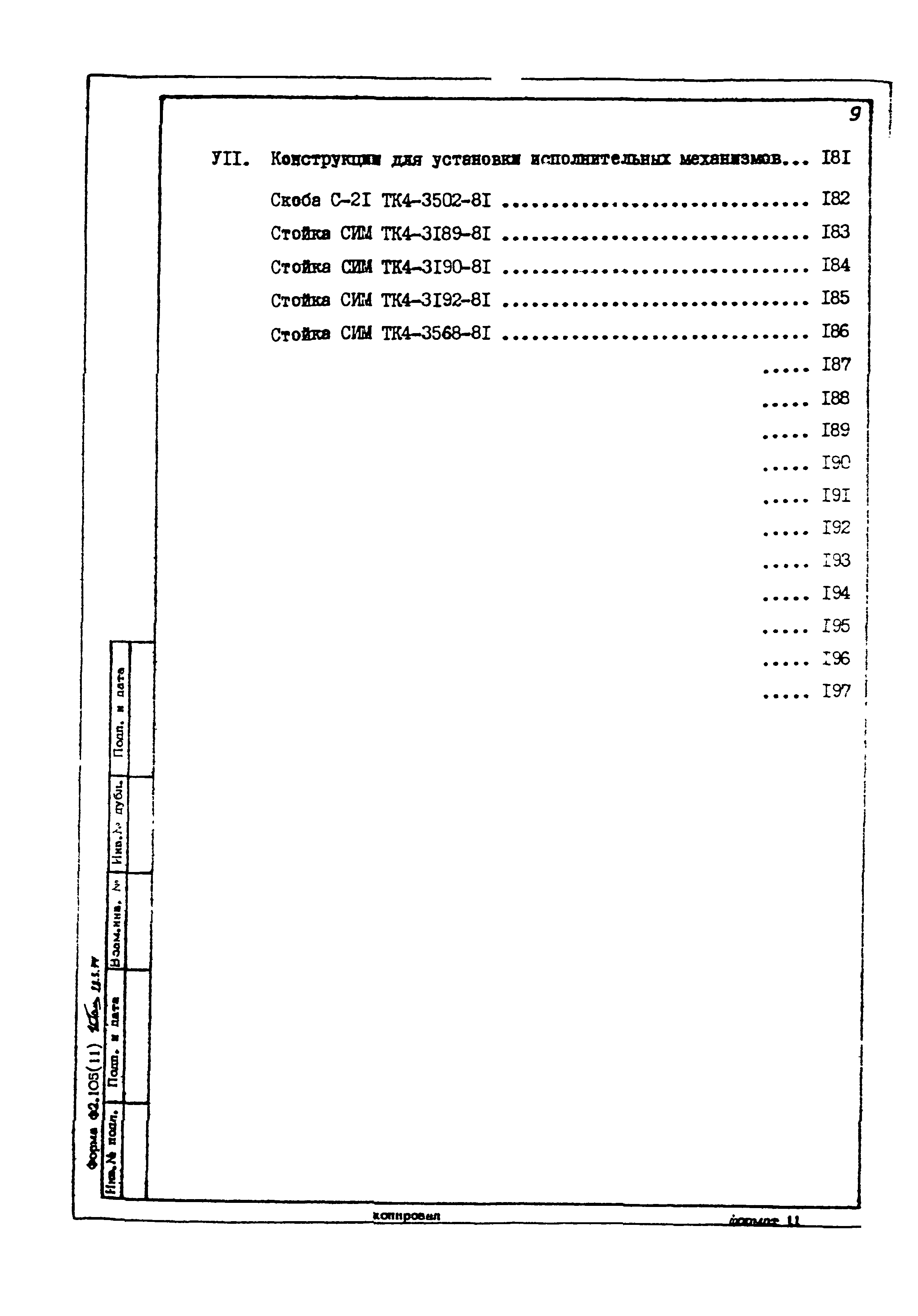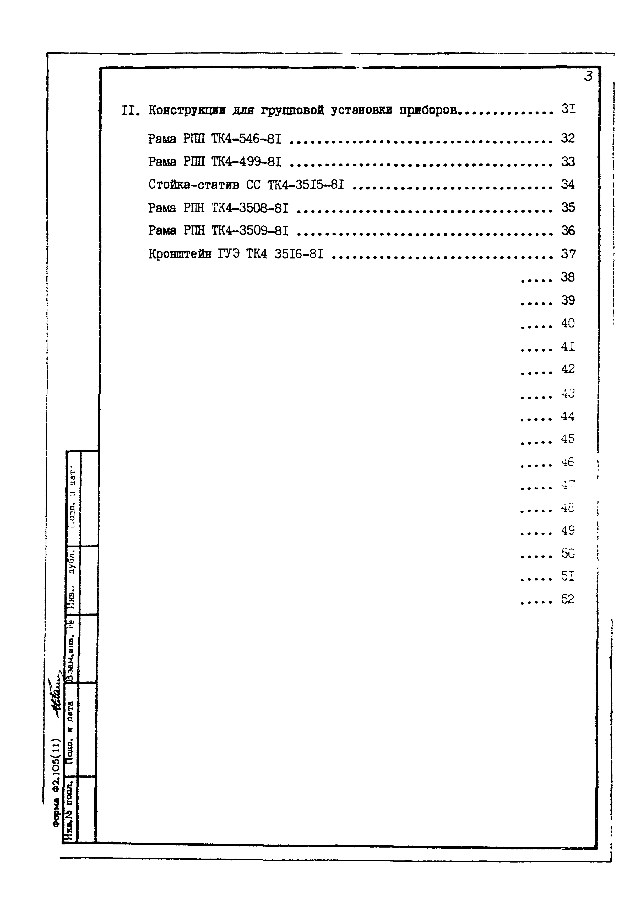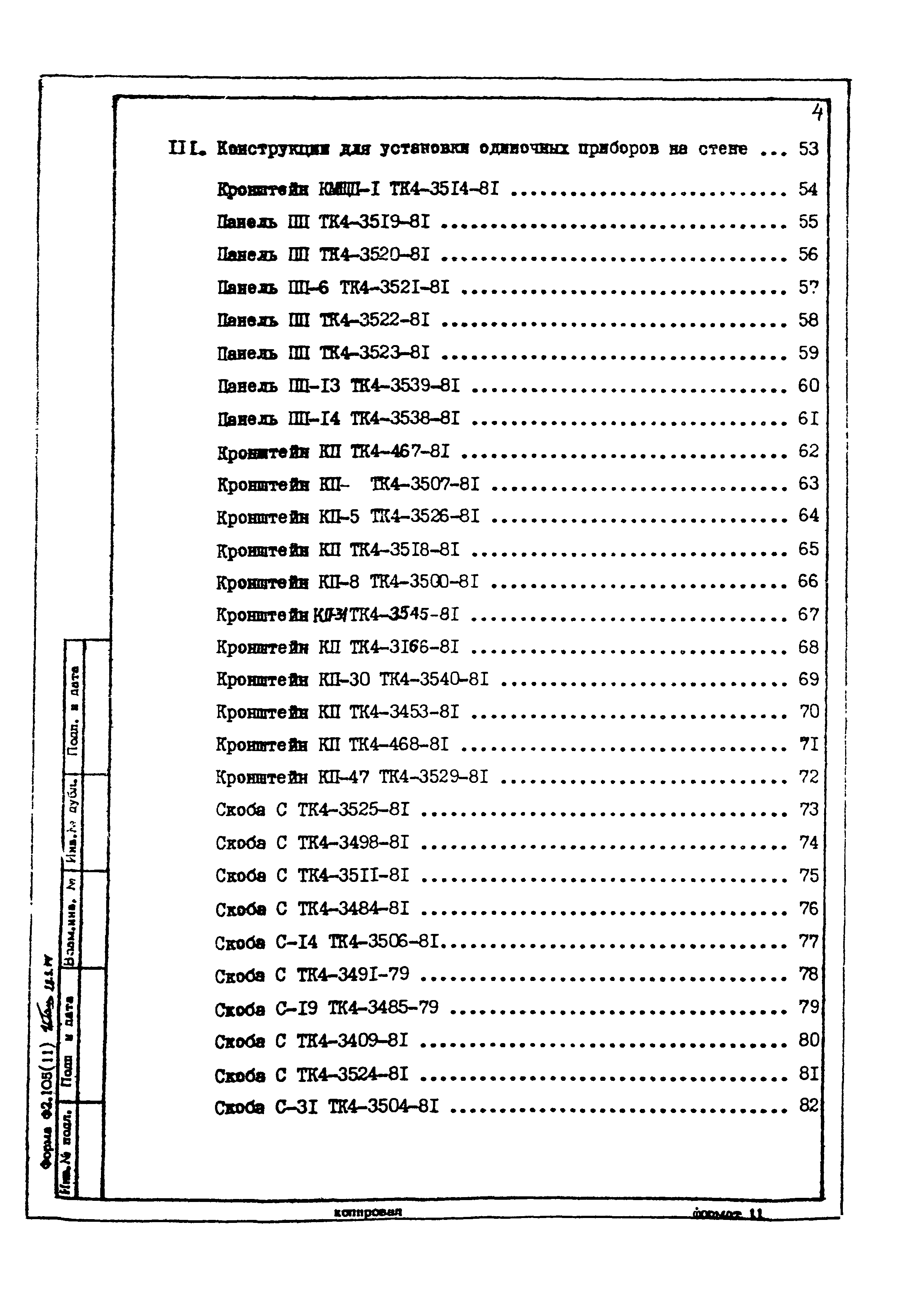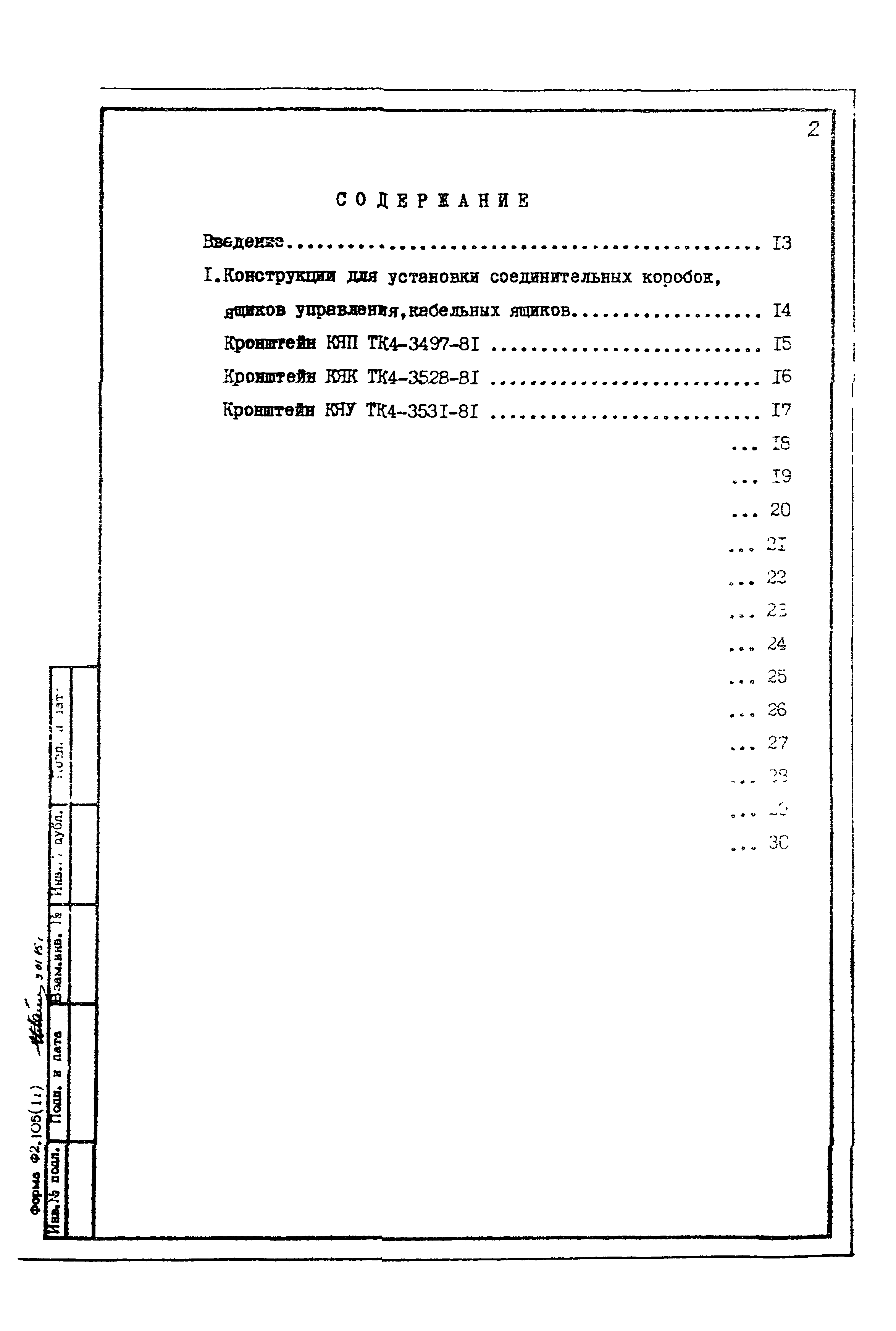 | Оглавление: | Введение I. Конструкции для установки соединительных коробок, ящиков управления, кабельных ящиков II. Конструкции для групповой установки приборов III. Конструкции для установки одиночных приборов на стене IV. Конструкции для установки одиночных приборов на полу V. Конструкции для установки приборов на технологическом оборудовании VI. Изделия для обвязки приборов VII. Конструкции для установки исполнительных механизмов VIII. Конструкции для прокладки трасс IX. Прочие изделия Приложение. Таблица выбора конструкций для установки приборов и средств автоматизации |
