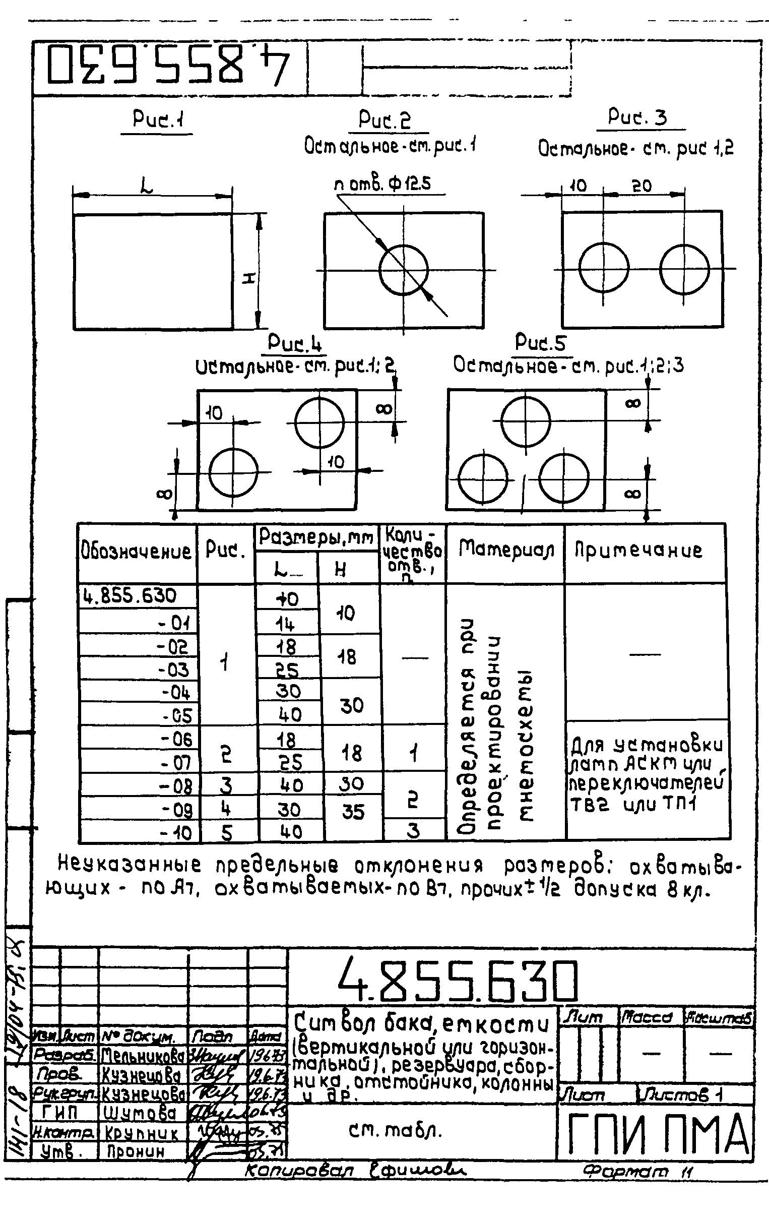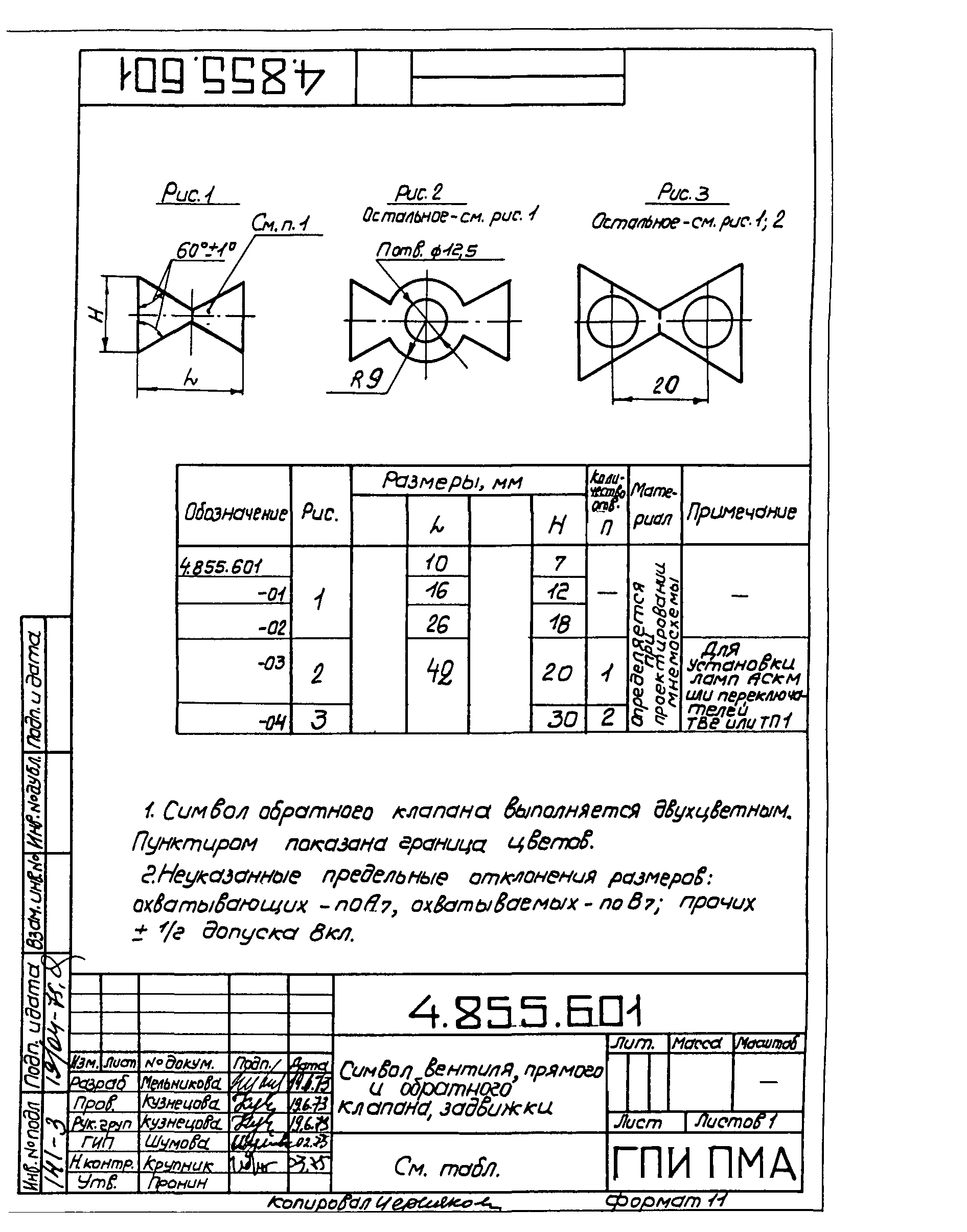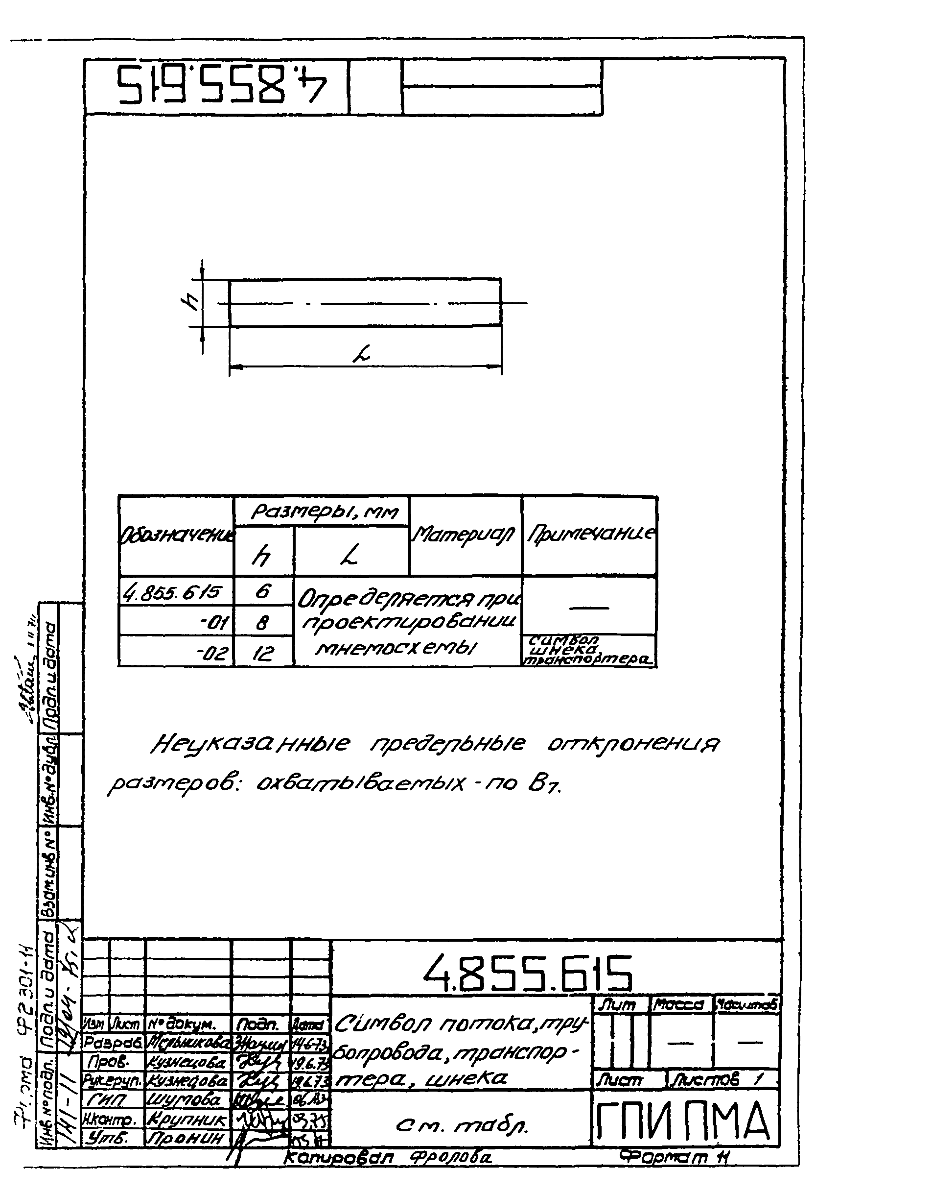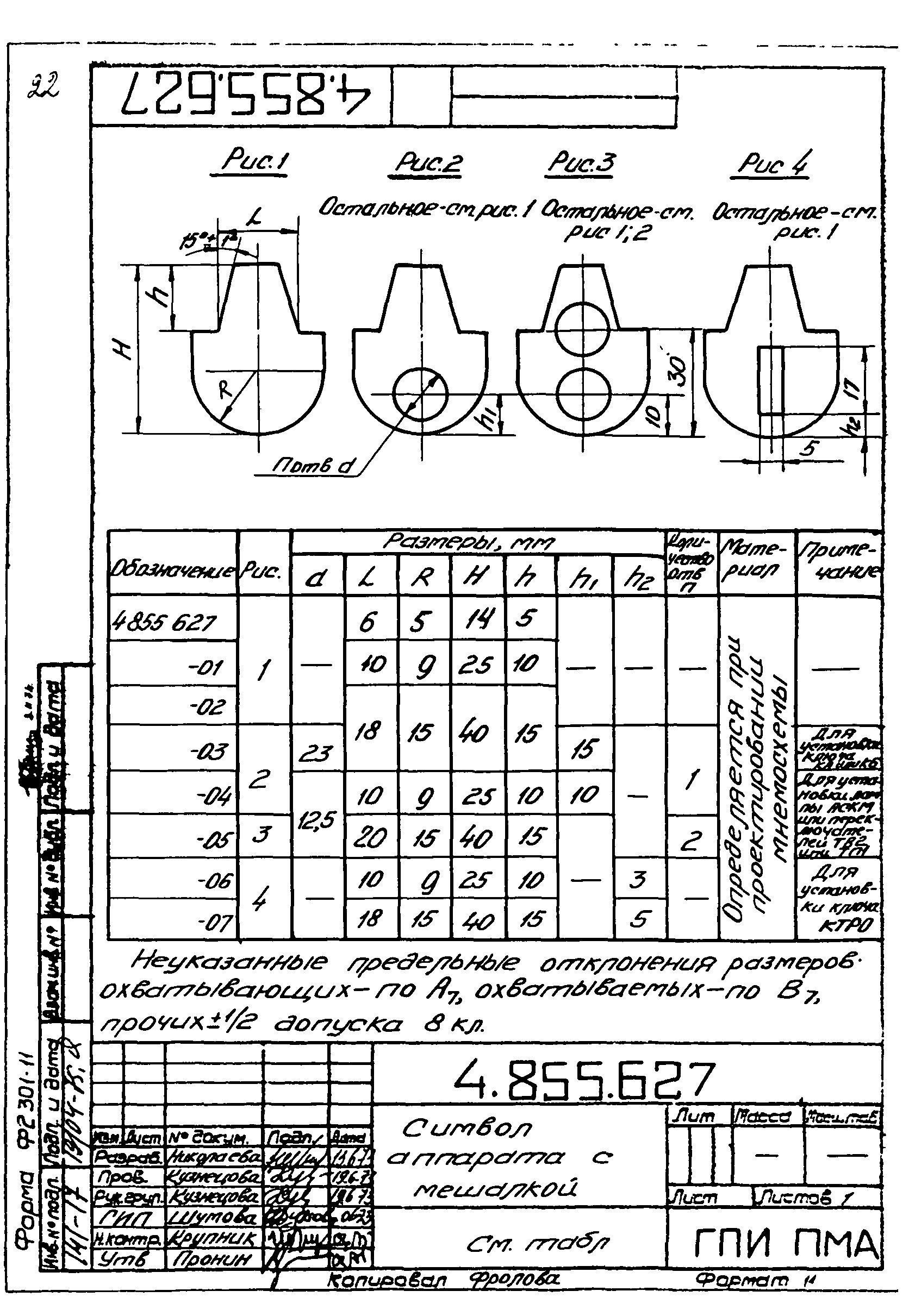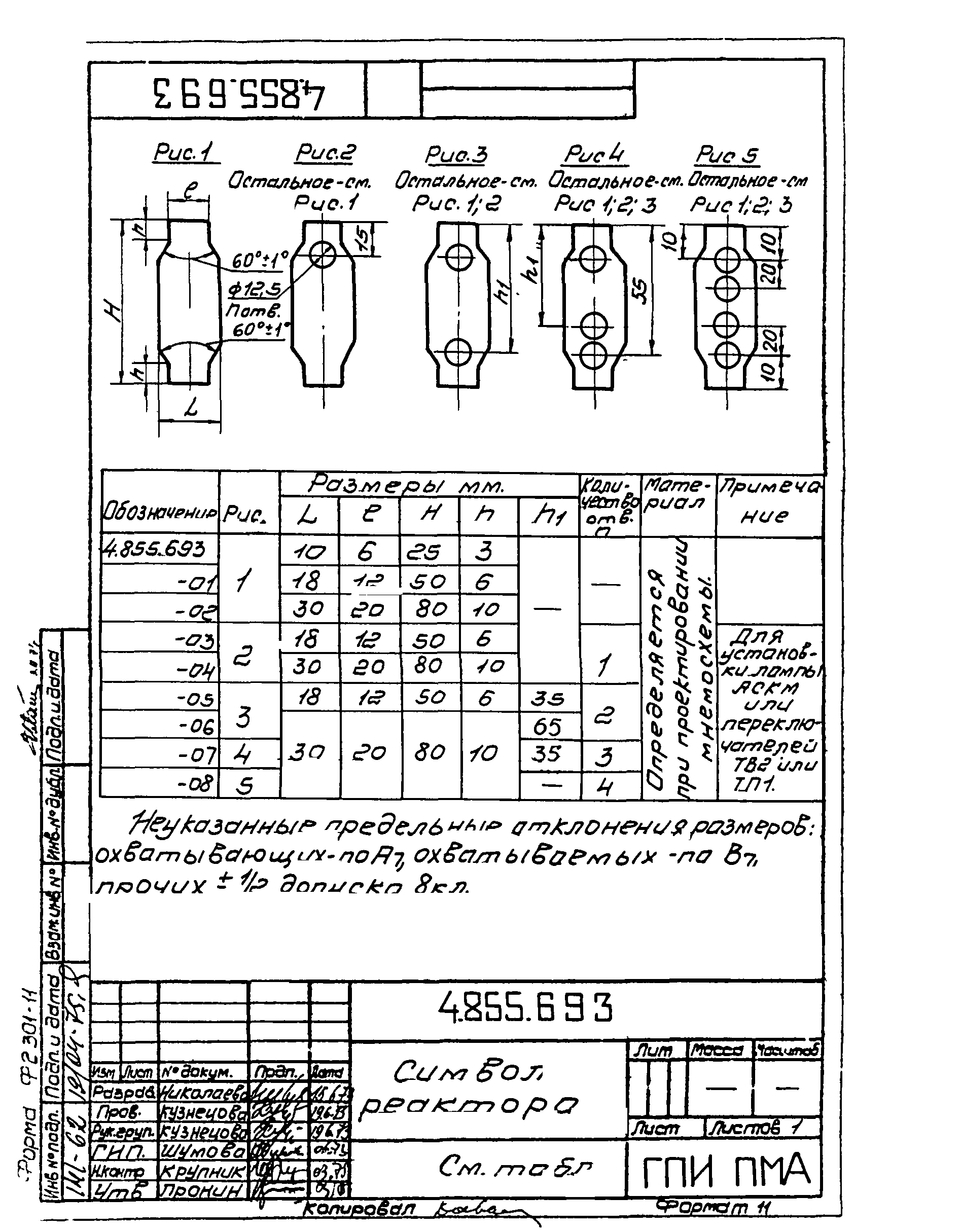 Символы элементов мнемосхем щитов и пультов управления. Рабочая документация| Статус: | действует | | Название рус.: | Символы элементов мнемосхем щитов и пультов управления. Рабочая документация | | Дата добавления в базу: | 01.09.2013 | | Дата актуализации: | 01.01.2021 | | Оглавление: | 4.855.600 Символ вентиля углового 4.855.601 Символ вентиля, прямого клапана, задвижки 4.855.602 Символ вентиля трехходового, клапана 4.855.605 Символ замера температуры 4.855.606 Символ замера уровня 4.855.607 Символ затвора поворотного, шибера, заслонки 4.855.610 Символ отбора давления 4.855.611 Символ отбора пробы 4.855.614 Символ поворота 4.855.615 Символ потока, трубопровода, транспортера, шнека 4.855.618 Символ сужающего устройства 4.855.619 Символ стрелки 4.855.622 Символ подшипника 4.855.625 Символ автоклава 4.855.626 Символ агломерационной машины 4.855.627 Символ аппарата с мешалкой 4.855.630 Символ бака емкости (вертикальной или горизонтальной) резервуара, сборника, отстойника, колонны и др. 4.855.631 Символ бассейна 4.855.632 Символ бункера сдвоенного 4.855.633 Символ бункера 4.855.636 Символ вагоноопрокидователя 4.855.637 Символ вальцового пресса 4.855.638 Символ весоизмерителя, весов 4.855.639 Символ вентилятора, дымососа, воздуходувки 4.855.640 Символ вертикального катализатора, дозатора 4.855.641 Символ воронки, емкости промежуточной 4.855.644 Символ гаража размораживания (элемент 4.855.645 Символ газгольдера мокрого, башни окислительной, эвапоратора 4.855.646 Символ газгольдера, ресивера, баллона, резервуара воздушного 4.855.647 Символ глинорезательной машины 4.855.648 Символ гранулятора 4.855.649 Символ градирни 4.855.650 Символ грохота 4.855.653 Символ деаэратора 4.855.654 Символ дробилки 4.855.657 Символ емкости шаровой 4.855.659 Символ железнодорожного вагона, вагонетки 4.855.661 Символ компрессора 4.855.662 Символ конвейерного сушила 4.855.663 Символ котла утилизатора 4.855.664 Символ котла варочного 4.855.665 Элемент символа колонны, элеватора 4.855.666 Символ контактора 4.855.667 Символ конденсатора холодильника, теплообменника, подогревателя, кипятильника, испарителя 4.855.670 Символ мельницы 4.855.671 Символ мешалки 4.855.672 Символ мерника 4.855.673 Символ моечной машины 4.855.674 Символ монжуса 4.855.677 Символ насоса шестеренчатого 4.855.678 Символ насоса центробежного 4.855.679 Символ насоса поршневого 4.855.680 Символ нефтяного резервуара 4.855.683 Символ обжиговой машины 4.855.684 Символ отсадочной машины 4.855.685 Символ печи обжига в кипящем слое 4.855.686 Символ печи 4.855.687 Символ перколятора 4.855.688 Символ питателя 4.855.689 Символ плавильника 4.855.690 Символ пресса 4.855.693 Символ реактора 4.855.694 Символ регенератора катализатора 4.855.695 Символ рекуператора 4.855.696 Символ ротаметра 4.855.699 Символ сгустителя, вакуумфильтр 4.855.700 Символ сепаратора 4.855.701 Символ скребкового кристаллизатора 4.855.702 Символ скруббера 4.855.703 Символ склада 4.855.704 Символ смесителя, скомкователя, сортировки 4.855.705 Символ сушила барабанного 4.855.706 Символ топки под давлением 4.855.707 Символ турбины 4.855.709 Символ фильтра 4.855.711 Символ флотационной машины 4.855.713 Символ холодильника кокса 4.855.715 Символ центрифуги 4.855.716 Символ цистерны 4.855.717 Символ циклона, водоотделителя, воздухоподогревателя 4.855.719 Символ шибера перекидного 4.855.721 Символ эжектора 4.855.722 Символ электродвигателя, генератора 4.855.723 Символ элеватора | | Разработан: | ГПКИ Проектмонтажавтоматика