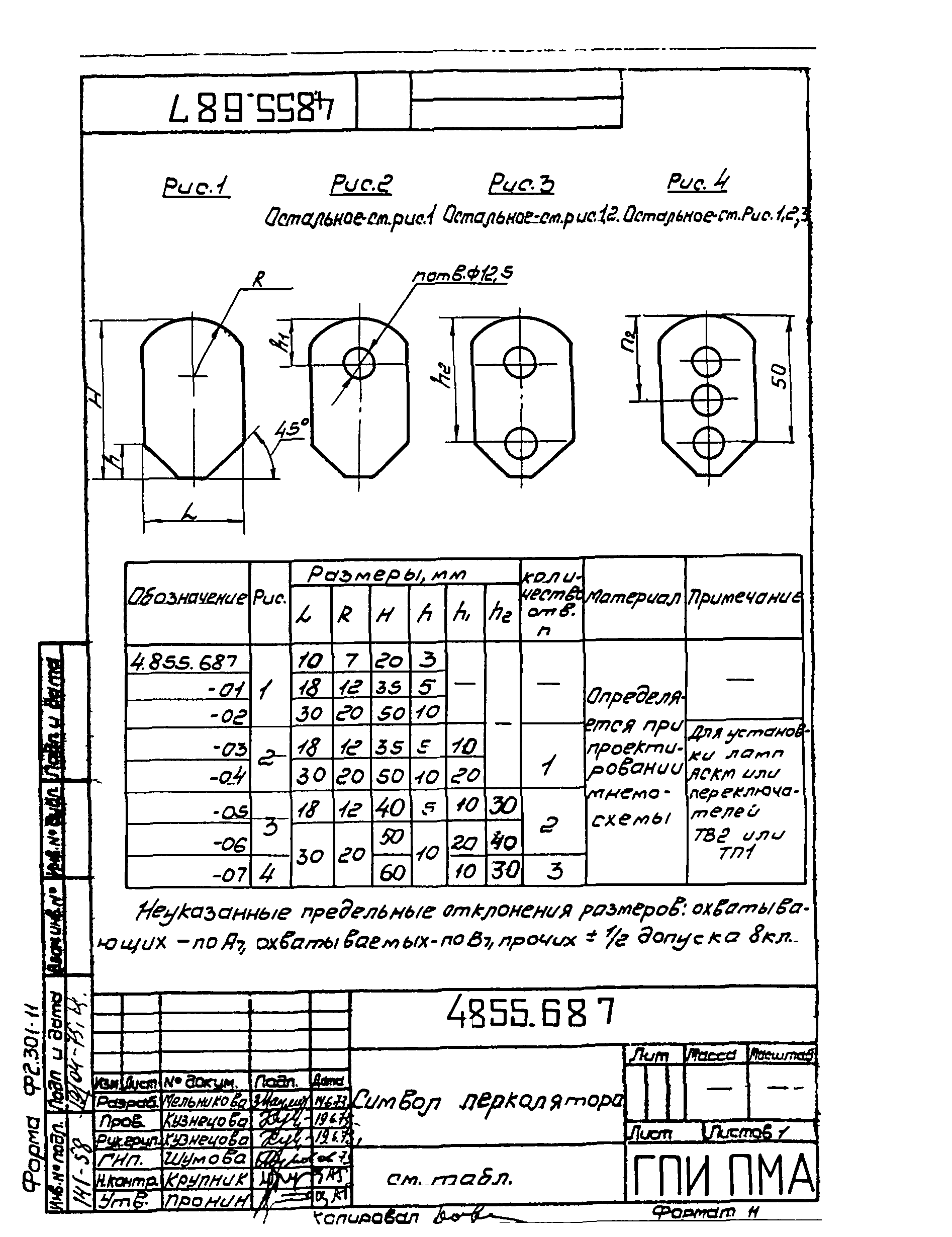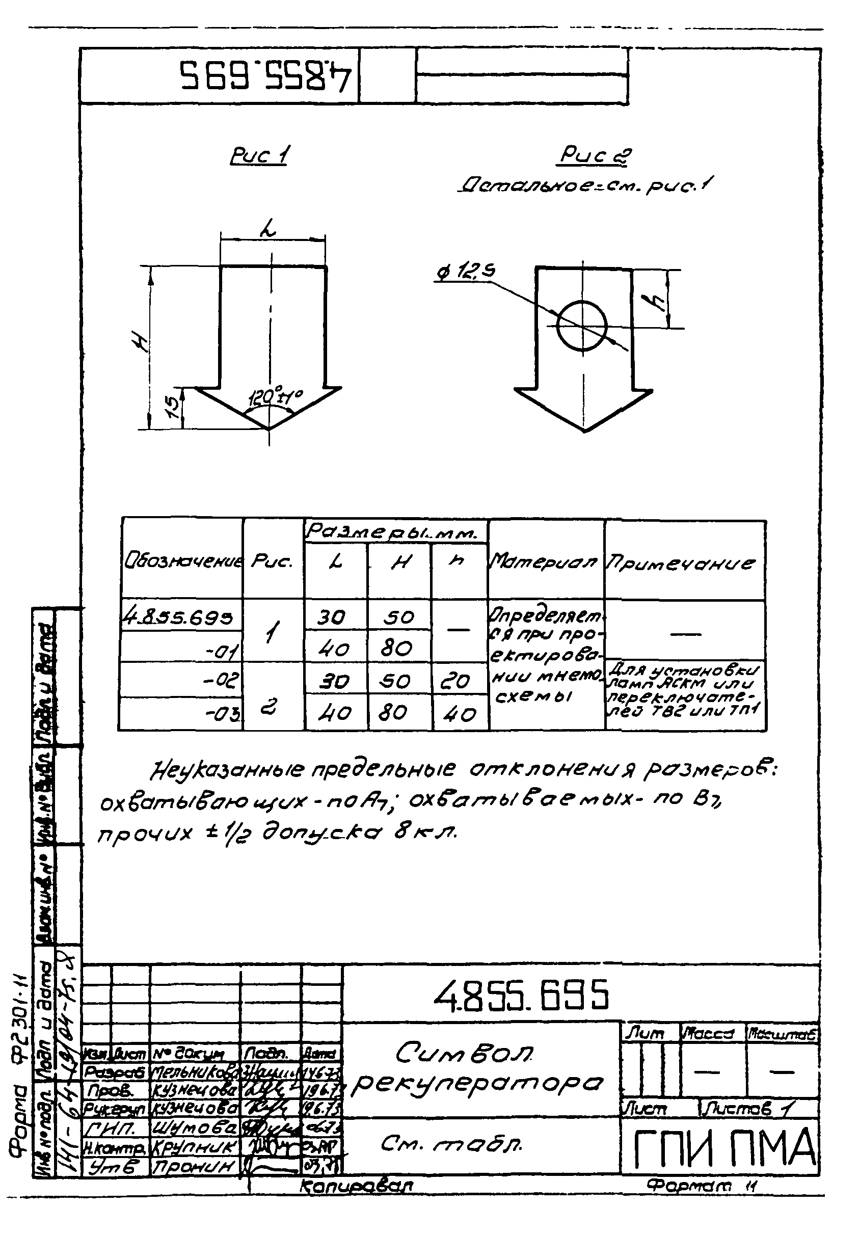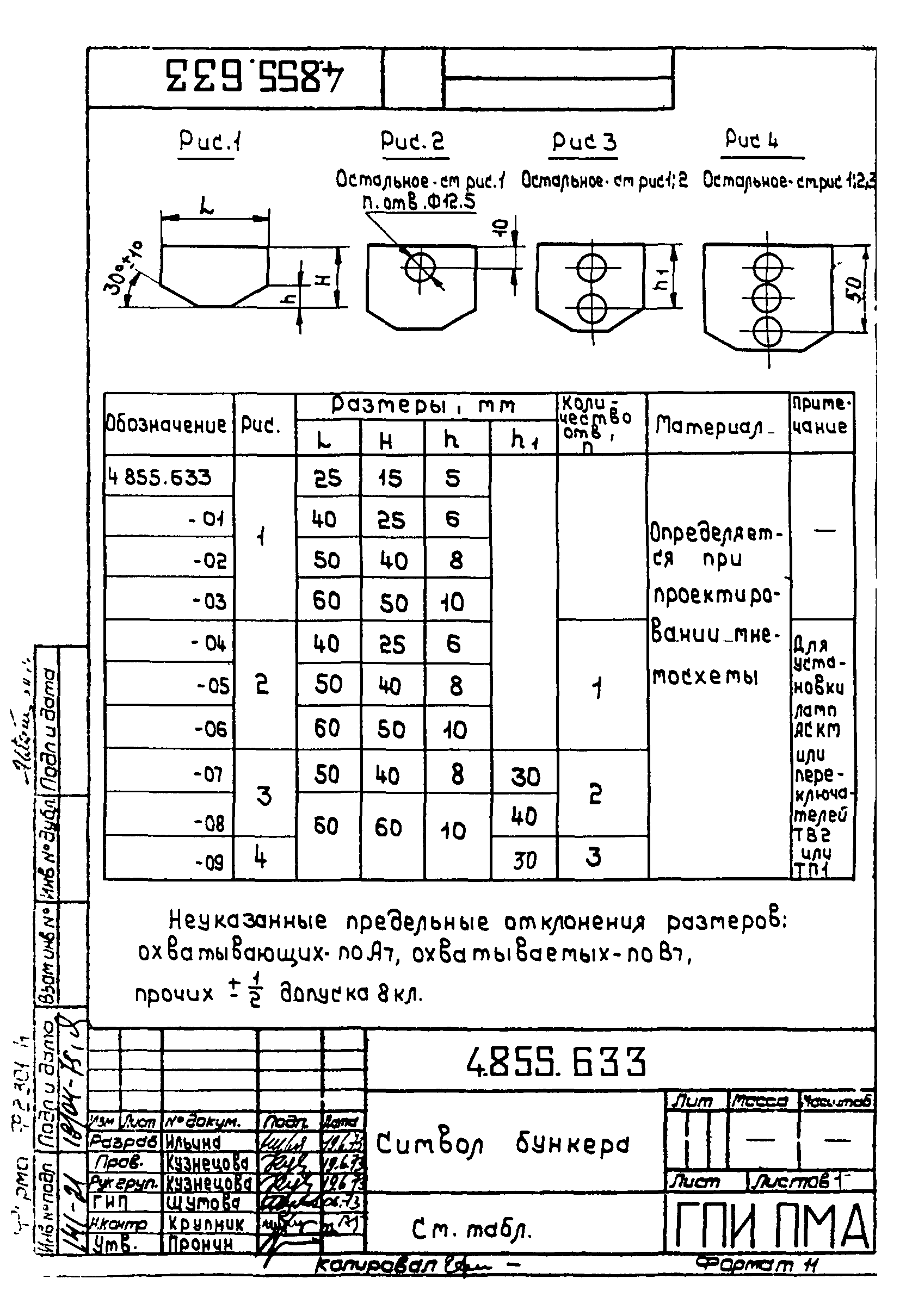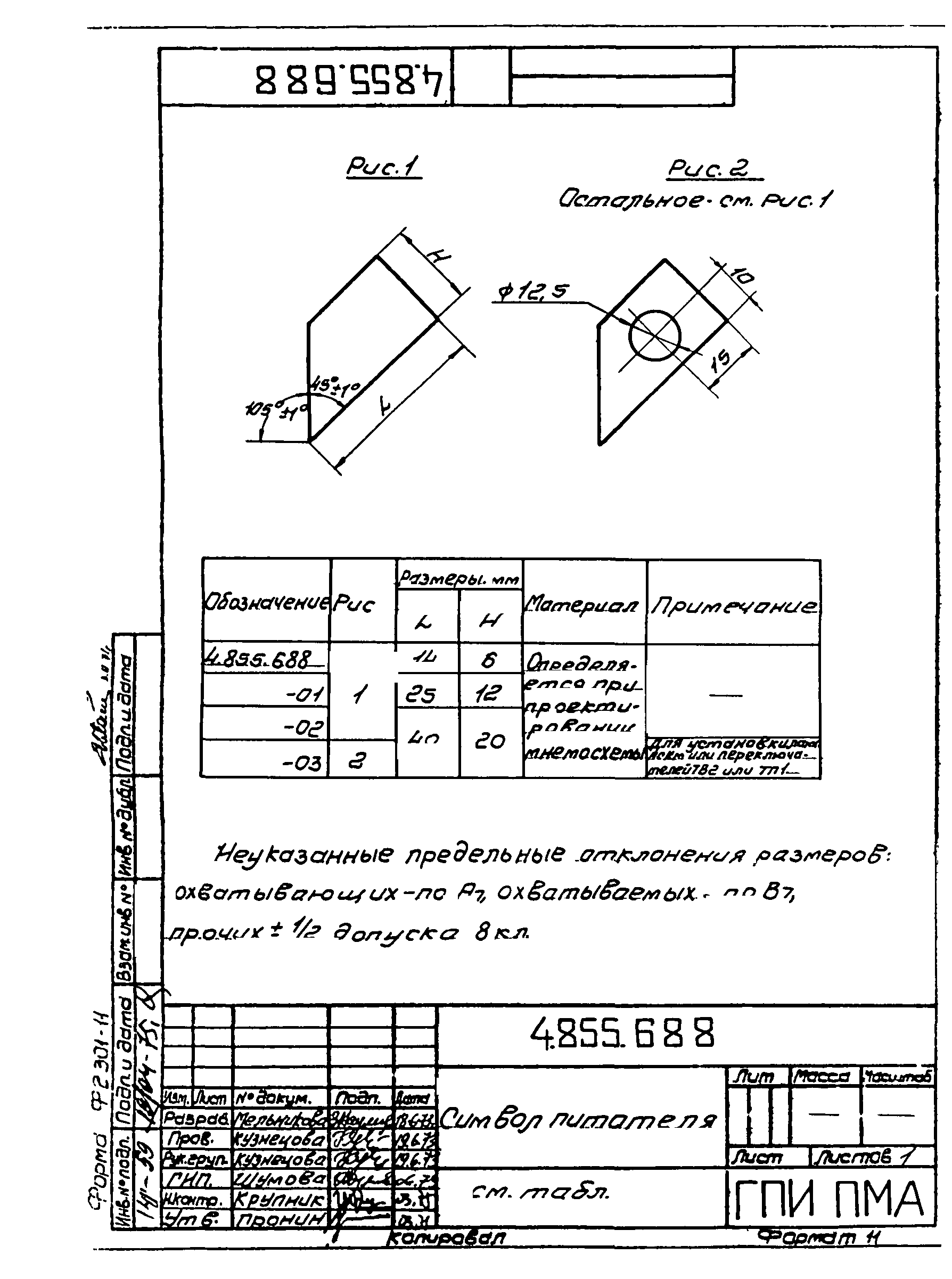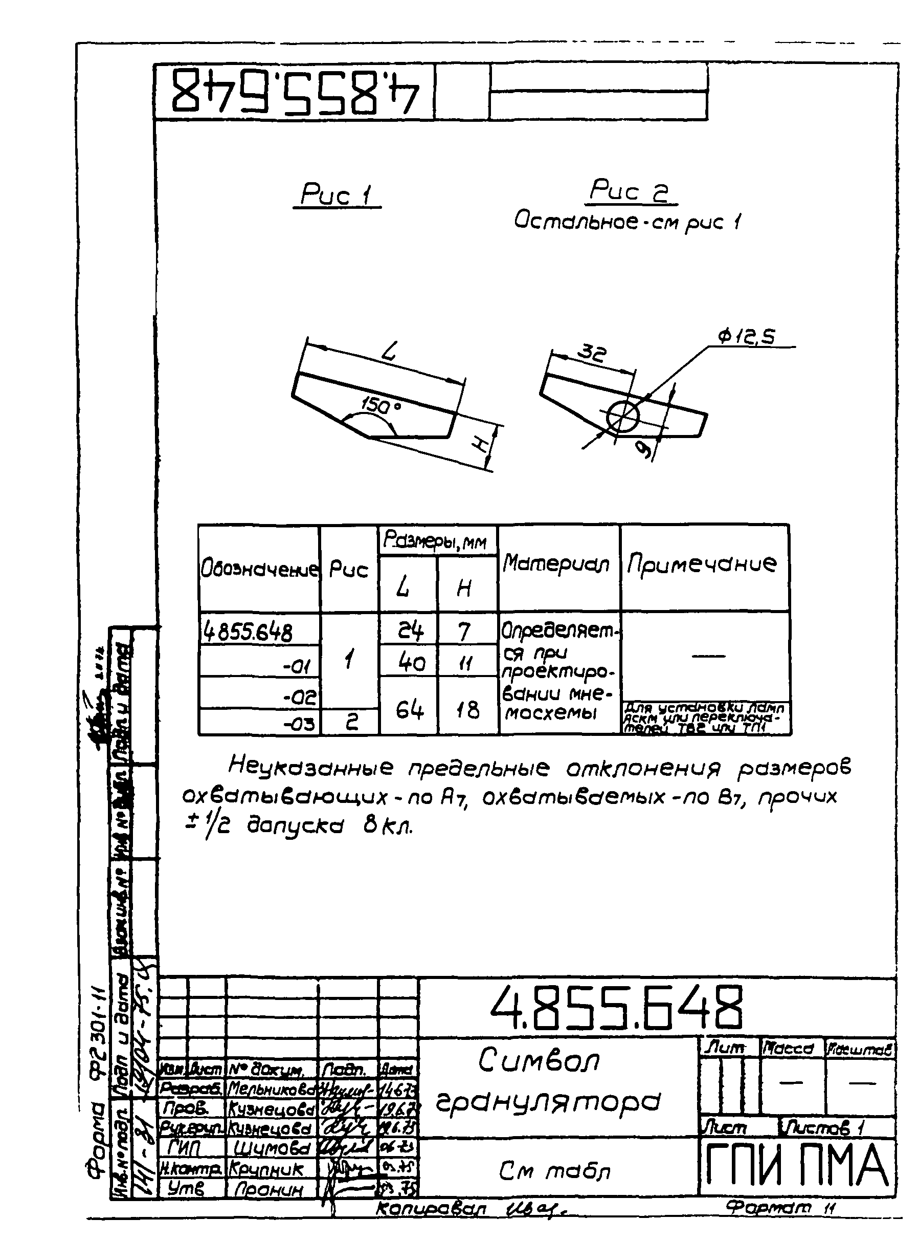 Символы элементов мнемосхем щитов и пультов управления. Рабочая документация| Статус: | действует | | Название рус.: | Символы элементов мнемосхем щитов и пультов управления. Рабочая документация | | Дата добавления в базу: | 01.09.2013 | | Дата актуализации: | 01.01.2021 | | Оглавление: | 4.855.600 Символ вентиля углового 4.855.601 Символ вентиля, прямого клапана, задвижки 4.855.602 Символ вентиля трехходового, клапана 4.855.605 Символ замера температуры 4.855.606 Символ замера уровня 4.855.607 Символ затвора поворотного, шибера, заслонки 4.855.610 Символ отбора давления 4.855.611 Символ отбора пробы 4.855.614 Символ поворота 4.855.615 Символ потока, трубопровода, транспортера, шнека 4.855.618 Символ сужающего устройства 4.855.619 Символ стрелки 4.855.622 Символ подшипника 4.855.625 Символ автоклава 4.855.626 Символ агломерационной машины 4.855.627 Символ аппарата с мешалкой 4.855.630 Символ бака емкости (вертикальной или горизонтальной) резервуара, сборника, отстойника, колонны и др. 4.855.631 Символ бассейна 4.855.632 Символ бункера сдвоенного 4.855.633 Символ бункера 4.855.636 Символ вагоноопрокидователя 4.855.637 Символ вальцового пресса 4.855.638 Символ весоизмерителя, весов 4.855.639 Символ вентилятора, дымососа, воздуходувки 4.855.640 Символ вертикального катализатора, дозатора 4.855.641 Символ воронки, емкости промежуточной 4.855.644 Символ гаража размораживания (элемент 4.855.645 Символ газгольдера мокрого, башни окислительной, эвапоратора 4.855.646 Символ газгольдера, ресивера, баллона, резервуара воздушного 4.855.647 Символ глинорезательной машины 4.855.648 Символ гранулятора 4.855.649 Символ градирни 4.855.650 Символ грохота 4.855.653 Символ деаэратора 4.855.654 Символ дробилки 4.855.657 Символ емкости шаровой 4.855.659 Символ железнодорожного вагона, вагонетки 4.855.661 Символ компрессора 4.855.662 Символ конвейерного сушила 4.855.663 Символ котла утилизатора 4.855.664 Символ котла варочного 4.855.665 Элемент символа колонны, элеватора 4.855.666 Символ контактора 4.855.667 Символ конденсатора холодильника, теплообменника, подогревателя, кипятильника, испарителя 4.855.670 Символ мельницы 4.855.671 Символ мешалки 4.855.672 Символ мерника 4.855.673 Символ моечной машины 4.855.674 Символ монжуса 4.855.677 Символ насоса шестеренчатого 4.855.678 Символ насоса центробежного 4.855.679 Символ насоса поршневого 4.855.680 Символ нефтяного резервуара 4.855.683 Символ обжиговой машины 4.855.684 Символ отсадочной машины 4.855.685 Символ печи обжига в кипящем слое 4.855.686 Символ печи 4.855.687 Символ перколятора 4.855.688 Символ питателя 4.855.689 Символ плавильника 4.855.690 Символ пресса 4.855.693 Символ реактора 4.855.694 Символ регенератора катализатора 4.855.695 Символ рекуператора 4.855.696 Символ ротаметра 4.855.699 Символ сгустителя, вакуумфильтр 4.855.700 Символ сепаратора 4.855.701 Символ скребкового кристаллизатора 4.855.702 Символ скруббера 4.855.703 Символ склада 4.855.704 Символ смесителя, скомкователя, сортировки 4.855.705 Символ сушила барабанного 4.855.706 Символ топки под давлением 4.855.707 Символ турбины 4.855.709 Символ фильтра 4.855.711 Символ флотационной машины 4.855.713 Символ холодильника кокса 4.855.715 Символ центрифуги 4.855.716 Символ цистерны 4.855.717 Символ циклона, водоотделителя, воздухоподогревателя 4.855.719 Символ шибера перекидного 4.855.721 Символ эжектора 4.855.722 Символ электродвигателя, генератора 4.855.723 Символ элеватора | | Разработан: | ГПКИ Проектмонтажавтоматика