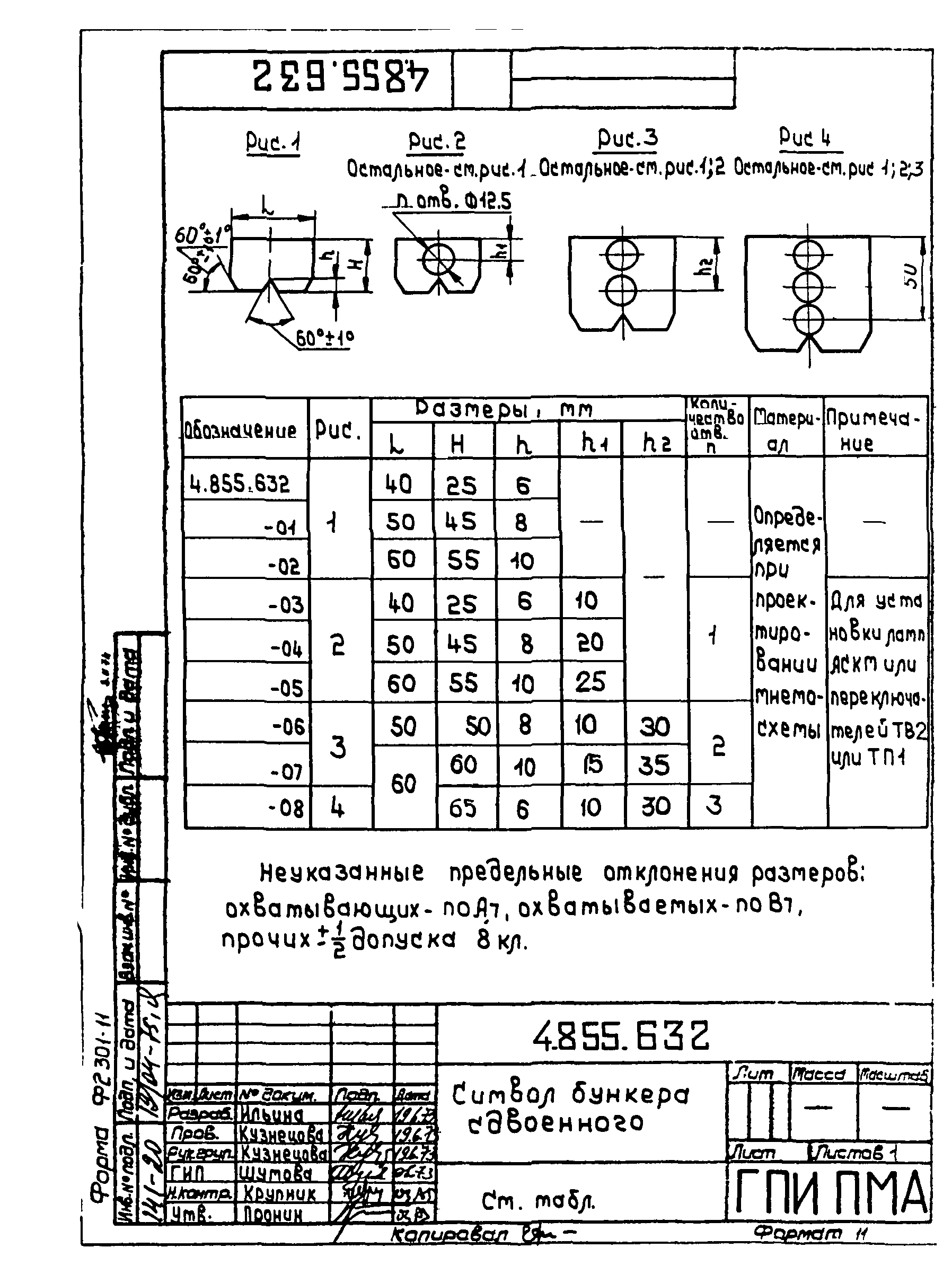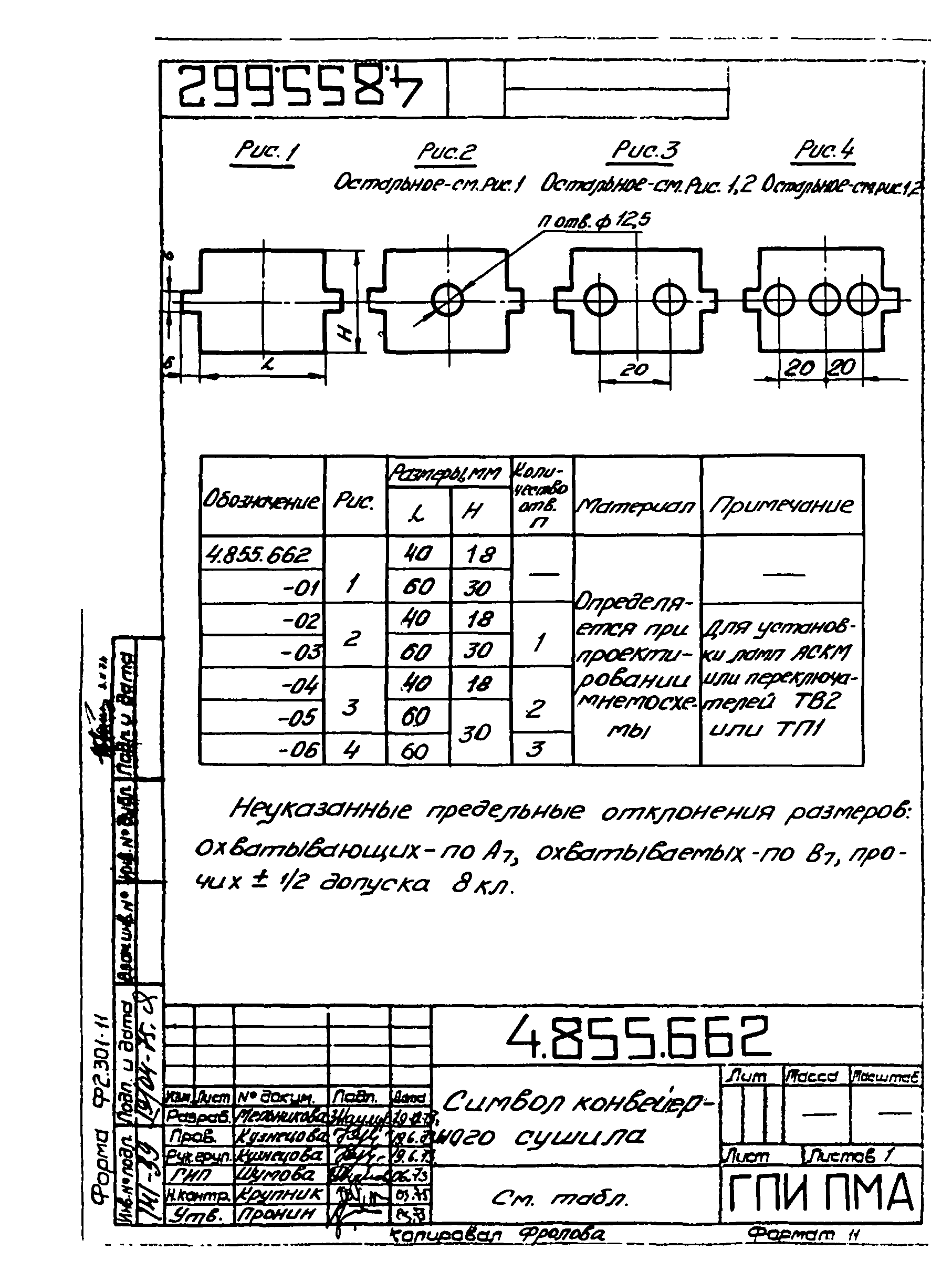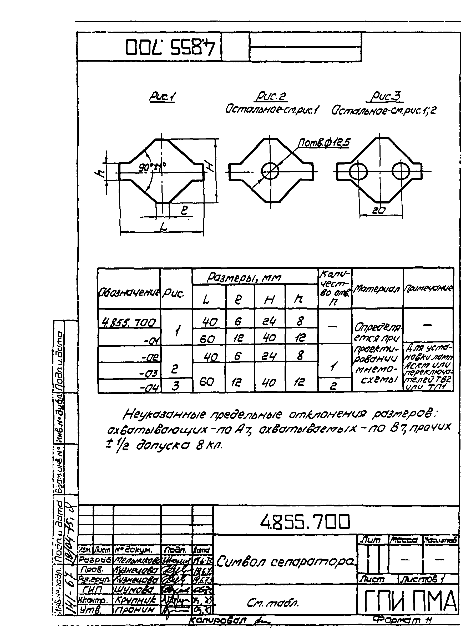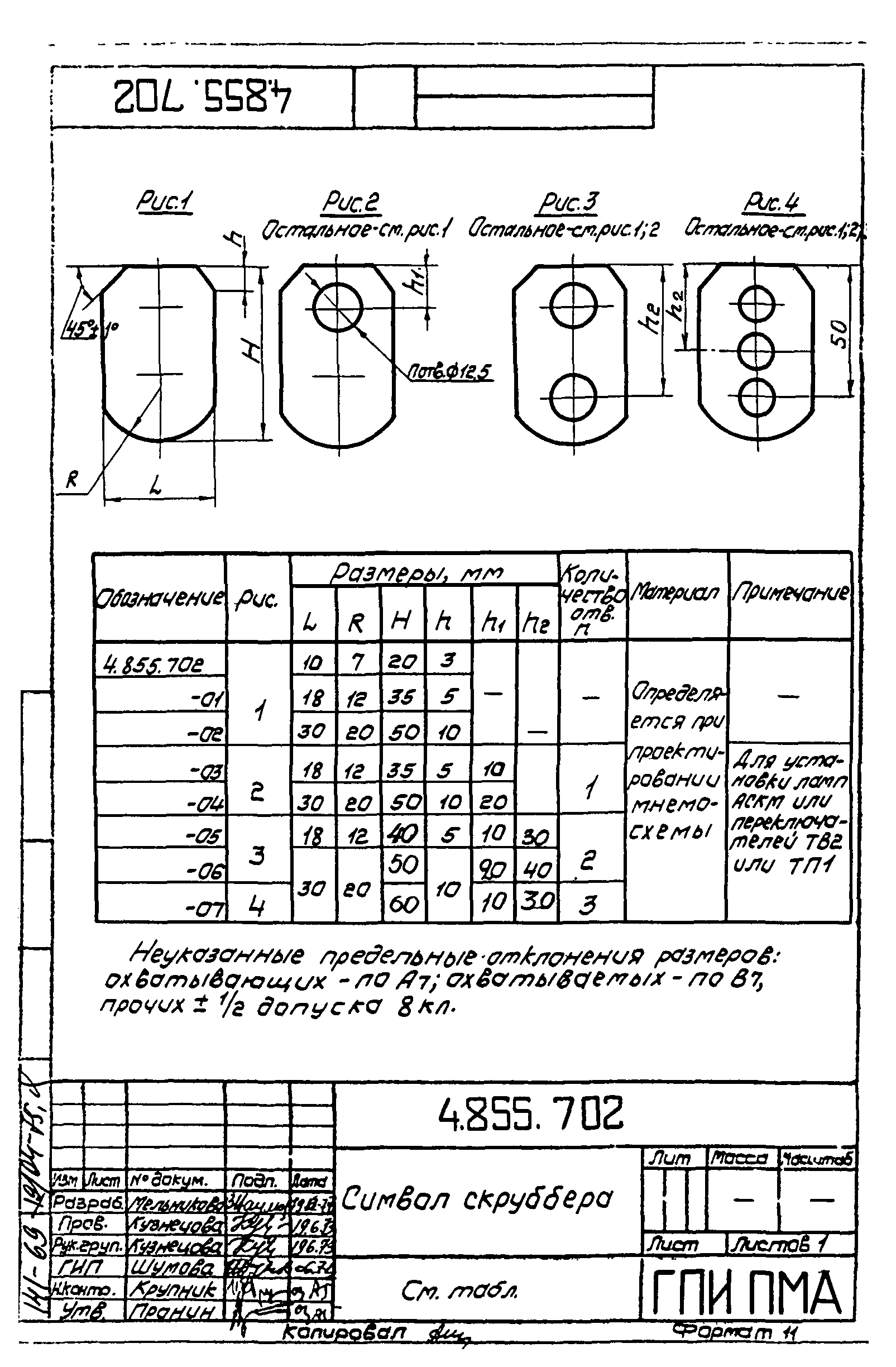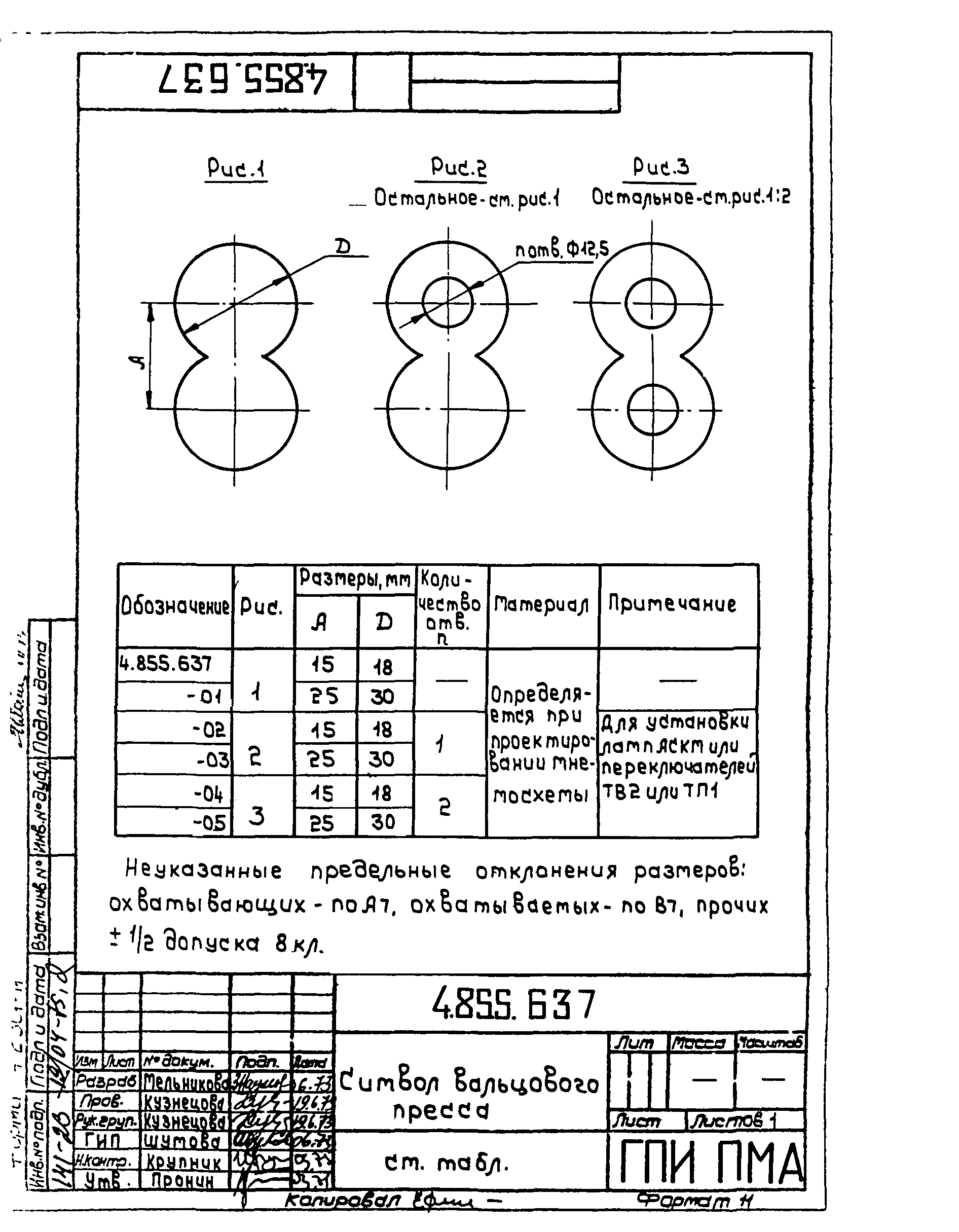 Символы элементов мнемосхем щитов и пультов управления. Рабочая документация| Статус: | действует | | Название рус.: | Символы элементов мнемосхем щитов и пультов управления. Рабочая документация | | Дата добавления в базу: | 01.09.2013 | | Дата актуализации: | 01.01.2021 | | Оглавление: | 4.855.600 Символ вентиля углового 4.855.601 Символ вентиля, прямого клапана, задвижки 4.855.602 Символ вентиля трехходового, клапана 4.855.605 Символ замера температуры 4.855.606 Символ замера уровня 4.855.607 Символ затвора поворотного, шибера, заслонки 4.855.610 Символ отбора давления 4.855.611 Символ отбора пробы 4.855.614 Символ поворота 4.855.615 Символ потока, трубопровода, транспортера, шнека 4.855.618 Символ сужающего устройства 4.855.619 Символ стрелки 4.855.622 Символ подшипника 4.855.625 Символ автоклава 4.855.626 Символ агломерационной машины 4.855.627 Символ аппарата с мешалкой 4.855.630 Символ бака емкости (вертикальной или горизонтальной) резервуара, сборника, отстойника, колонны и др. 4.855.631 Символ бассейна 4.855.632 Символ бункера сдвоенного 4.855.633 Символ бункера 4.855.636 Символ вагоноопрокидователя 4.855.637 Символ вальцового пресса 4.855.638 Символ весоизмерителя, весов 4.855.639 Символ вентилятора, дымососа, воздуходувки 4.855.640 Символ вертикального катализатора, дозатора 4.855.641 Символ воронки, емкости промежуточной 4.855.644 Символ гаража размораживания (элемент 4.855.645 Символ газгольдера мокрого, башни окислительной, эвапоратора 4.855.646 Символ газгольдера, ресивера, баллона, резервуара воздушного 4.855.647 Символ глинорезательной машины 4.855.648 Символ гранулятора 4.855.649 Символ градирни 4.855.650 Символ грохота 4.855.653 Символ деаэратора 4.855.654 Символ дробилки 4.855.657 Символ емкости шаровой 4.855.659 Символ железнодорожного вагона, вагонетки 4.855.661 Символ компрессора 4.855.662 Символ конвейерного сушила 4.855.663 Символ котла утилизатора 4.855.664 Символ котла варочного 4.855.665 Элемент символа колонны, элеватора 4.855.666 Символ контактора 4.855.667 Символ конденсатора холодильника, теплообменника, подогревателя, кипятильника, испарителя 4.855.670 Символ мельницы 4.855.671 Символ мешалки 4.855.672 Символ мерника 4.855.673 Символ моечной машины 4.855.674 Символ монжуса 4.855.677 Символ насоса шестеренчатого 4.855.678 Символ насоса центробежного 4.855.679 Символ насоса поршневого 4.855.680 Символ нефтяного резервуара 4.855.683 Символ обжиговой машины 4.855.684 Символ отсадочной машины 4.855.685 Символ печи обжига в кипящем слое 4.855.686 Символ печи 4.855.687 Символ перколятора 4.855.688 Символ питателя 4.855.689 Символ плавильника 4.855.690 Символ пресса 4.855.693 Символ реактора 4.855.694 Символ регенератора катализатора 4.855.695 Символ рекуператора 4.855.696 Символ ротаметра 4.855.699 Символ сгустителя, вакуумфильтр 4.855.700 Символ сепаратора 4.855.701 Символ скребкового кристаллизатора 4.855.702 Символ скруббера 4.855.703 Символ склада 4.855.704 Символ смесителя, скомкователя, сортировки 4.855.705 Символ сушила барабанного 4.855.706 Символ топки под давлением 4.855.707 Символ турбины 4.855.709 Символ фильтра 4.855.711 Символ флотационной машины 4.855.713 Символ холодильника кокса 4.855.715 Символ центрифуги 4.855.716 Символ цистерны 4.855.717 Символ циклона, водоотделителя, воздухоподогревателя 4.855.719 Символ шибера перекидного 4.855.721 Символ эжектора 4.855.722 Символ электродвигателя, генератора 4.855.723 Символ элеватора | | Разработан: | ГПКИ Проектмонтажавтоматика