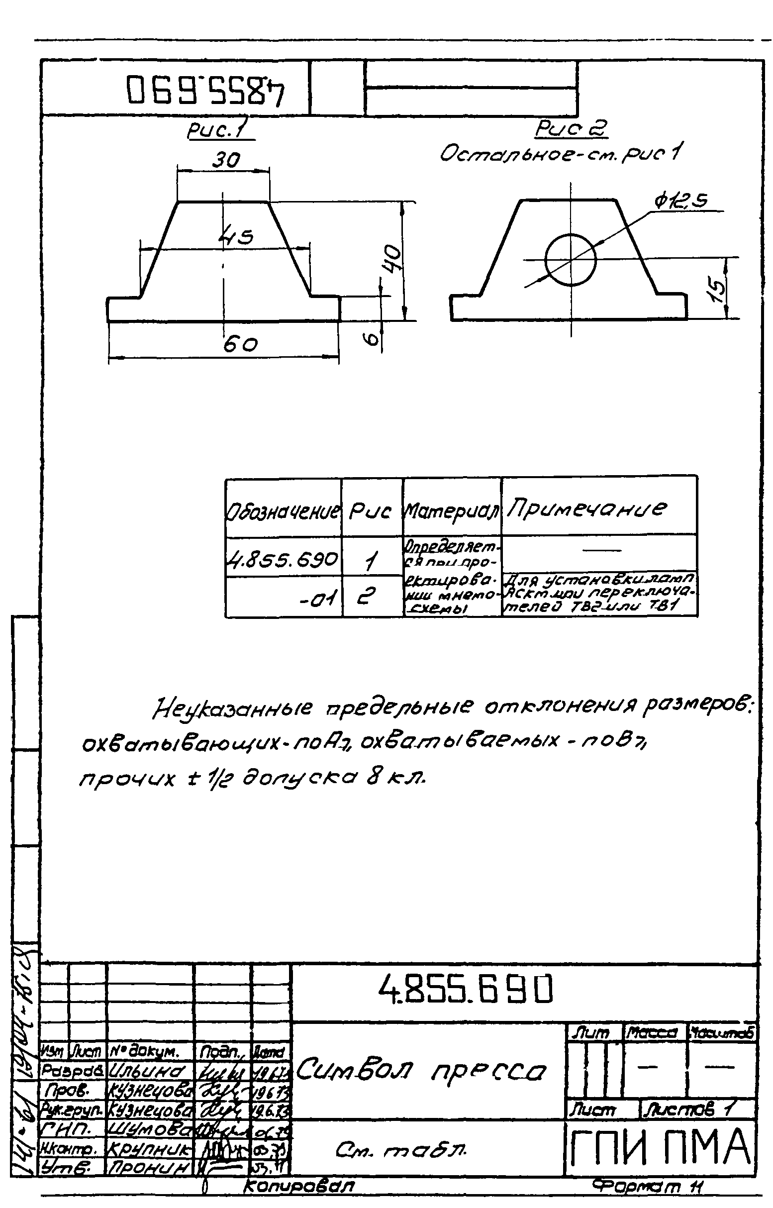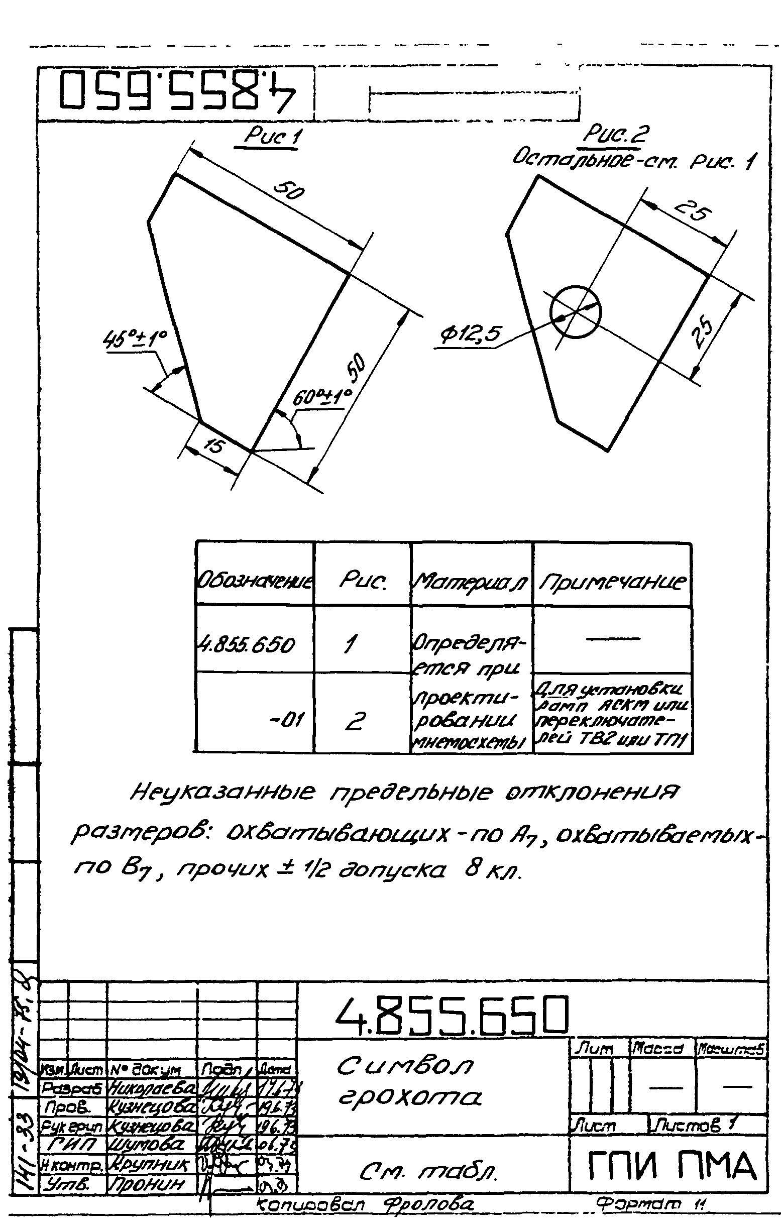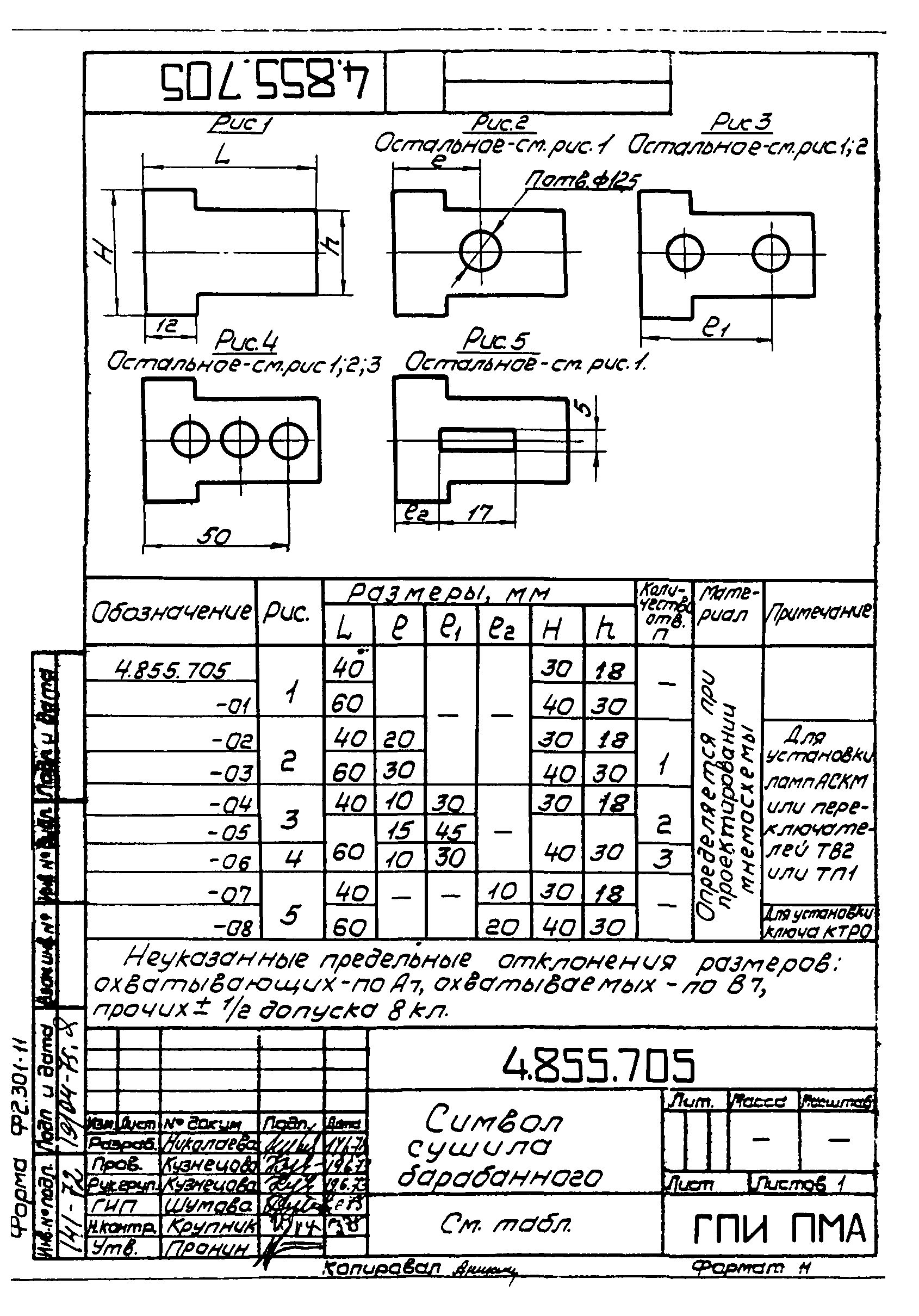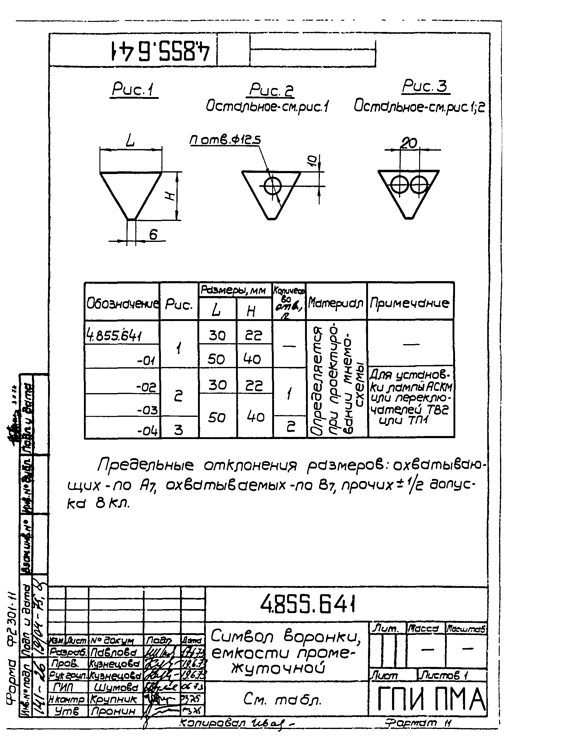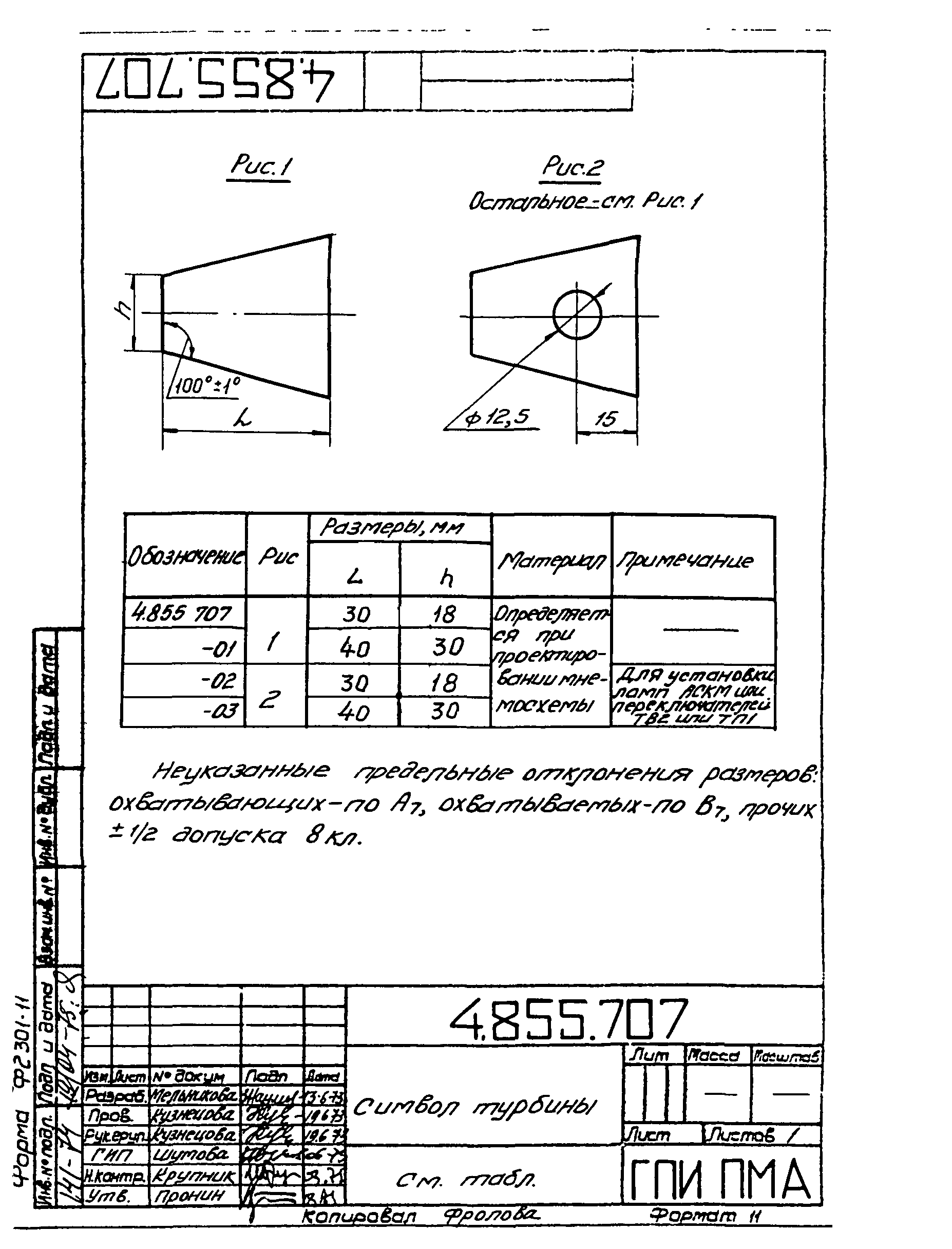 Символы элементов мнемосхем щитов и пультов управления. Рабочая документация| Статус: | действует | | Название рус.: | Символы элементов мнемосхем щитов и пультов управления. Рабочая документация | | Дата добавления в базу: | 01.09.2013 | | Дата актуализации: | 01.01.2021 | | Оглавление: | 4.855.600 Символ вентиля углового 4.855.601 Символ вентиля, прямого клапана, задвижки 4.855.602 Символ вентиля трехходового, клапана 4.855.605 Символ замера температуры 4.855.606 Символ замера уровня 4.855.607 Символ затвора поворотного, шибера, заслонки 4.855.610 Символ отбора давления 4.855.611 Символ отбора пробы 4.855.614 Символ поворота 4.855.615 Символ потока, трубопровода, транспортера, шнека 4.855.618 Символ сужающего устройства 4.855.619 Символ стрелки 4.855.622 Символ подшипника 4.855.625 Символ автоклава 4.855.626 Символ агломерационной машины 4.855.627 Символ аппарата с мешалкой 4.855.630 Символ бака емкости (вертикальной или горизонтальной) резервуара, сборника, отстойника, колонны и др. 4.855.631 Символ бассейна 4.855.632 Символ бункера сдвоенного 4.855.633 Символ бункера 4.855.636 Символ вагоноопрокидователя 4.855.637 Символ вальцового пресса 4.855.638 Символ весоизмерителя, весов 4.855.639 Символ вентилятора, дымососа, воздуходувки 4.855.640 Символ вертикального катализатора, дозатора 4.855.641 Символ воронки, емкости промежуточной 4.855.644 Символ гаража размораживания (элемент 4.855.645 Символ газгольдера мокрого, башни окислительной, эвапоратора 4.855.646 Символ газгольдера, ресивера, баллона, резервуара воздушного 4.855.647 Символ глинорезательной машины 4.855.648 Символ гранулятора 4.855.649 Символ градирни 4.855.650 Символ грохота 4.855.653 Символ деаэратора 4.855.654 Символ дробилки 4.855.657 Символ емкости шаровой 4.855.659 Символ железнодорожного вагона, вагонетки 4.855.661 Символ компрессора 4.855.662 Символ конвейерного сушила 4.855.663 Символ котла утилизатора 4.855.664 Символ котла варочного 4.855.665 Элемент символа колонны, элеватора 4.855.666 Символ контактора 4.855.667 Символ конденсатора холодильника, теплообменника, подогревателя, кипятильника, испарителя 4.855.670 Символ мельницы 4.855.671 Символ мешалки 4.855.672 Символ мерника 4.855.673 Символ моечной машины 4.855.674 Символ монжуса 4.855.677 Символ насоса шестеренчатого 4.855.678 Символ насоса центробежного 4.855.679 Символ насоса поршневого 4.855.680 Символ нефтяного резервуара 4.855.683 Символ обжиговой машины 4.855.684 Символ отсадочной машины 4.855.685 Символ печи обжига в кипящем слое 4.855.686 Символ печи 4.855.687 Символ перколятора 4.855.688 Символ питателя 4.855.689 Символ плавильника 4.855.690 Символ пресса 4.855.693 Символ реактора 4.855.694 Символ регенератора катализатора 4.855.695 Символ рекуператора 4.855.696 Символ ротаметра 4.855.699 Символ сгустителя, вакуумфильтр 4.855.700 Символ сепаратора 4.855.701 Символ скребкового кристаллизатора 4.855.702 Символ скруббера 4.855.703 Символ склада 4.855.704 Символ смесителя, скомкователя, сортировки 4.855.705 Символ сушила барабанного 4.855.706 Символ топки под давлением 4.855.707 Символ турбины 4.855.709 Символ фильтра 4.855.711 Символ флотационной машины 4.855.713 Символ холодильника кокса 4.855.715 Символ центрифуги 4.855.716 Символ цистерны 4.855.717 Символ циклона, водоотделителя, воздухоподогревателя 4.855.719 Символ шибера перекидного 4.855.721 Символ эжектора 4.855.722 Символ электродвигателя, генератора 4.855.723 Символ элеватора | | Разработан: | ГПКИ Проектмонтажавтоматика
