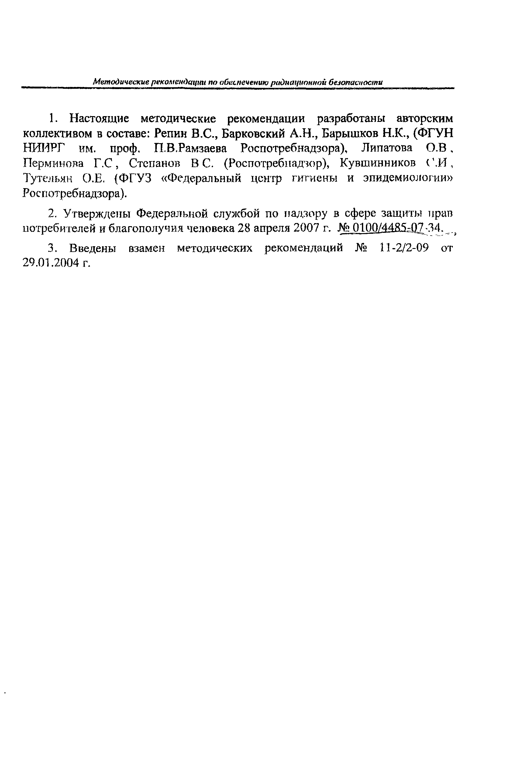 | Утверждён: | 28.04.2007 Федеральная служба по надзору в сфере защиты прав потребителей и благополучия человека (0100/4485-07-34)