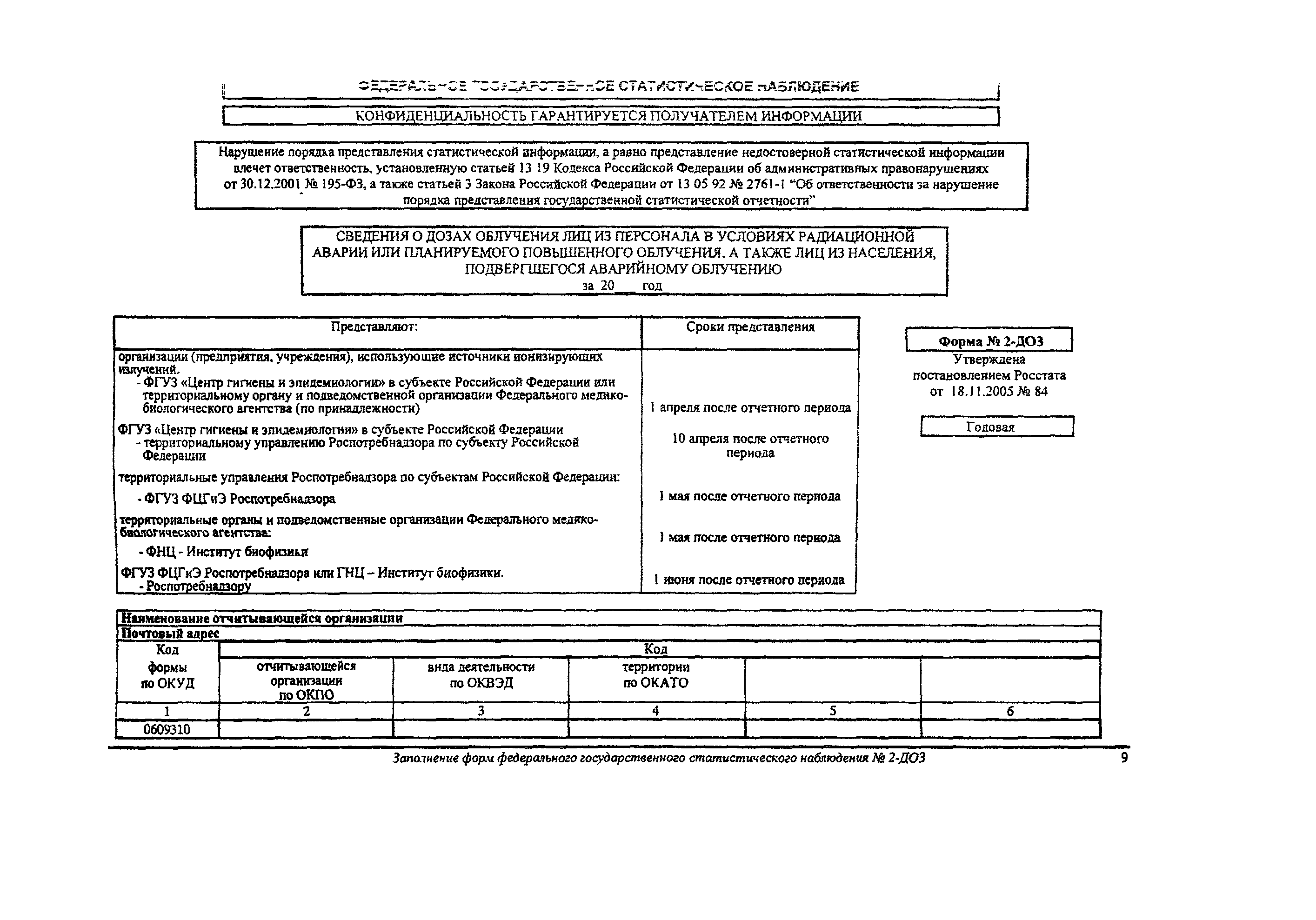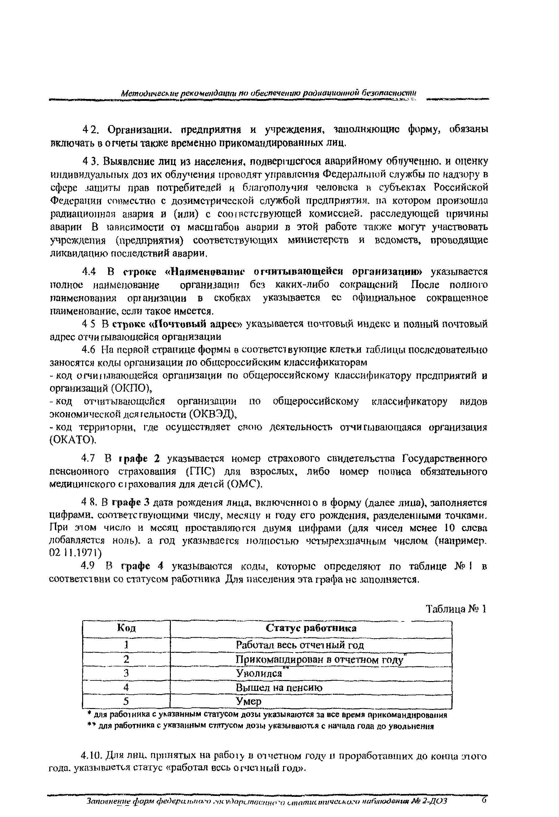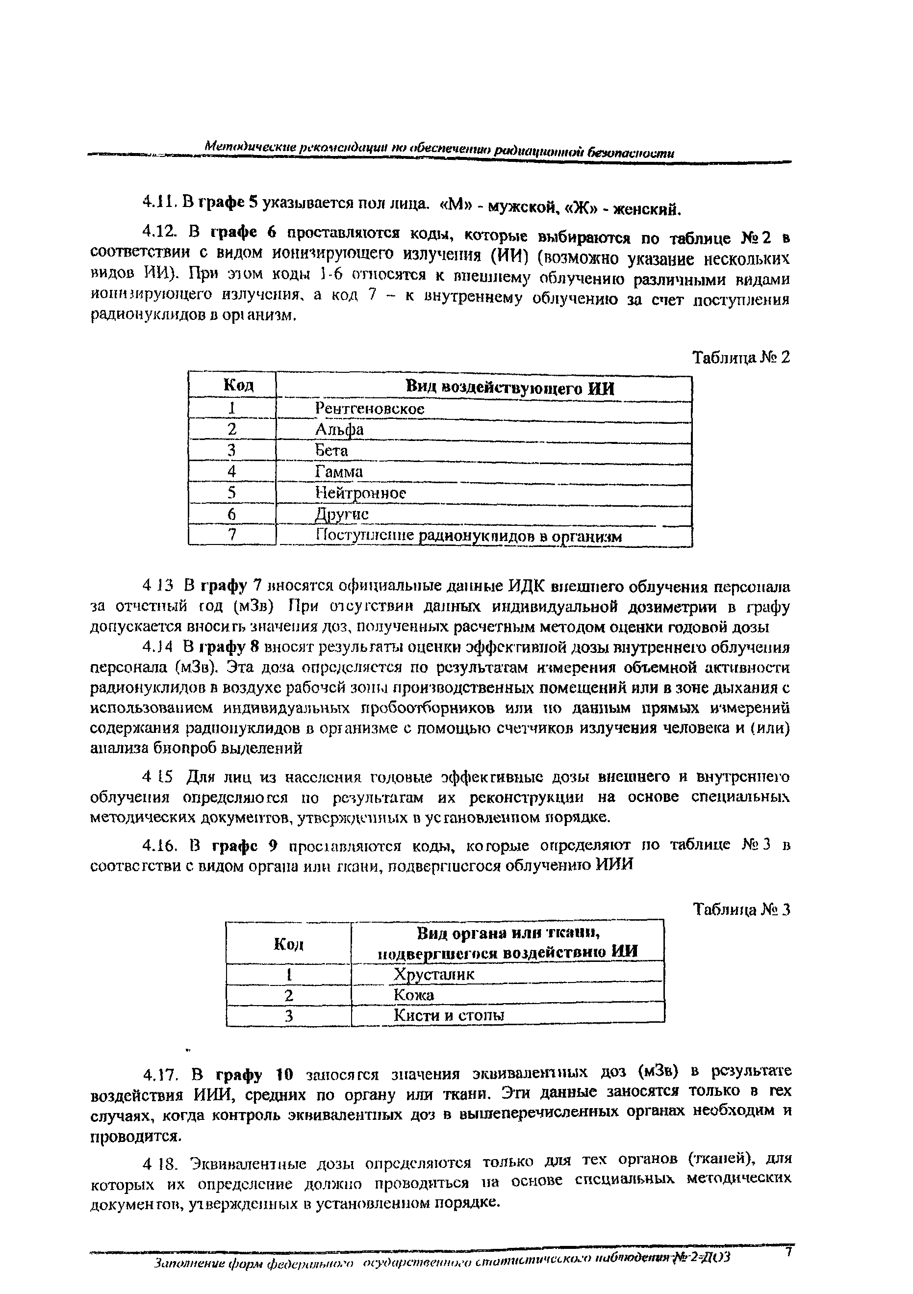 | Название рус.: | Заполнение форм федерального государственного статистического наблюдения N 2-ДОЗ. Методические рекомендации по обеспечению радиационной безопасности |
