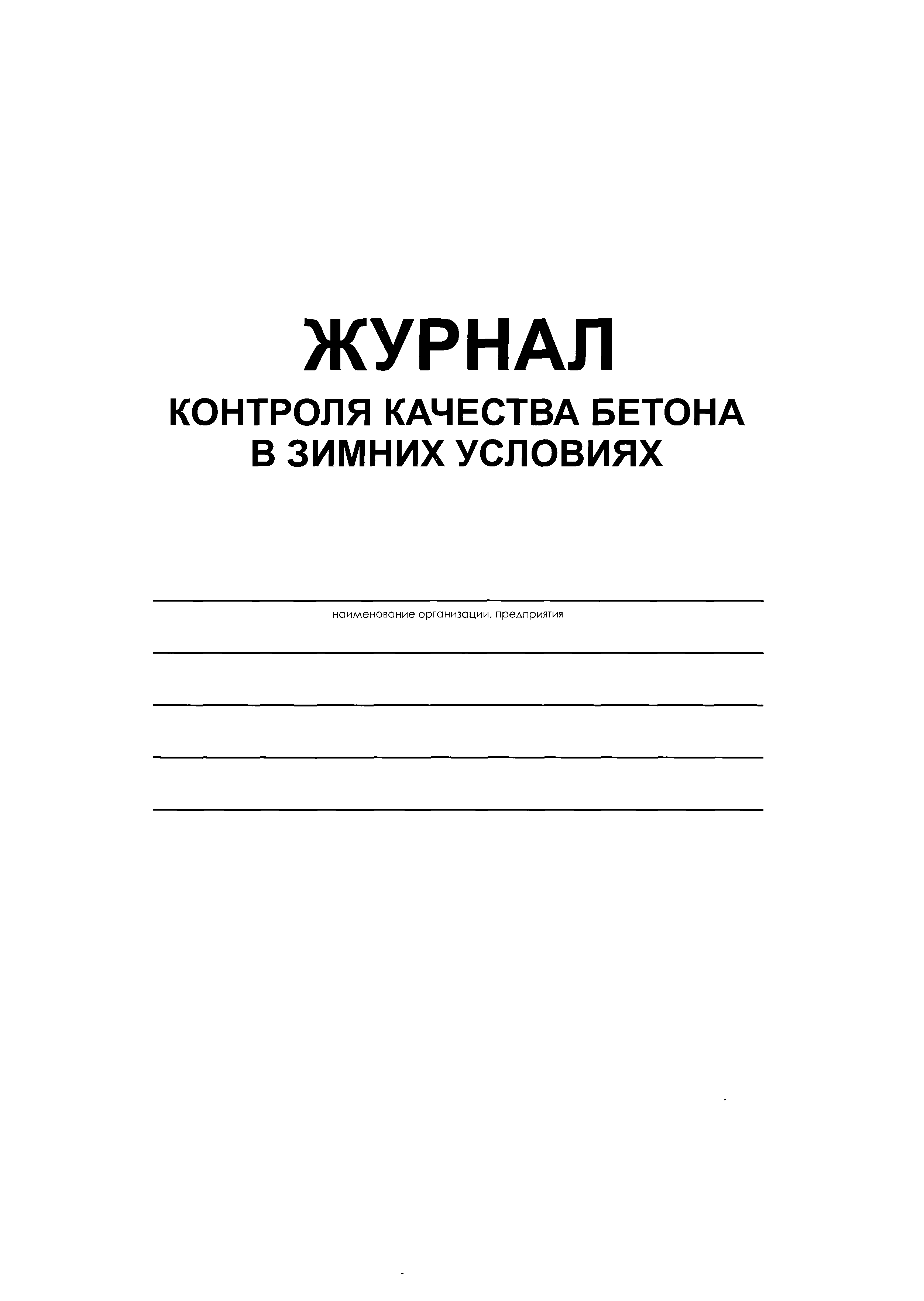 Журнал контроля качества бетона в зимних условиях| Статус: | действует | | Название рус.: | Журнал контроля качества бетона в зимних условиях | | Дата добавления в базу: | 01.09.2013 | | Дата актуализации: | 01.01.2021 |