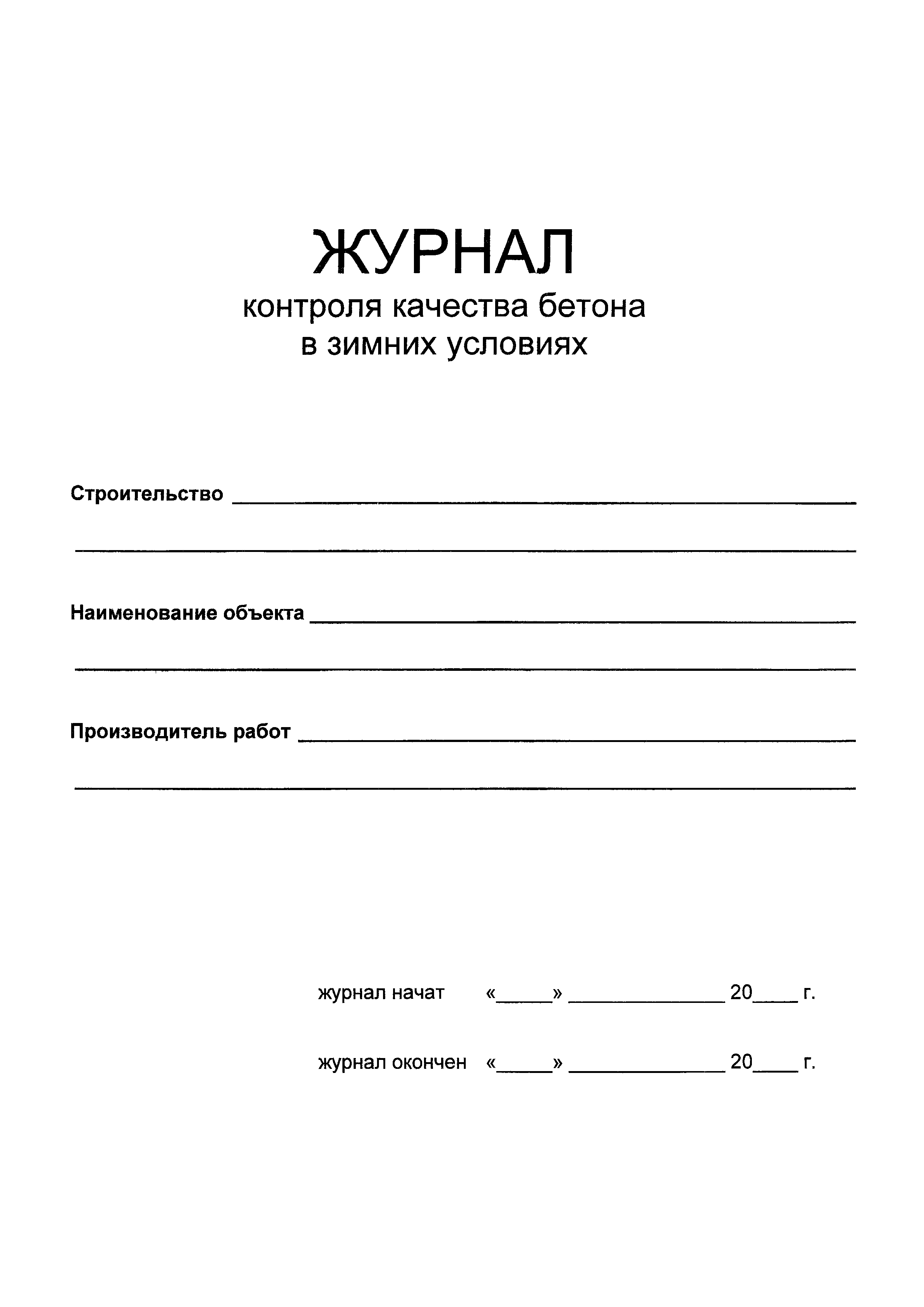 Скачать Журнал контроля качества бетона в зимних условияхДата актуализации: 01.01.2021