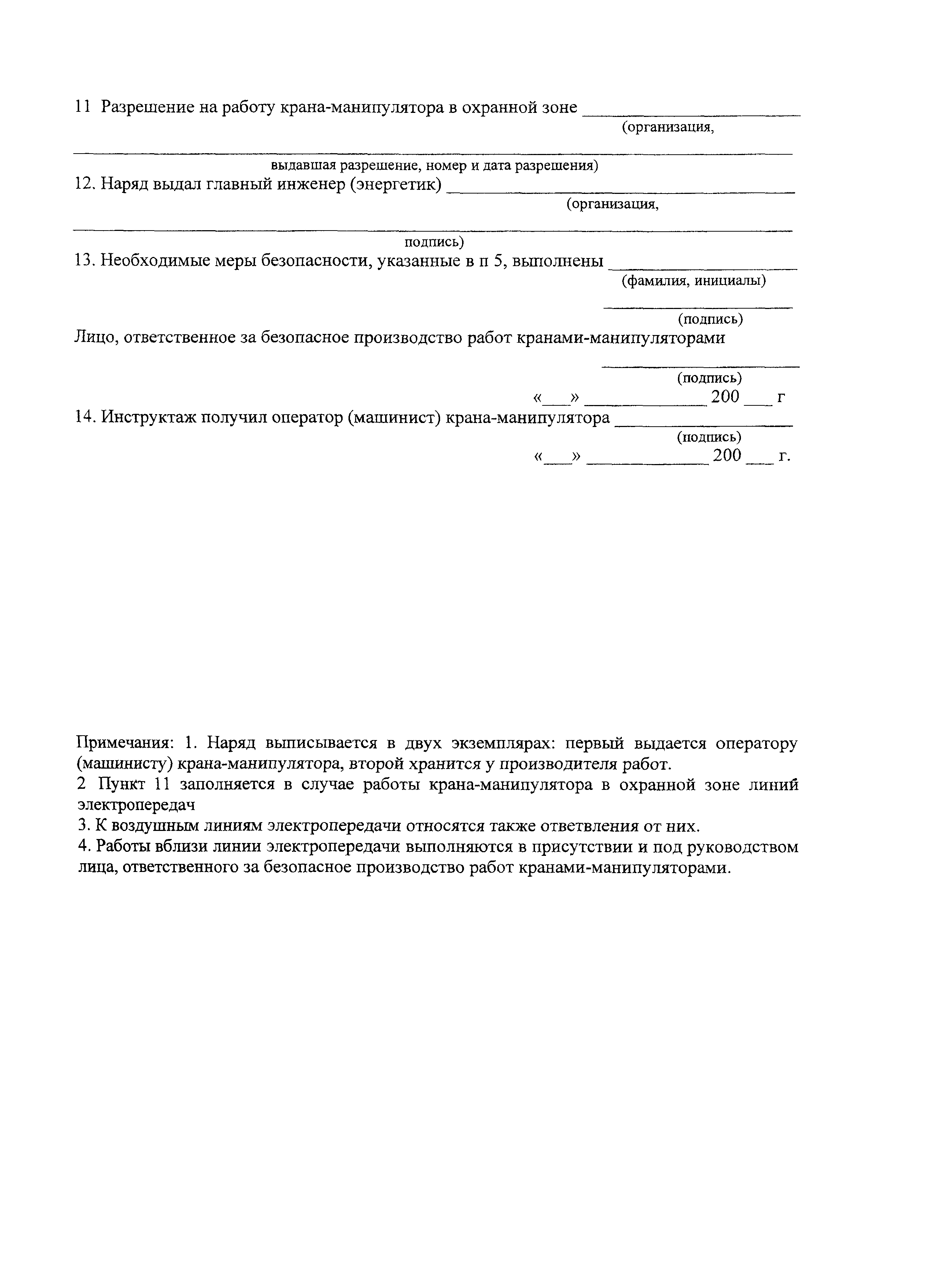 Скачать Наряд-допуск на производство работ грузоподъемным краном-манипулятором вблизи воздушной линии электропередачДата актуализации: 01.01.2021