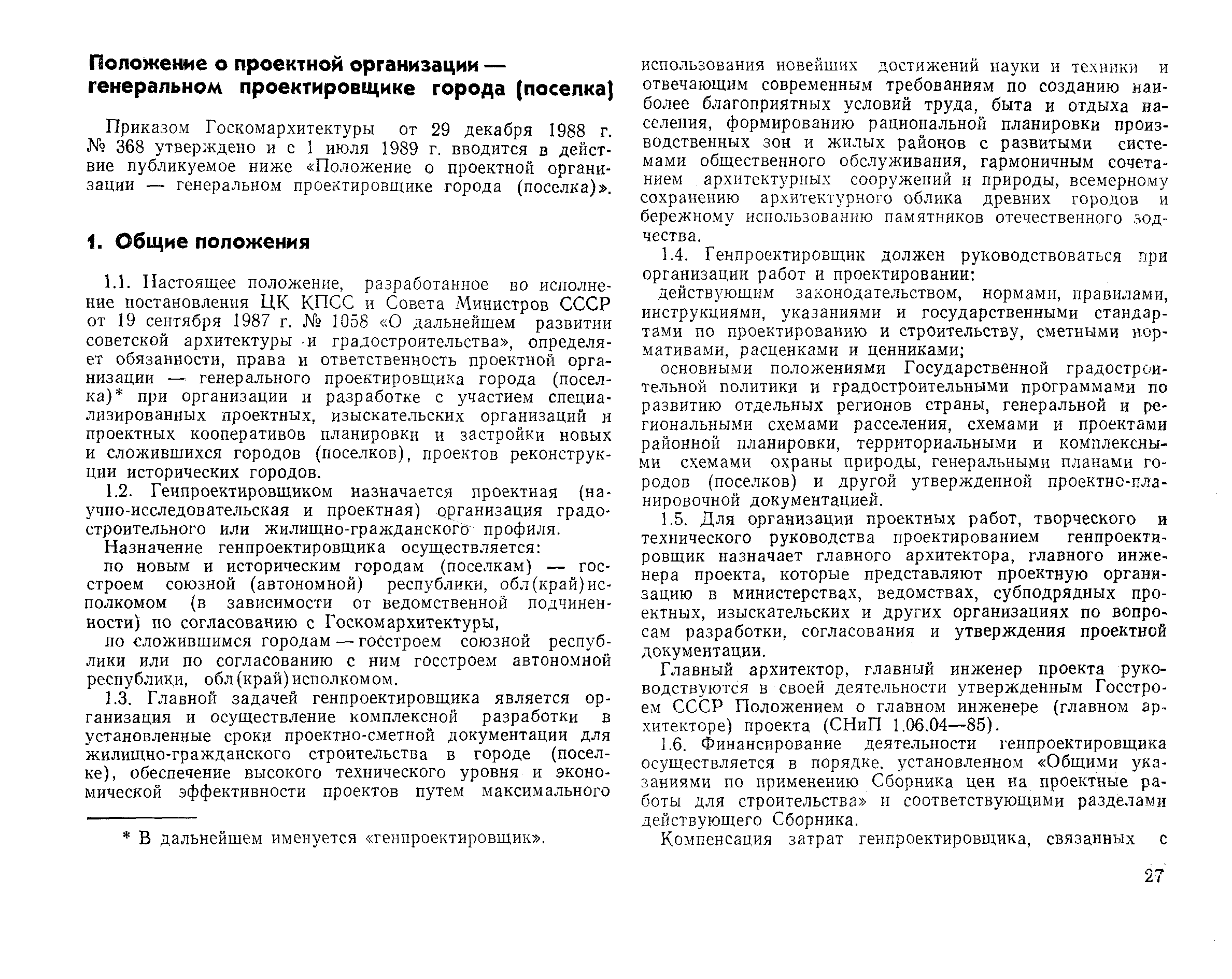 | Название рус.: | Положение о проектной организации - генеральном проектировщике города (поселка) |