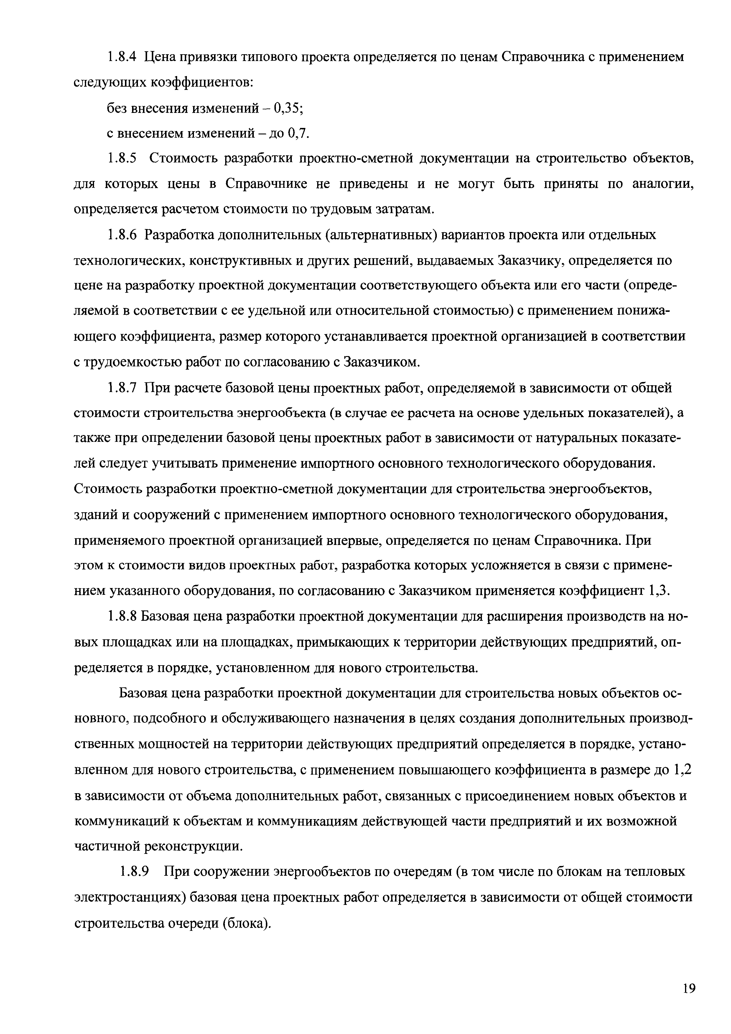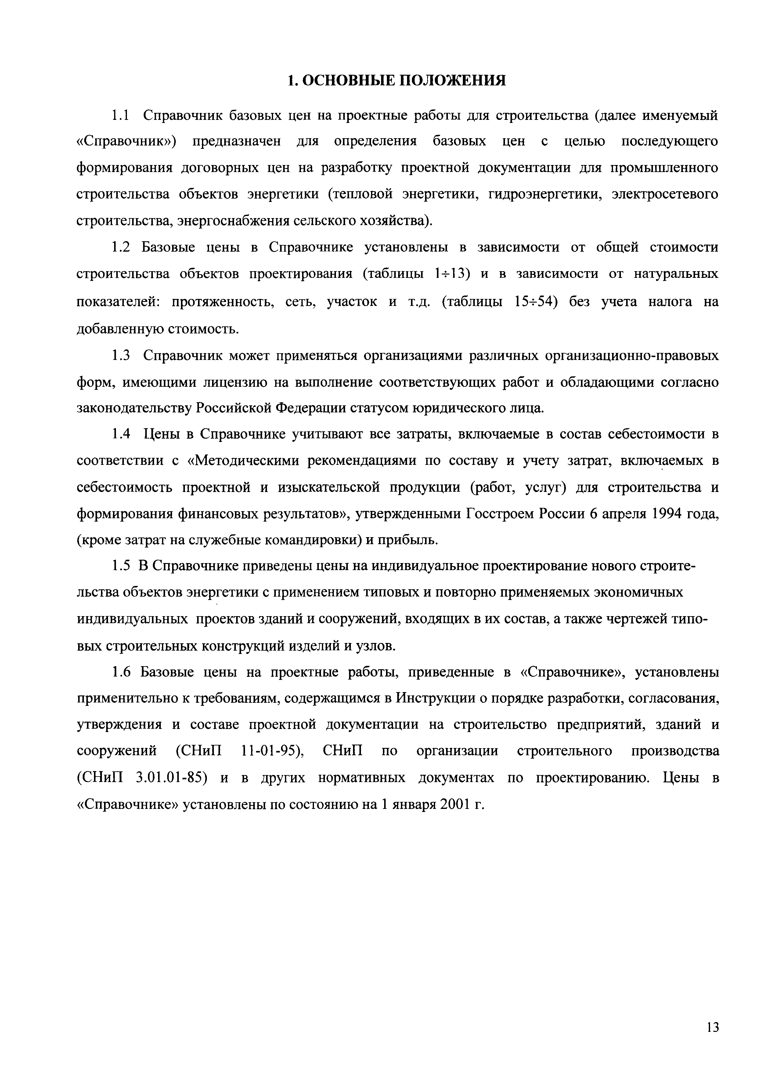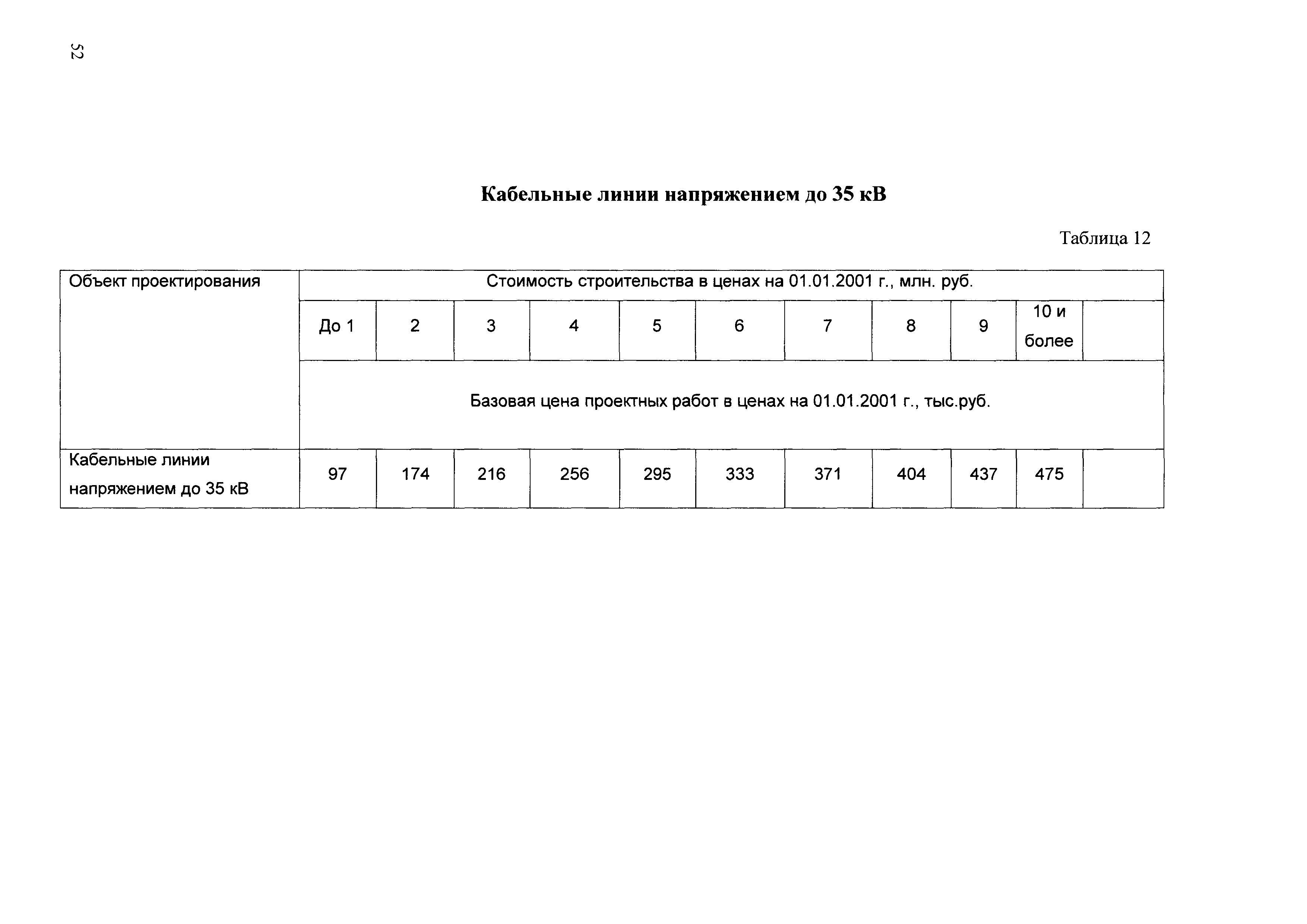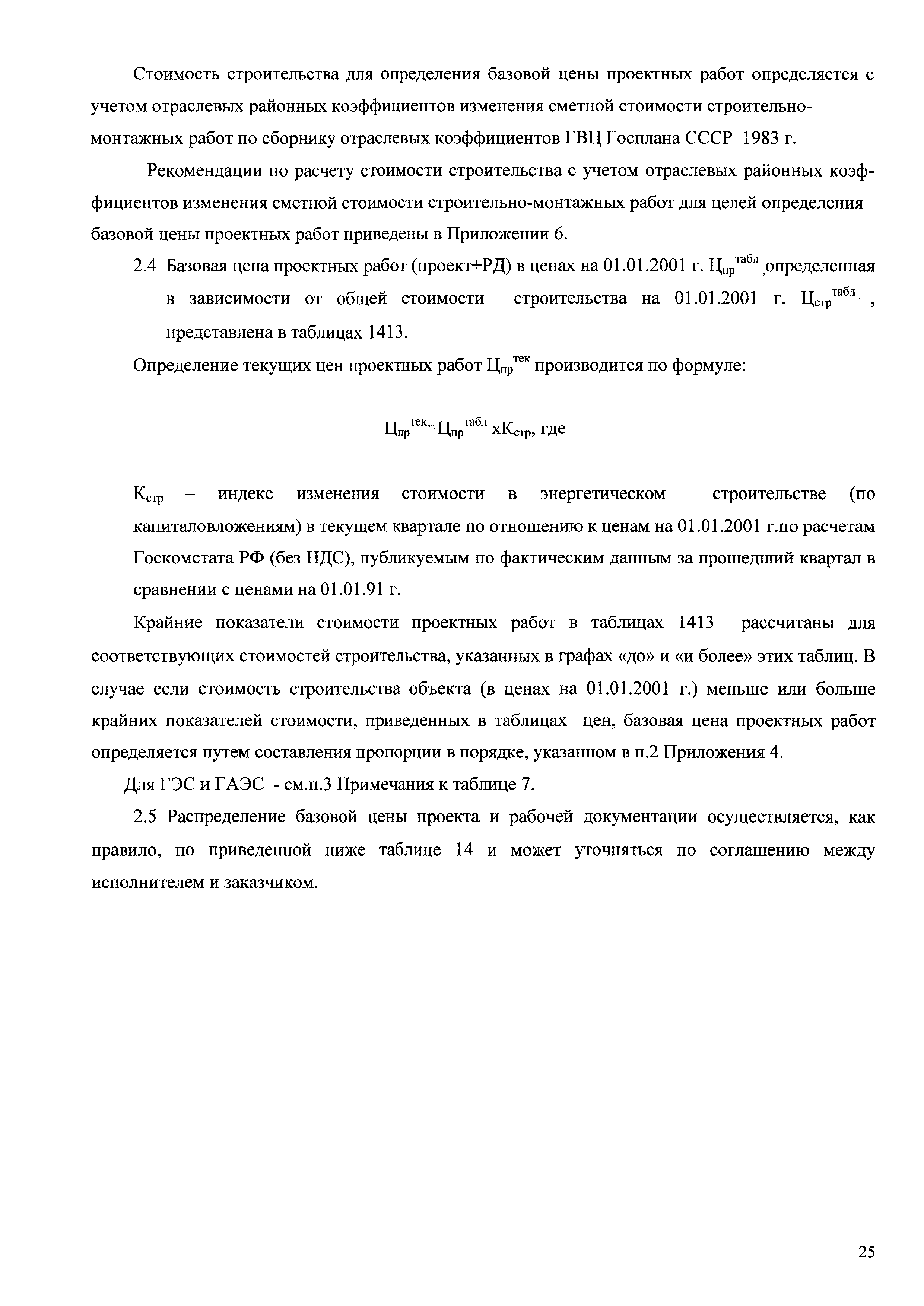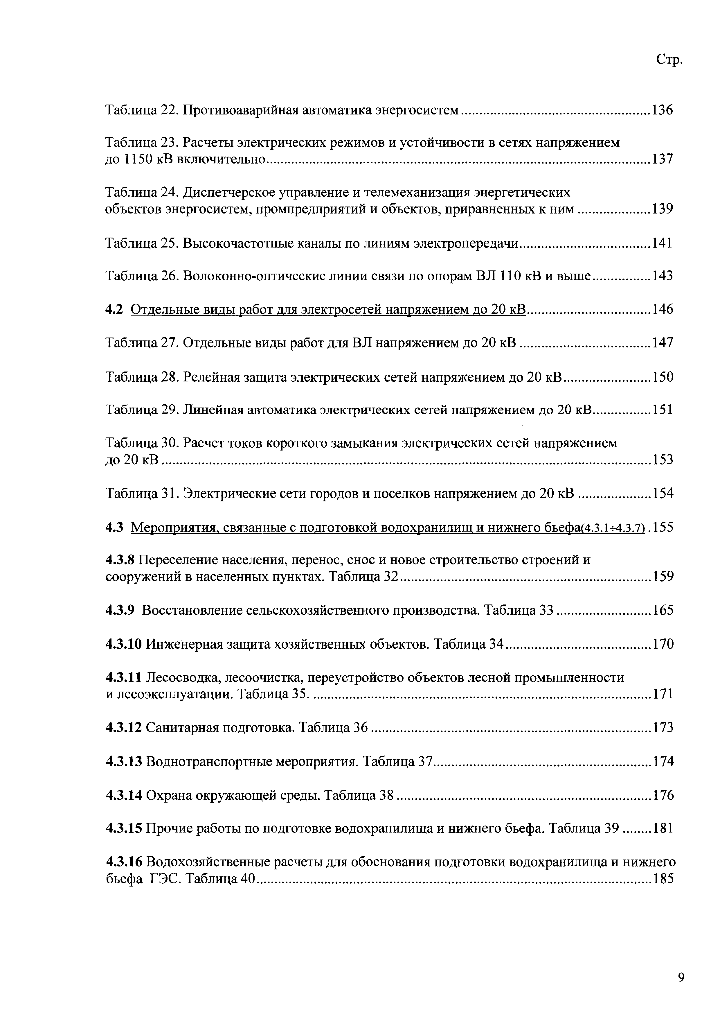 | Оглавление: | 1 Основные положения 2 Порядок определения базовой цены проектных работ 3 Таблицы базовых цен в зависимости от общей стоимости строительства 3.1 Тепловые электростанции, котельные, тепловые пункты 3.2 Гидроэлектростанции 3.3 Электросетевое строительство 3.4 Таблицы относительной стоимости разработки проектной документации 3.5 Таблицы удельной стоимости разработки рабочей документации по зданиям, сооружениям и видам работ 4 Таблицы базовых цен в зависимости от натуральных показателей 4.1 Отдельные виды работ для электросетей напряжением 35-1150 кВ 4.2 Отдельные виды работ для электросетей напряжением до 20 кВ 4.3 Метоприятия, связанные с подготовкой водохранилищ и нижнего бьефа 4.4 Сооружения инженерной защиты сельскохозяйственных низин, населенных пунктов, городов и промышленных предприятий 4.5 Буровзрывные работы в строительстве 4.6 Подземные сооружения энергетических объектов 4.7 Специальные работы в энергетическом строительстве |