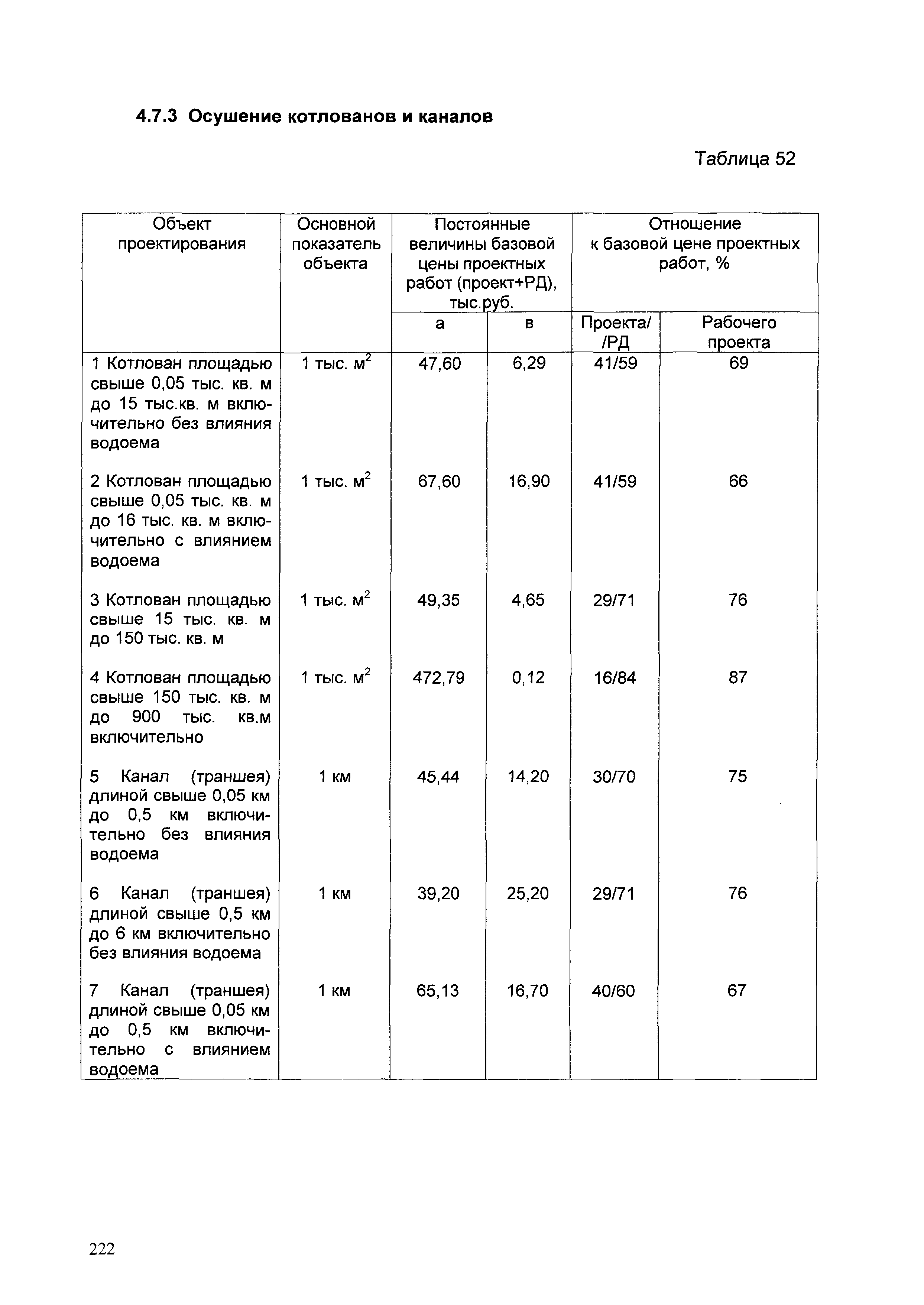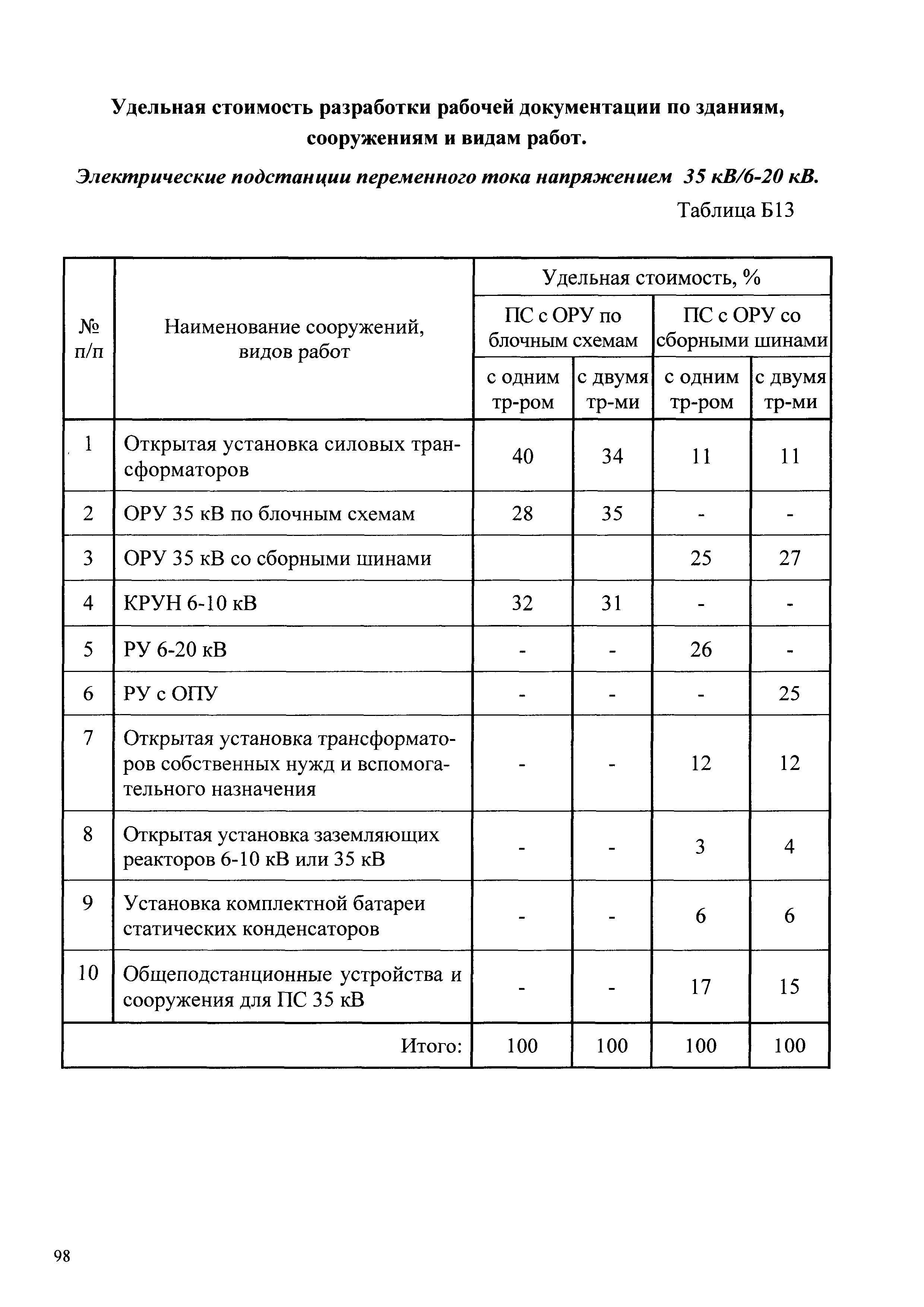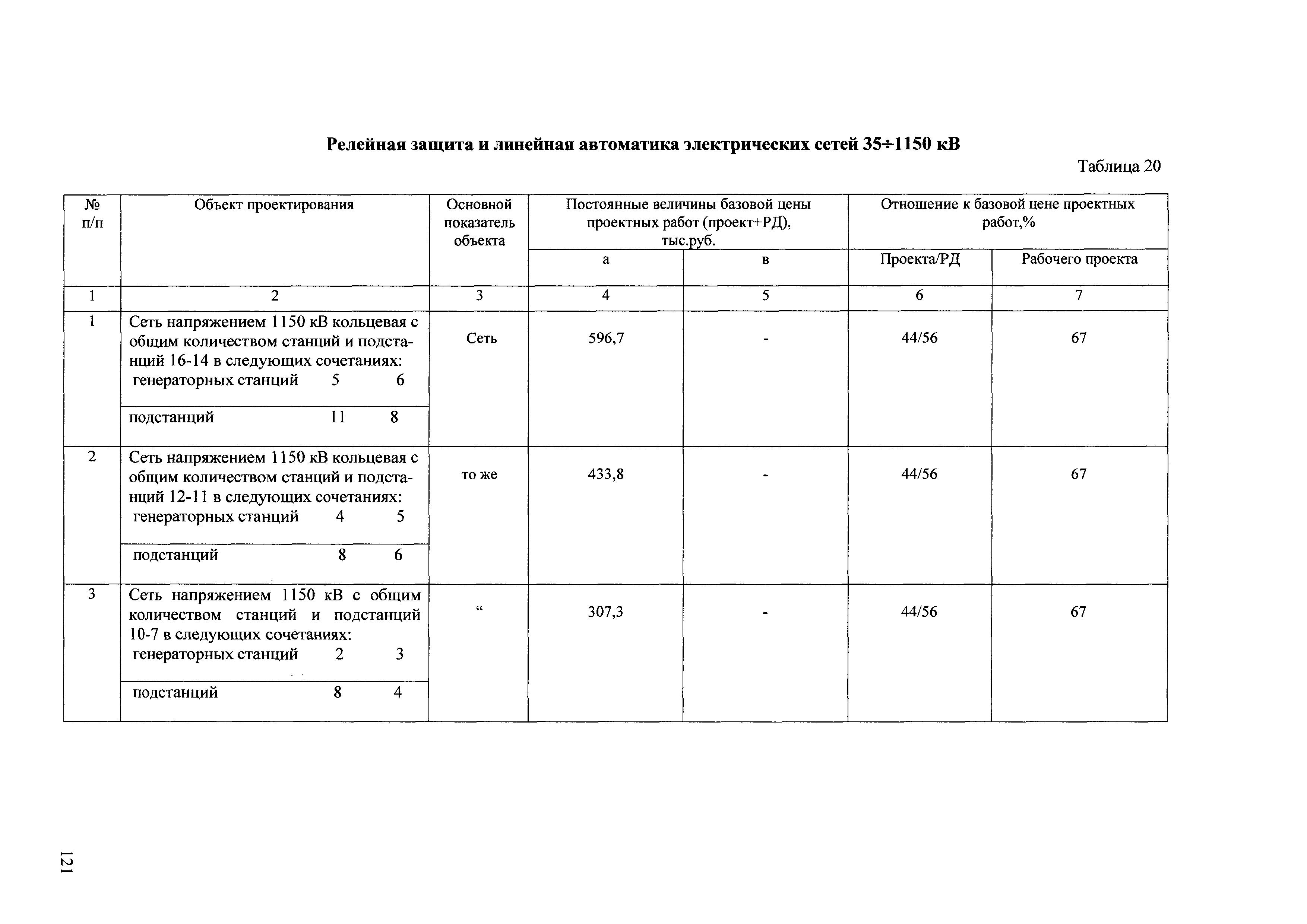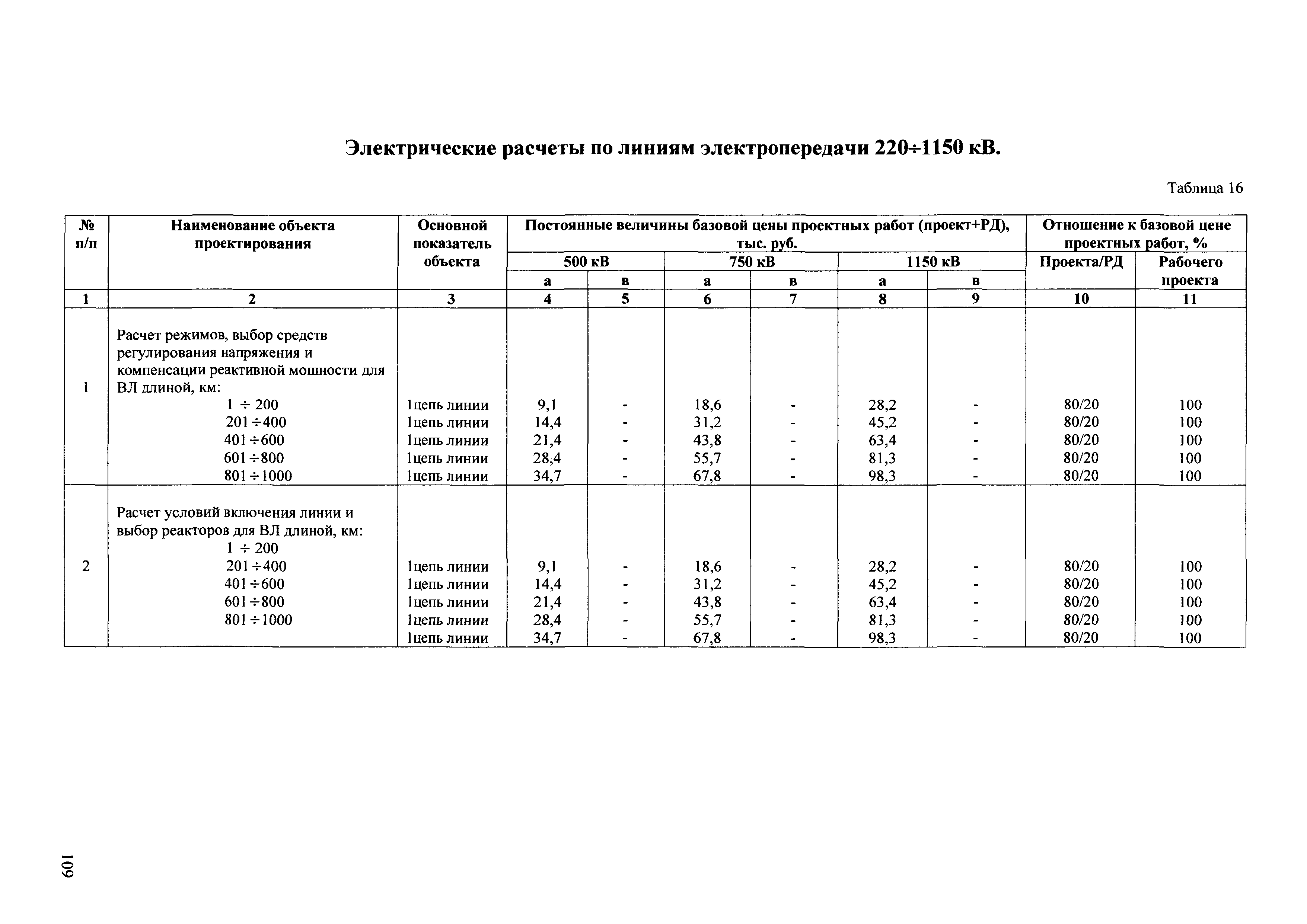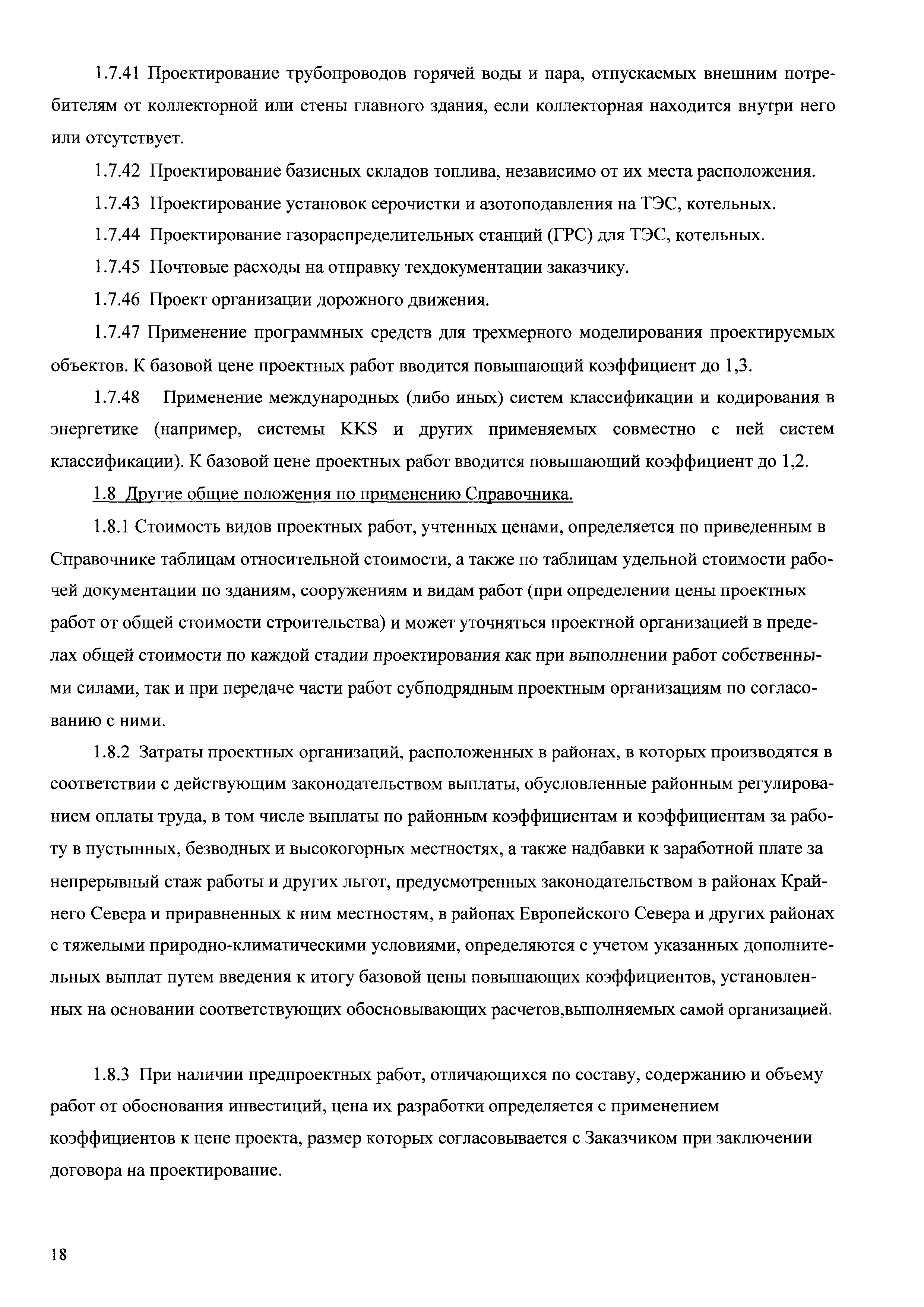 | Оглавление: | 1 Основные положения 2 Порядок определения базовой цены проектных работ 3 Таблицы базовых цен в зависимости от общей стоимости строительства 3.1 Тепловые электростанции, котельные, тепловые пункты 3.2 Гидроэлектростанции 3.3 Электросетевое строительство 3.4 Таблицы относительной стоимости разработки проектной документации 3.5 Таблицы удельной стоимости разработки рабочей документации по зданиям, сооружениям и видам работ 4 Таблицы базовых цен в зависимости от натуральных показателей 4.1 Отдельные виды работ для электросетей напряжением 35-1150 кВ 4.2 Отдельные виды работ для электросетей напряжением до 20 кВ 4.3 Метоприятия, связанные с подготовкой водохранилищ и нижнего бьефа 4.4 Сооружения инженерной защиты сельскохозяйственных низин, населенных пунктов, городов и промышленных предприятий 4.5 Буровзрывные работы в строительстве 4.6 Подземные сооружения энергетических объектов 4.7 Специальные работы в энергетическом строительстве |
