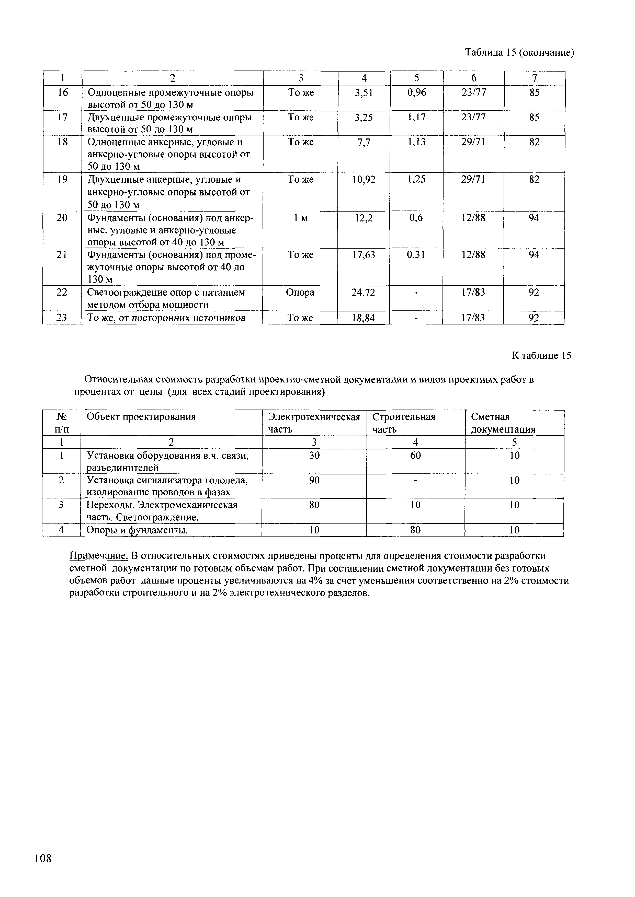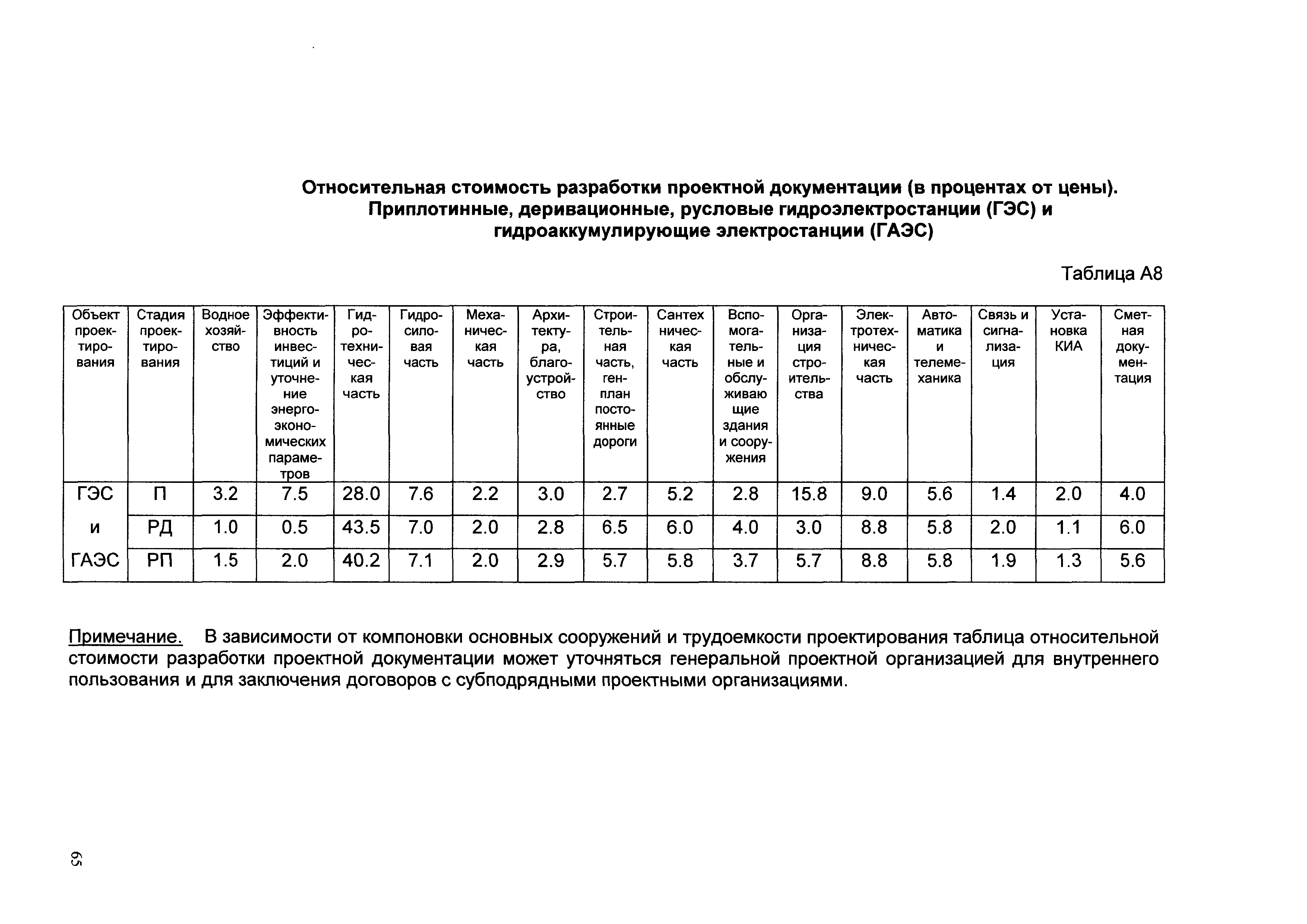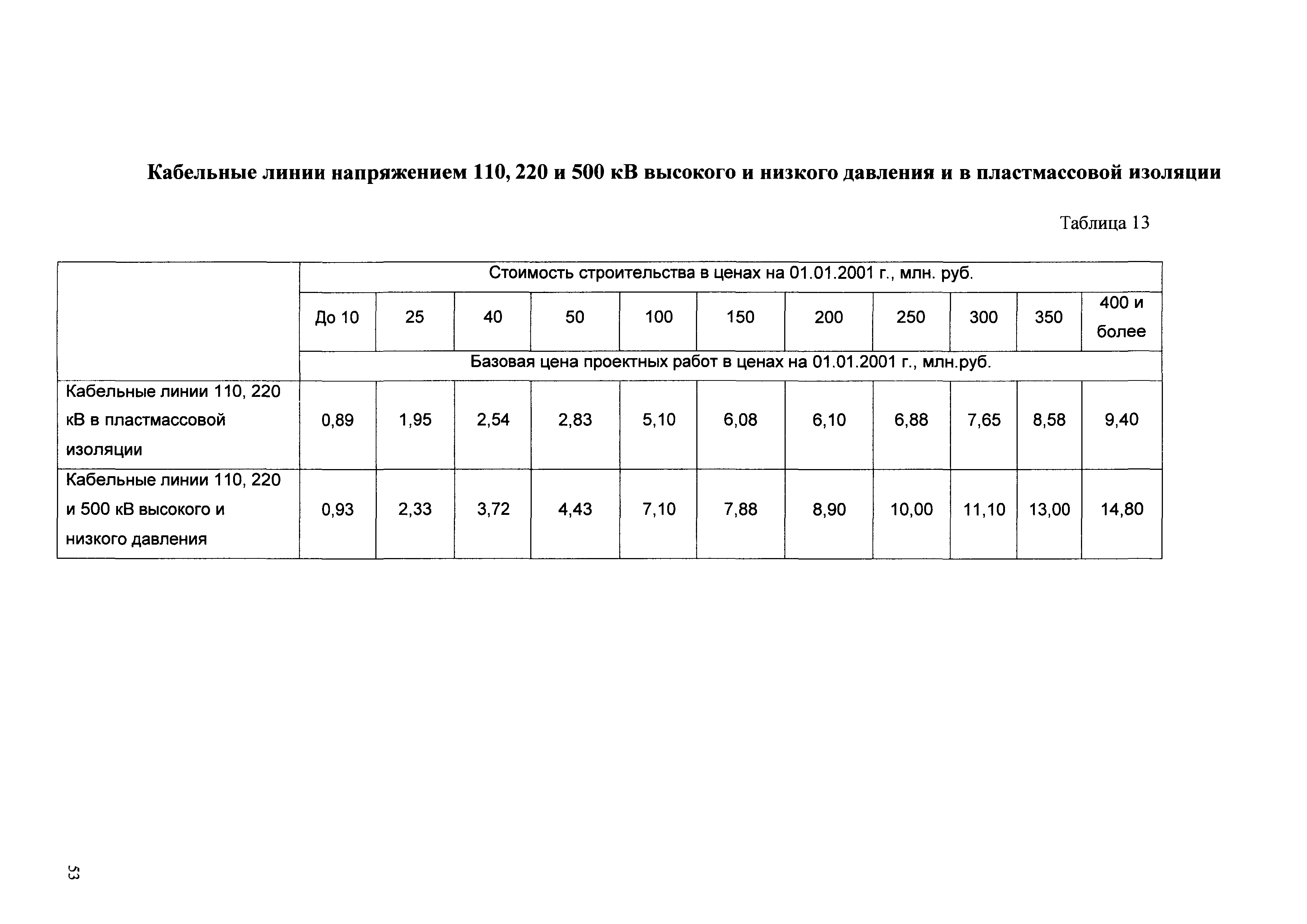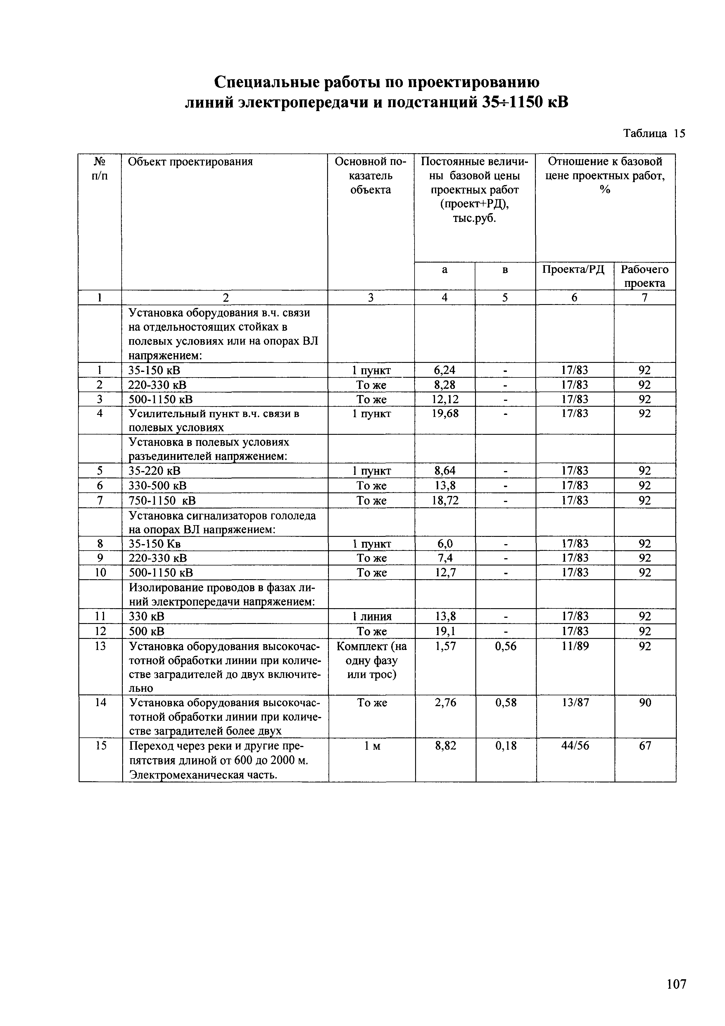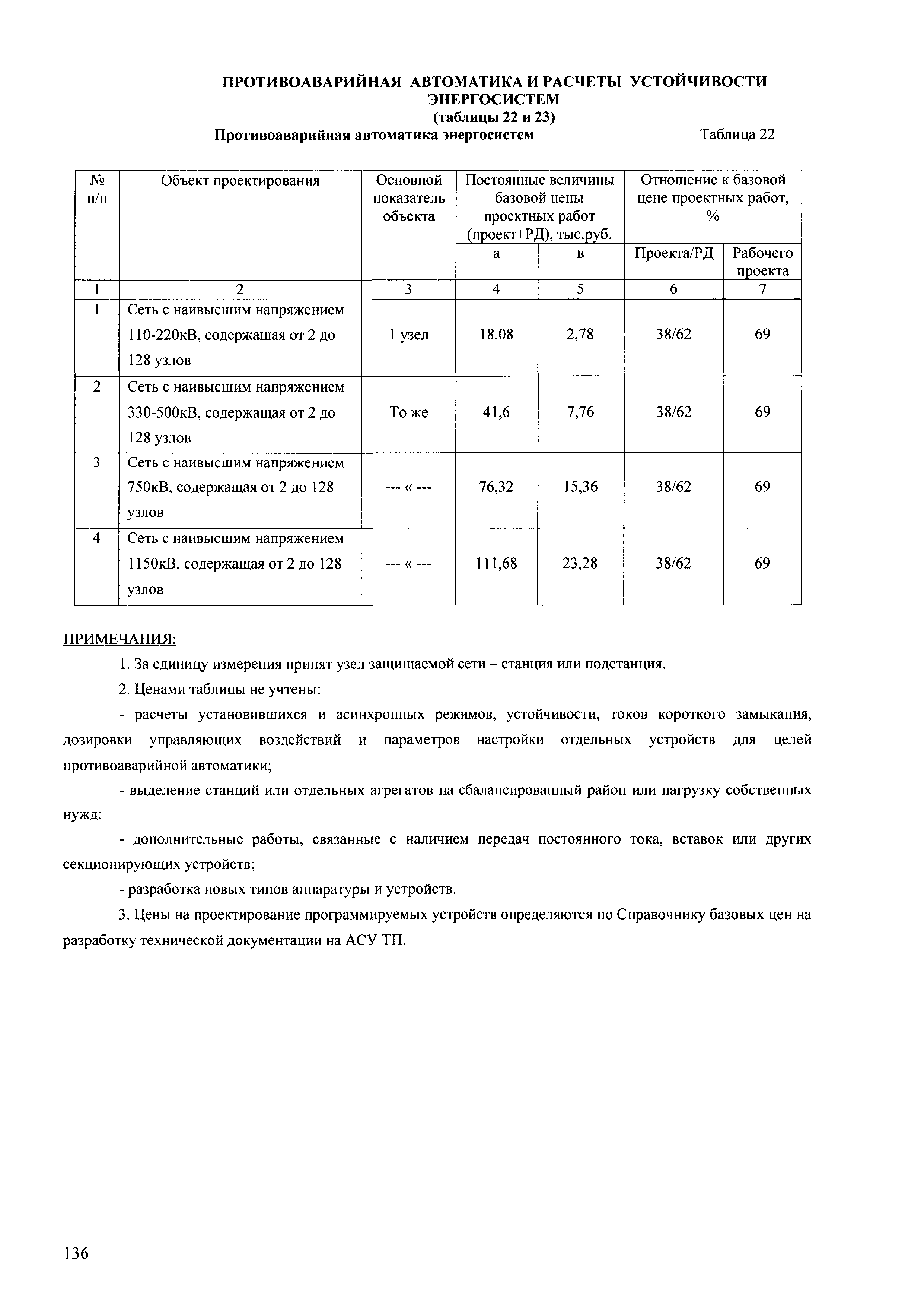 | Оглавление: | 1 Основные положения 2 Порядок определения базовой цены проектных работ 3 Таблицы базовых цен в зависимости от общей стоимости строительства 3.1 Тепловые электростанции, котельные, тепловые пункты 3.2 Гидроэлектростанции 3.3 Электросетевое строительство 3.4 Таблицы относительной стоимости разработки проектной документации 3.5 Таблицы удельной стоимости разработки рабочей документации по зданиям, сооружениям и видам работ 4 Таблицы базовых цен в зависимости от натуральных показателей 4.1 Отдельные виды работ для электросетей напряжением 35-1150 кВ 4.2 Отдельные виды работ для электросетей напряжением до 20 кВ 4.3 Метоприятия, связанные с подготовкой водохранилищ и нижнего бьефа 4.4 Сооружения инженерной защиты сельскохозяйственных низин, населенных пунктов, городов и промышленных предприятий 4.5 Буровзрывные работы в строительстве 4.6 Подземные сооружения энергетических объектов 4.7 Специальные работы в энергетическом строительстве |