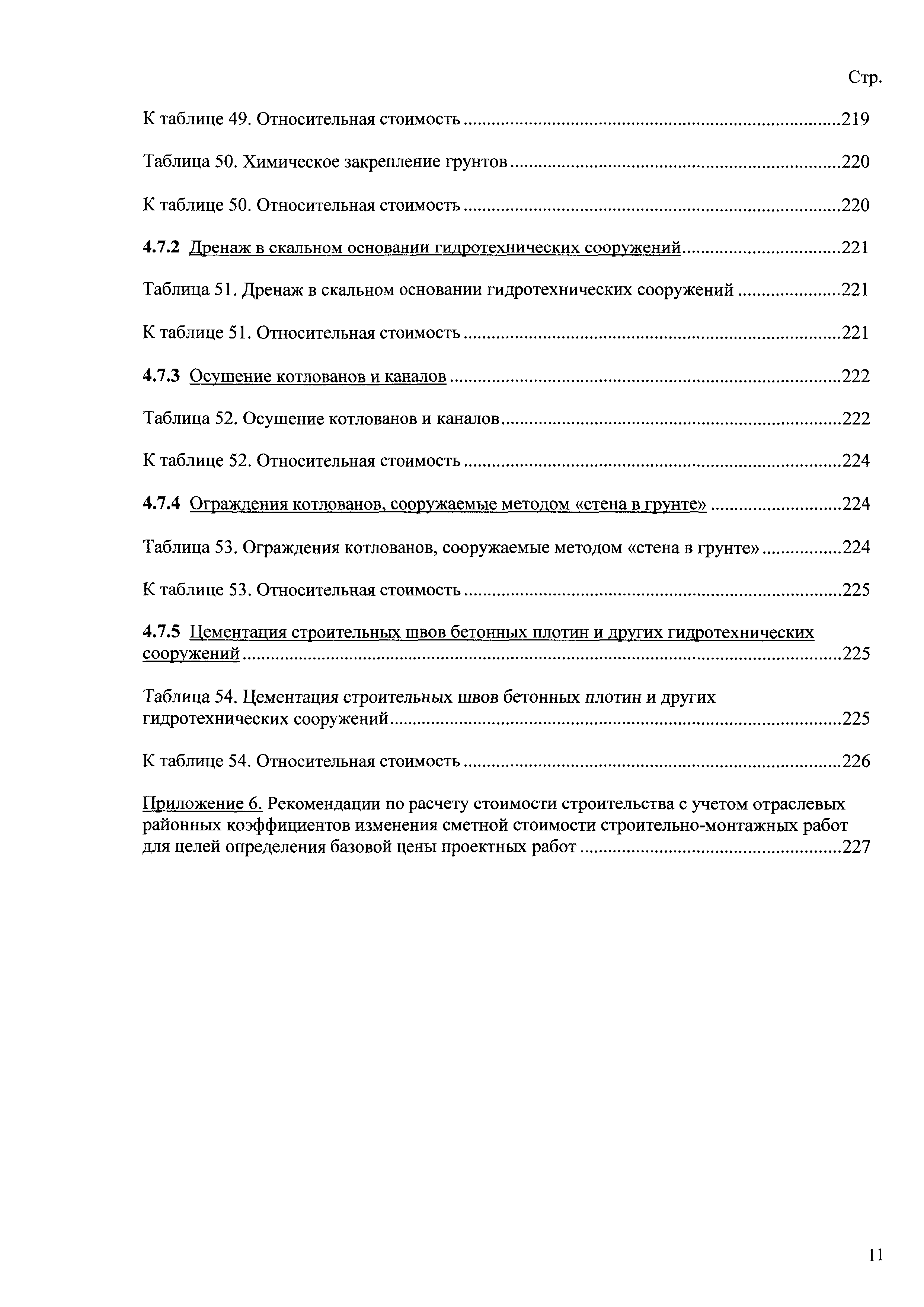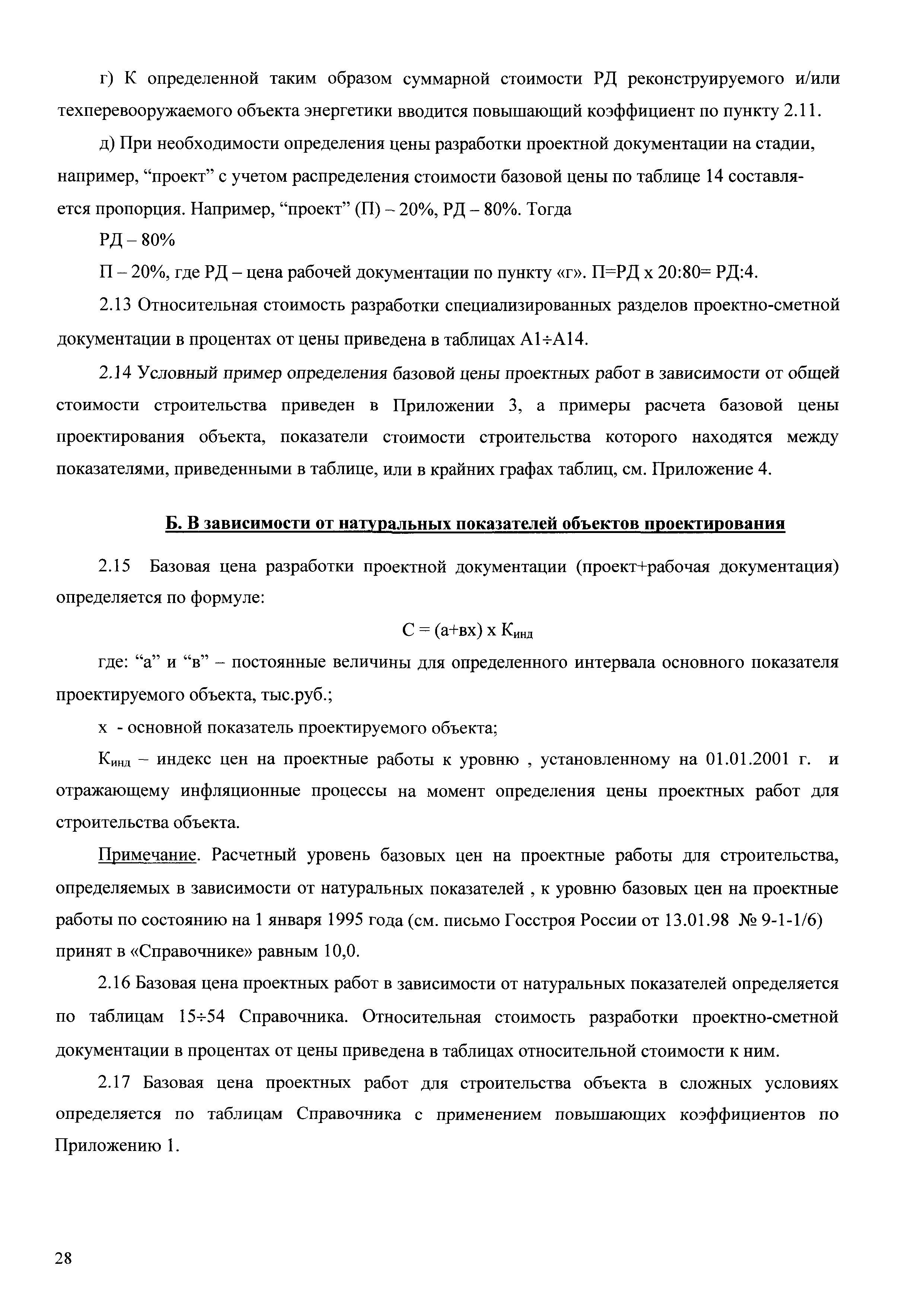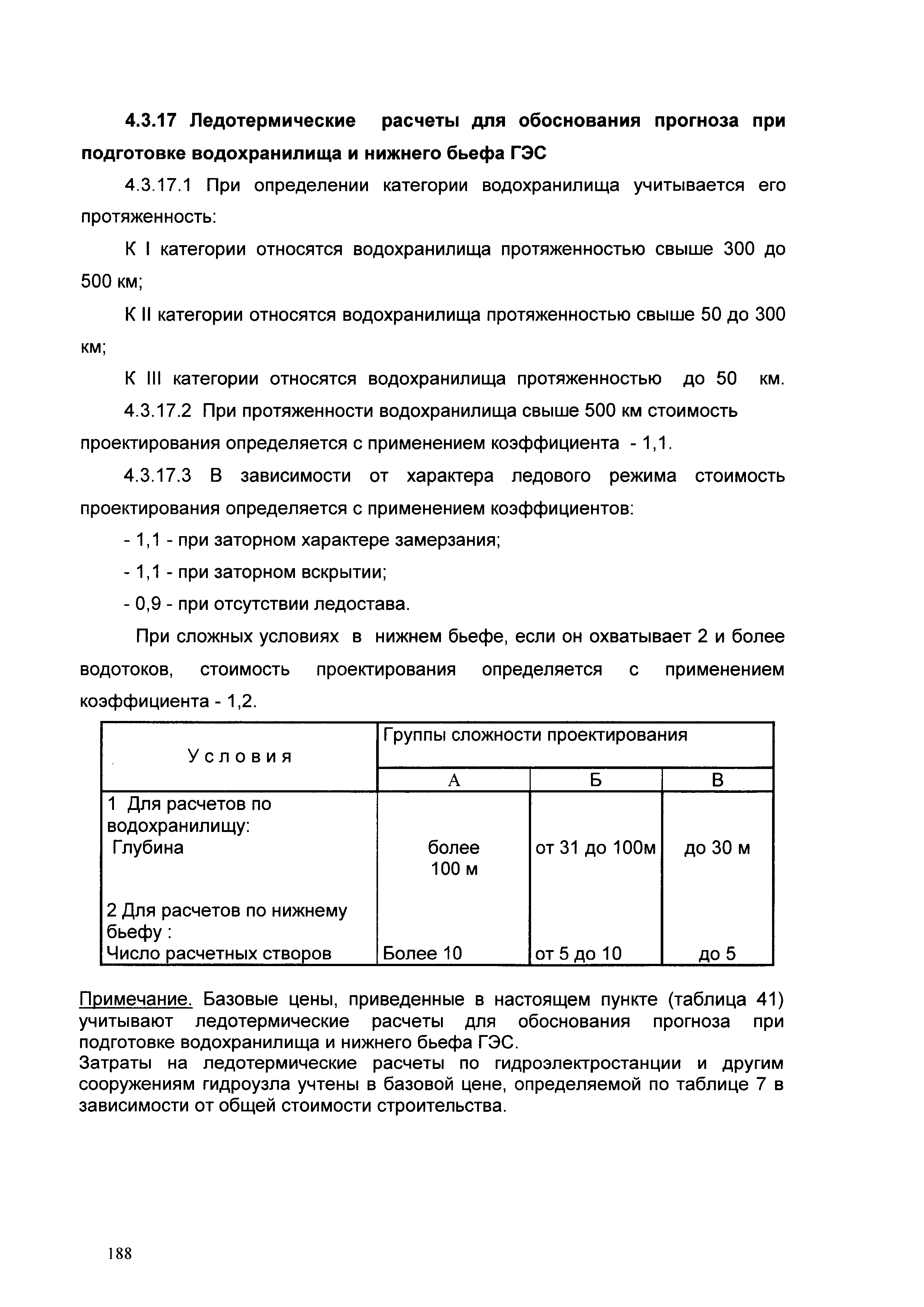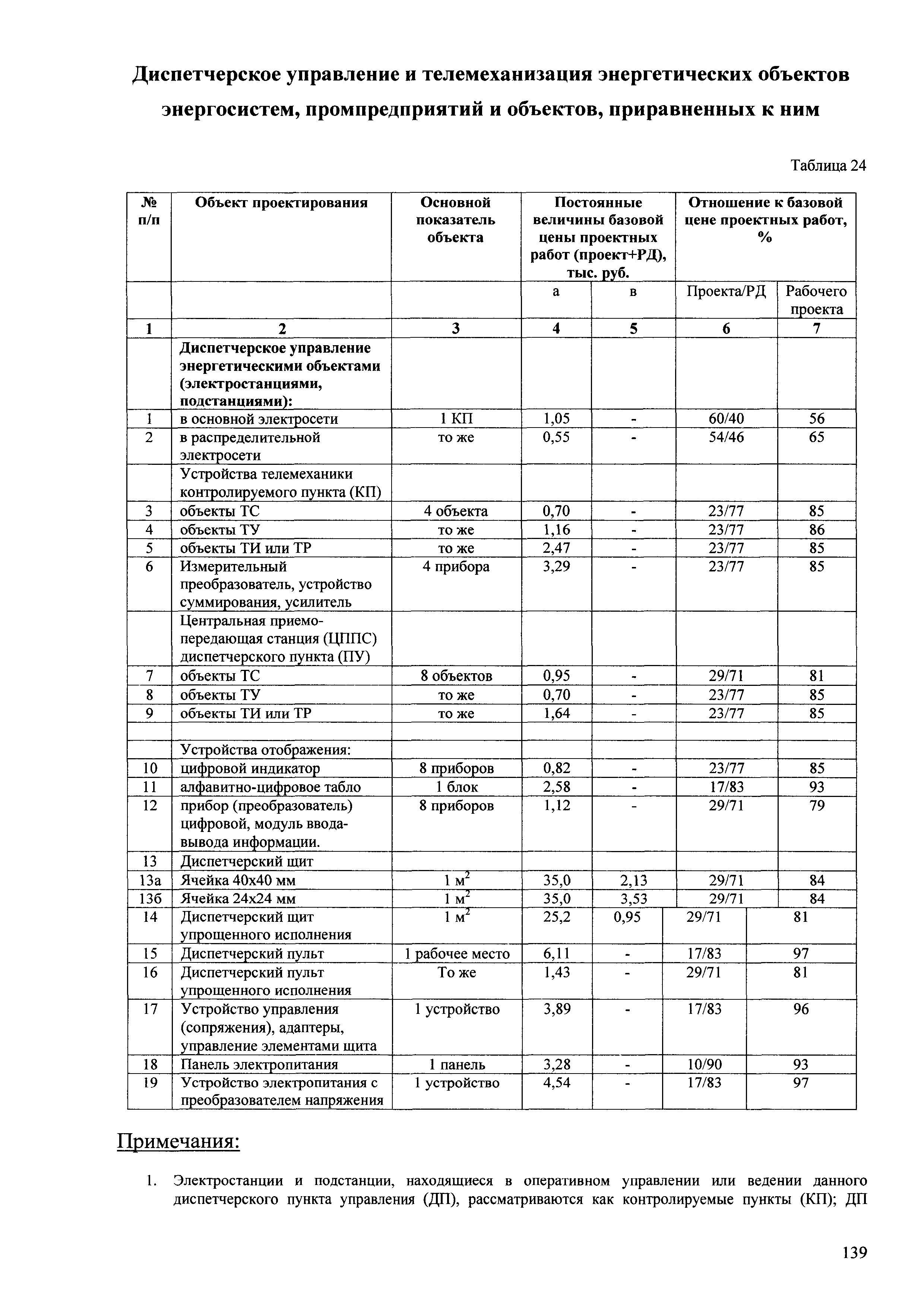 | Оглавление: | 1 Основные положения 2 Порядок определения базовой цены проектных работ 3 Таблицы базовых цен в зависимости от общей стоимости строительства 3.1 Тепловые электростанции, котельные, тепловые пункты 3.2 Гидроэлектростанции 3.3 Электросетевое строительство 3.4 Таблицы относительной стоимости разработки проектной документации 3.5 Таблицы удельной стоимости разработки рабочей документации по зданиям, сооружениям и видам работ 4 Таблицы базовых цен в зависимости от натуральных показателей 4.1 Отдельные виды работ для электросетей напряжением 35-1150 кВ 4.2 Отдельные виды работ для электросетей напряжением до 20 кВ 4.3 Метоприятия, связанные с подготовкой водохранилищ и нижнего бьефа 4.4 Сооружения инженерной защиты сельскохозяйственных низин, населенных пунктов, городов и промышленных предприятий 4.5 Буровзрывные работы в строительстве 4.6 Подземные сооружения энергетических объектов 4.7 Специальные работы в энергетическом строительстве |