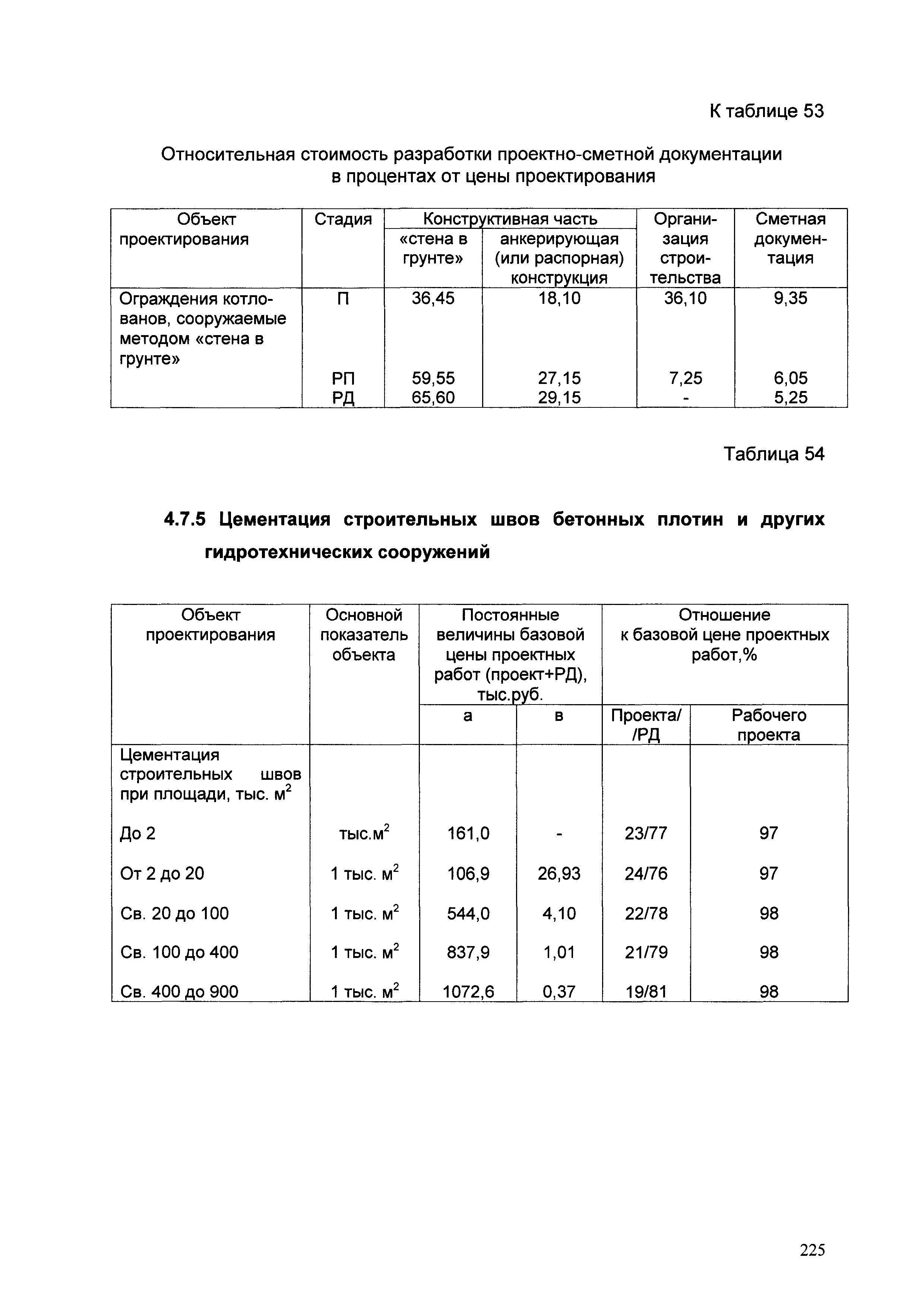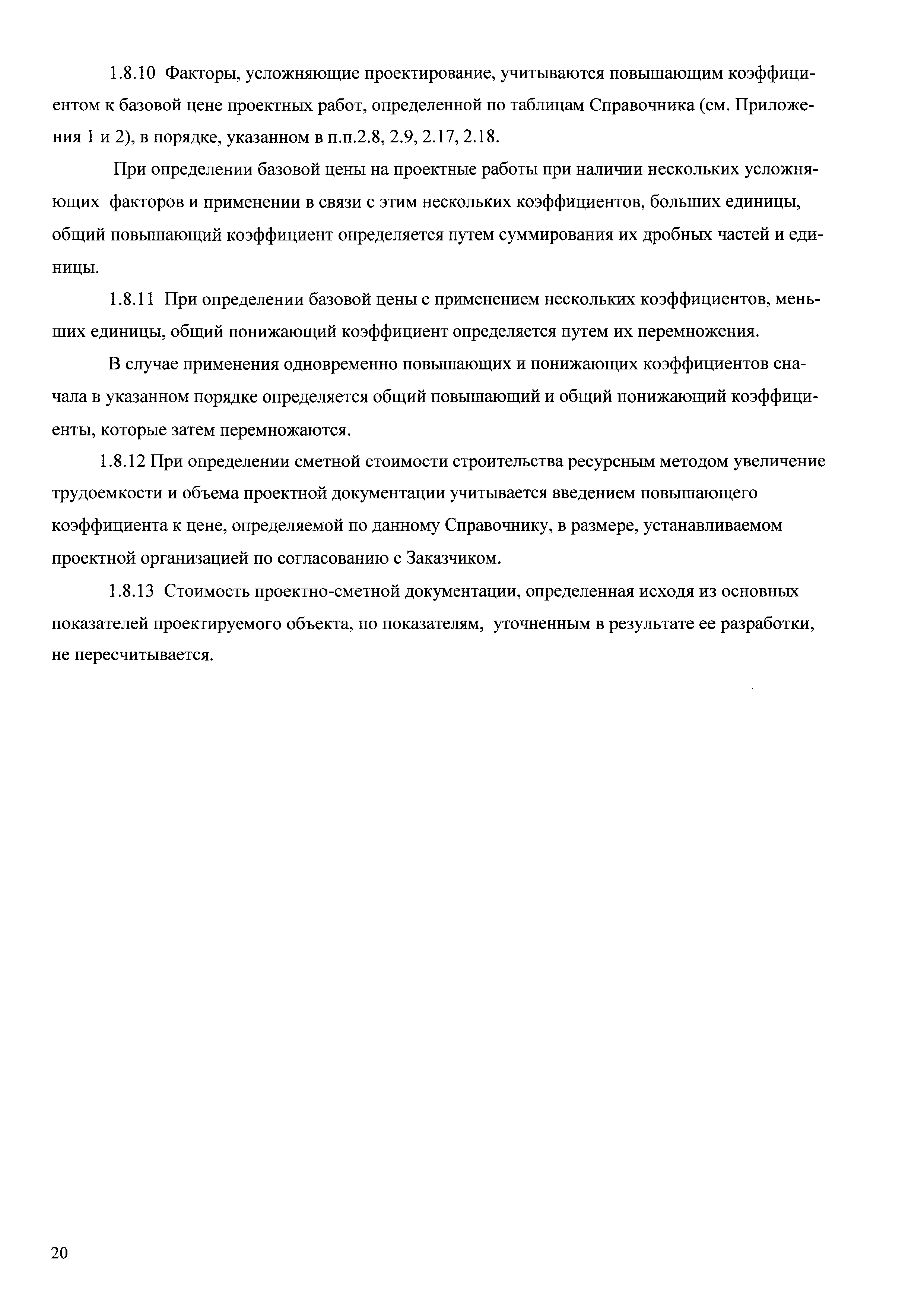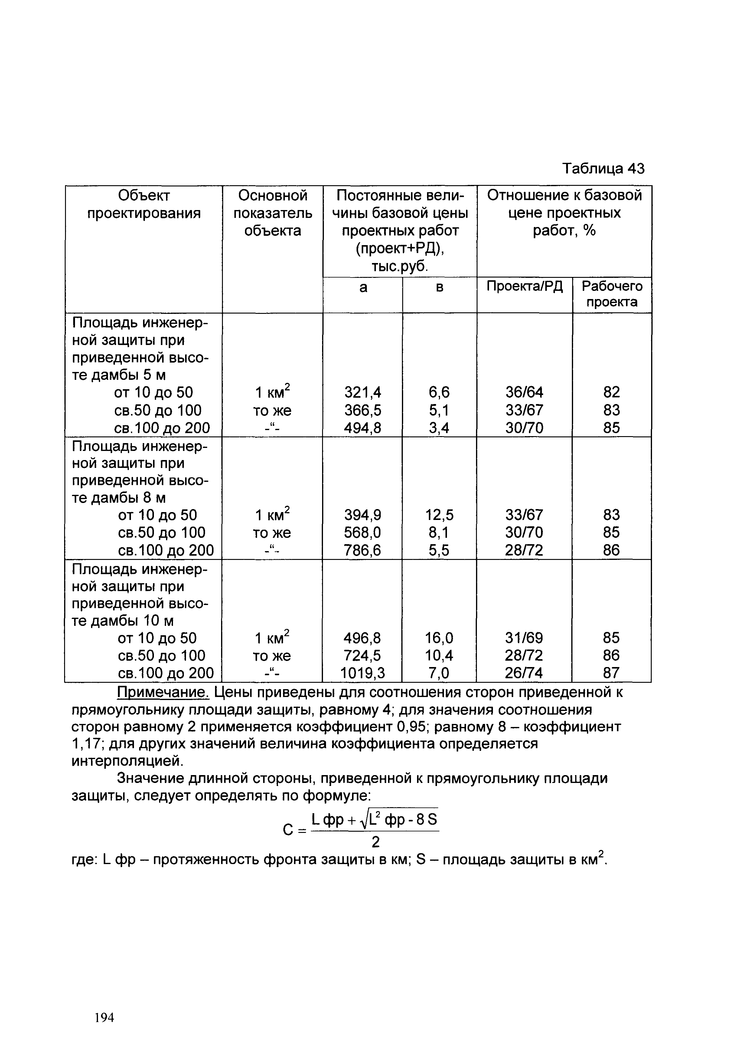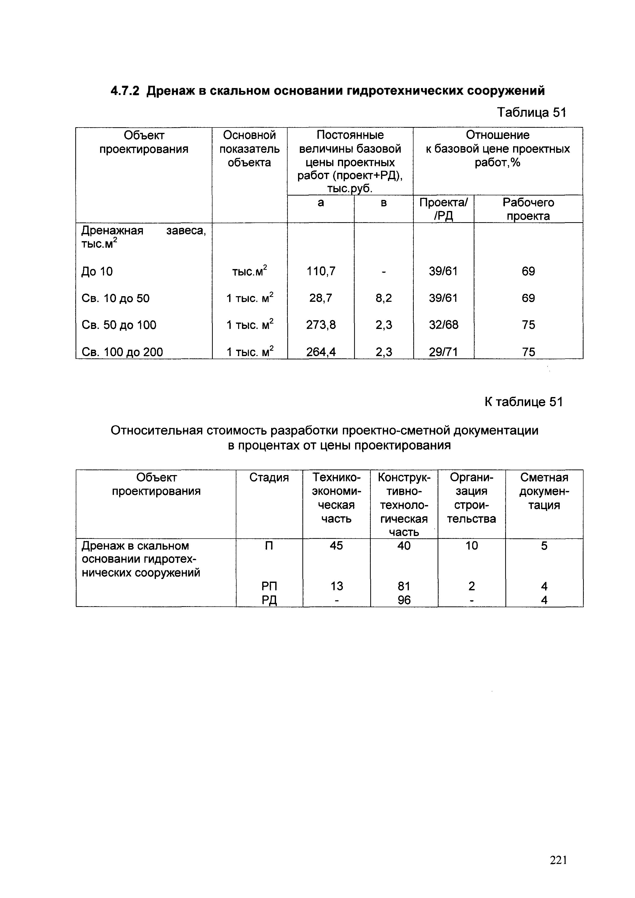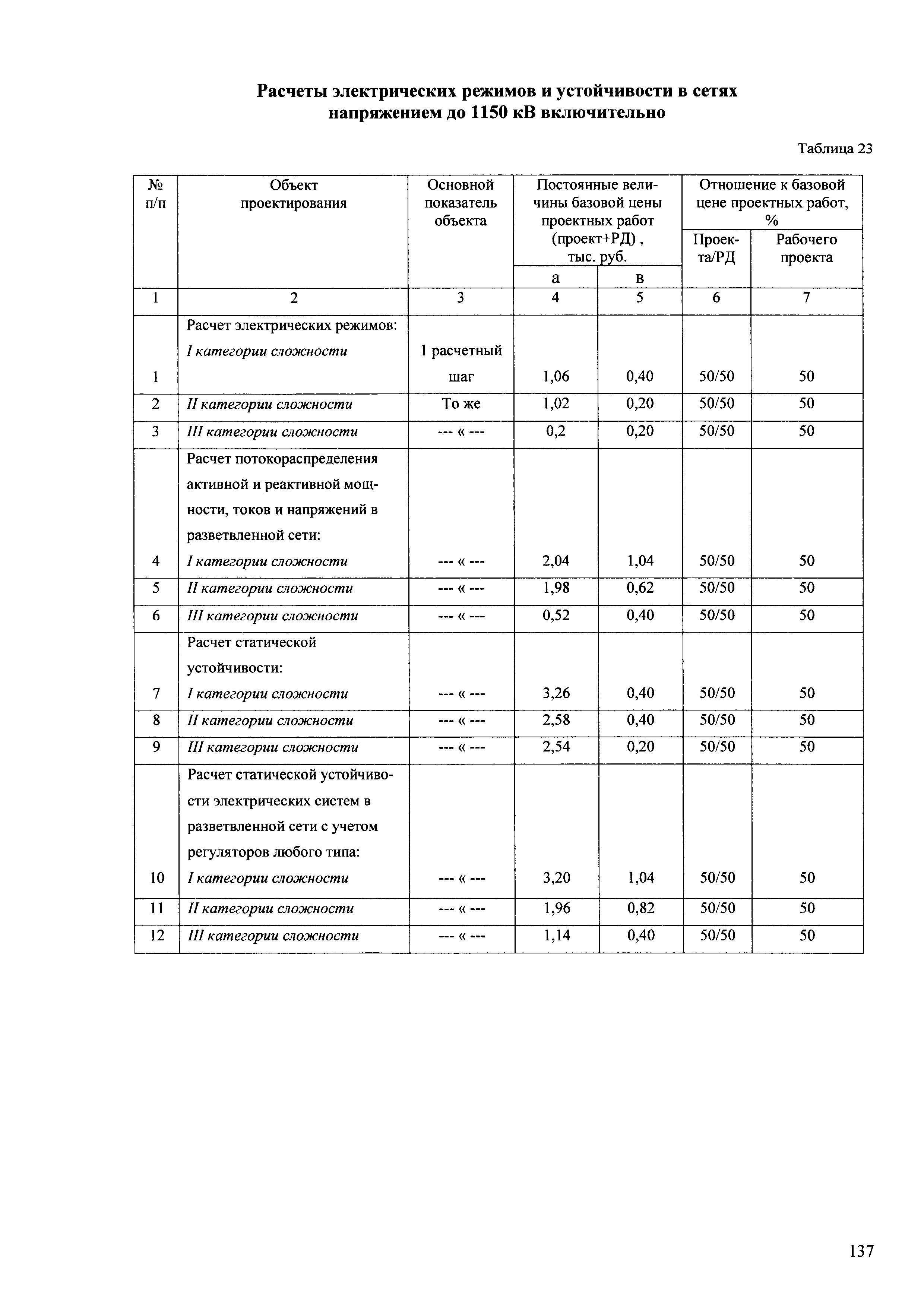 | Оглавление: | 1 Основные положения 2 Порядок определения базовой цены проектных работ 3 Таблицы базовых цен в зависимости от общей стоимости строительства 3.1 Тепловые электростанции, котельные, тепловые пункты 3.2 Гидроэлектростанции 3.3 Электросетевое строительство 3.4 Таблицы относительной стоимости разработки проектной документации 3.5 Таблицы удельной стоимости разработки рабочей документации по зданиям, сооружениям и видам работ 4 Таблицы базовых цен в зависимости от натуральных показателей 4.1 Отдельные виды работ для электросетей напряжением 35-1150 кВ 4.2 Отдельные виды работ для электросетей напряжением до 20 кВ 4.3 Метоприятия, связанные с подготовкой водохранилищ и нижнего бьефа 4.4 Сооружения инженерной защиты сельскохозяйственных низин, населенных пунктов, городов и промышленных предприятий 4.5 Буровзрывные работы в строительстве 4.6 Подземные сооружения энергетических объектов 4.7 Специальные работы в энергетическом строительстве |