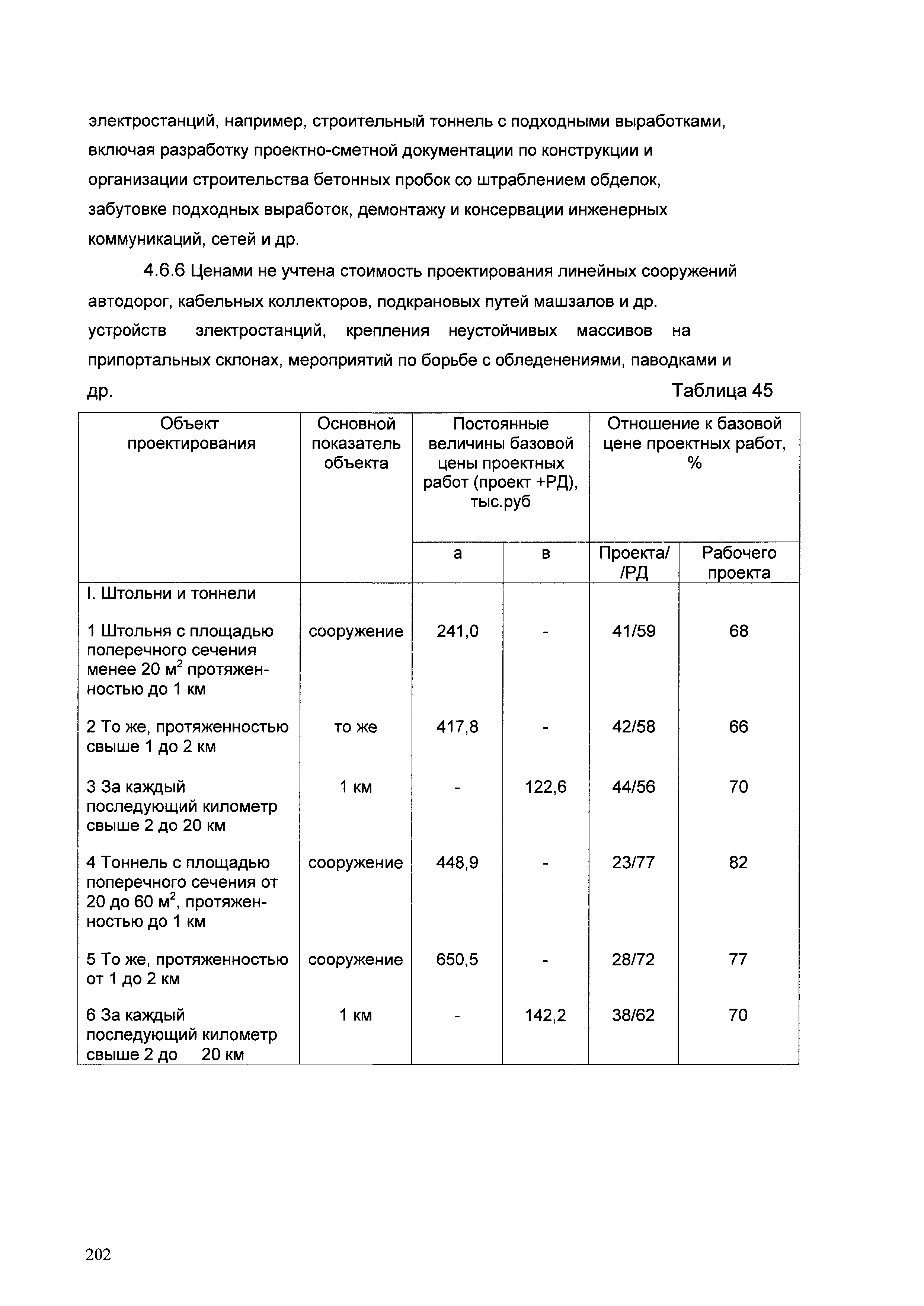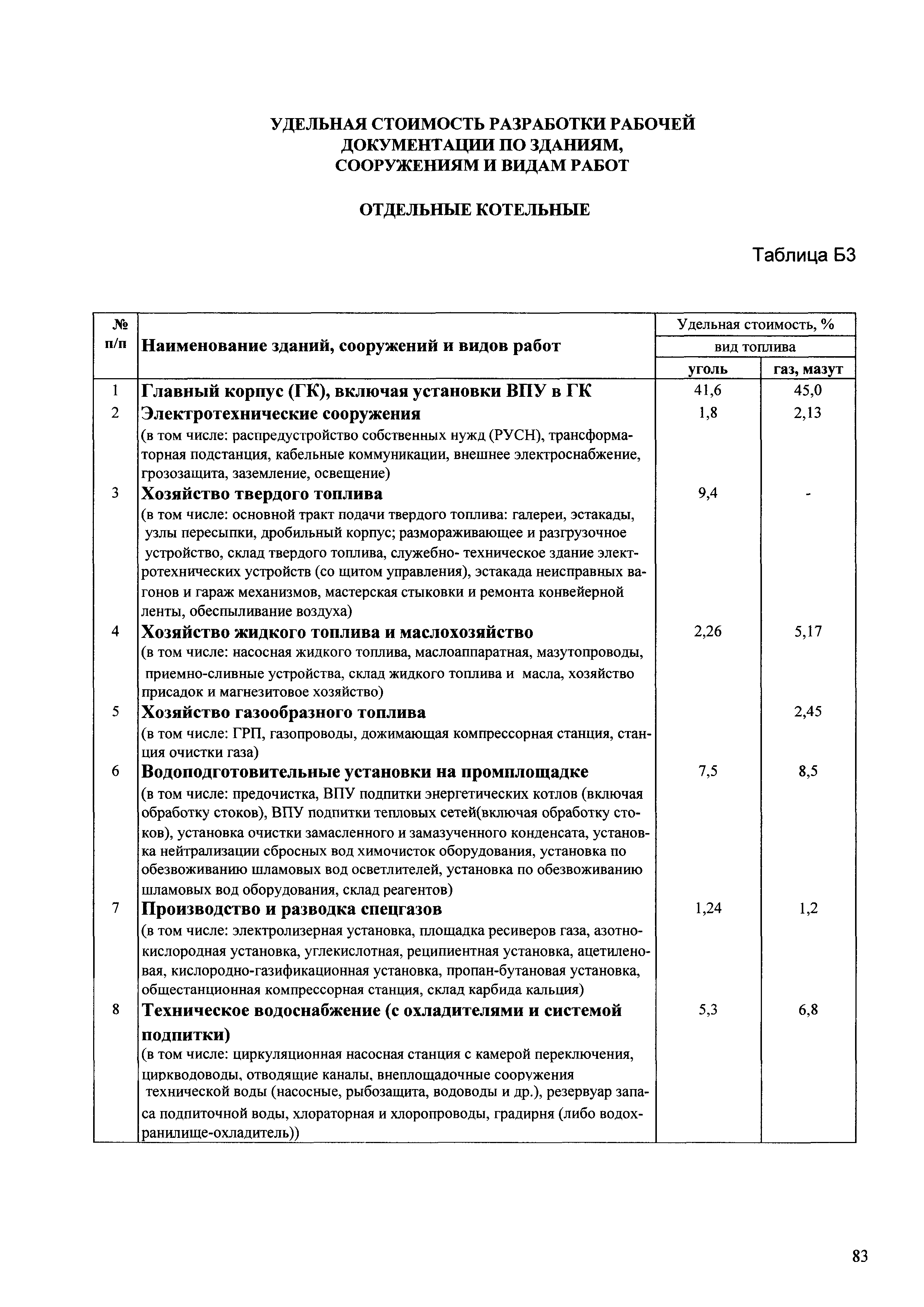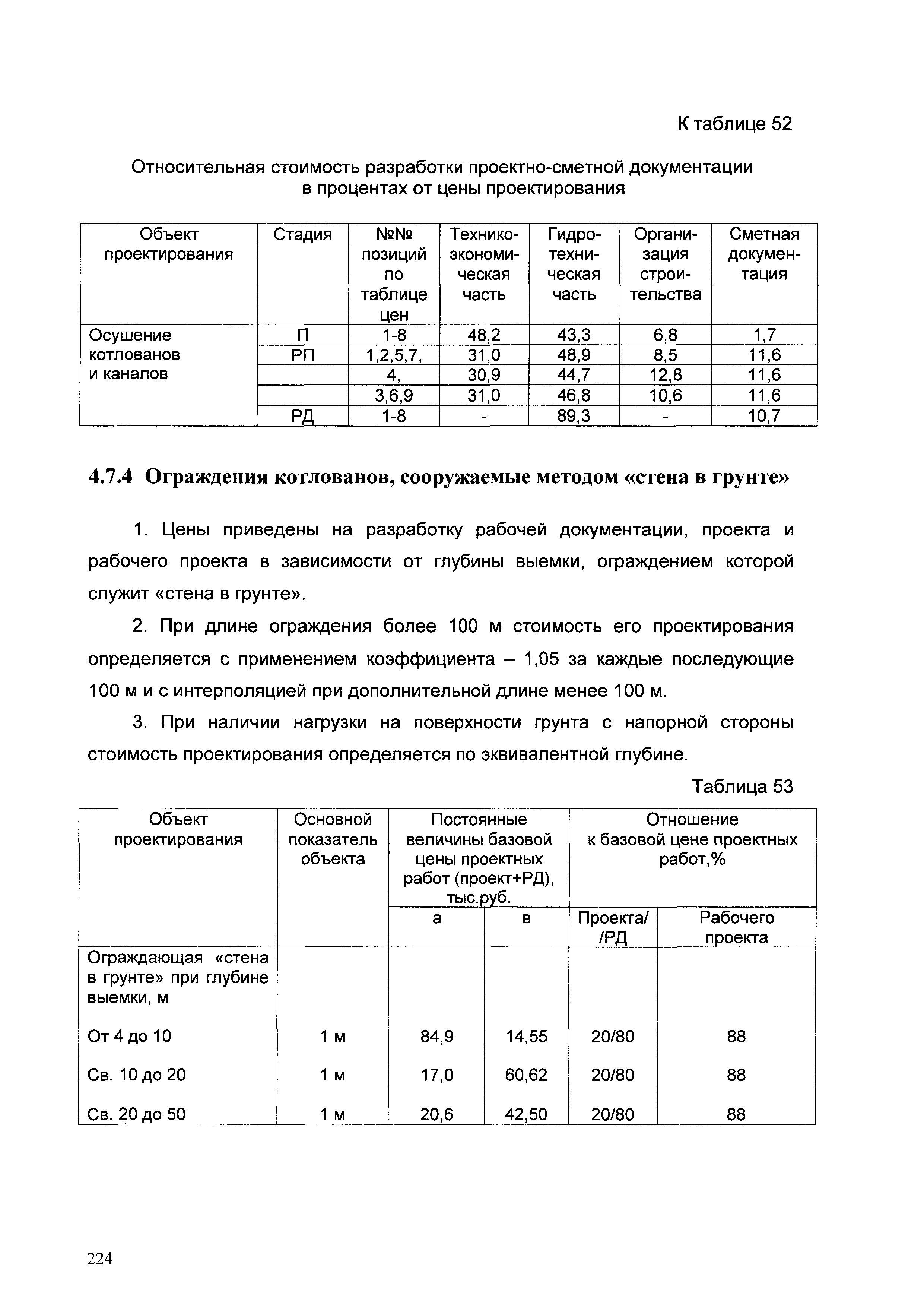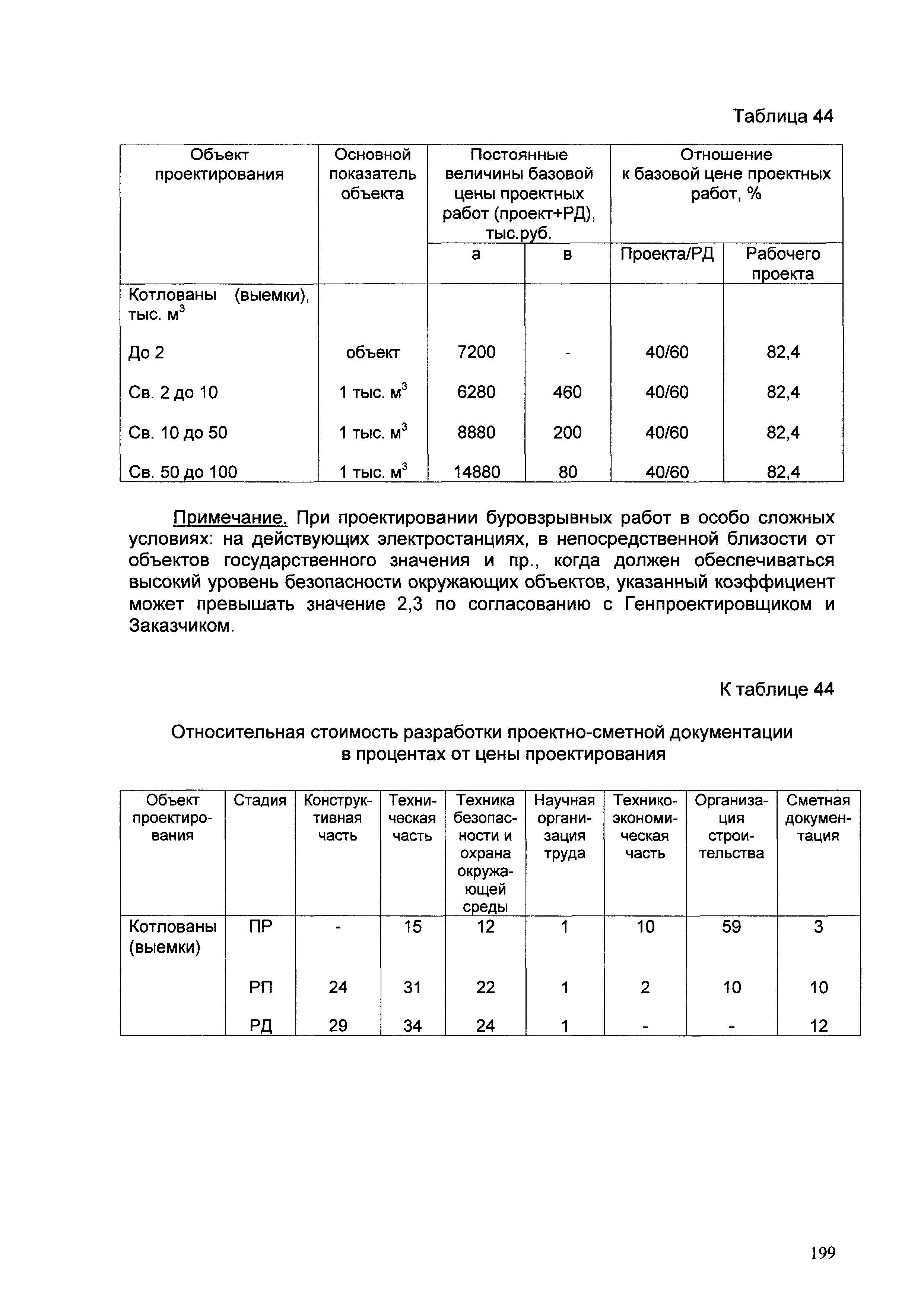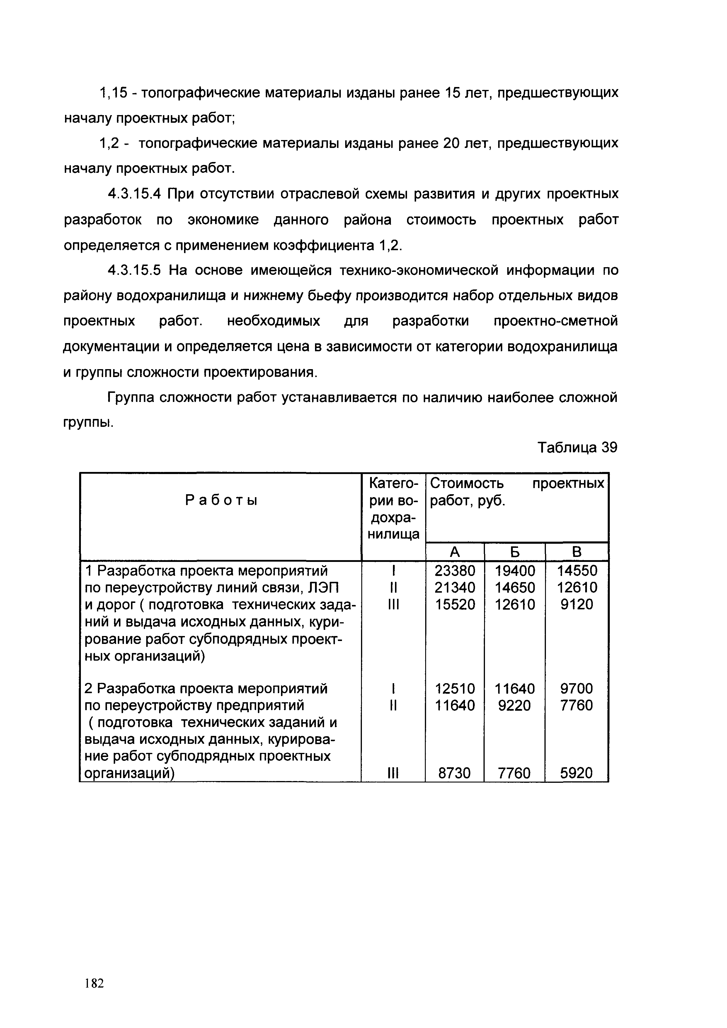 | Оглавление: | 1 Основные положения 2 Порядок определения базовой цены проектных работ 3 Таблицы базовых цен в зависимости от общей стоимости строительства 3.1 Тепловые электростанции, котельные, тепловые пункты 3.2 Гидроэлектростанции 3.3 Электросетевое строительство 3.4 Таблицы относительной стоимости разработки проектной документации 3.5 Таблицы удельной стоимости разработки рабочей документации по зданиям, сооружениям и видам работ 4 Таблицы базовых цен в зависимости от натуральных показателей 4.1 Отдельные виды работ для электросетей напряжением 35-1150 кВ 4.2 Отдельные виды работ для электросетей напряжением до 20 кВ 4.3 Метоприятия, связанные с подготовкой водохранилищ и нижнего бьефа 4.4 Сооружения инженерной защиты сельскохозяйственных низин, населенных пунктов, городов и промышленных предприятий 4.5 Буровзрывные работы в строительстве 4.6 Подземные сооружения энергетических объектов 4.7 Специальные работы в энергетическом строительстве |