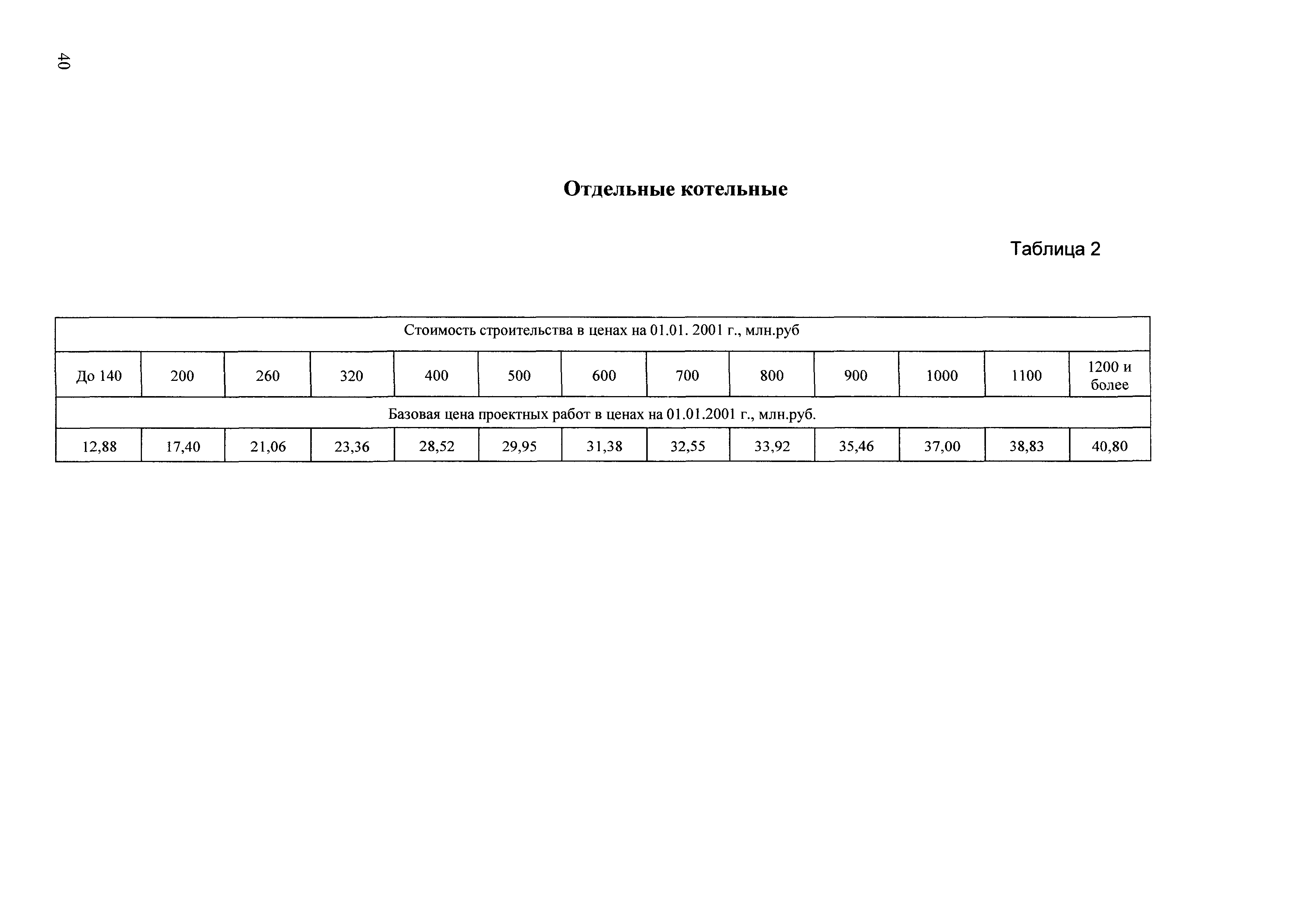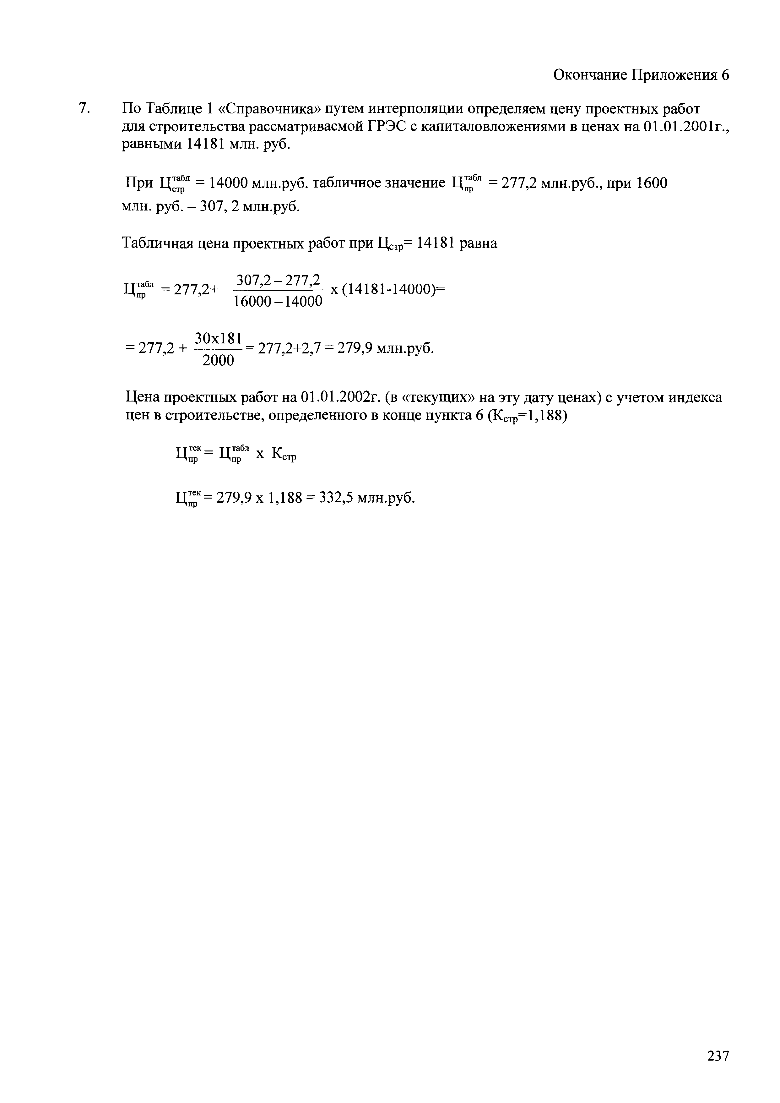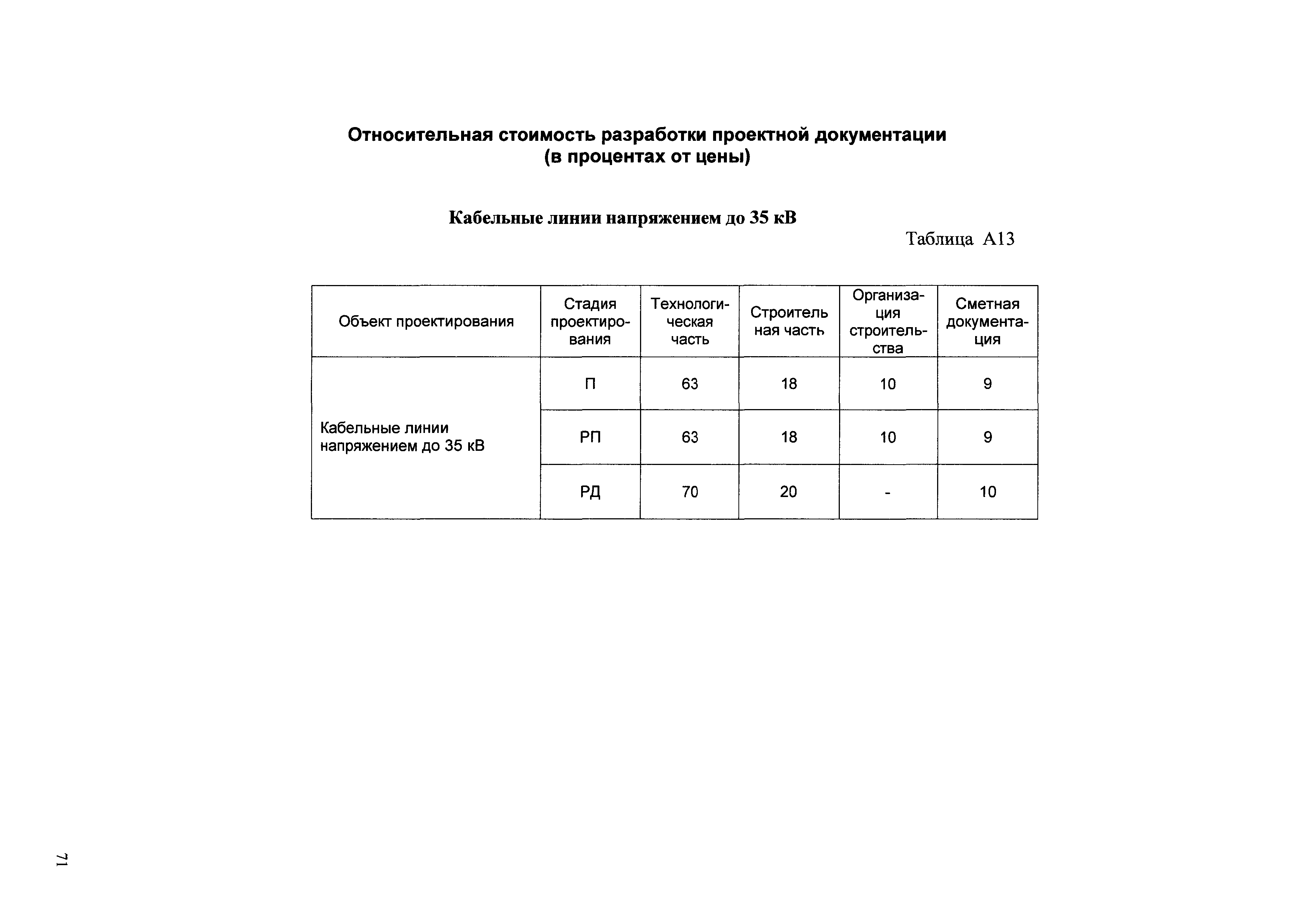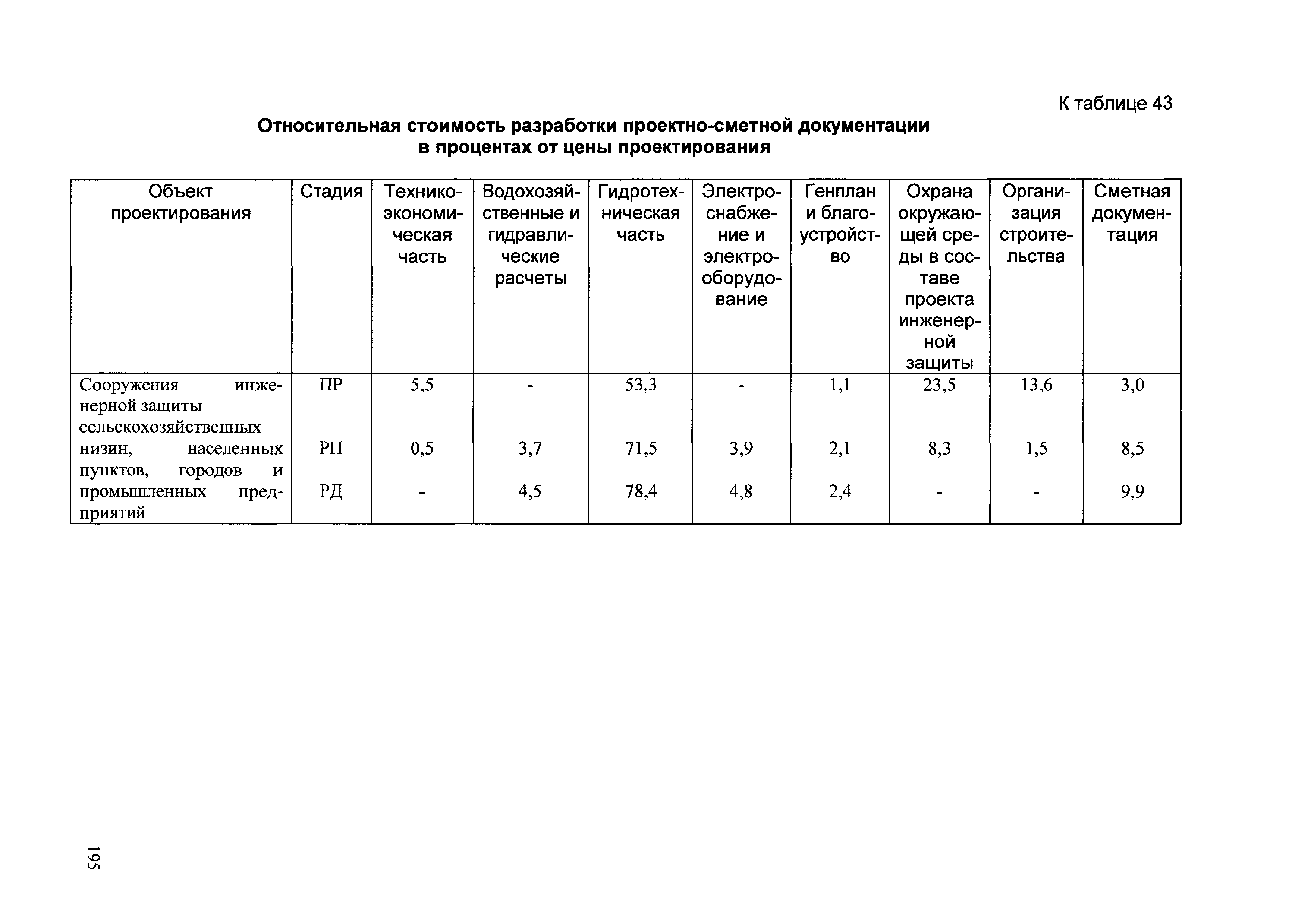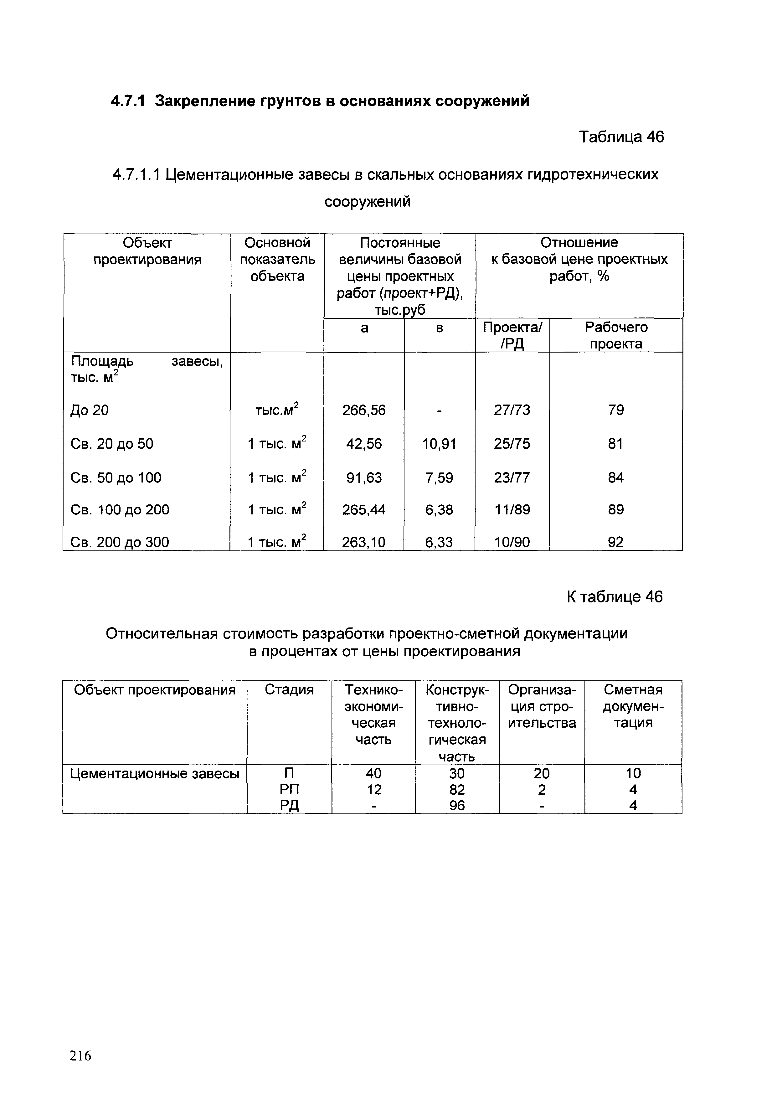 | Оглавление: | 1 Основные положения 2 Порядок определения базовой цены проектных работ 3 Таблицы базовых цен в зависимости от общей стоимости строительства 3.1 Тепловые электростанции, котельные, тепловые пункты 3.2 Гидроэлектростанции 3.3 Электросетевое строительство 3.4 Таблицы относительной стоимости разработки проектной документации 3.5 Таблицы удельной стоимости разработки рабочей документации по зданиям, сооружениям и видам работ 4 Таблицы базовых цен в зависимости от натуральных показателей 4.1 Отдельные виды работ для электросетей напряжением 35-1150 кВ 4.2 Отдельные виды работ для электросетей напряжением до 20 кВ 4.3 Метоприятия, связанные с подготовкой водохранилищ и нижнего бьефа 4.4 Сооружения инженерной защиты сельскохозяйственных низин, населенных пунктов, городов и промышленных предприятий 4.5 Буровзрывные работы в строительстве 4.6 Подземные сооружения энергетических объектов 4.7 Специальные работы в энергетическом строительстве |