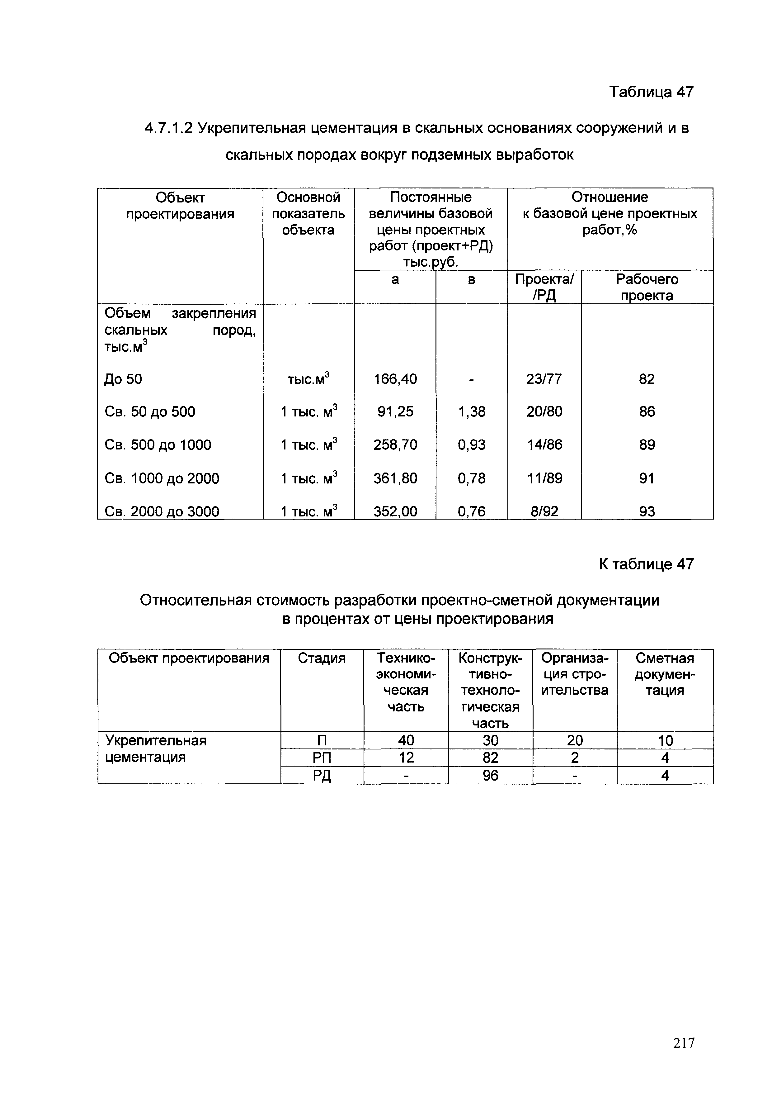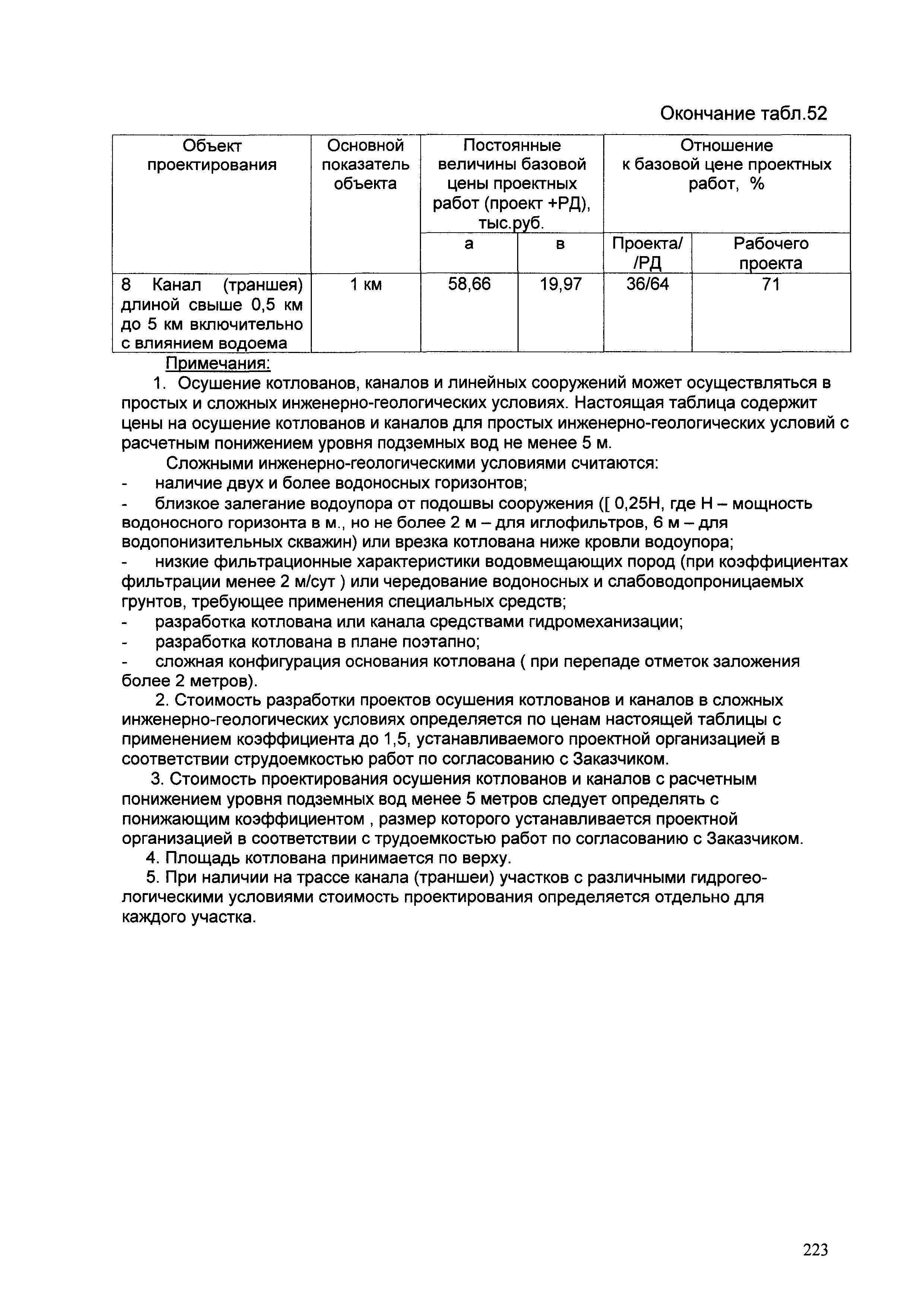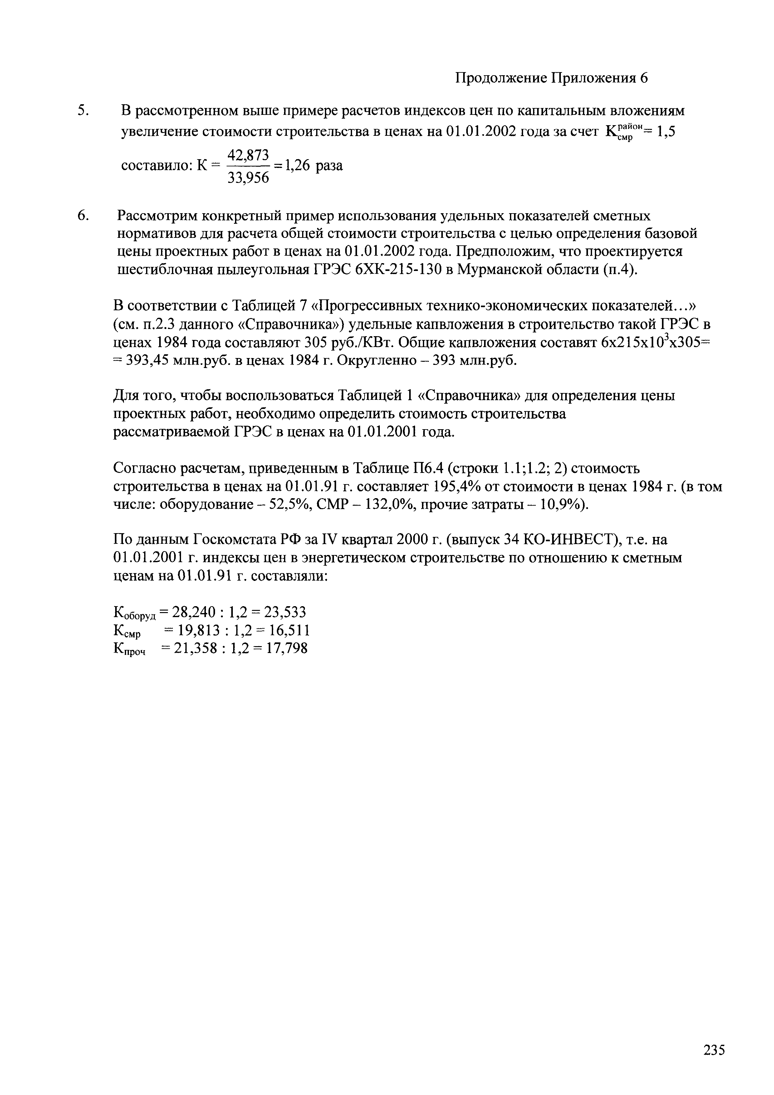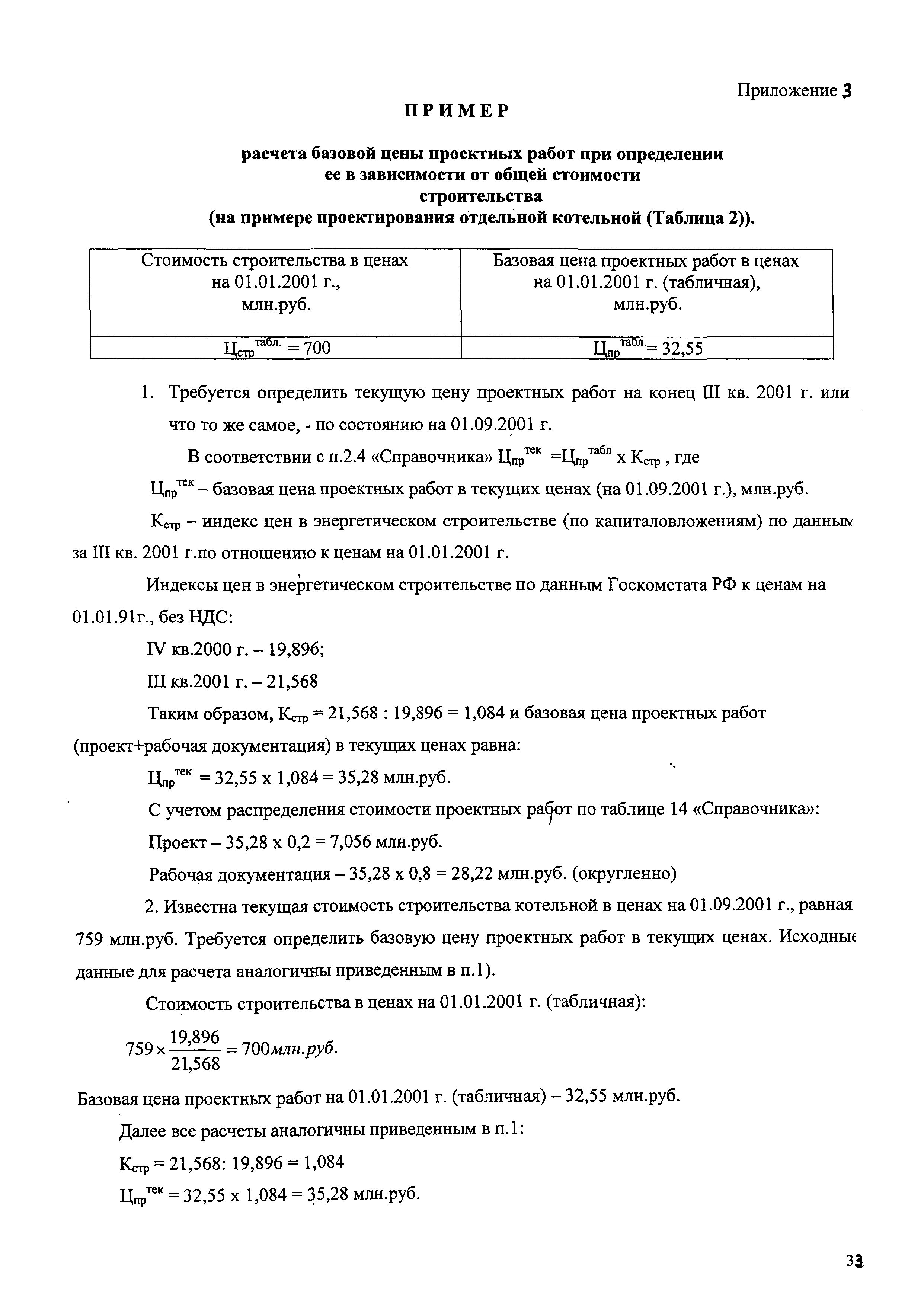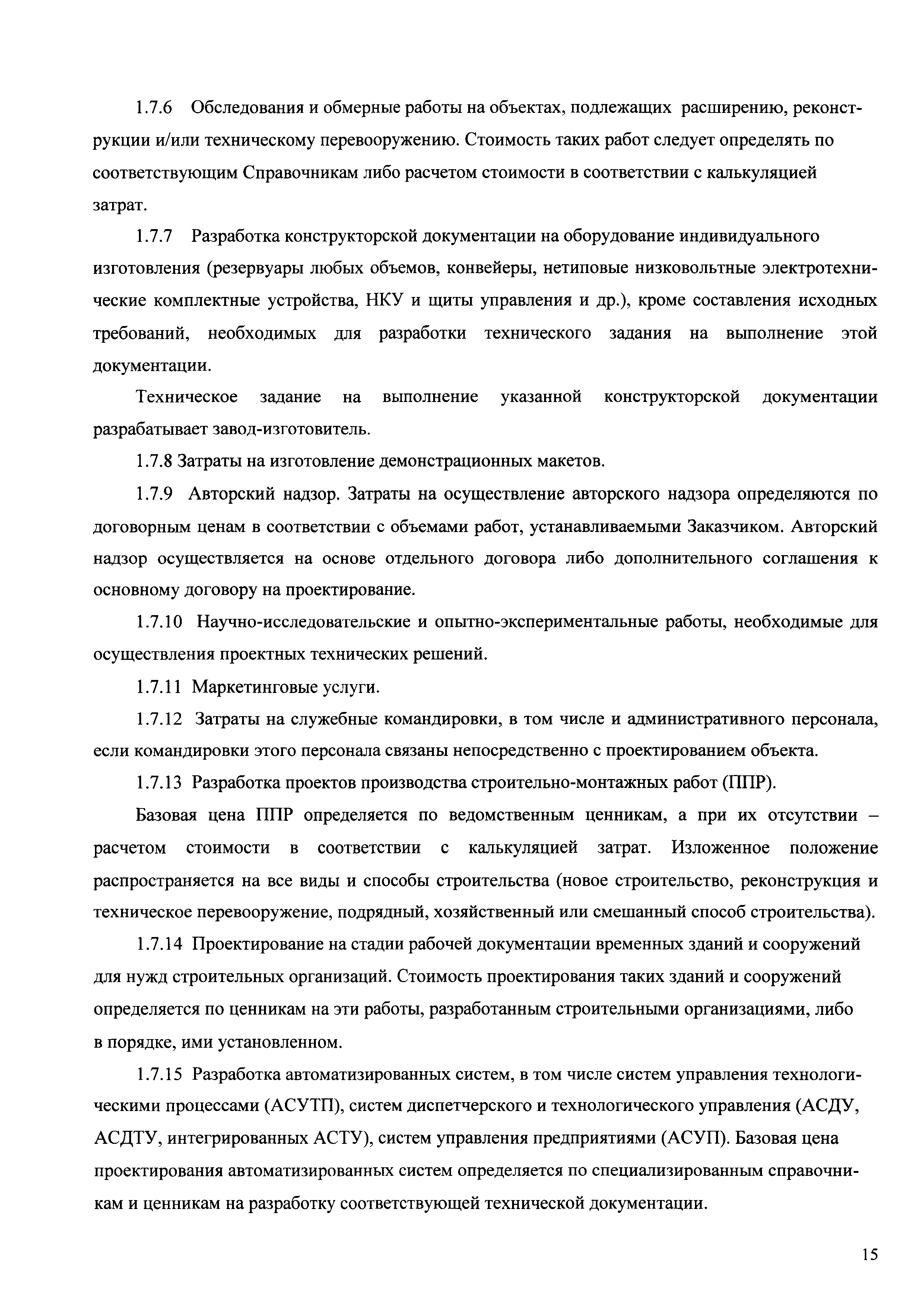 | Оглавление: | 1 Основные положения 2 Порядок определения базовой цены проектных работ 3 Таблицы базовых цен в зависимости от общей стоимости строительства 3.1 Тепловые электростанции, котельные, тепловые пункты 3.2 Гидроэлектростанции 3.3 Электросетевое строительство 3.4 Таблицы относительной стоимости разработки проектной документации 3.5 Таблицы удельной стоимости разработки рабочей документации по зданиям, сооружениям и видам работ 4 Таблицы базовых цен в зависимости от натуральных показателей 4.1 Отдельные виды работ для электросетей напряжением 35-1150 кВ 4.2 Отдельные виды работ для электросетей напряжением до 20 кВ 4.3 Метоприятия, связанные с подготовкой водохранилищ и нижнего бьефа 4.4 Сооружения инженерной защиты сельскохозяйственных низин, населенных пунктов, городов и промышленных предприятий 4.5 Буровзрывные работы в строительстве 4.6 Подземные сооружения энергетических объектов 4.7 Специальные работы в энергетическом строительстве |
