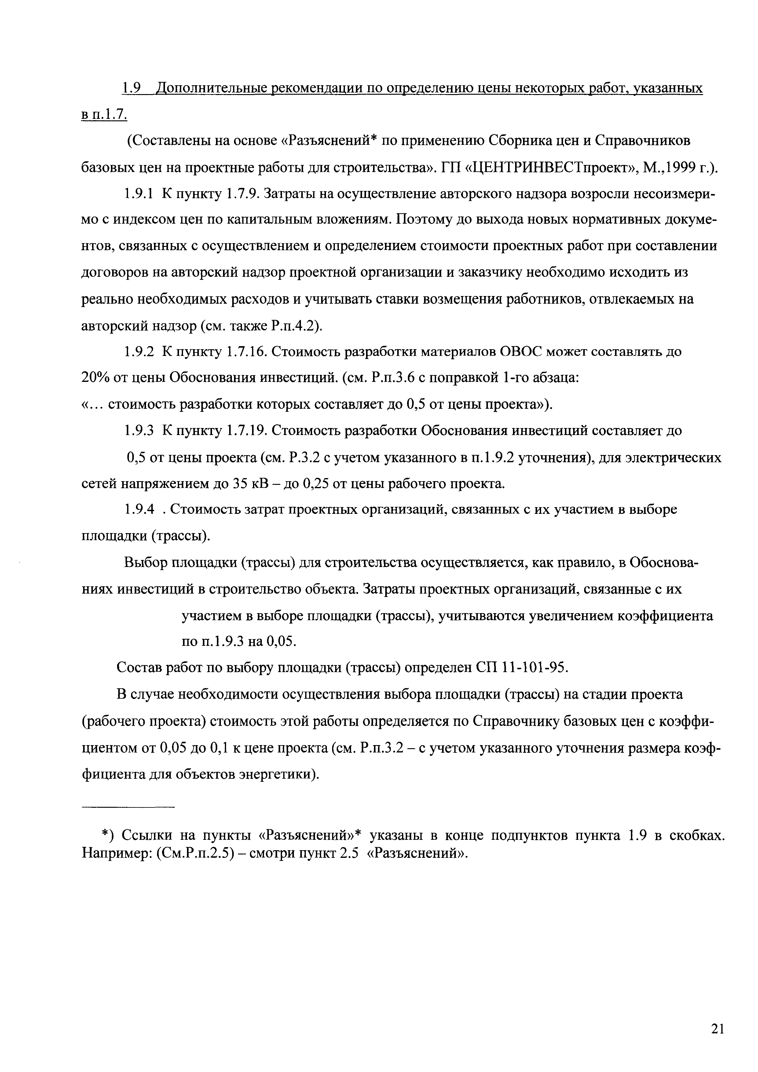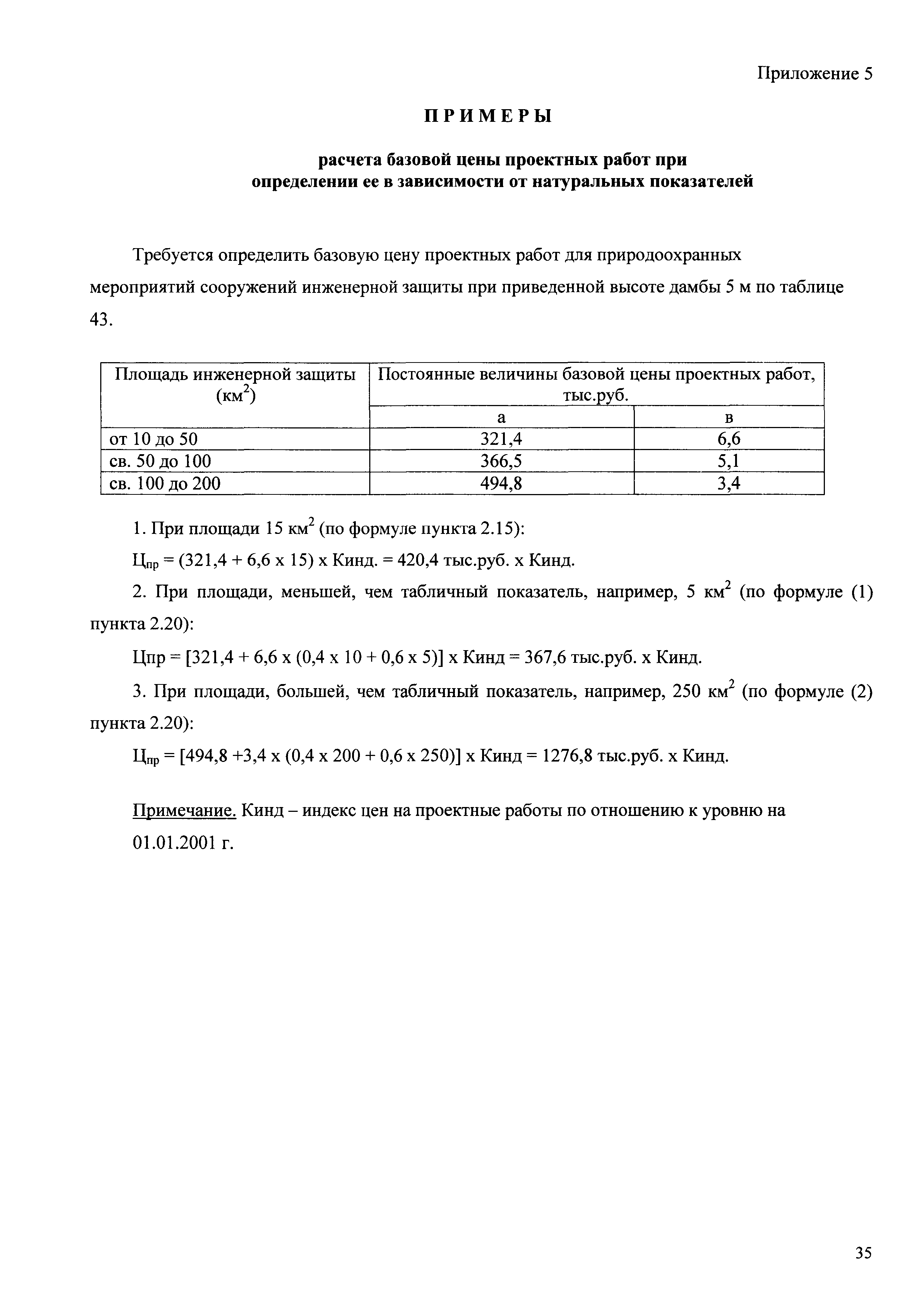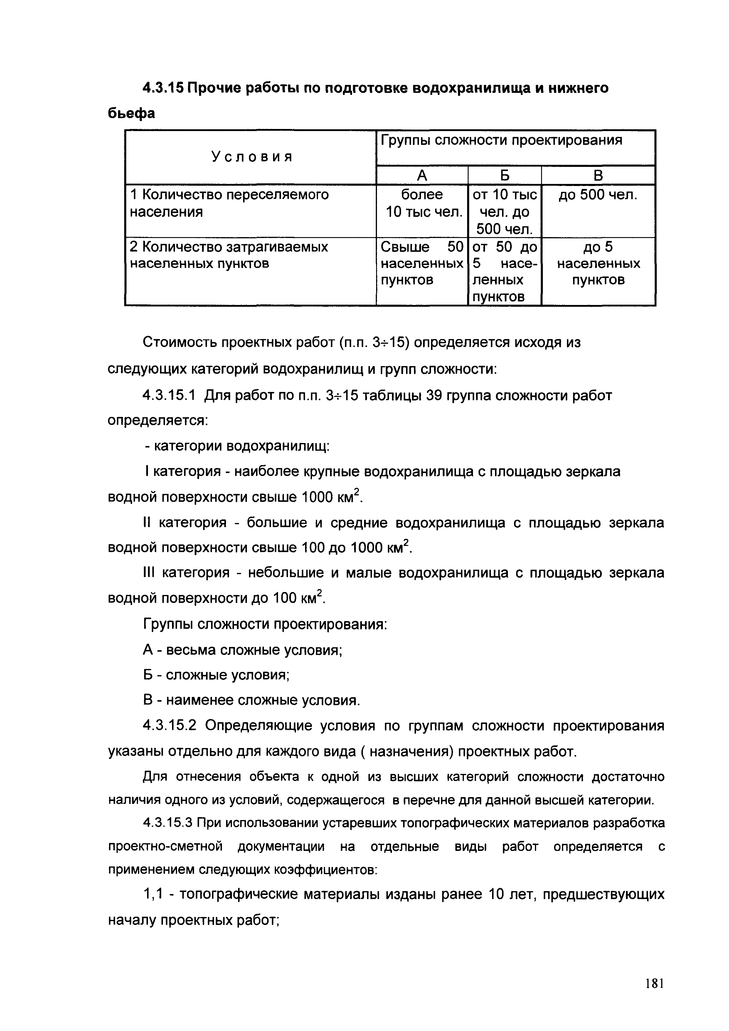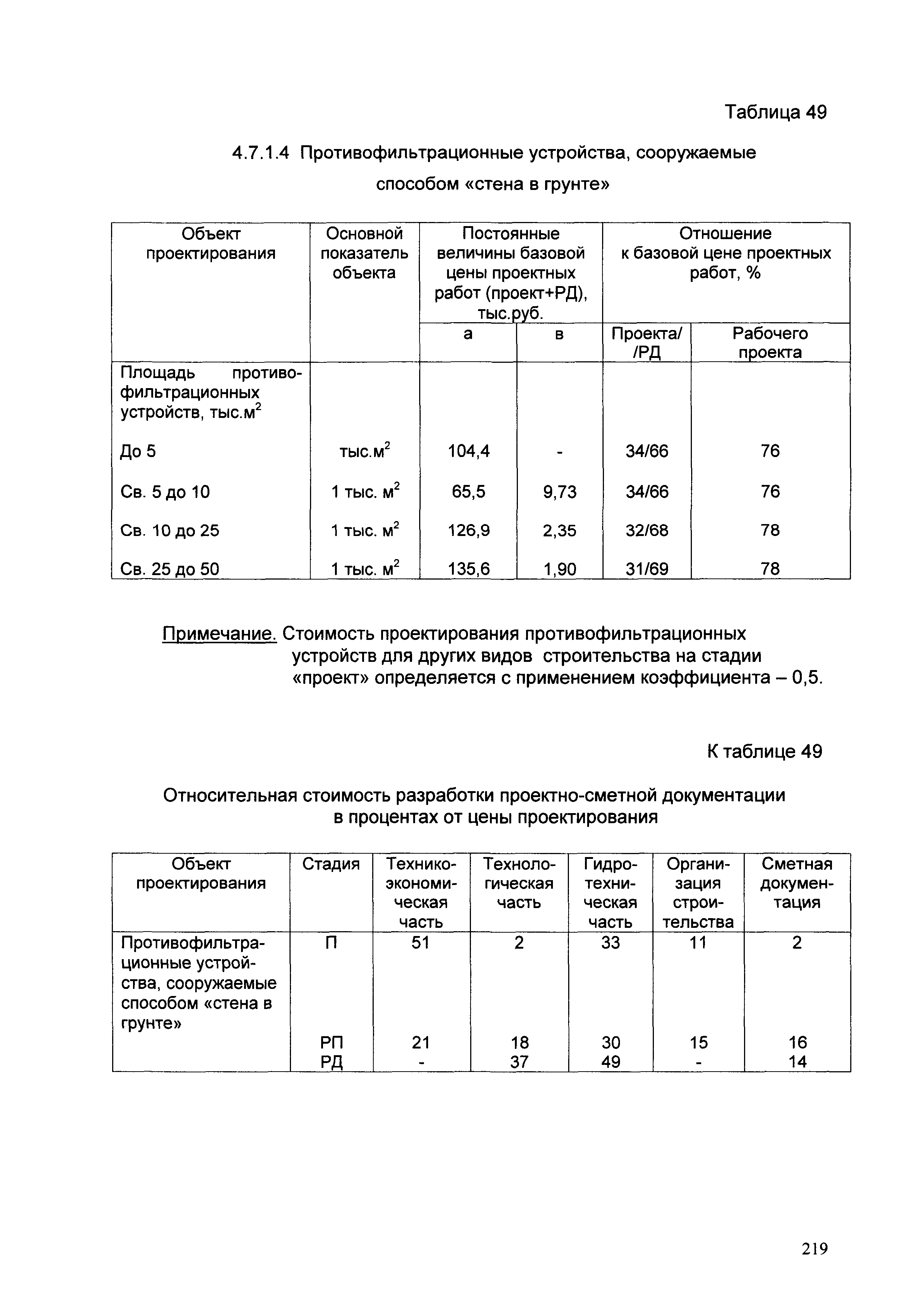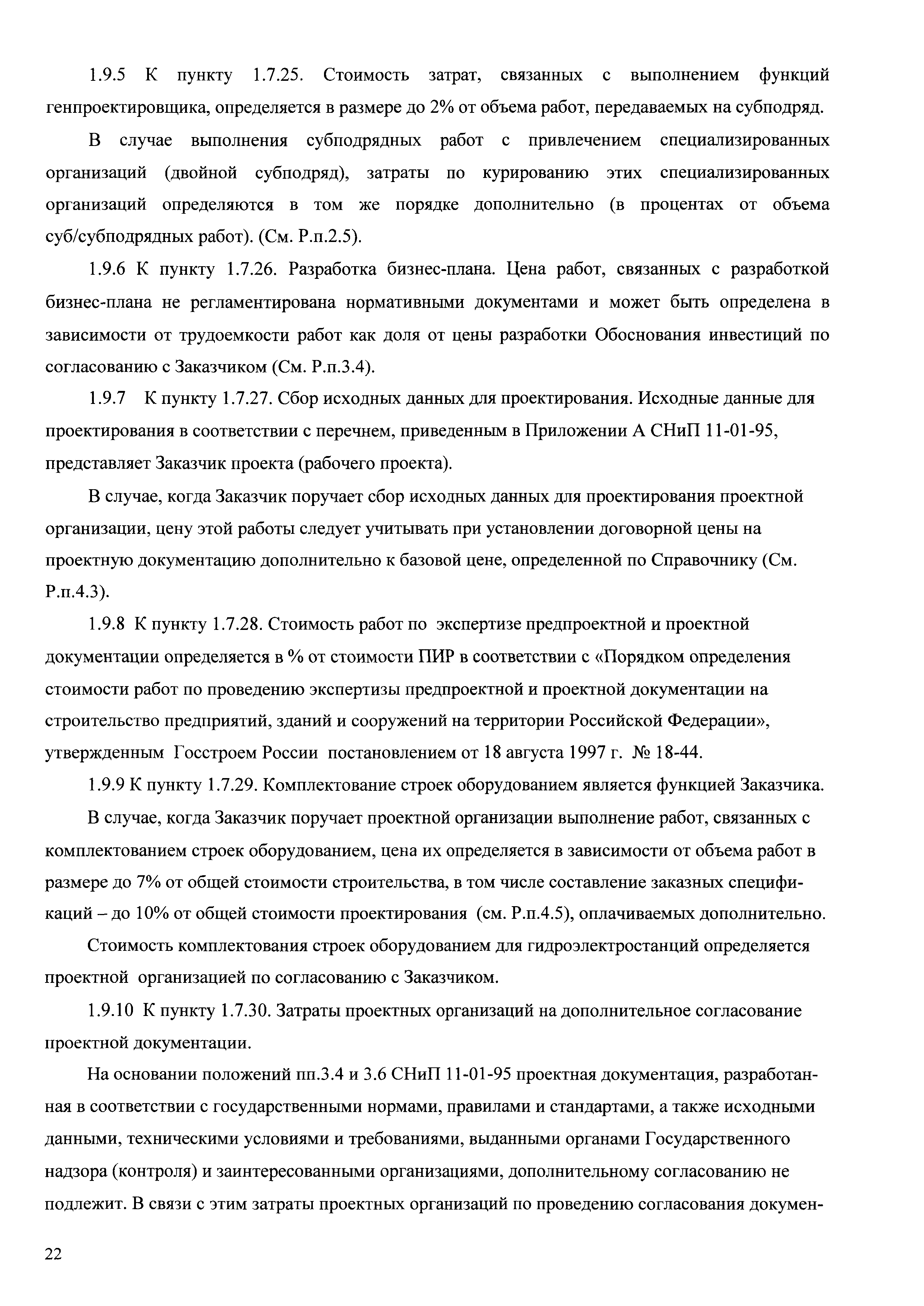 | Оглавление: | 1 Основные положения 2 Порядок определения базовой цены проектных работ 3 Таблицы базовых цен в зависимости от общей стоимости строительства 3.1 Тепловые электростанции, котельные, тепловые пункты 3.2 Гидроэлектростанции 3.3 Электросетевое строительство 3.4 Таблицы относительной стоимости разработки проектной документации 3.5 Таблицы удельной стоимости разработки рабочей документации по зданиям, сооружениям и видам работ 4 Таблицы базовых цен в зависимости от натуральных показателей 4.1 Отдельные виды работ для электросетей напряжением 35-1150 кВ 4.2 Отдельные виды работ для электросетей напряжением до 20 кВ 4.3 Метоприятия, связанные с подготовкой водохранилищ и нижнего бьефа 4.4 Сооружения инженерной защиты сельскохозяйственных низин, населенных пунктов, городов и промышленных предприятий 4.5 Буровзрывные работы в строительстве 4.6 Подземные сооружения энергетических объектов 4.7 Специальные работы в энергетическом строительстве |