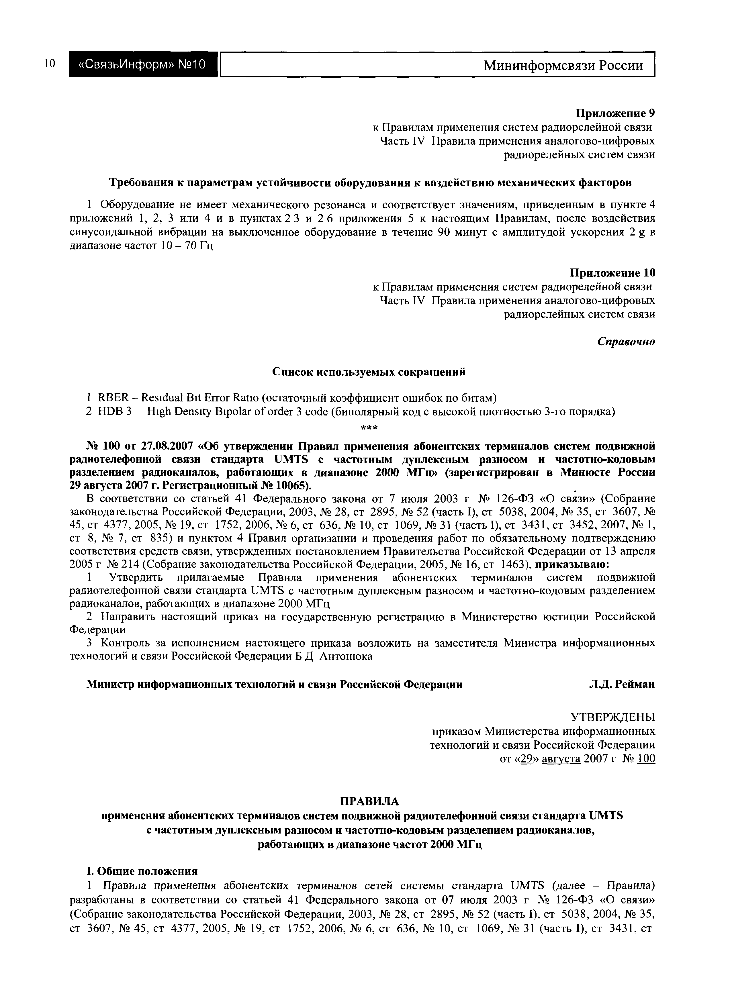 | Утверждён: | 27.08.2007 Мининформсвязи РФ (100) |