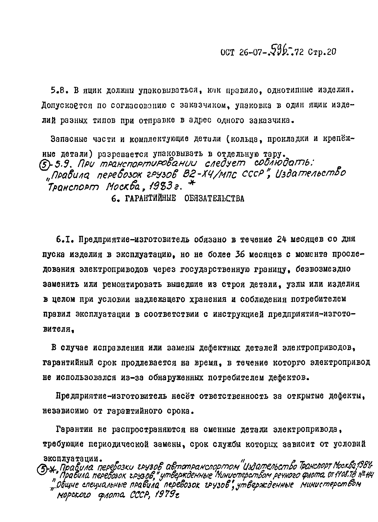 Электроприводы для трубопроводной арматуры, изготовляемые на экспорт, в том числе в страны с тропическим климатом. Технические требования| Обозначение: | ОСТ 26-07-596-72 | | Обозначение англ: | OST 26-07-596-72 | | Статус: | заменен | | Название рус.: | Электроприводы для трубопроводной арматуры, изготовляемые на экспорт, в том числе в страны с тропическим климатом. Технические требования | | Дата добавления в базу: | 01.09.2013 | | Дата актуализации: | 01.01.2021 | | Дата введения: | 01.10.1973 | | Дата окончания срока действия: | 01.10.2010 | | Область применения: | Настоящий стандарт распространяется на электроприводы нормального и взрывозащищенного исполнения для трубопроводной арматуры при поставке электроприводов на экспорт, в том числе в страны с тропическим климатом.