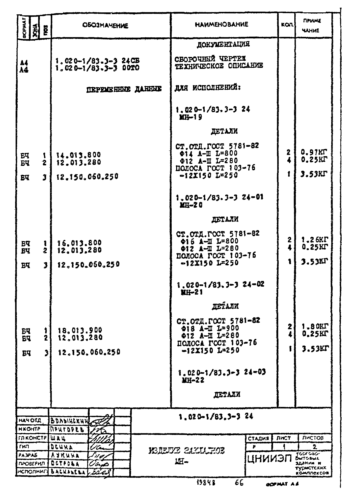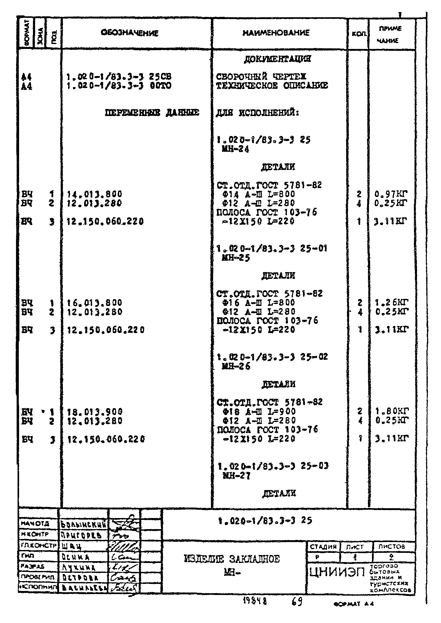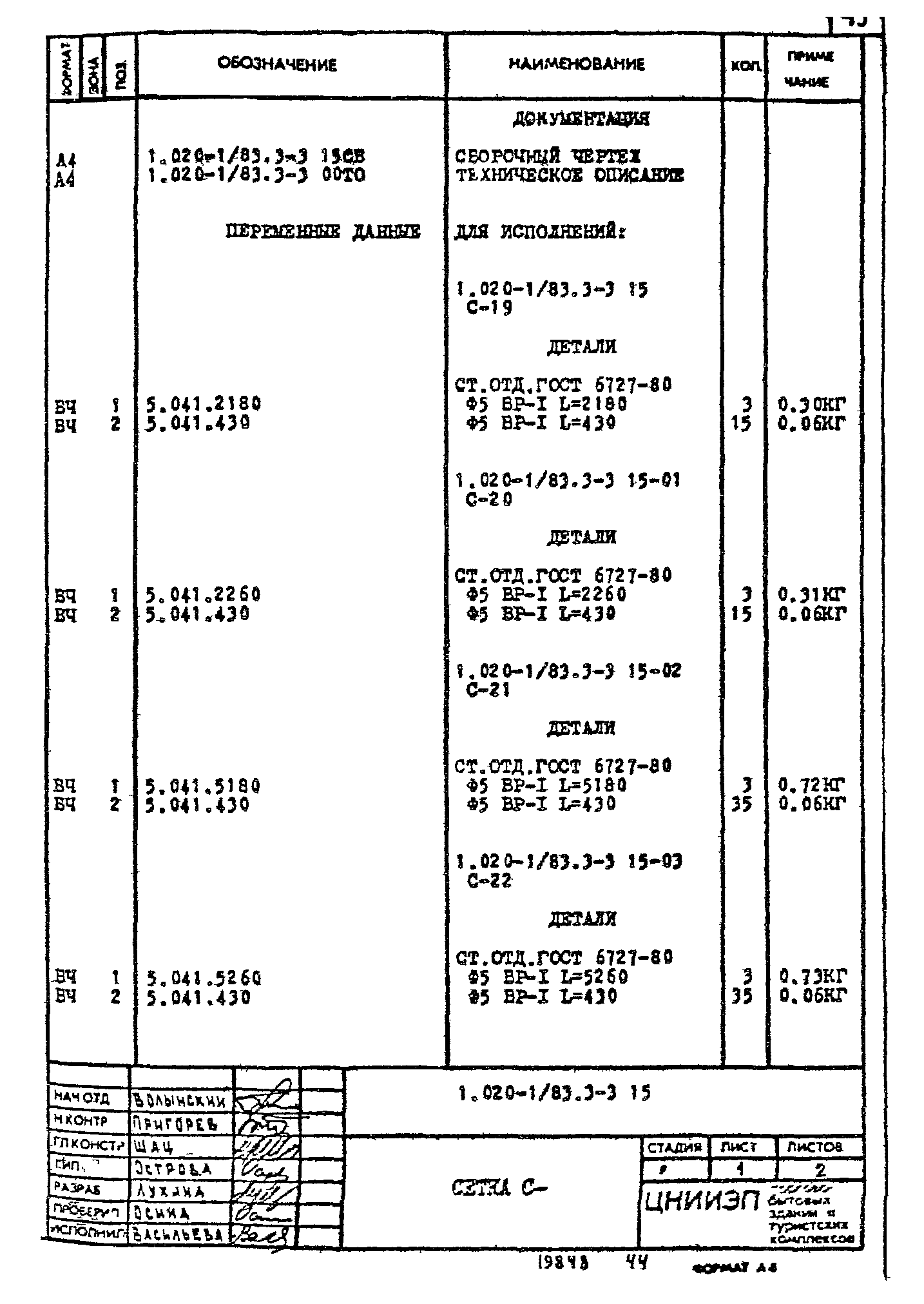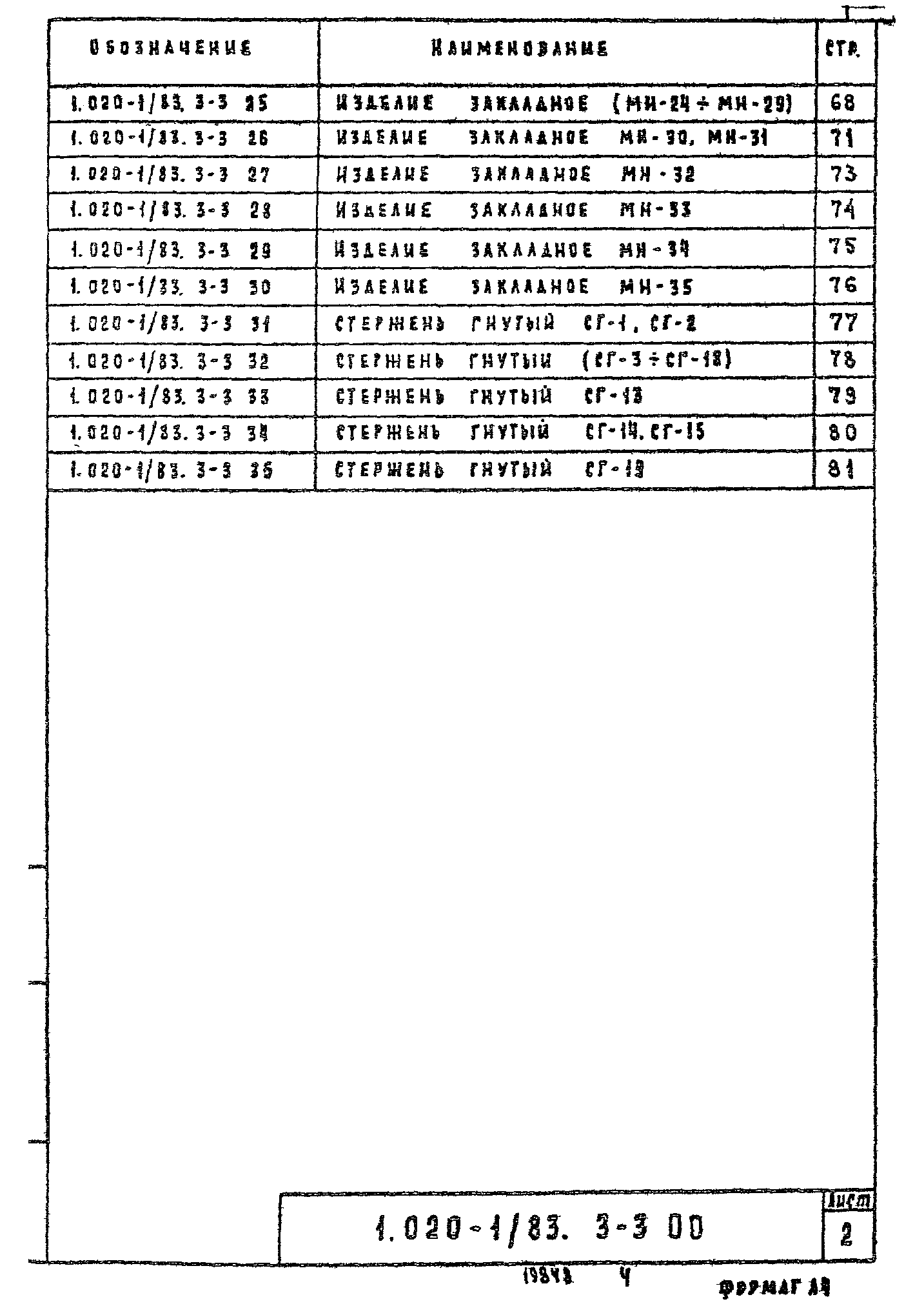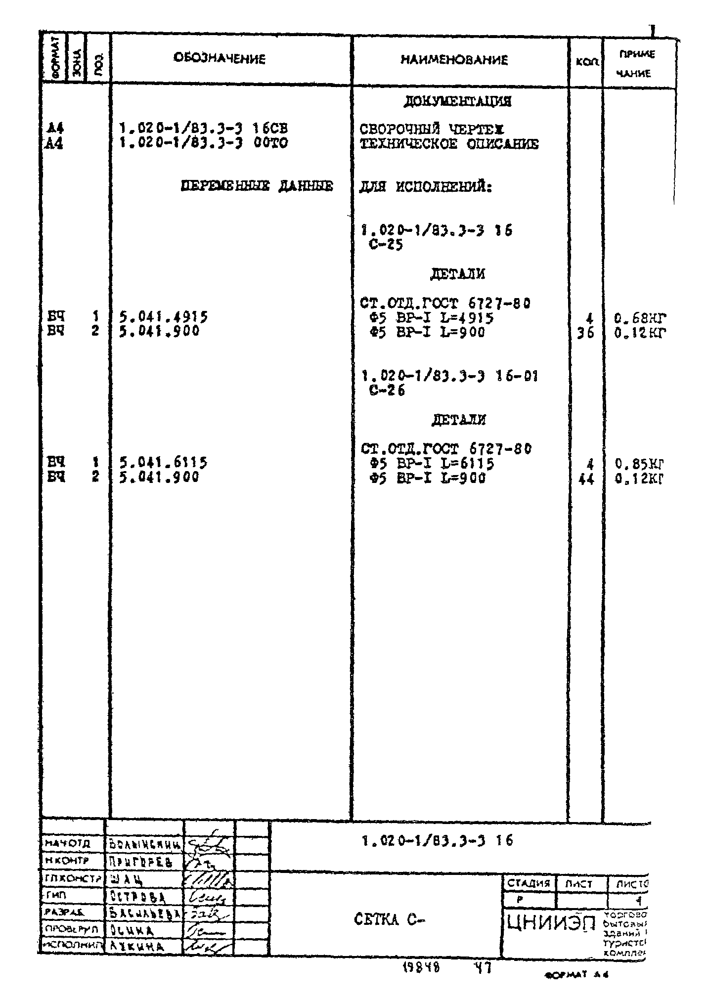 | Обозначение: | Серия 1.020-1/83 |