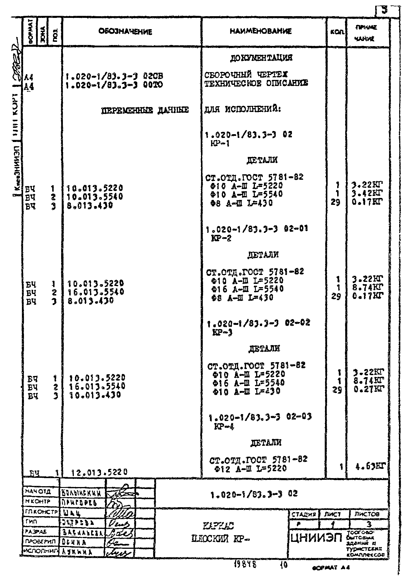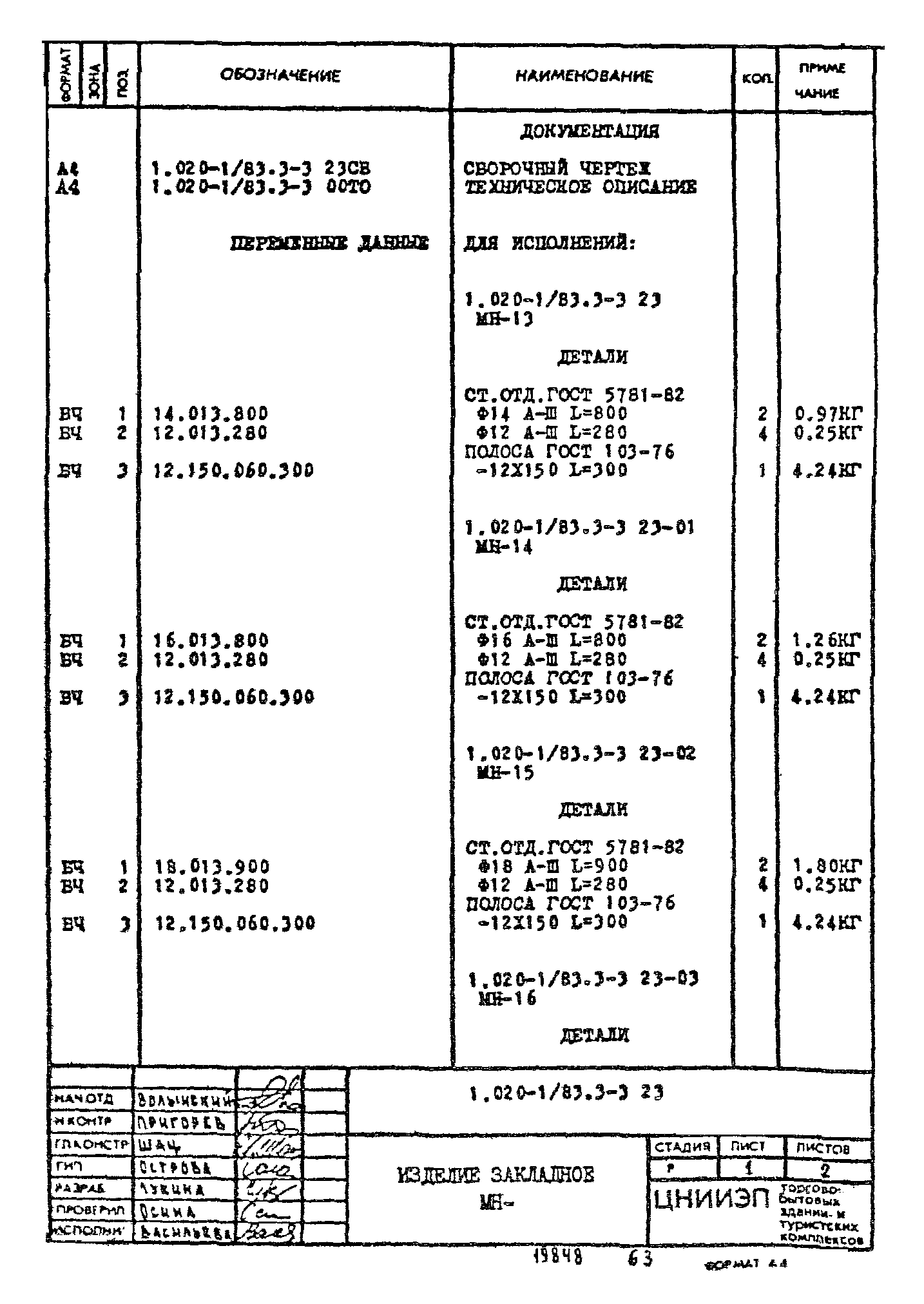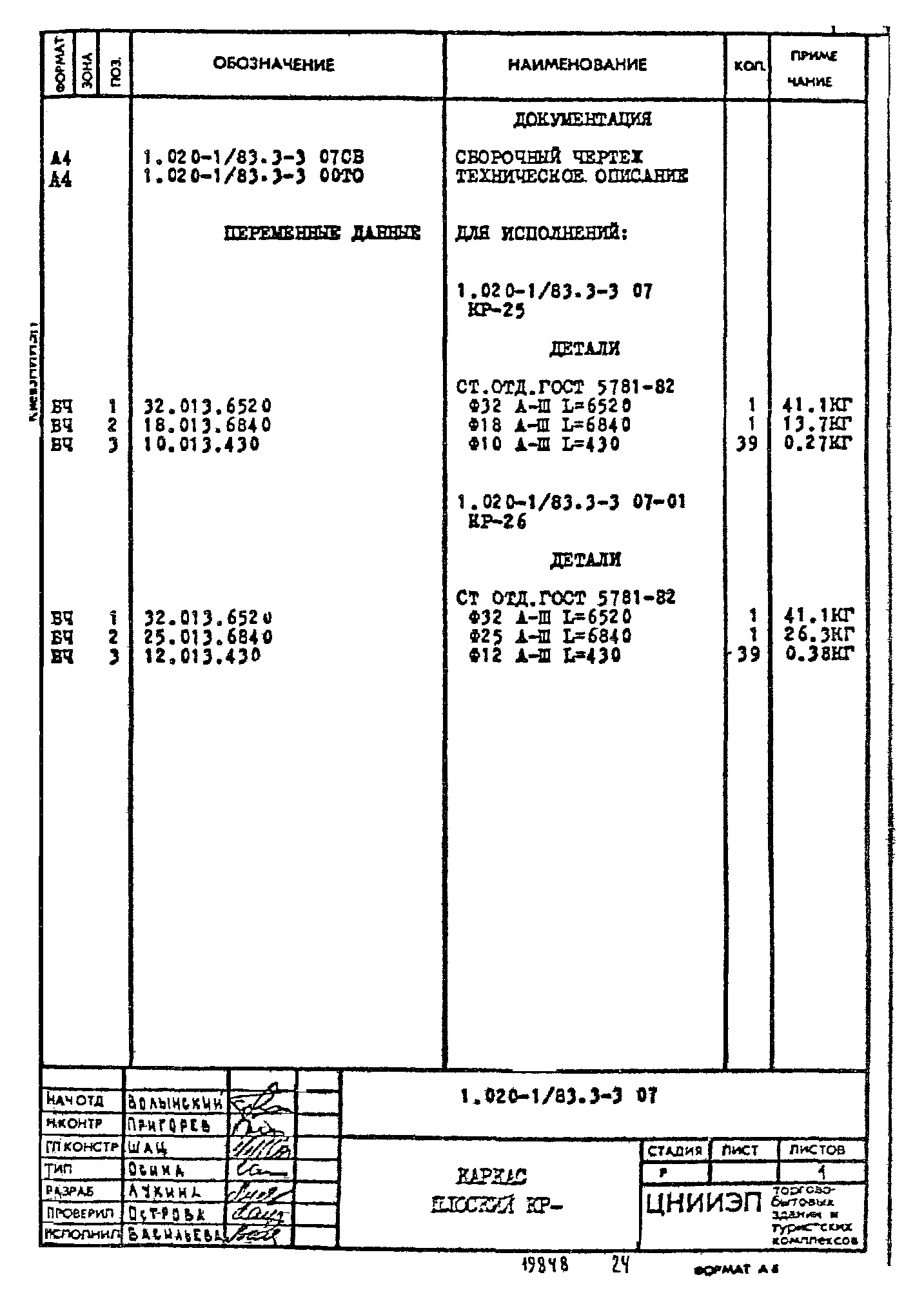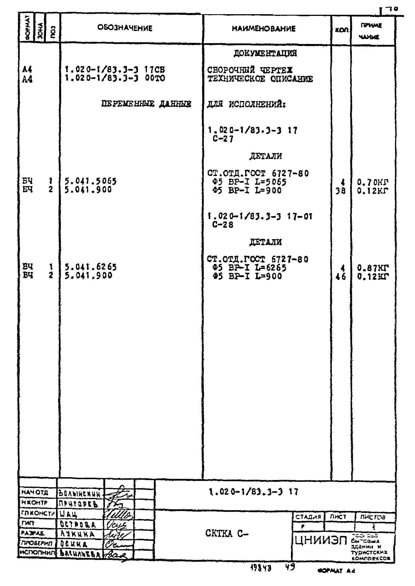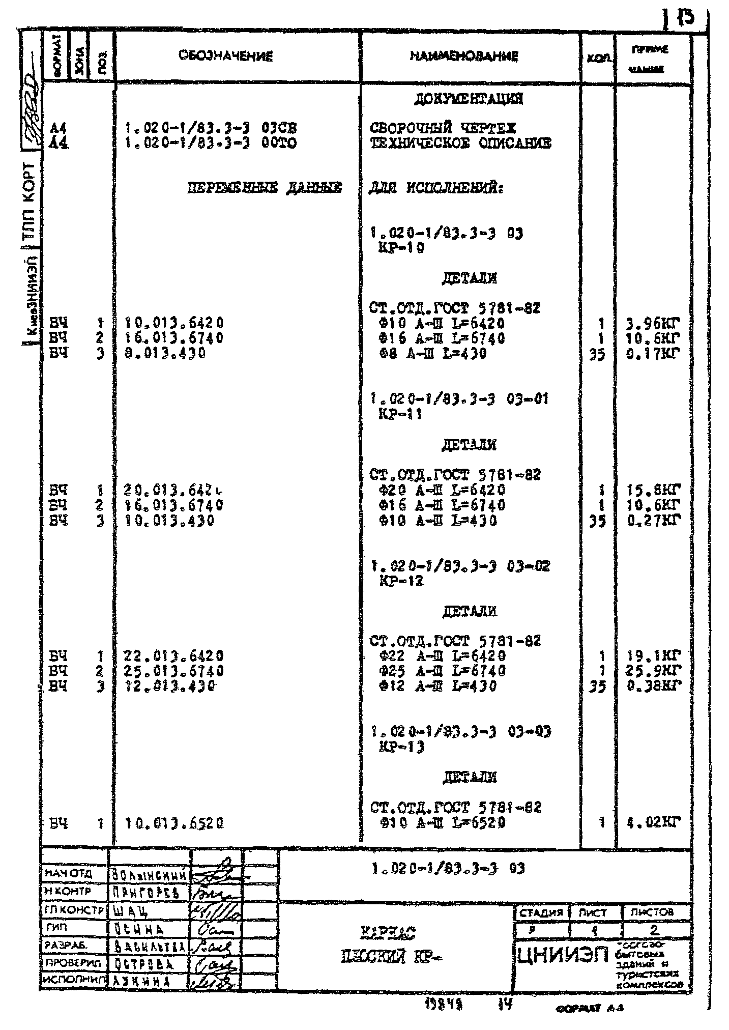 | Обозначение: | Серия 1.020-1/83 |