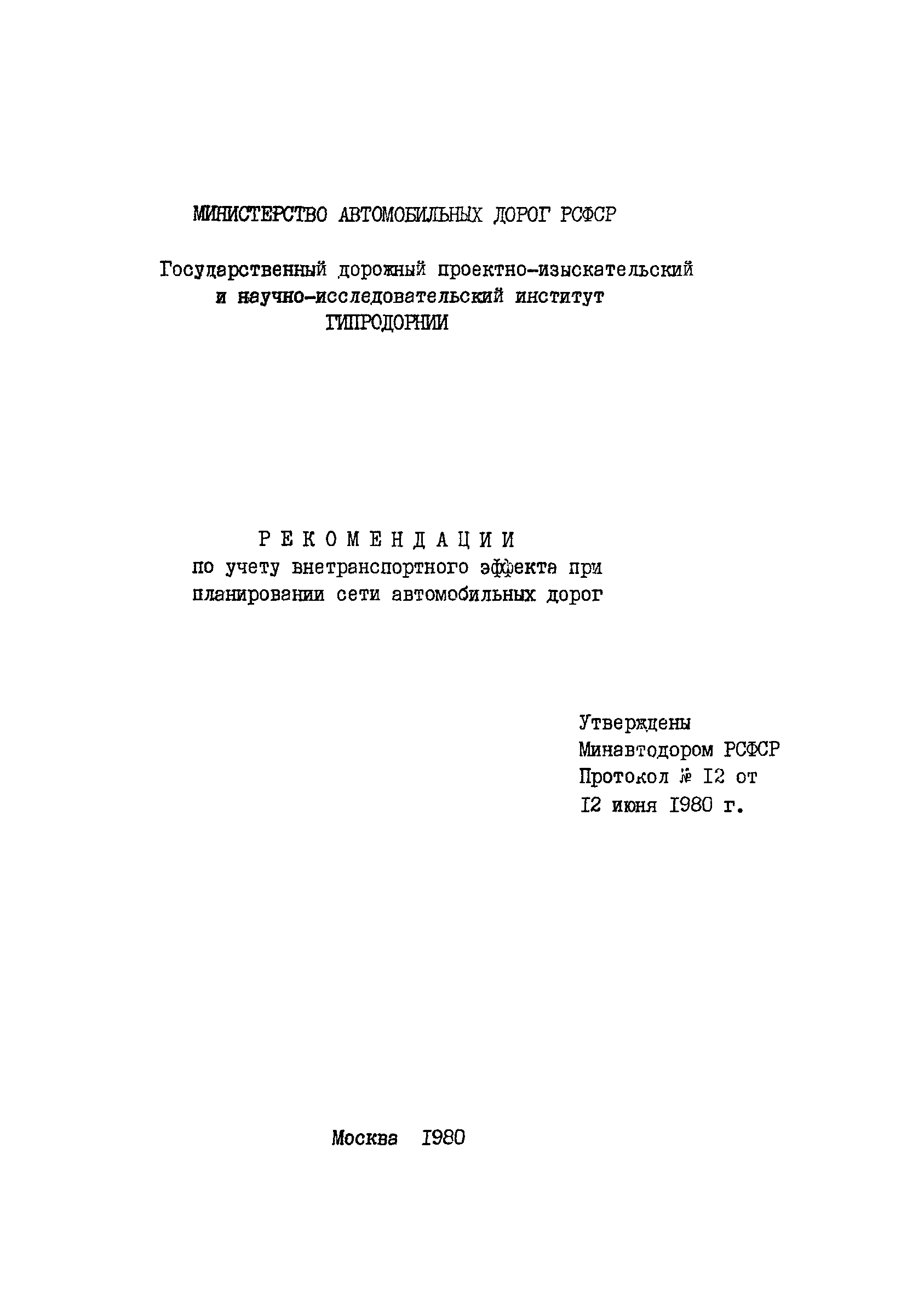| | Утверждён: | 12.06.1980 Минавтодор РСФСР (Russian Federation Minavtodor 12)