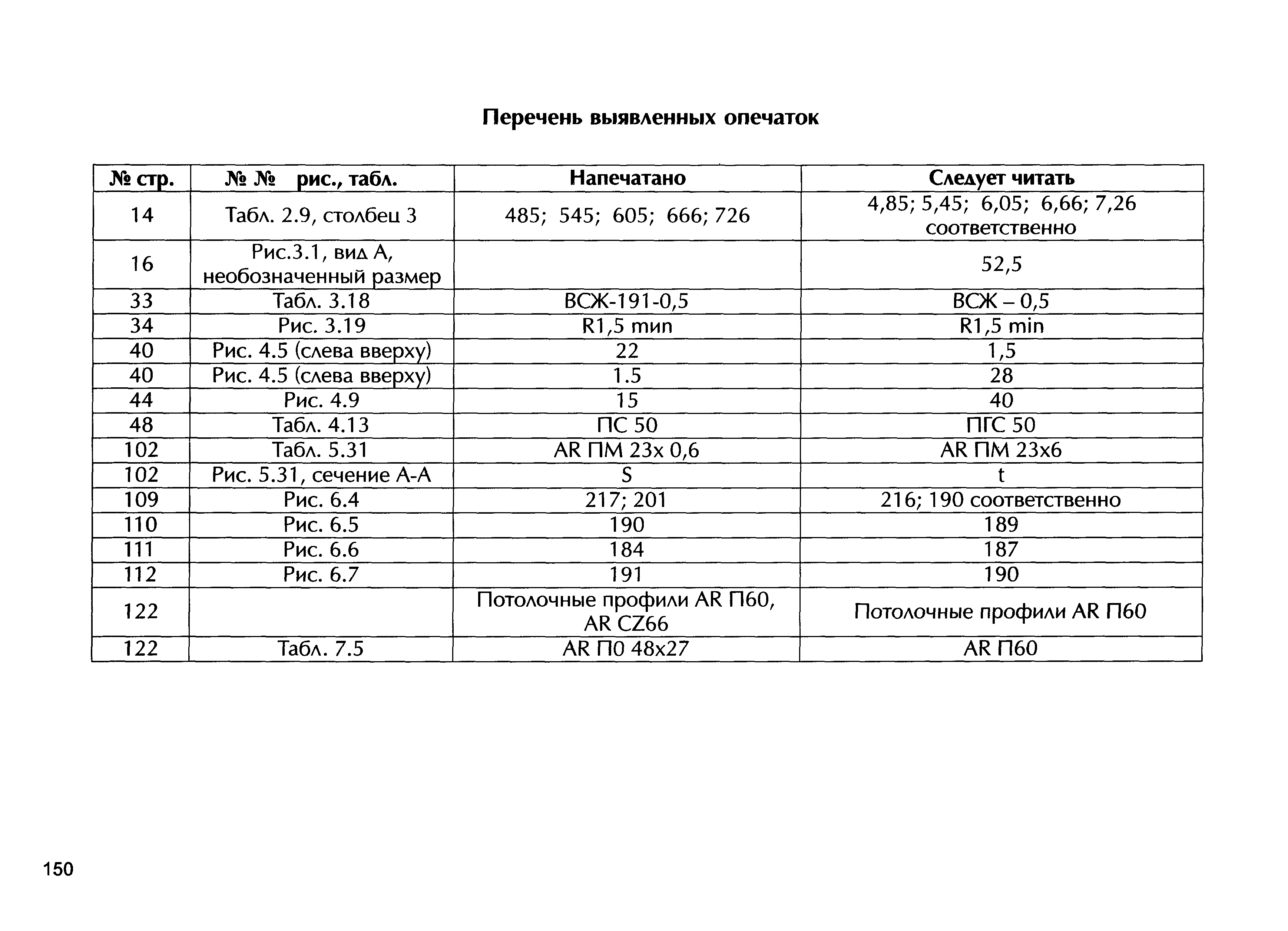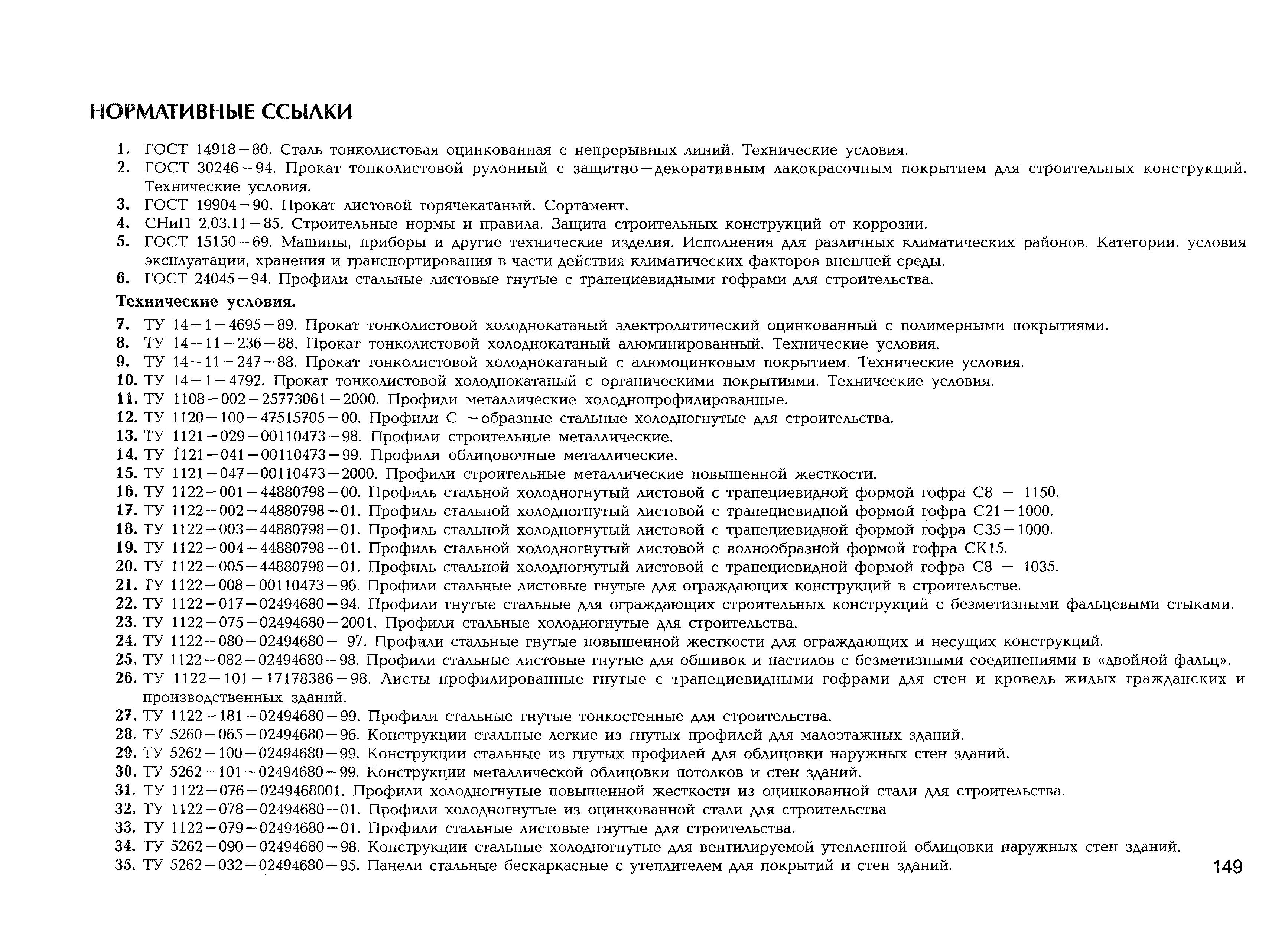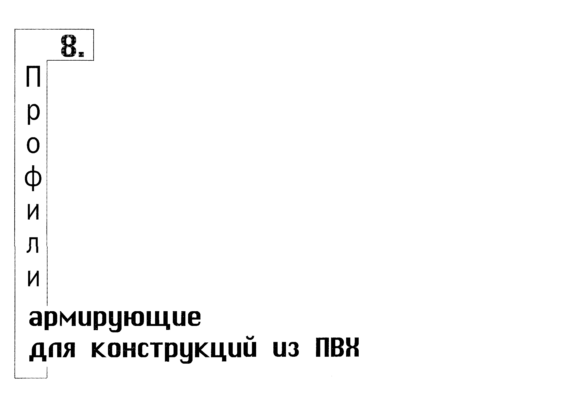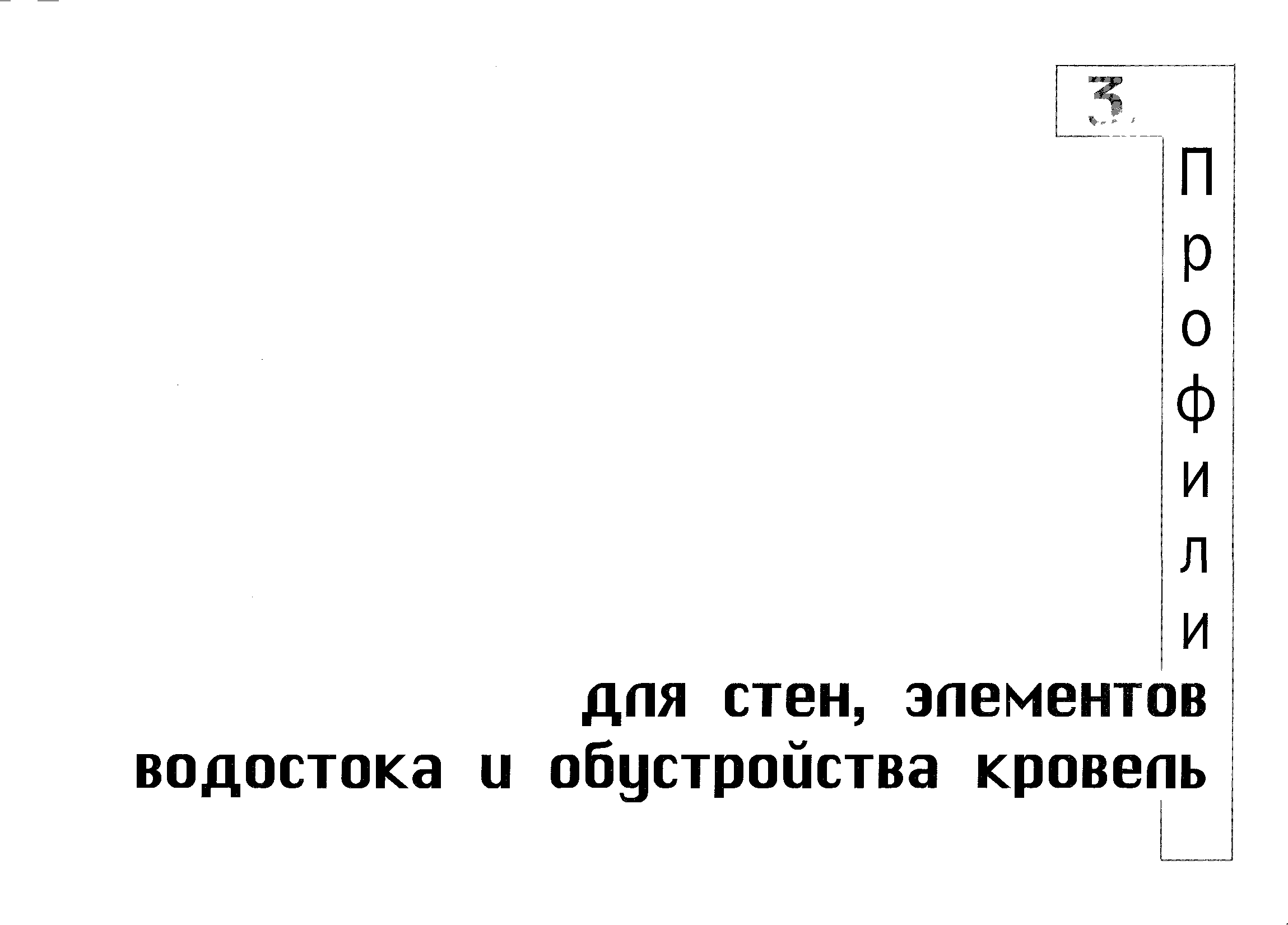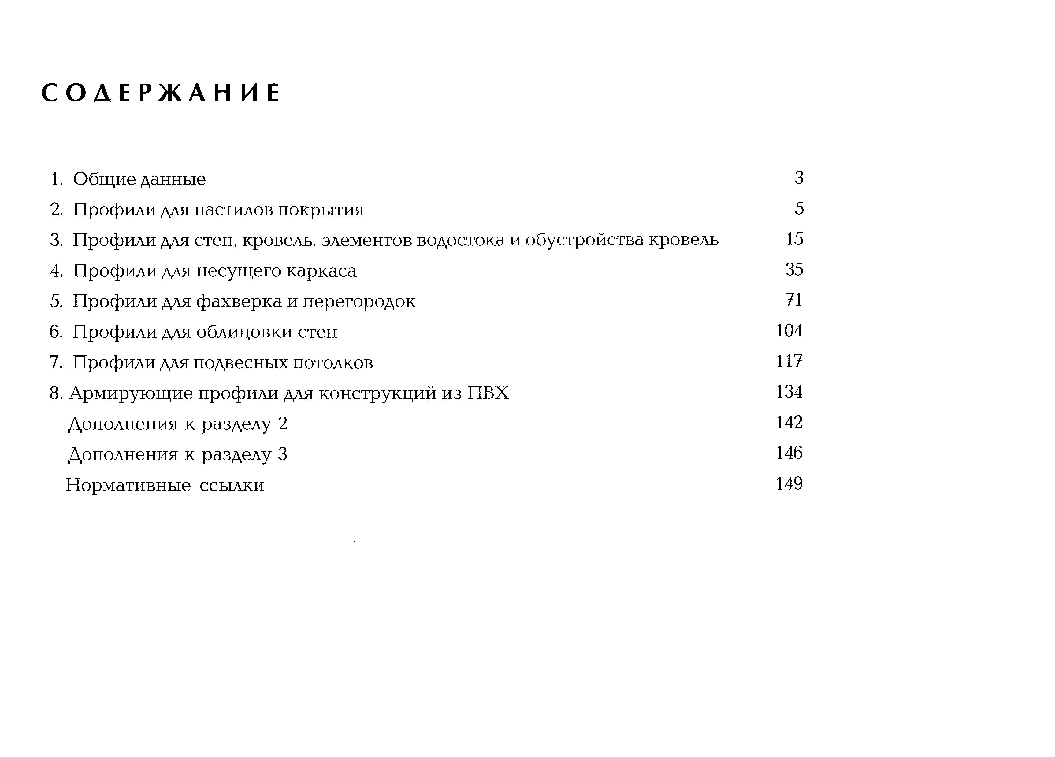 | Оглавление: | 1 Общие данные 2 Профили для настилов покрытия 3 Профили для стен, кровель, элементов водостока и обустройства кровель 4 Профили для несущего каркаса 5 Профили для фахверка и перегородок 6 Профили для облицовки стен 7 Профили для подвесных потолков 8 Армирующие профили для конструкций из ПВХ Дополнения к разделу 2 Дополнения к разделу 3 Нормативные ссылки |