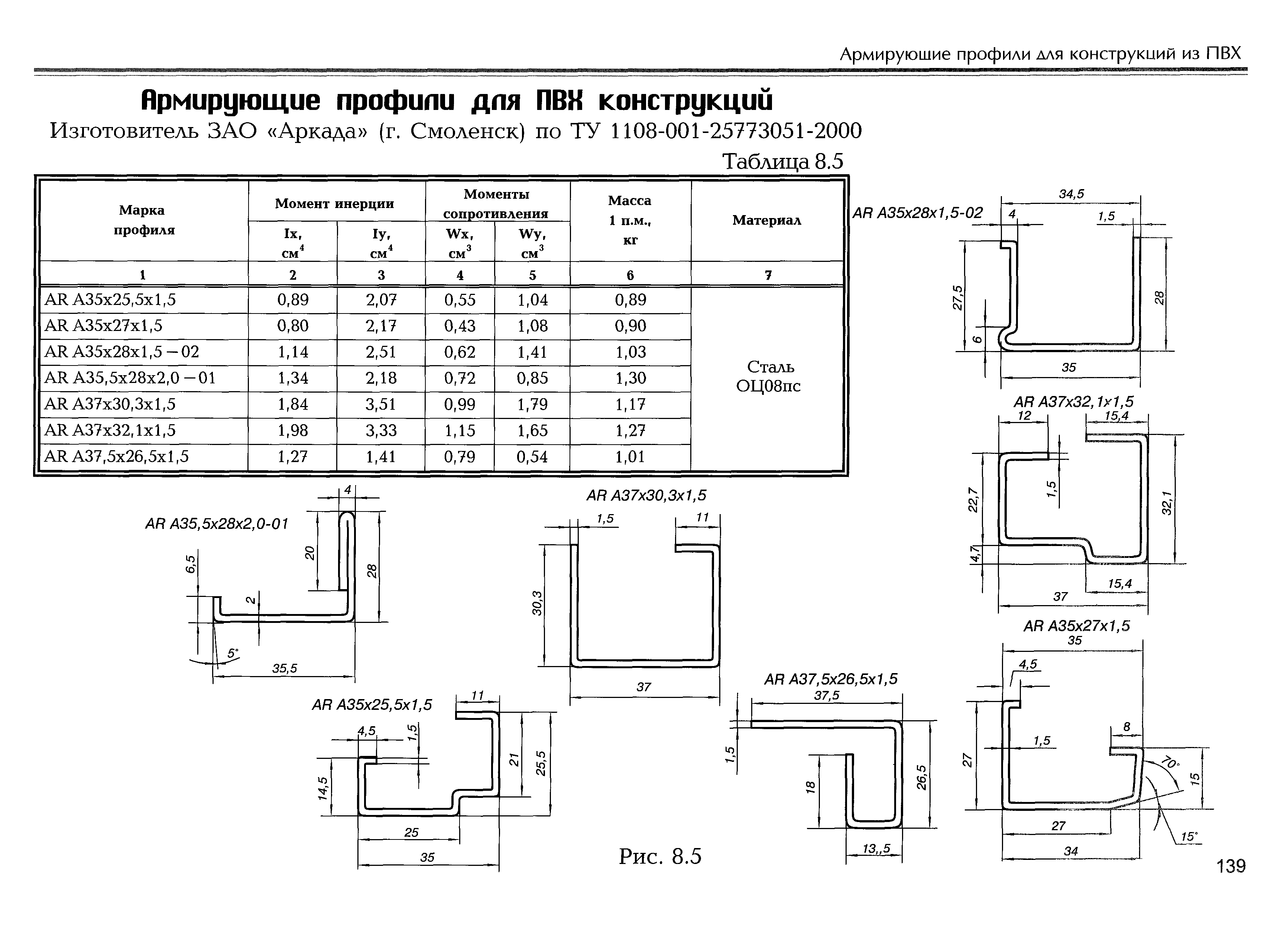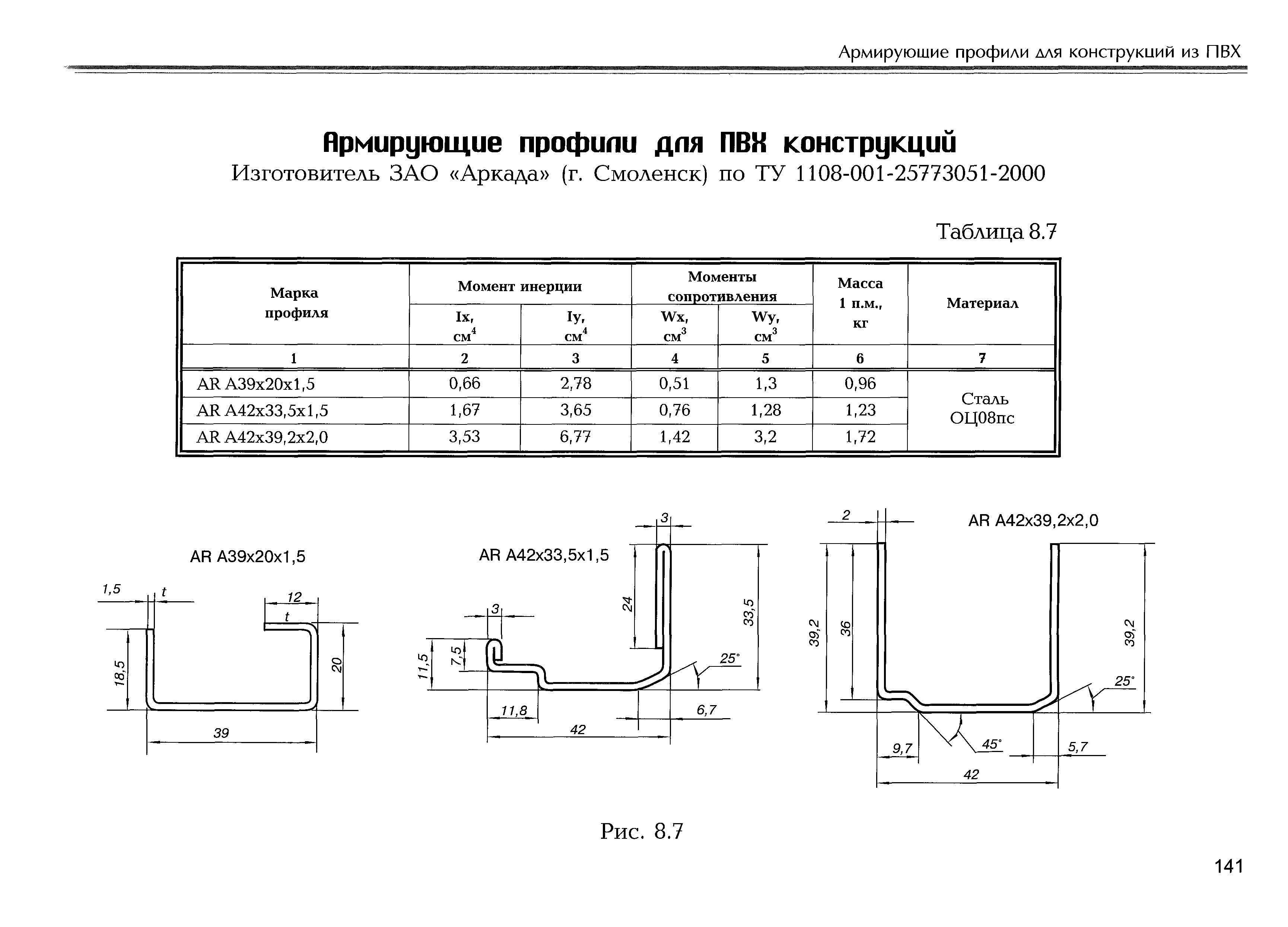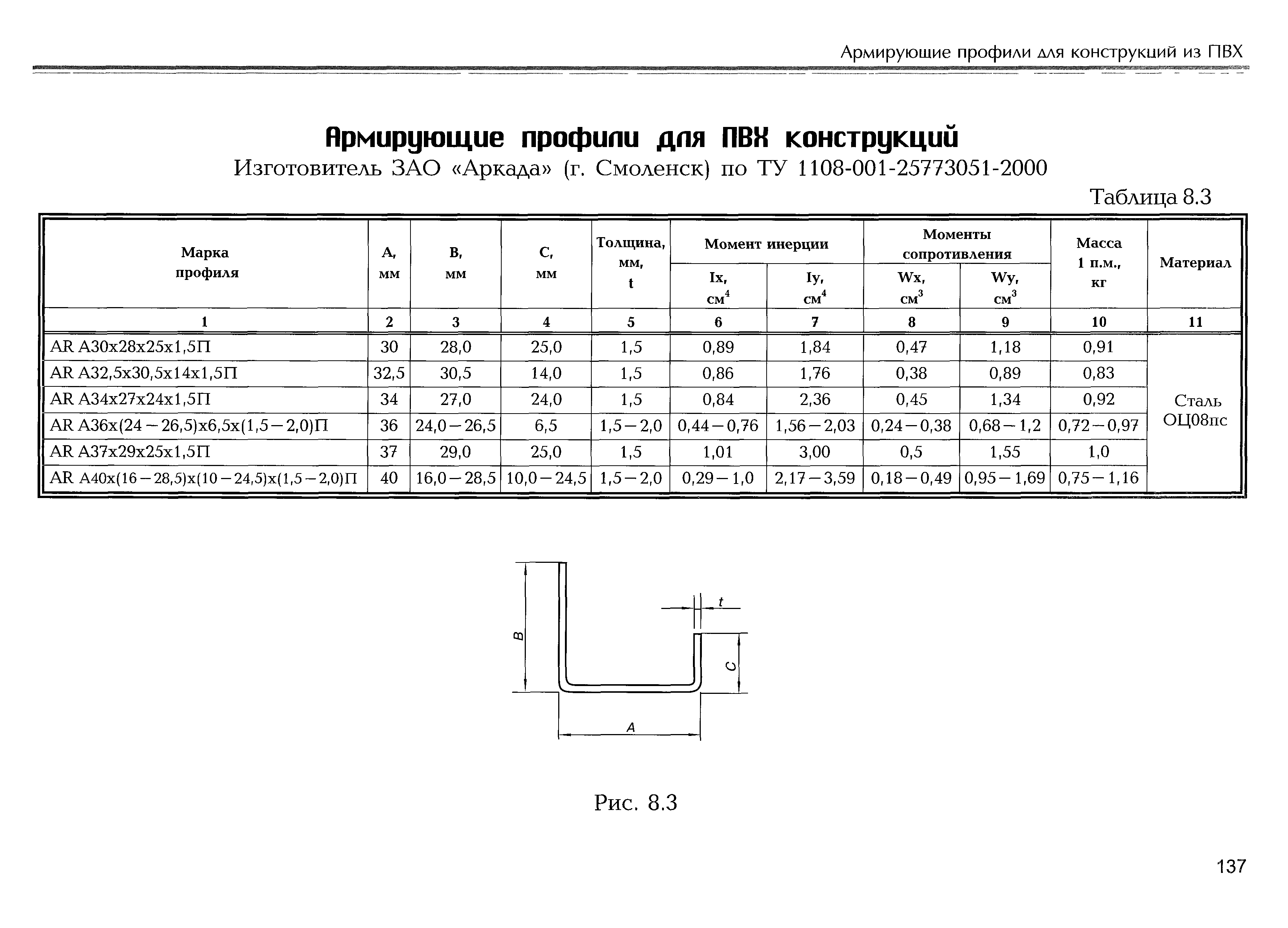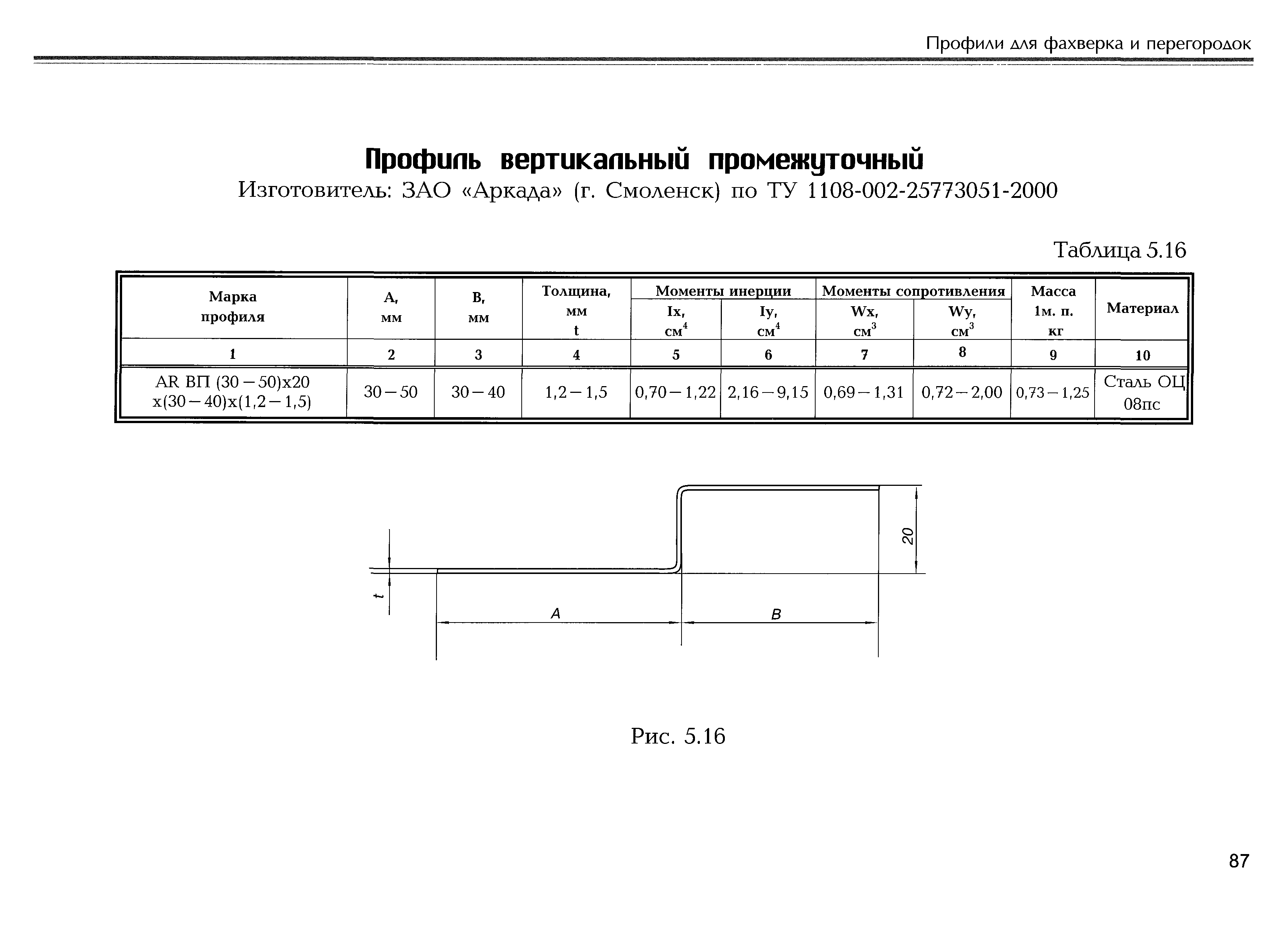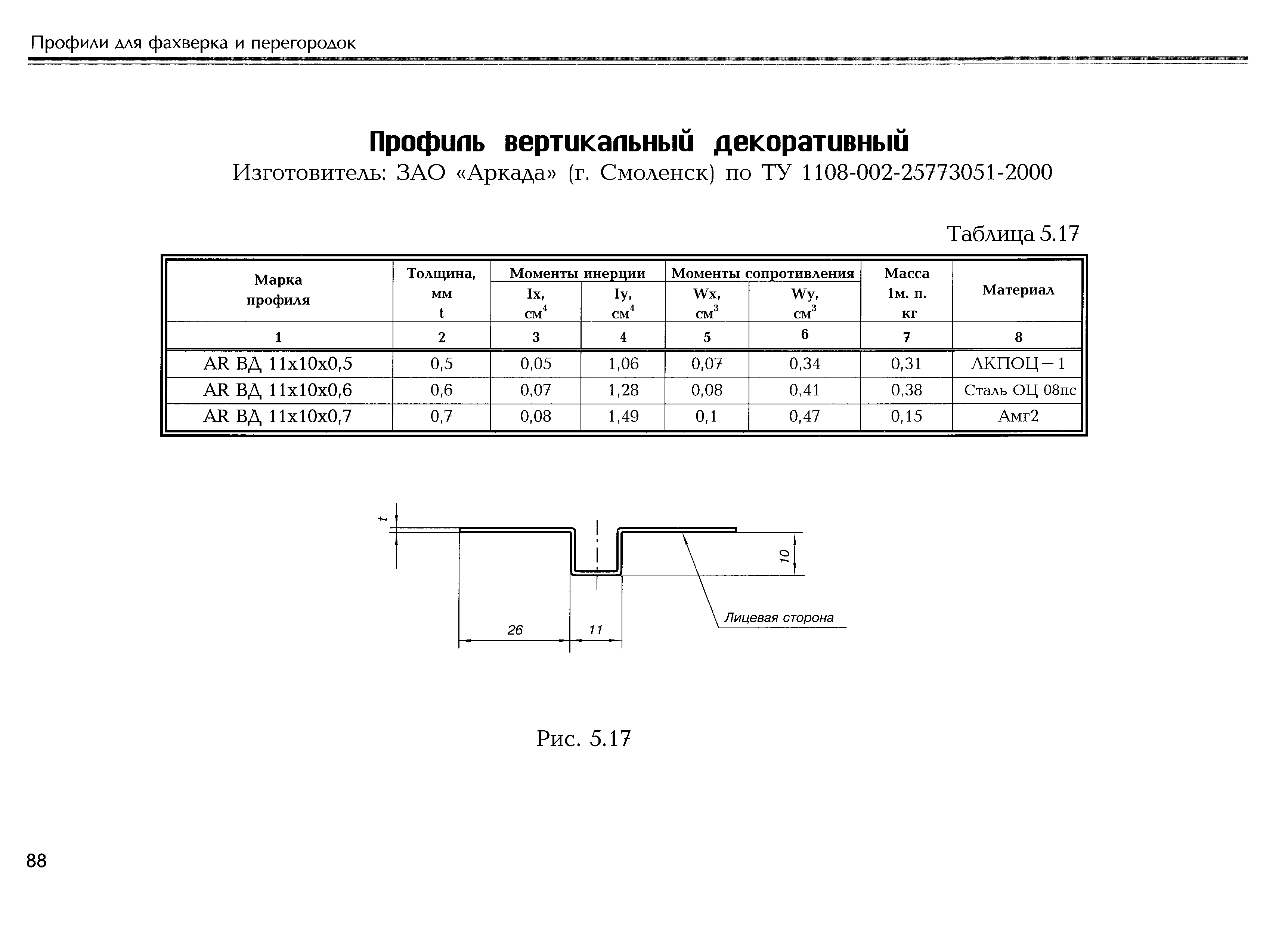 | Оглавление: | 1 Общие данные 2 Профили для настилов покрытия 3 Профили для стен, кровель, элементов водостока и обустройства кровель 4 Профили для несущего каркаса 5 Профили для фахверка и перегородок 6 Профили для облицовки стен 7 Профили для подвесных потолков 8 Армирующие профили для конструкций из ПВХ Дополнения к разделу 2 Дополнения к разделу 3 Нормативные ссылки |