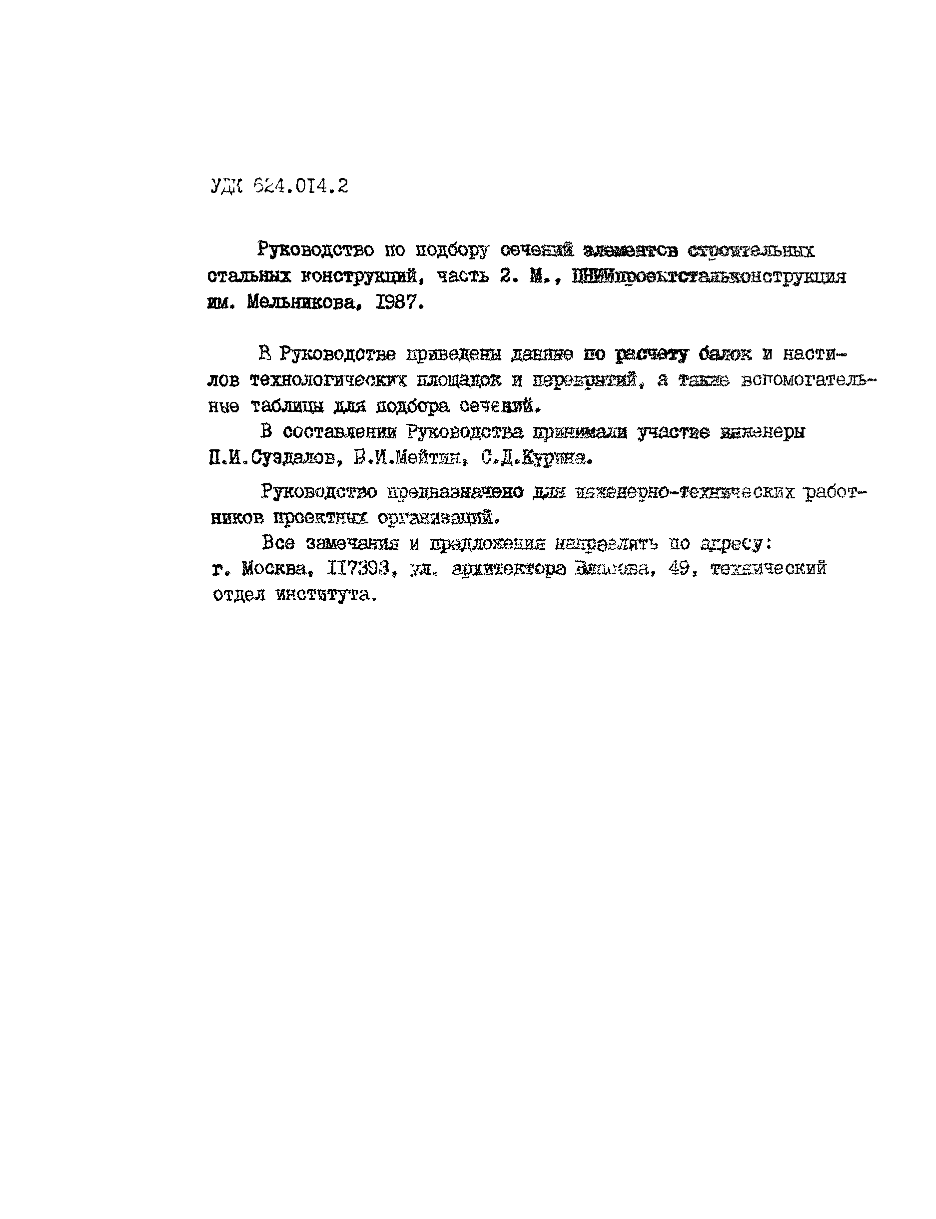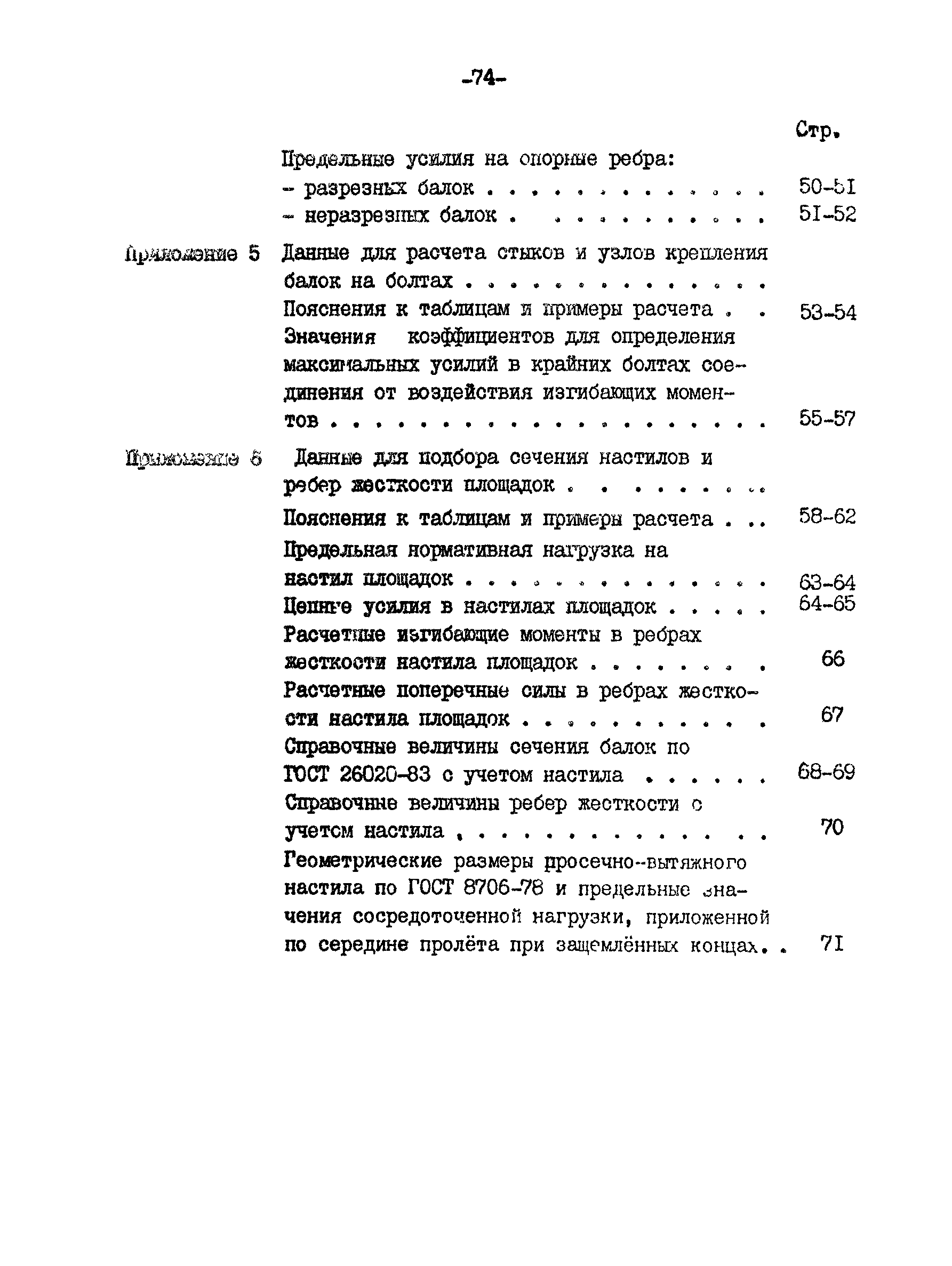 | Оглавление: | 1 Балки 2 Листовые настилы площадок 3 Сквозные настилы площадок 4 Опорные узлы балок и монтажные стыки на высокопрочных болтах Приложение 1. Предельные усилия для балок Приложение 2. Данные для расчета балок с учетом пластических деформаций Приложение 3. Секториальные геометрические характеристики профилей Приложение 4. Ребра жесткости балок Приложение 5. Данные для расчета стыков и узлов крепления балок на болтах Приложение 6. Данные для подбора сечения настилов и ребер жесткости площадок |