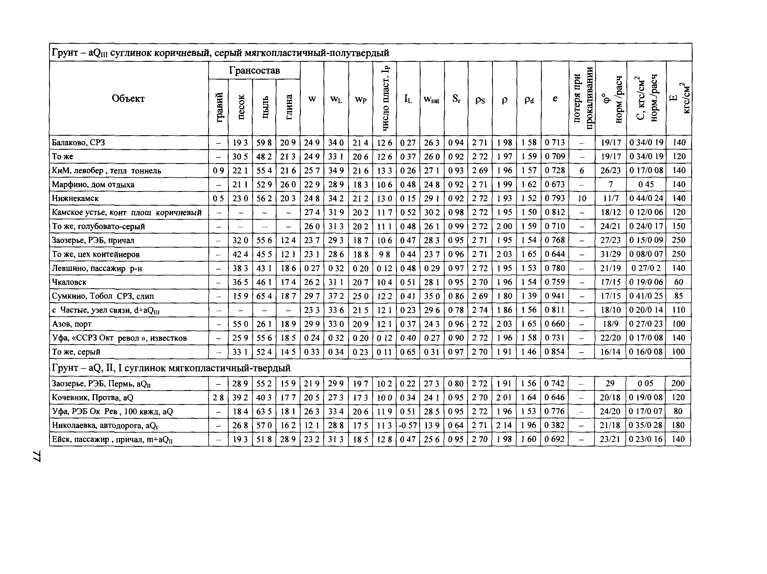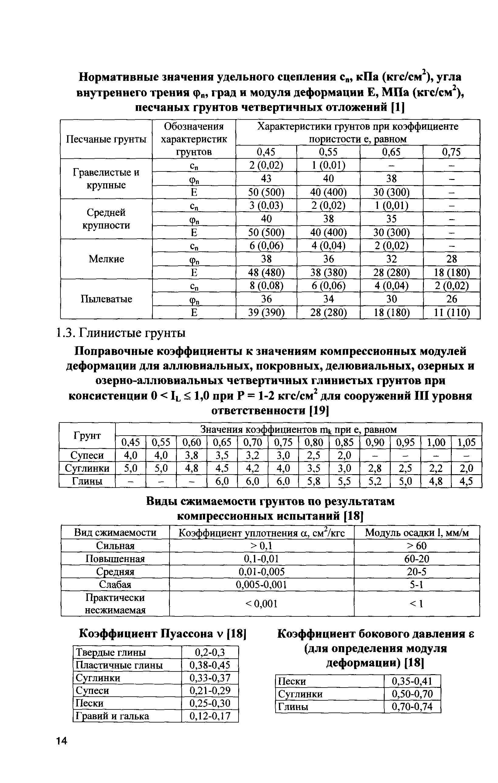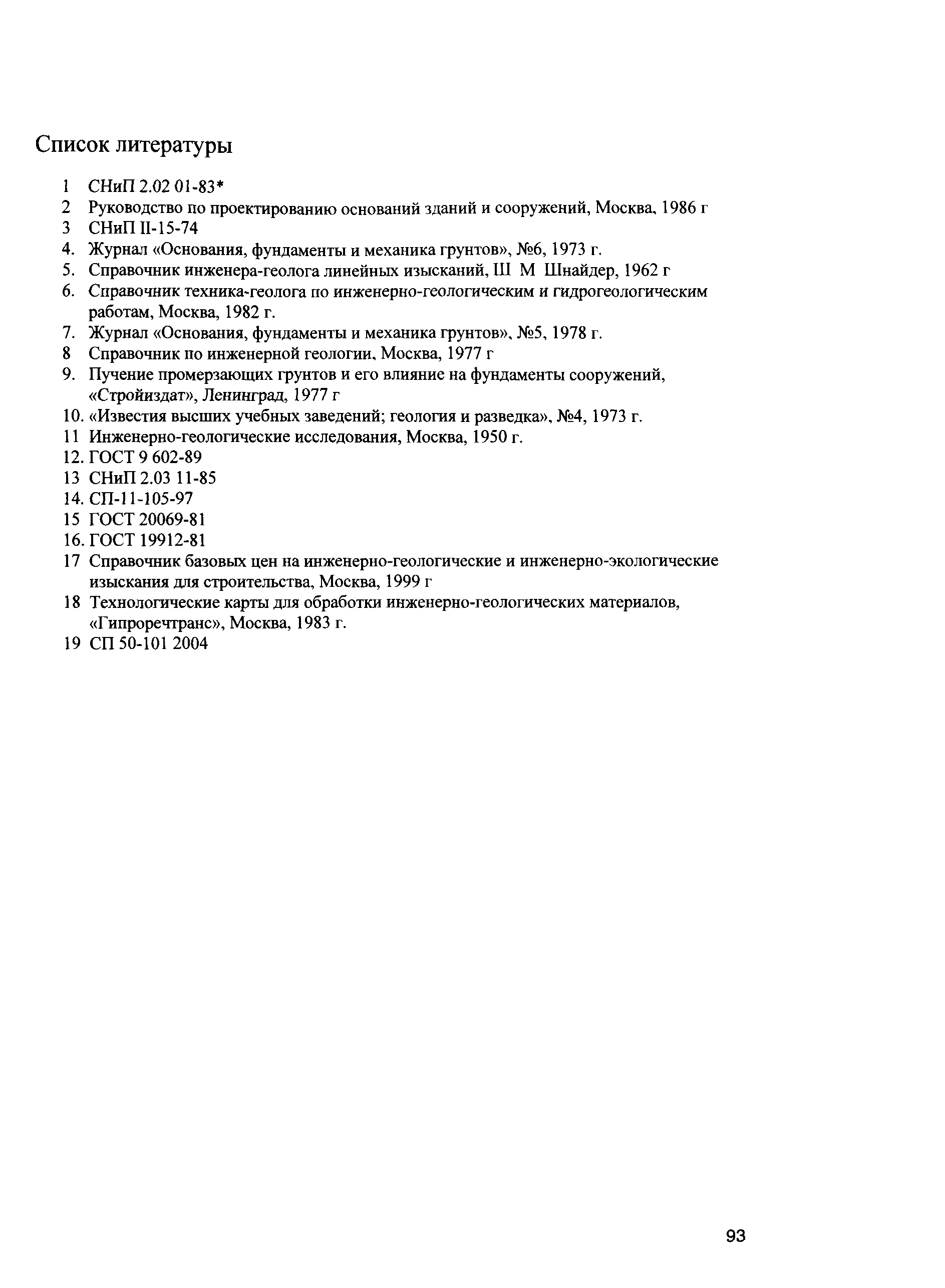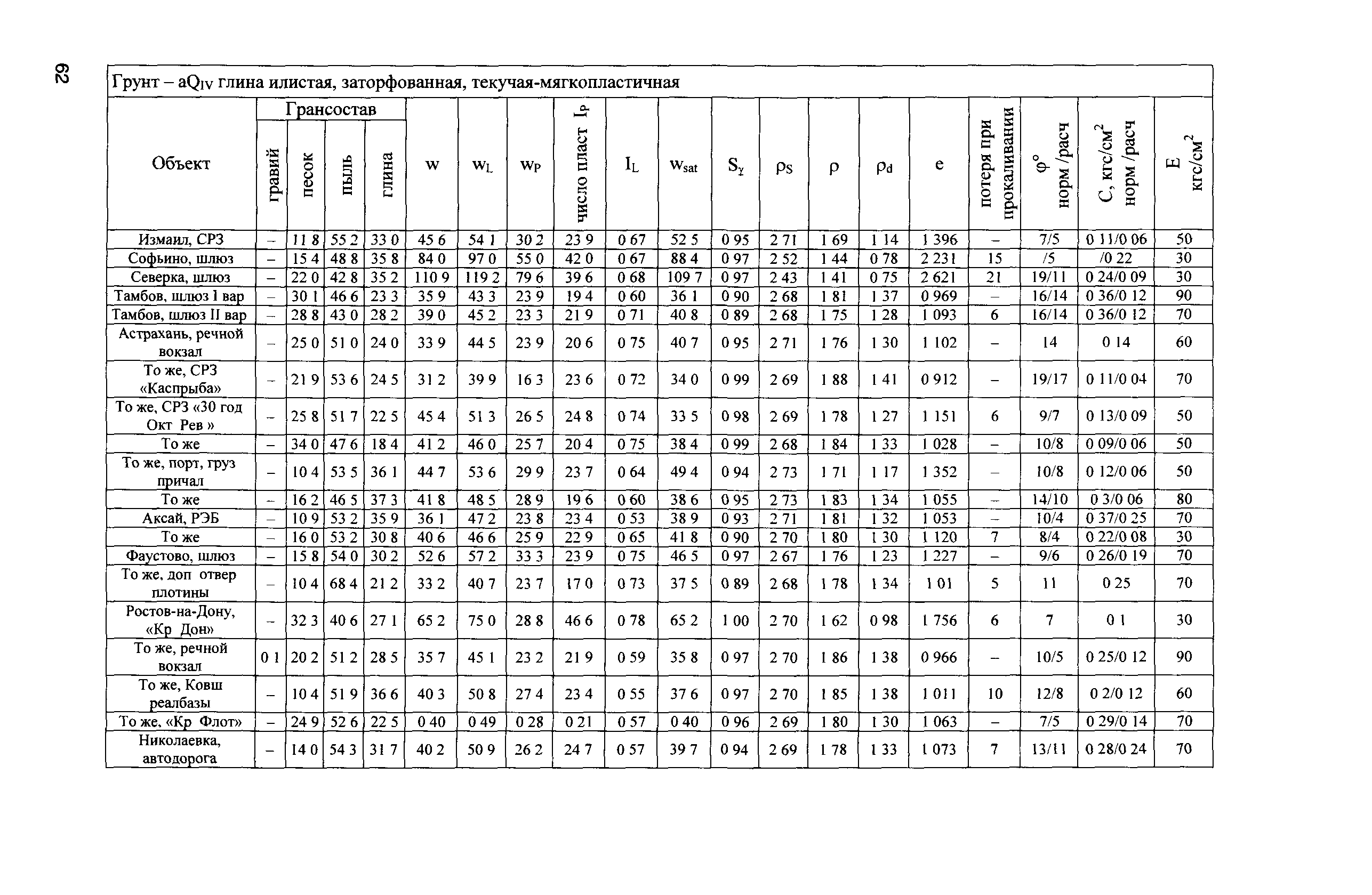 | Оглавление: | Введение 1 Геотехнические характеристики грунтов 1.1 Общие сведения 1.2 Песчаные грунты 1.3 Глинистые грунты 1.4 Скальные грунты 2 Просадочность грунтов 3 Морозное пучение грунтов 4 Коррозионная агрессивность грунтов 5 Агрессивность жидкой среды 6 Статическое и динамическое зондирование 7 Гидрогеологические расчеты 8 Проектно-сметная документация на буровые и лабораторные работы Приложение 1 Физико-механические свойства грунтов по некоторым регионам по данным изыскательских организаций Приложение 2 Вспомогательные материалы Список литературы |
