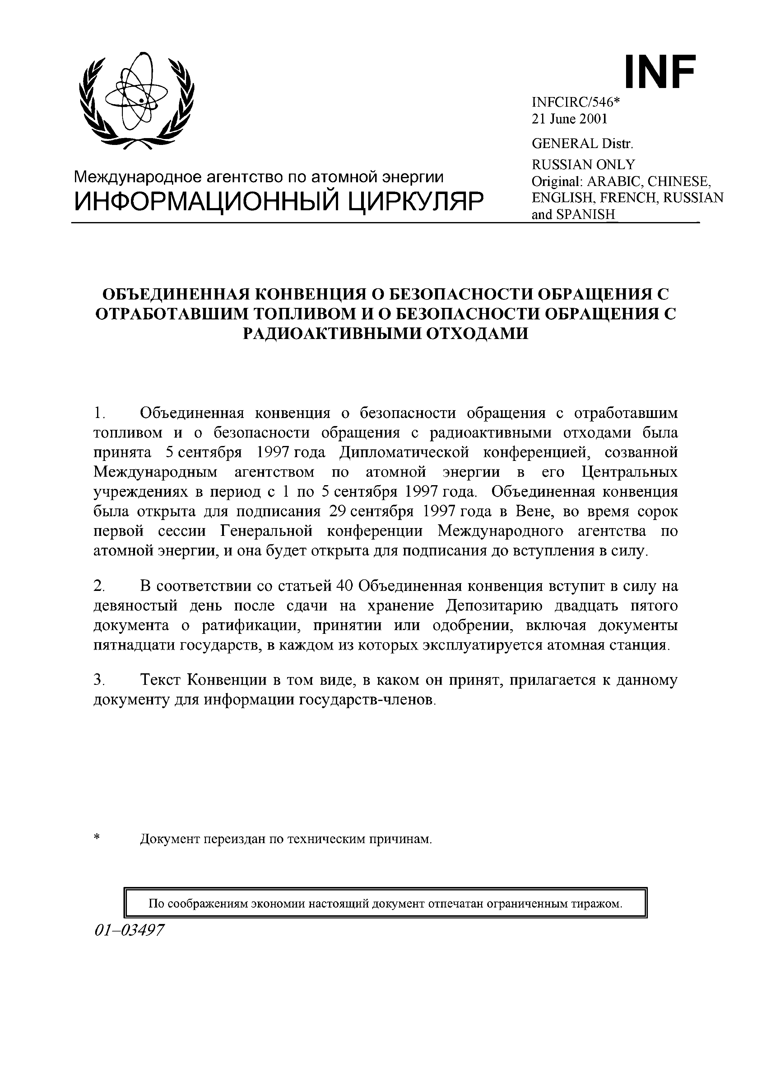 | Название рус.: | Объединенная Конвенция о безопасности обращения с отработавшим топливом и о безопасности обращения с радиоактивными отходами |