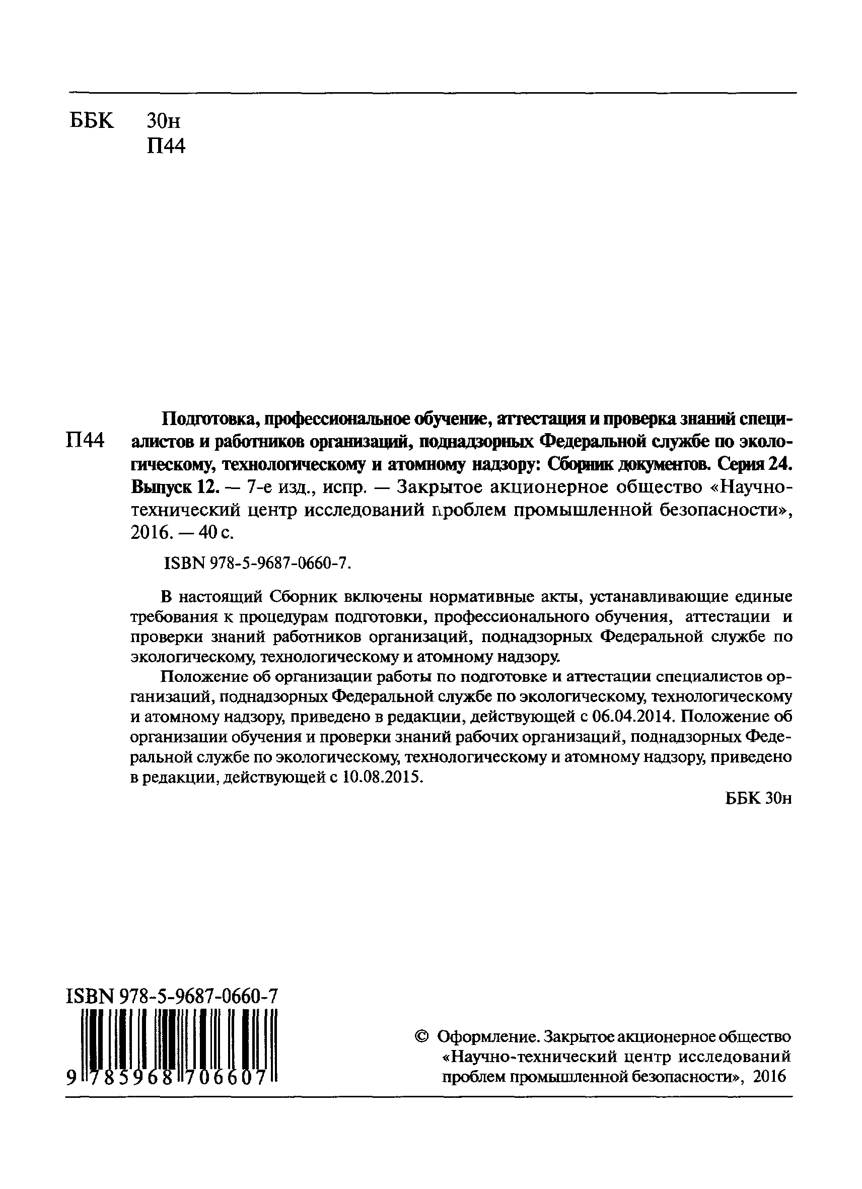 | Издан: | НТЦ Промышленная безопасность (2007 г. ) ЗАО НТЦ ПБ (2016 г. (Выпуск 12)) ЗАО Научно-технический центр исследований проблем промышленной безопасности (2010 г. (Выпуск 1)) |