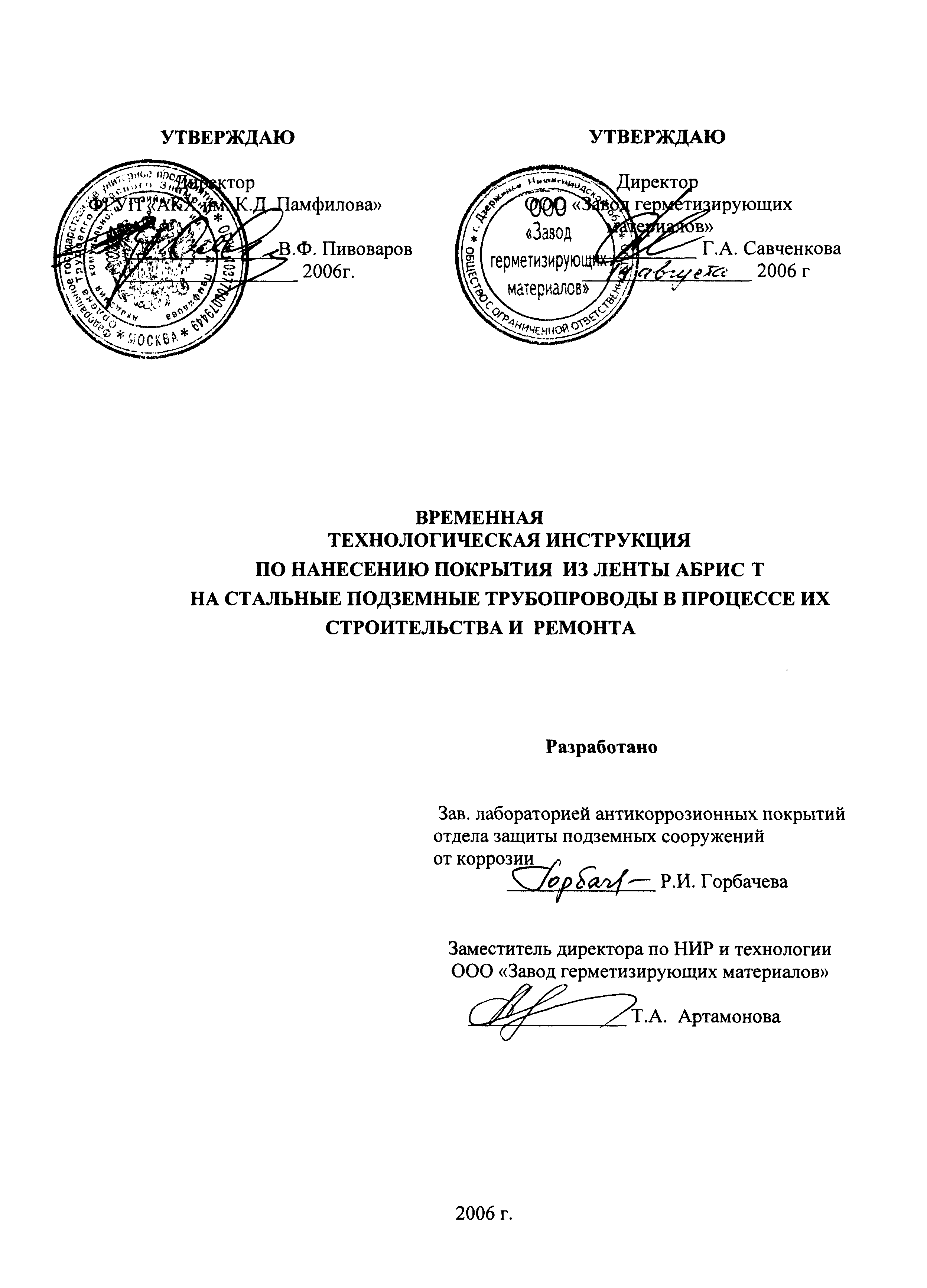 | Утверждён: | 14.08.2006 ООО Завод герметизирующих материалов 01.01.2006 ФГУП АКХ им. В.Ф. Памфилова |