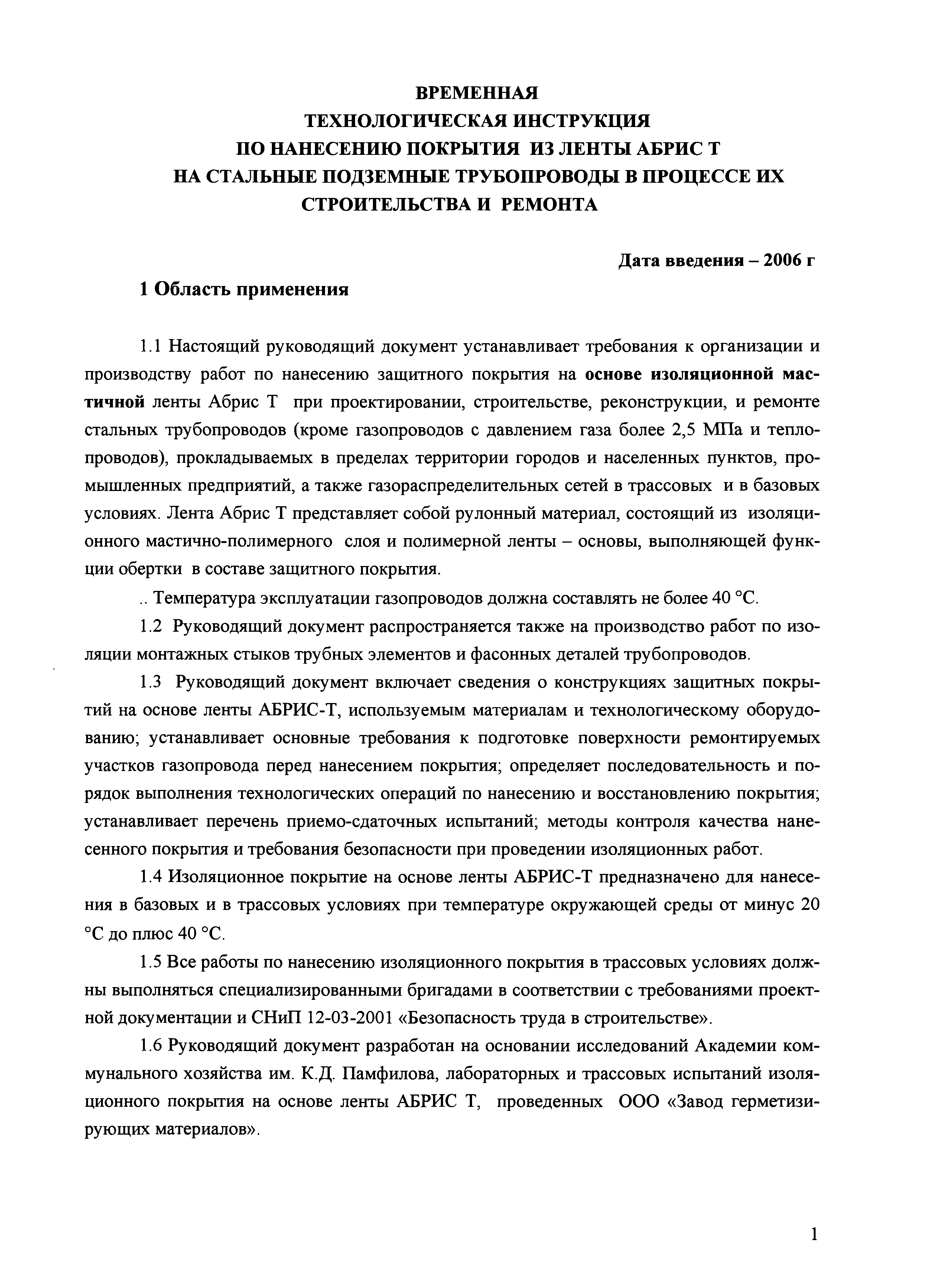 | Название рус.: | Временная технологическая инструкция по нанесению покрытия из ленты АБРИС Т на стальные подземные трубопроводы в процессе их строительства и ремонта |