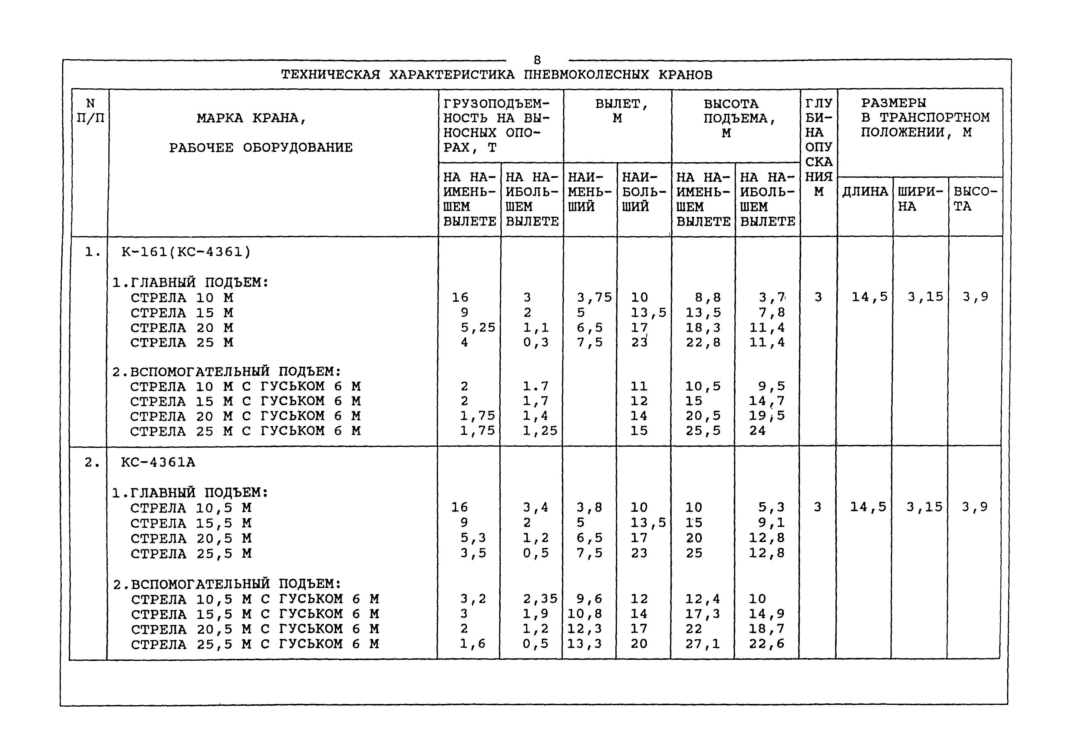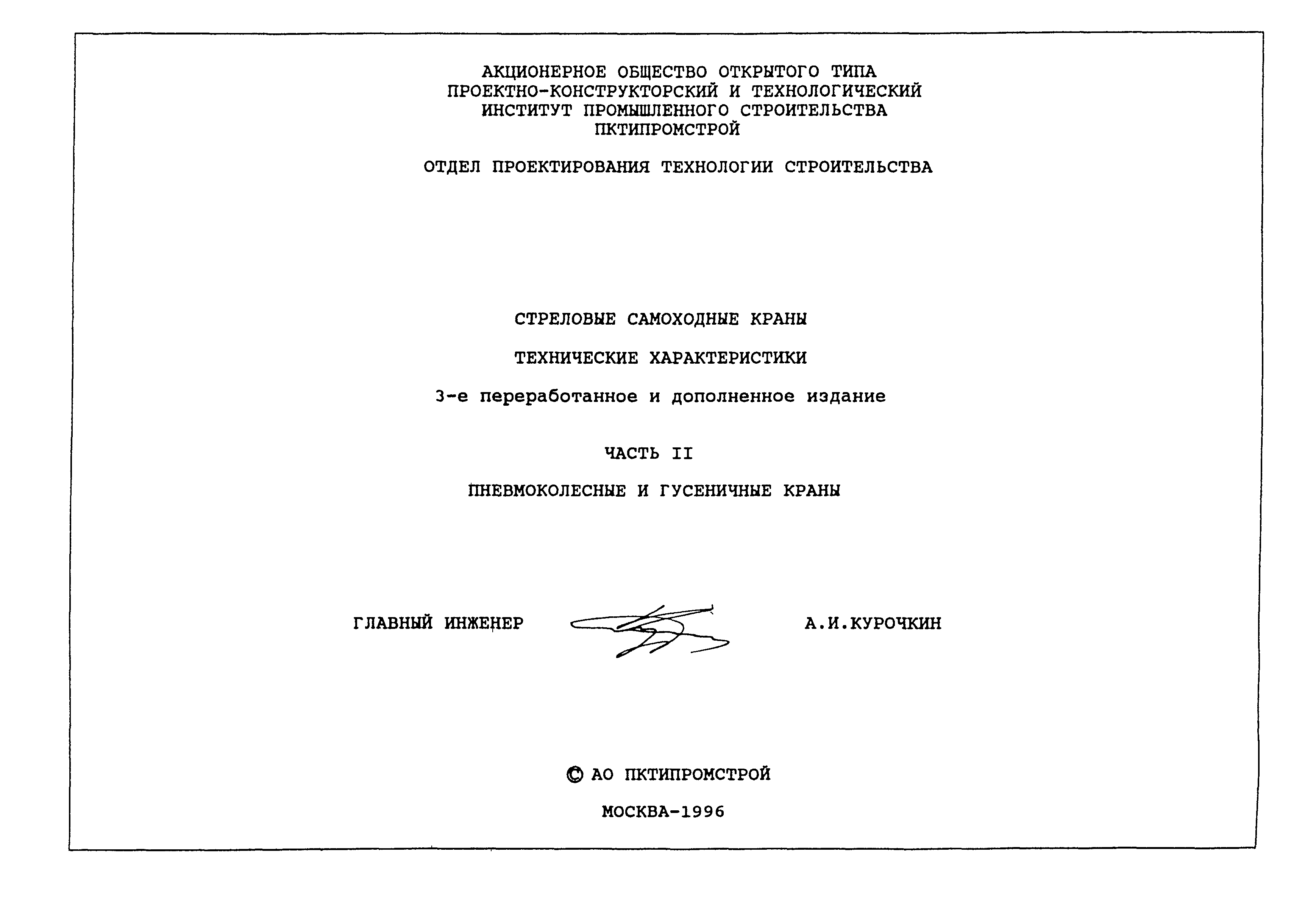 | Название рус.: | Стреловые самоходные краны. Технические характеристики. Часть II. Пневмоколесные и гусеничные краны |