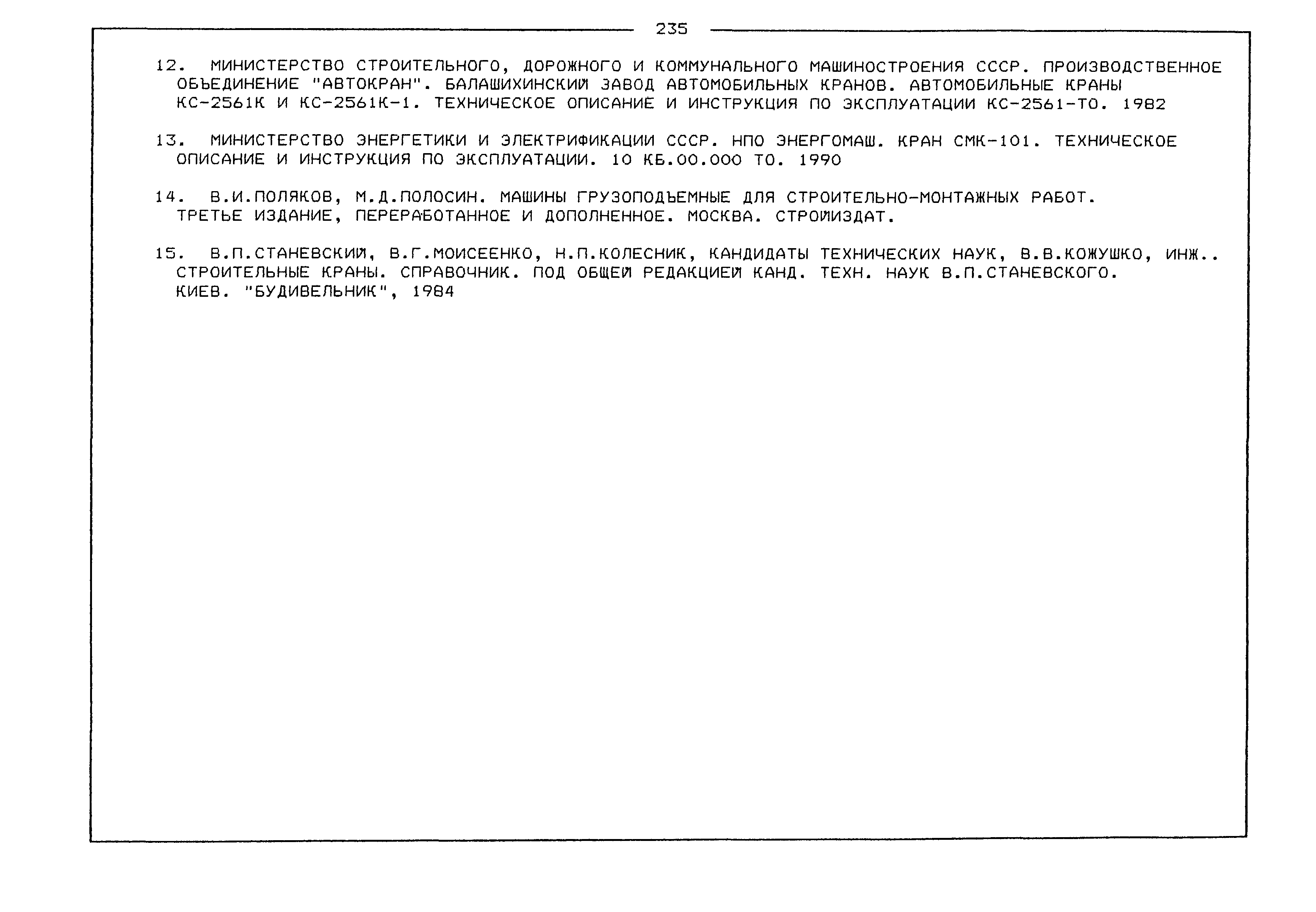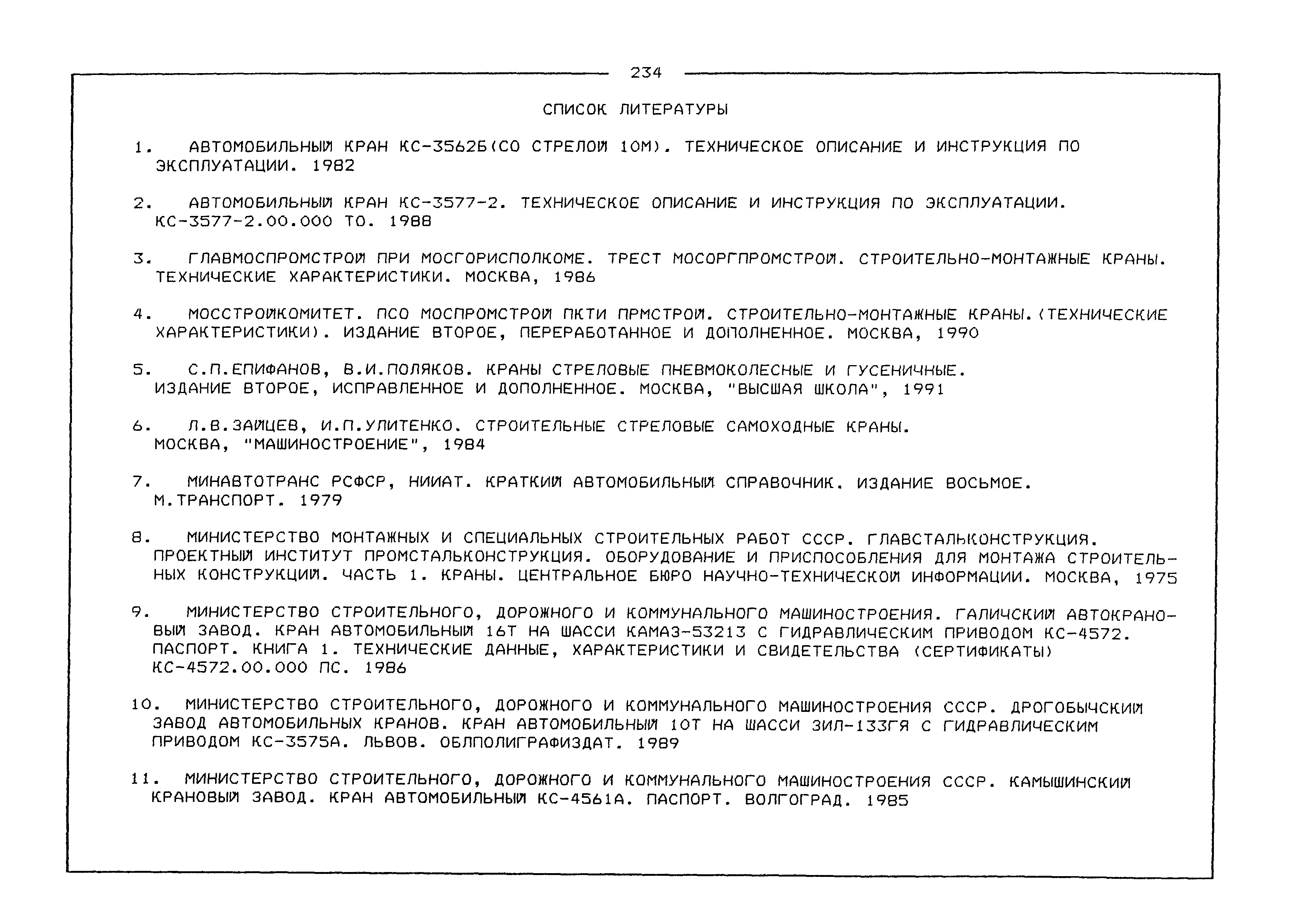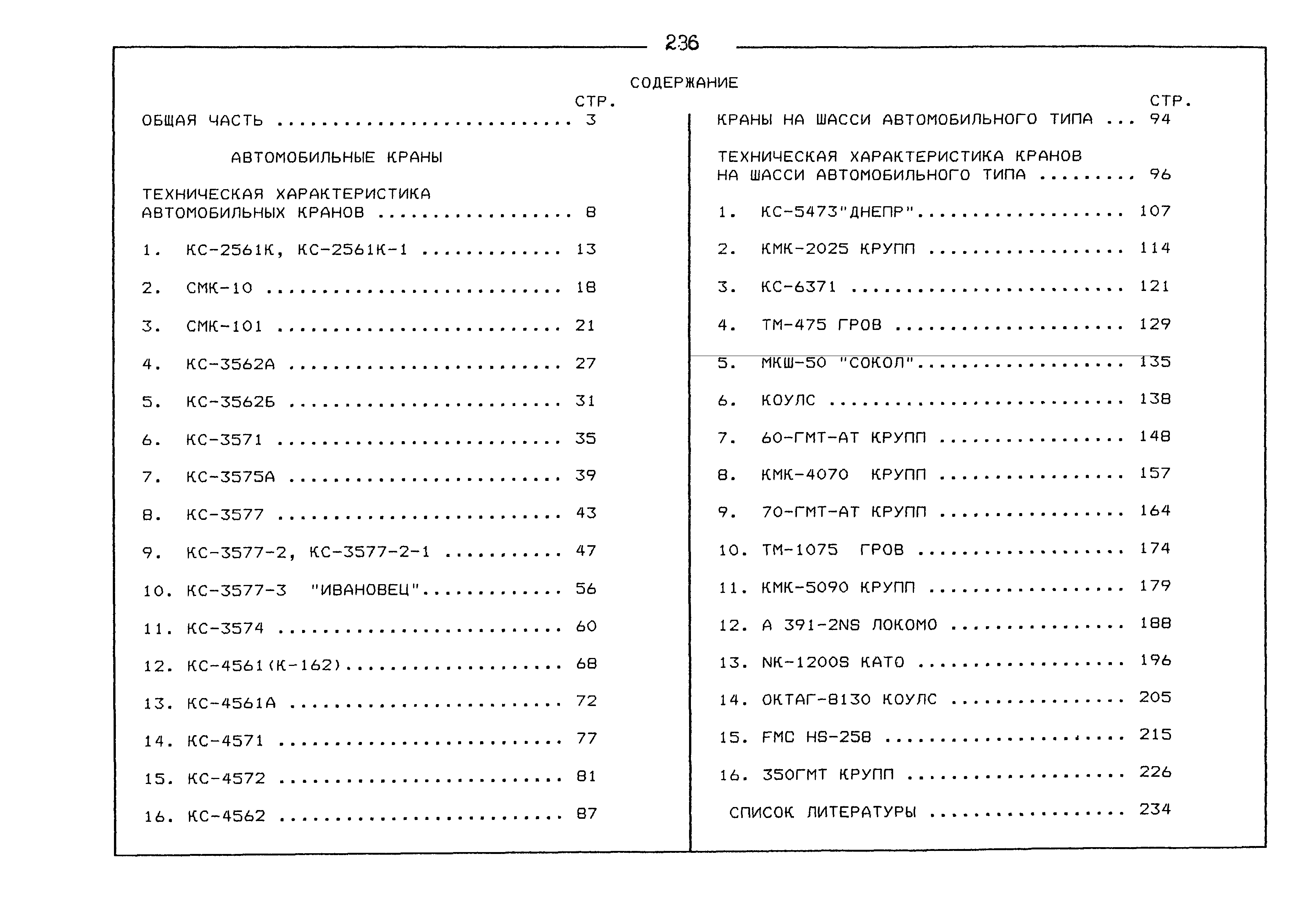 | Оглавление: | Общая часть Автомобильные краны 1. СК-2561К, КС-2561К-1 2. СМК-10 3. СМК-101 4. КС-3562А 5. КС-3562Б 6. КС-3571 7. КС-3575А 8. КС-3577 9. КС-3577-2, КС-3577-2-1 10. КС-3577-3 "ИВАНОВЕЦ" 11. КС-3574 12. КС-4561 (К-162) 13. КС-4561А 14. КС-4571 15. КС-4572 16. КС-4562 Краны на шасси автомобильного типа 1. КС-5473 "ДНЕПР" 2. КМК-2025 КРУПП 3. КС-6471 4. ТМ-475 ГРОВ 5. МКШ-50 "СОКОЛ" 6. КОУЛС 7. 60-ГМТ-АТ КРУПП 8. КМК-4070 КРУПП 9. 70-ГМТ-АТ КРУПП 10. ТМ-1075 ГРОВ 11. КМК-5090 КРУПП 12. А 391-2NS ЛОКОМО 13. NK-1200S КАТО 14. ОКТАГ-8130 КОУЛС 15. FMC HS-258 16. 350ГМТ КРУПП Список литературы |