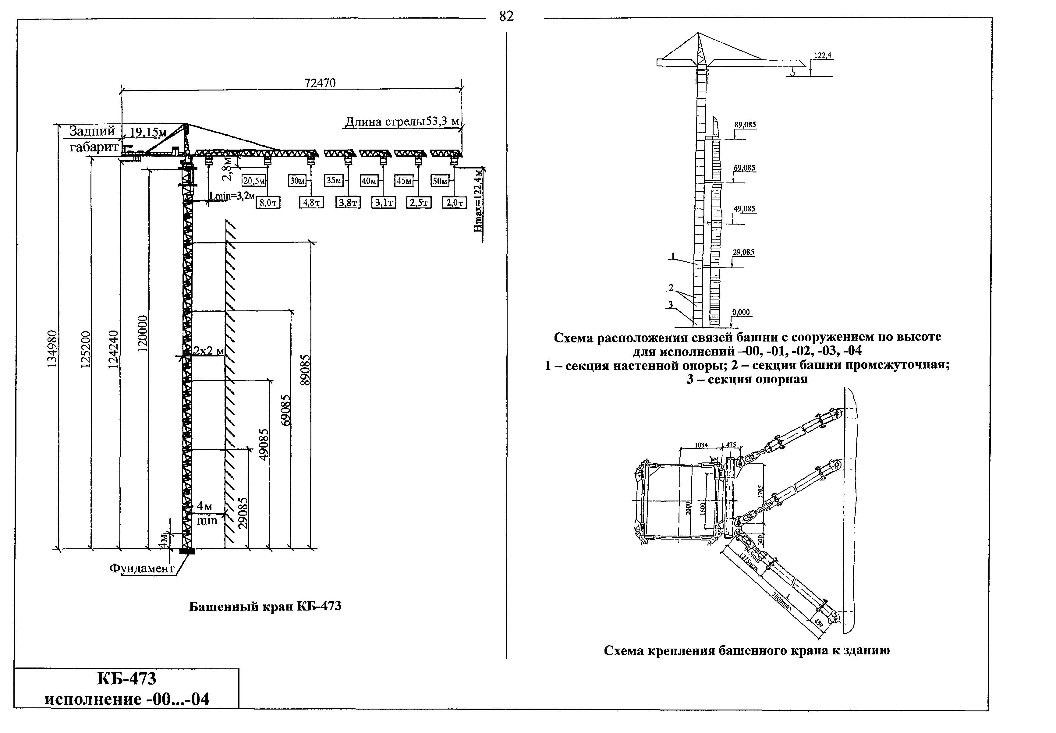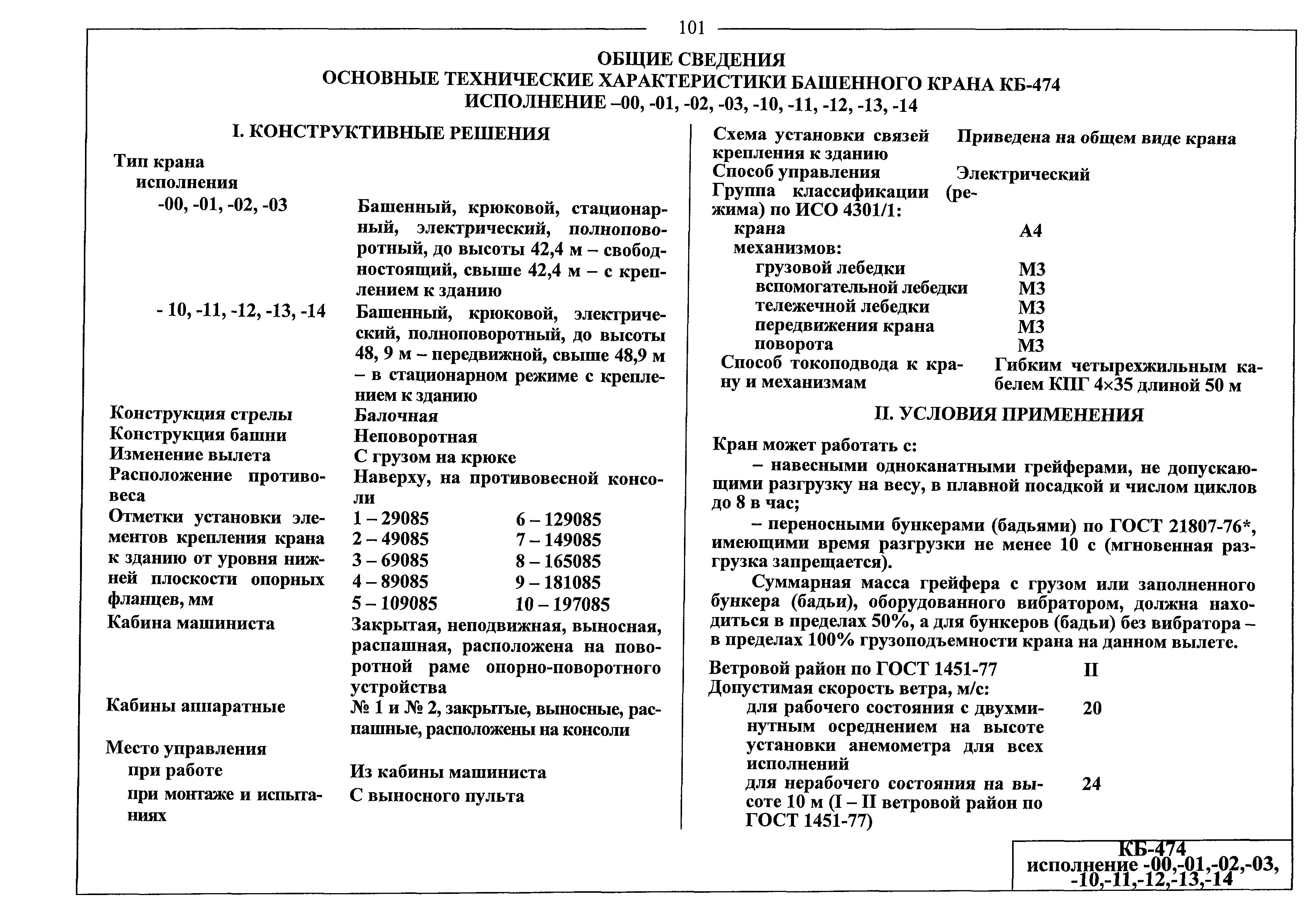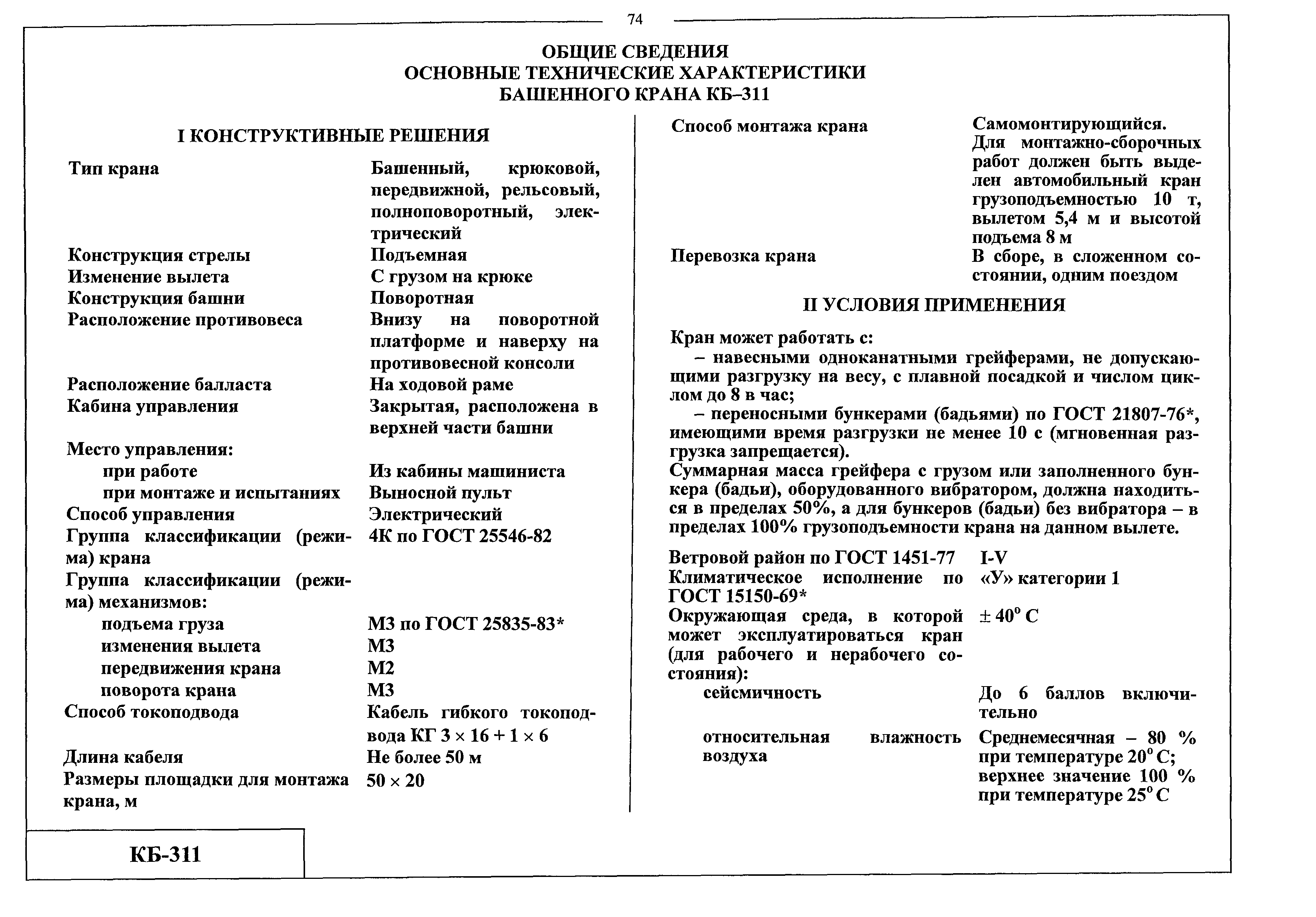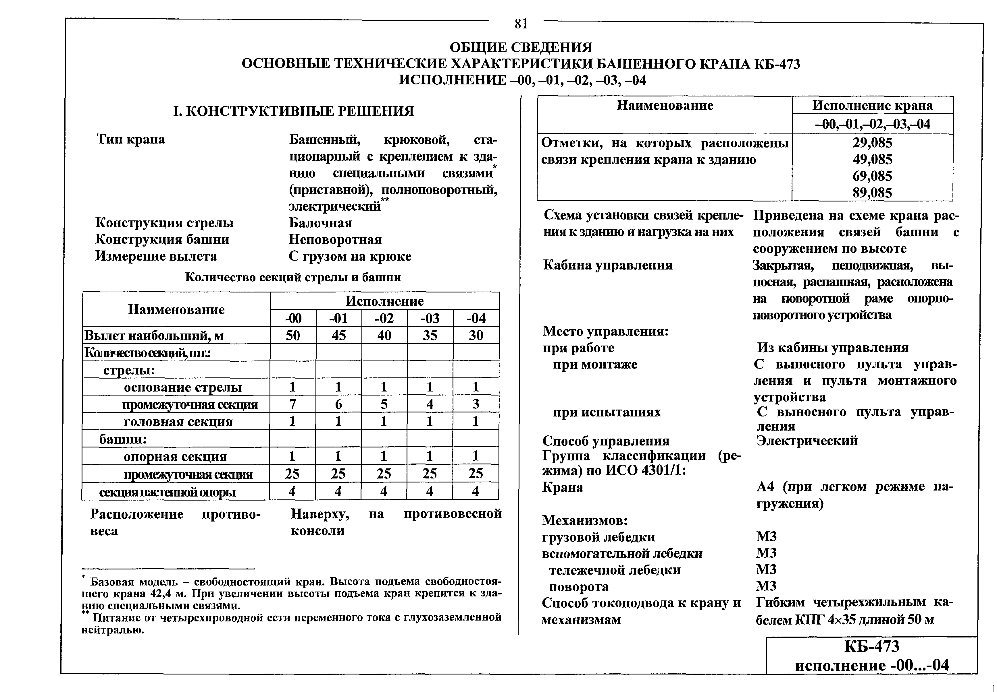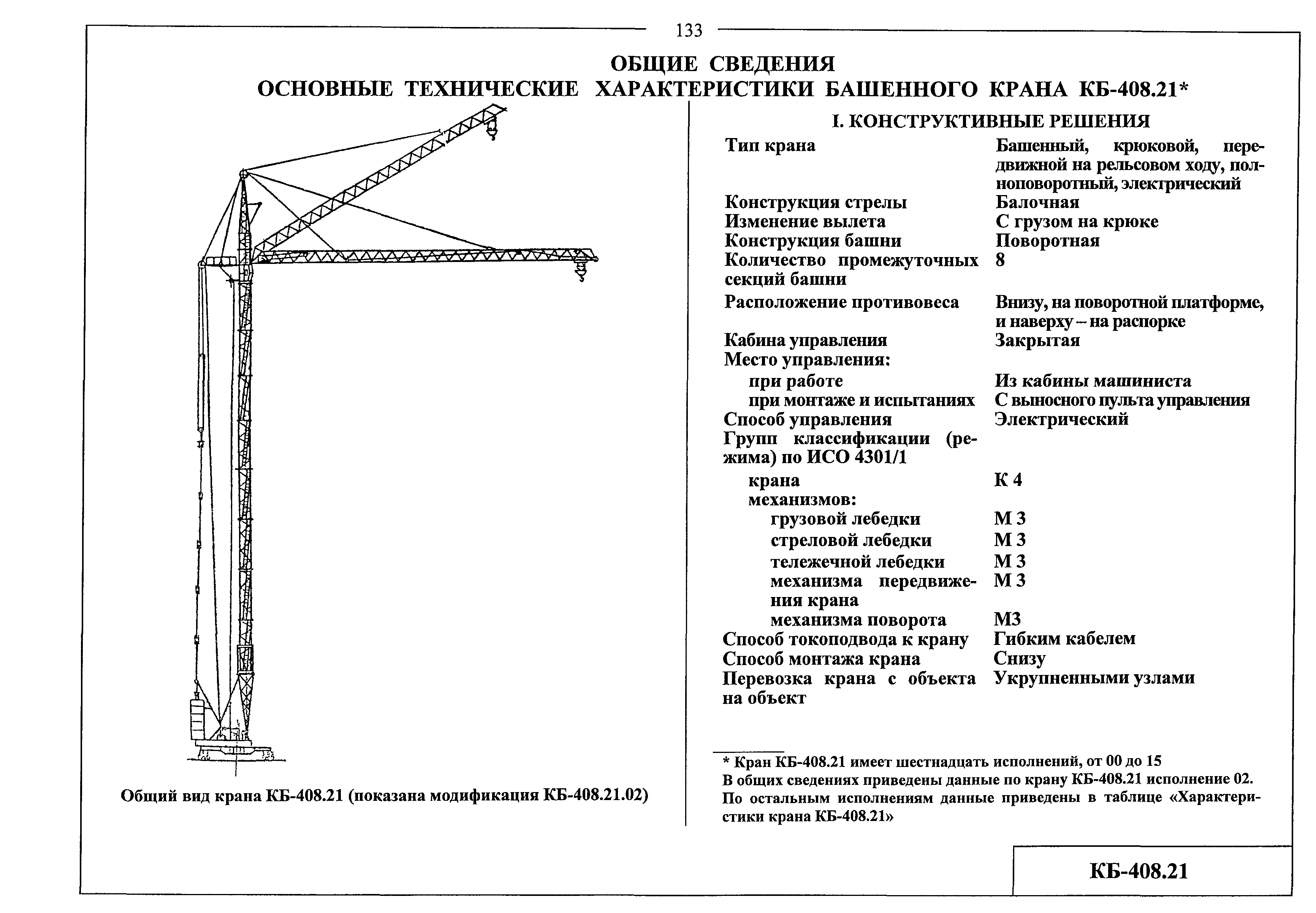 | Оглавление: | Общая часть Техническая характеристика башенных кранов Общие сведения. Основные техзнические характеристики башенных кранов 1. РБК-2.20 2. РБК-3.40 3. 34К 4. 32ТТ 5. РБК-5.60 6. 56К 7. 80LC 8. КБ-311 9. КБ-473 (исполнение -00 … -04) 10. КБ-473 (исполнение -05 … -09) 11. КБ-474 (исполнение -00; -01; -02; -03; -10; -11; -12; -13; -14) 12. КБ-405.1А; КБ-405.1А-01; КБ-405.1А-02; КБ-405.2А 13. КБ-415 УХЛ 14. КБ-408.21 15. КБ-411.06 16. КБМ-401П (исполнение -00; -08; … -33; -36 … -39) 17. 180ЕС-Н10 18. КБ-504А.08 и КБ-504А.08-02 Приложение - "О системе ограничения зоны работы башенного крана в стесненных условиях" "СОЗР" |