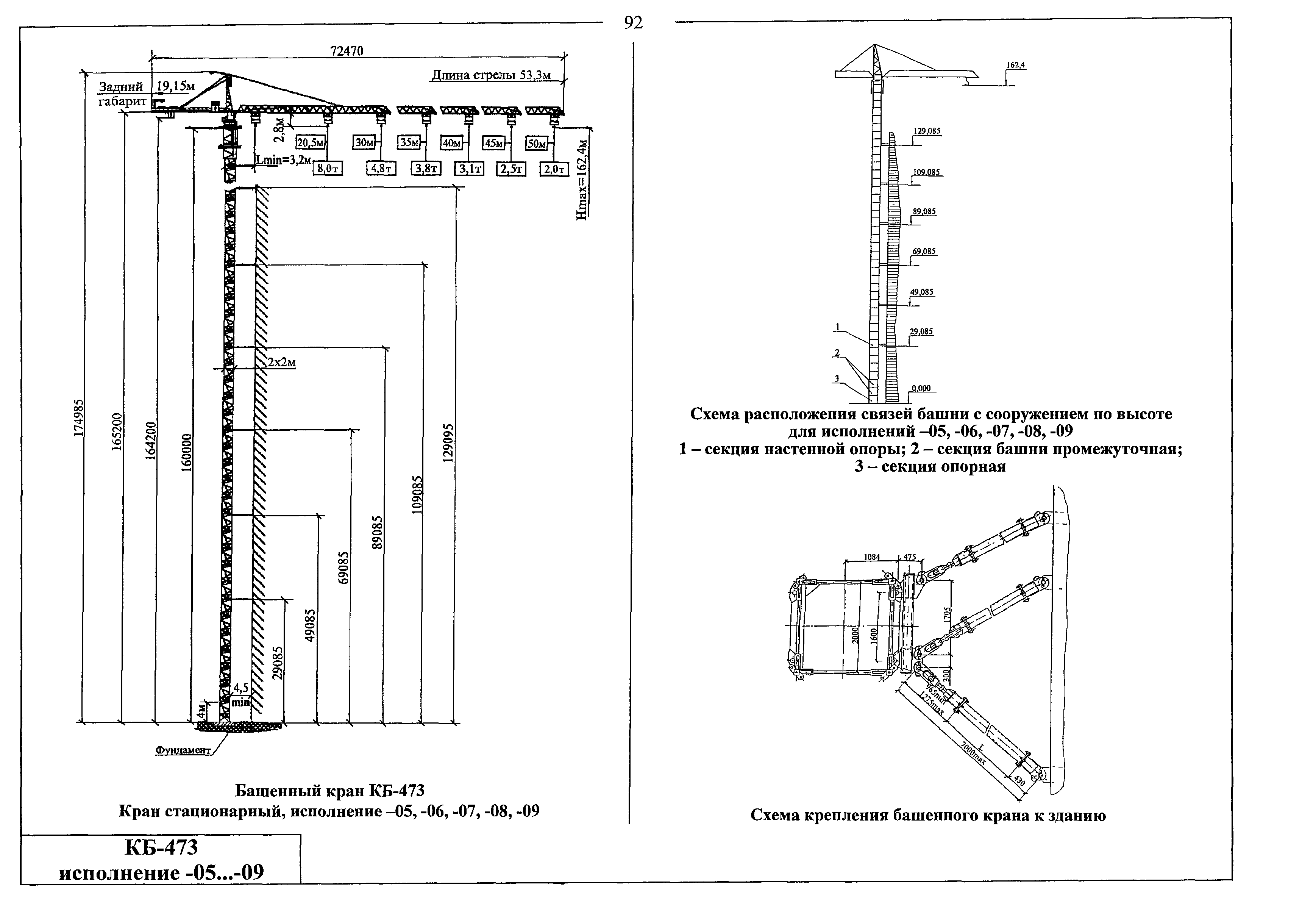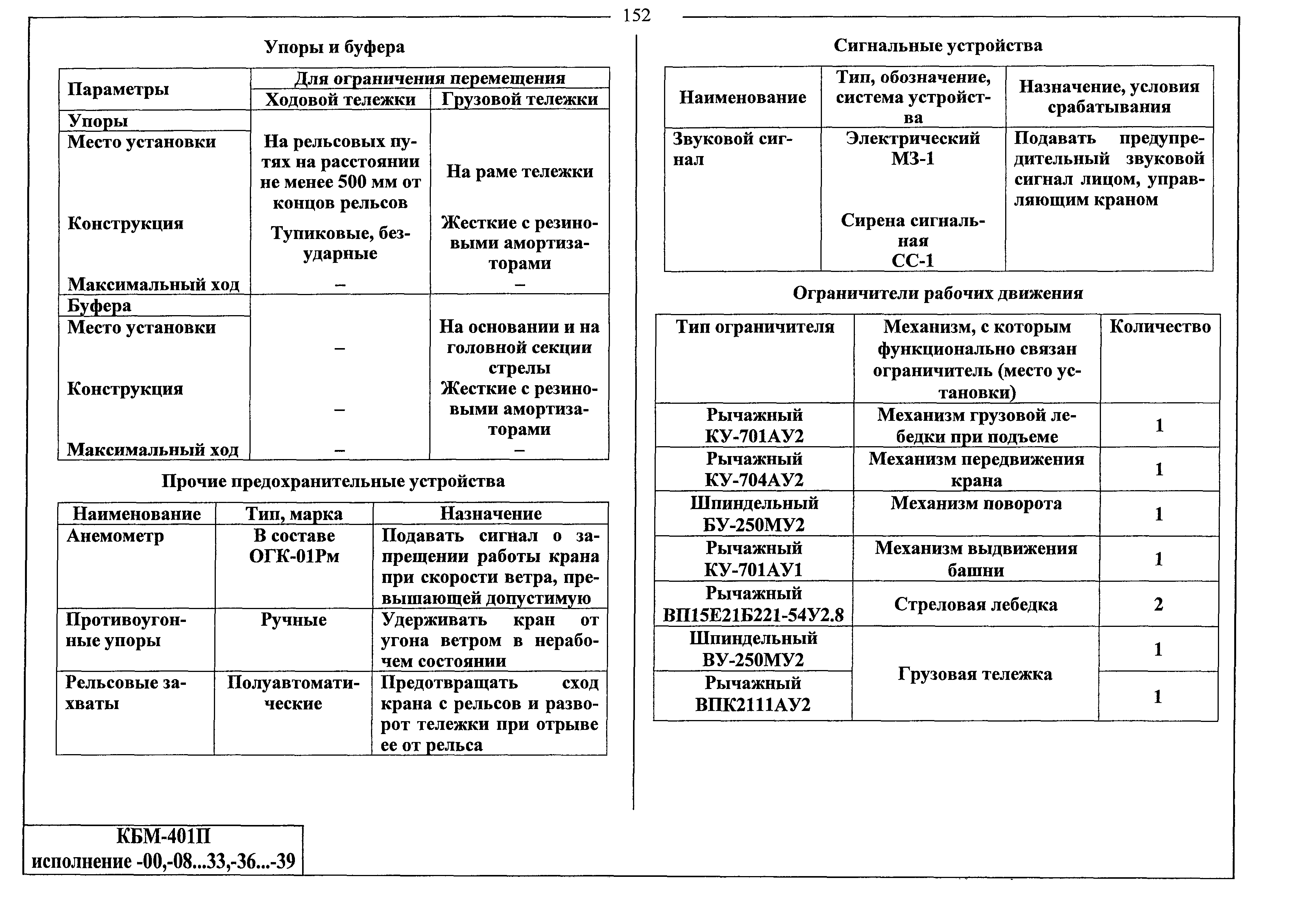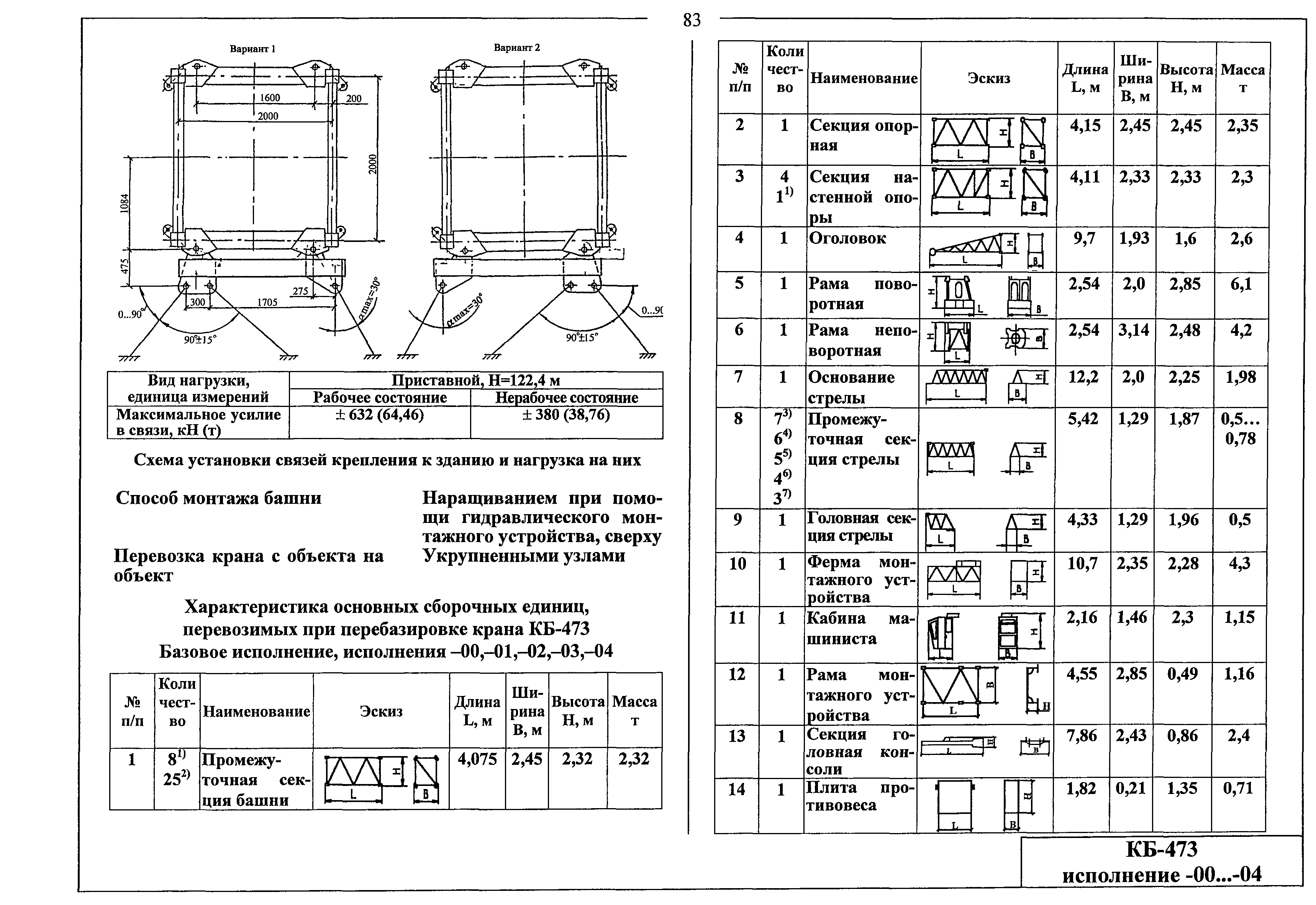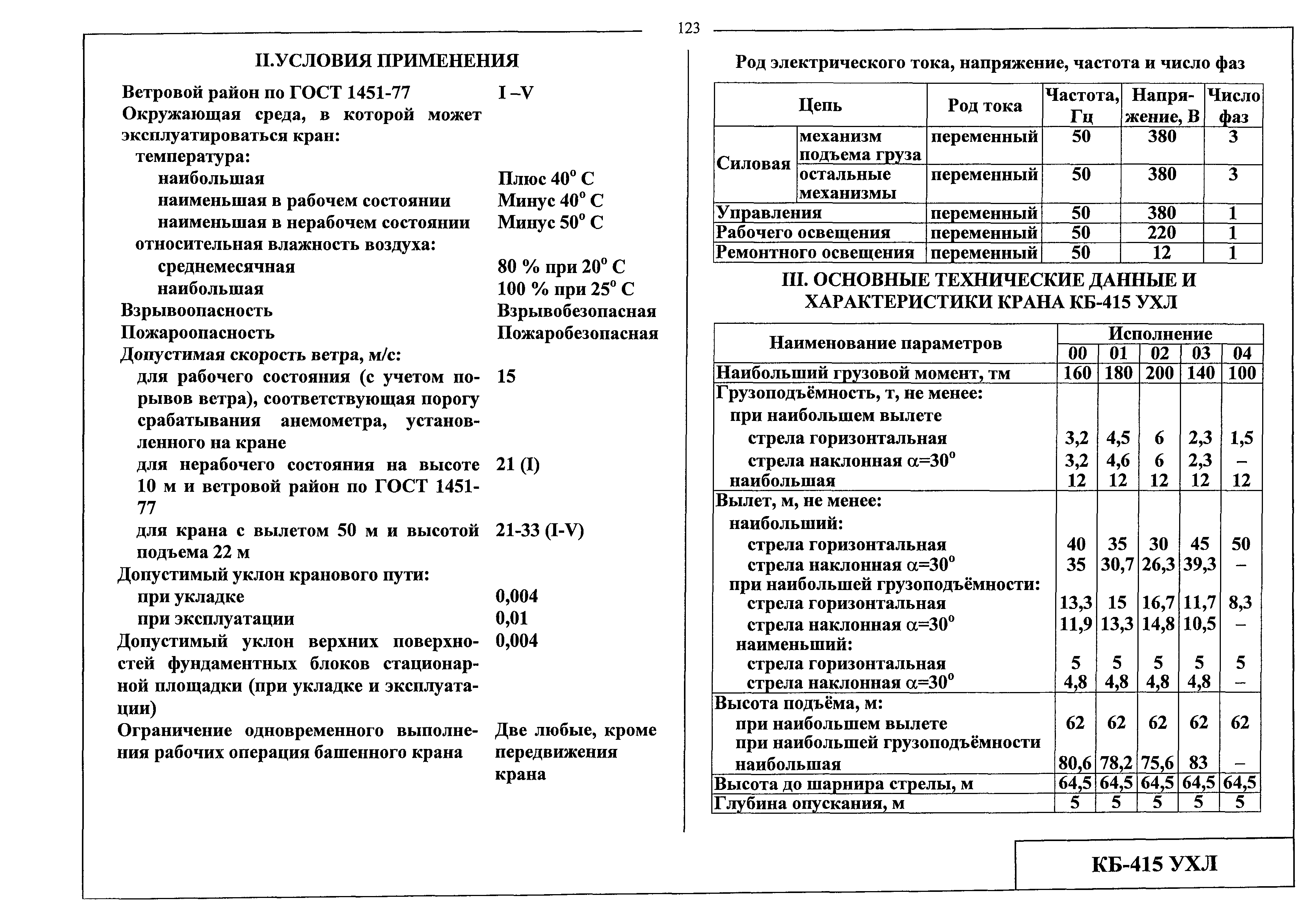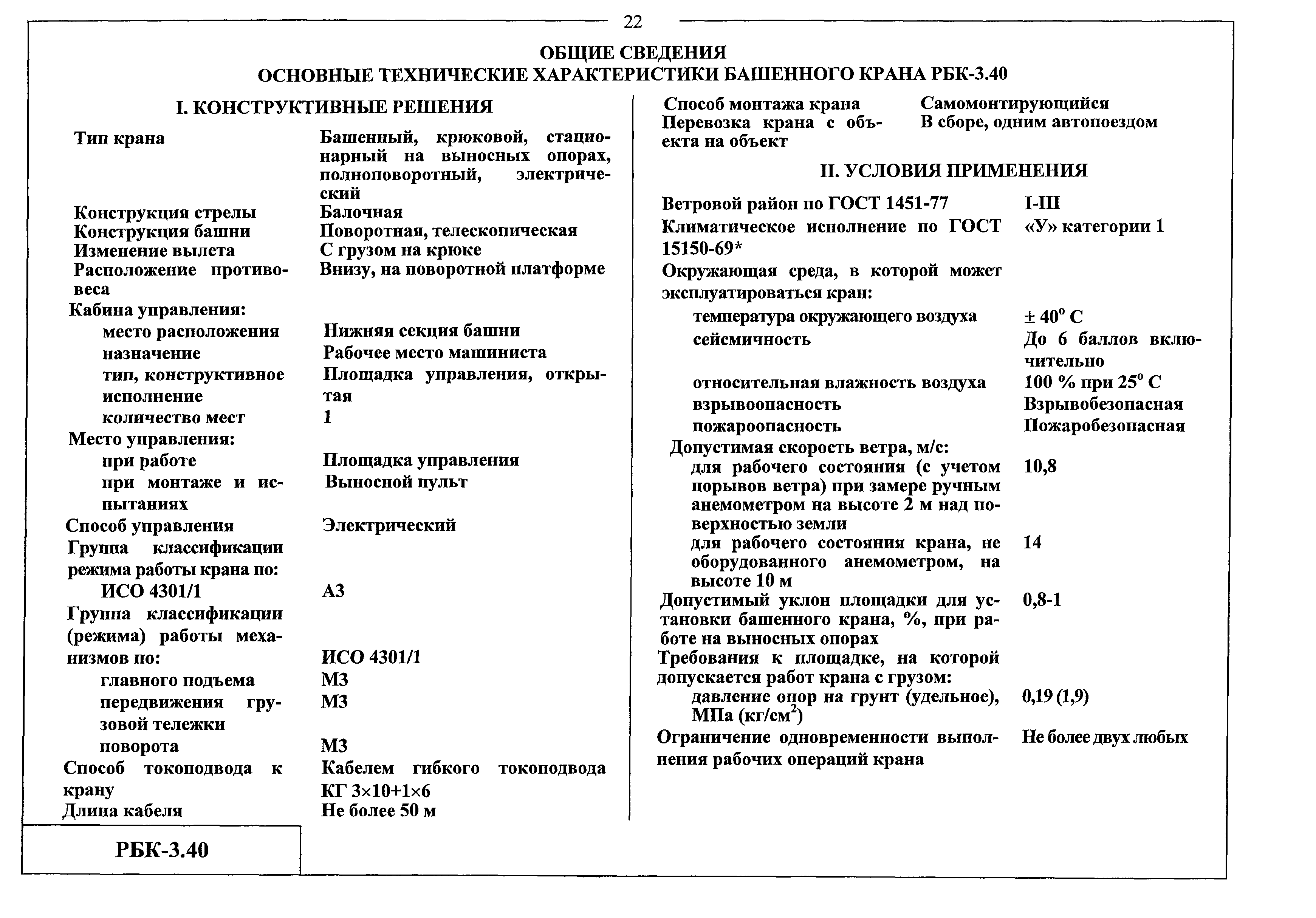 | Оглавление: | Общая часть Техническая характеристика башенных кранов Общие сведения. Основные техзнические характеристики башенных кранов 1. РБК-2.20 2. РБК-3.40 3. 34К 4. 32ТТ 5. РБК-5.60 6. 56К 7. 80LC 8. КБ-311 9. КБ-473 (исполнение -00 … -04) 10. КБ-473 (исполнение -05 … -09) 11. КБ-474 (исполнение -00; -01; -02; -03; -10; -11; -12; -13; -14) 12. КБ-405.1А; КБ-405.1А-01; КБ-405.1А-02; КБ-405.2А 13. КБ-415 УХЛ 14. КБ-408.21 15. КБ-411.06 16. КБМ-401П (исполнение -00; -08; … -33; -36 … -39) 17. 180ЕС-Н10 18. КБ-504А.08 и КБ-504А.08-02 Приложение - "О системе ограничения зоны работы башенного крана в стесненных условиях" "СОЗР" |