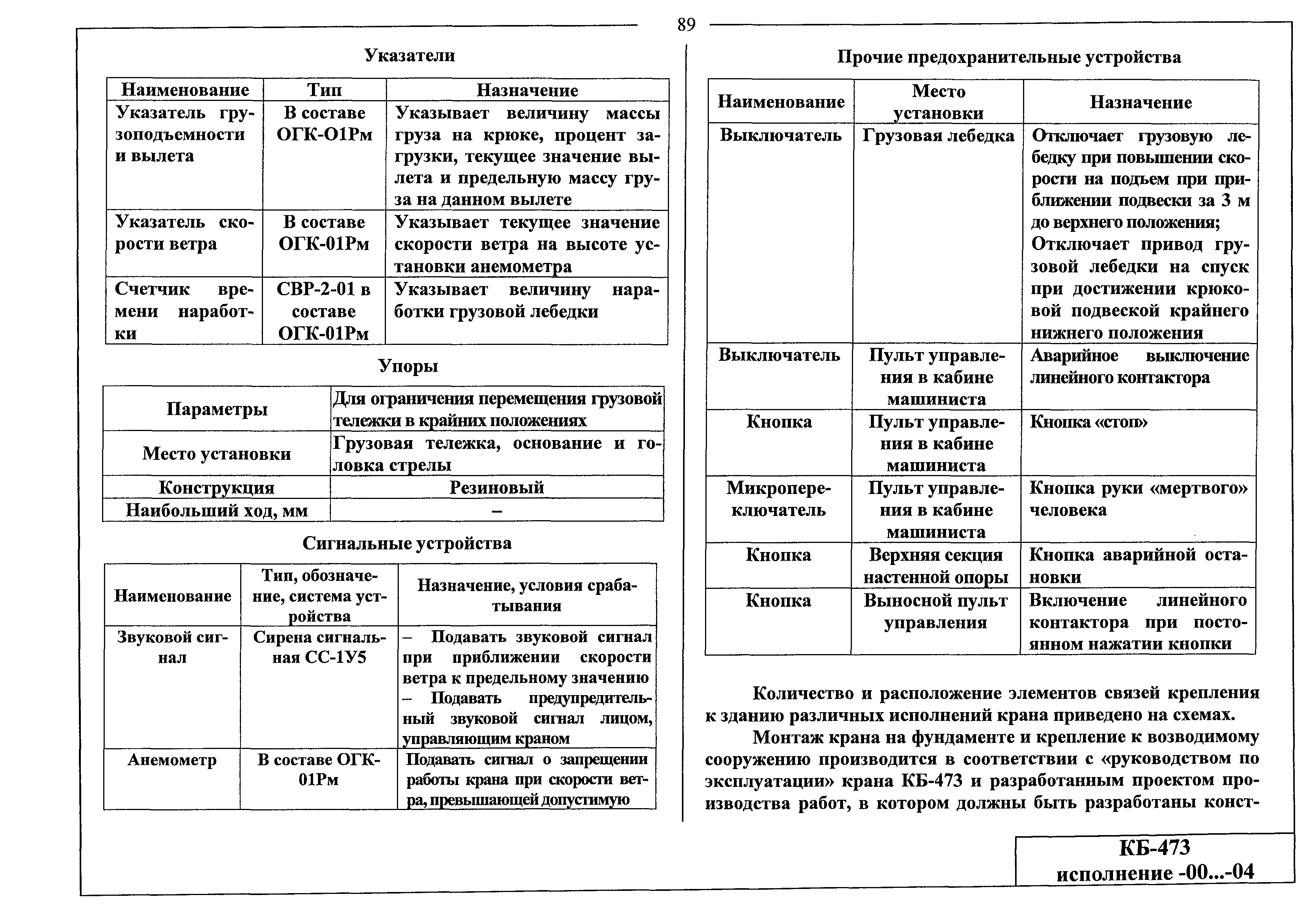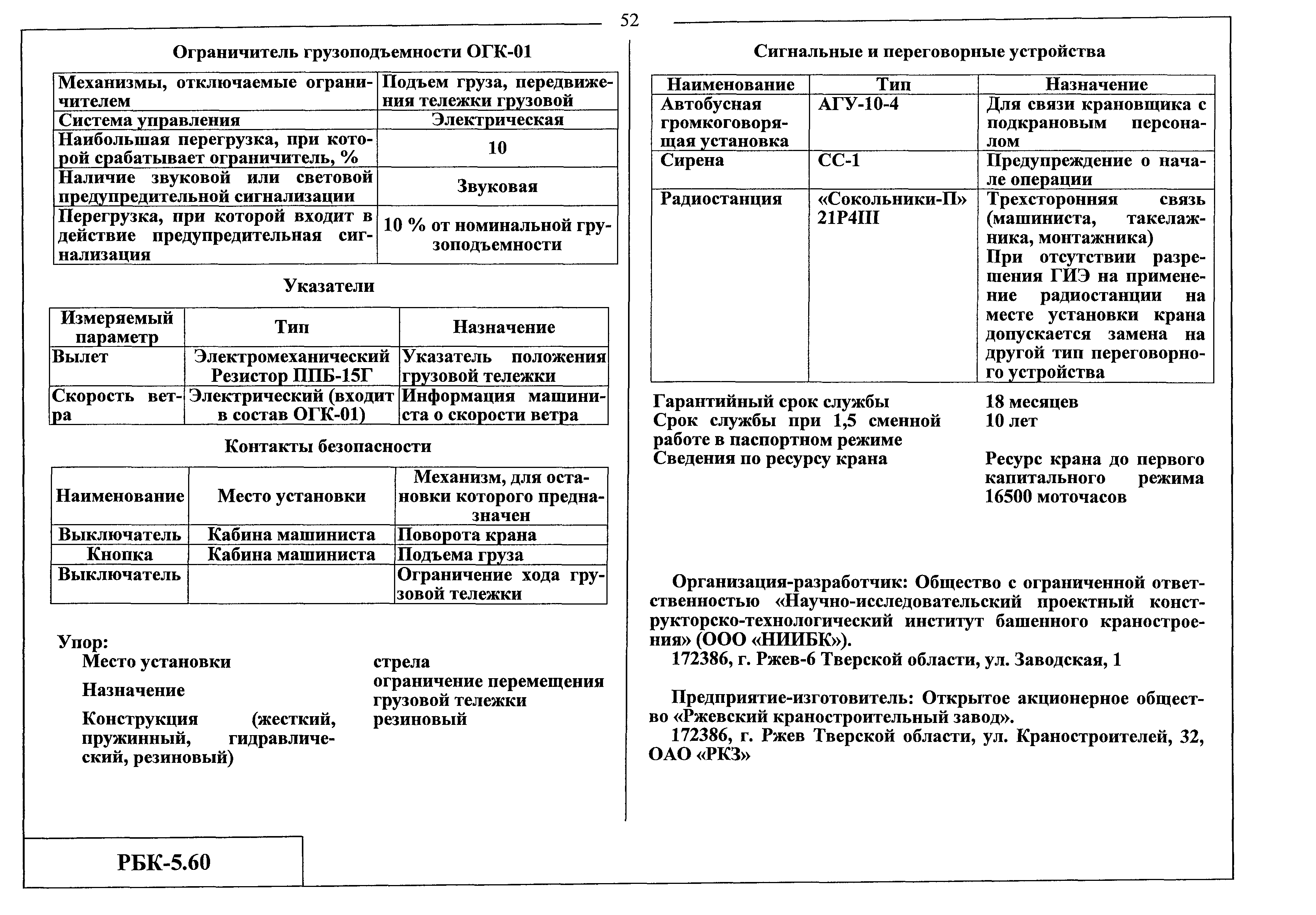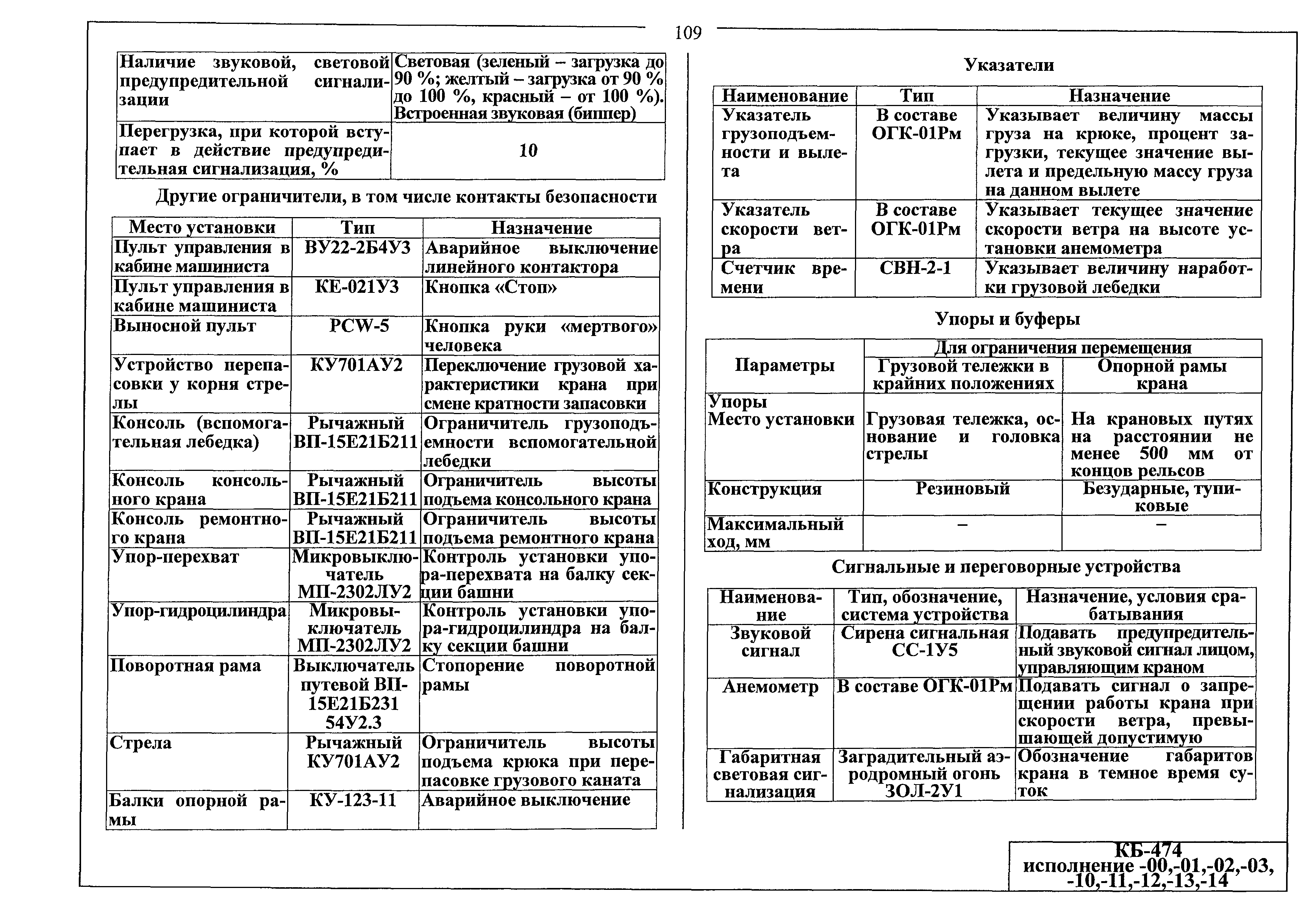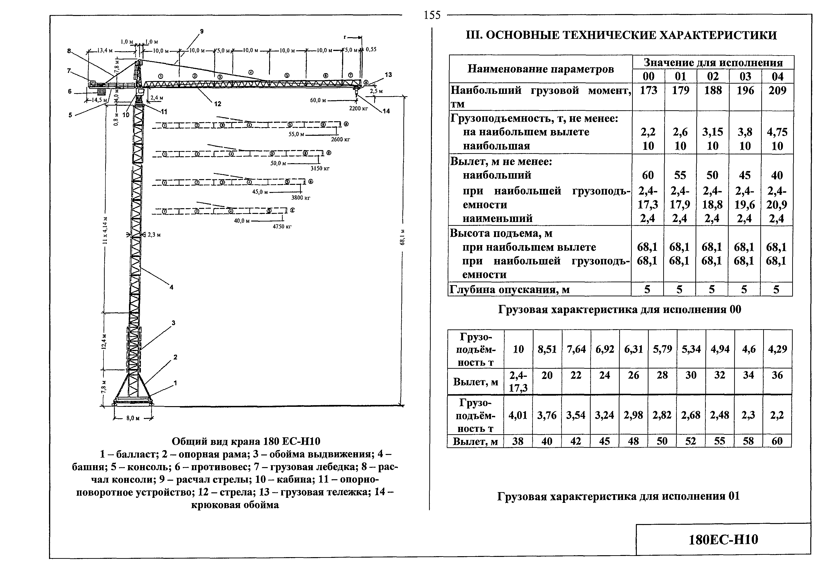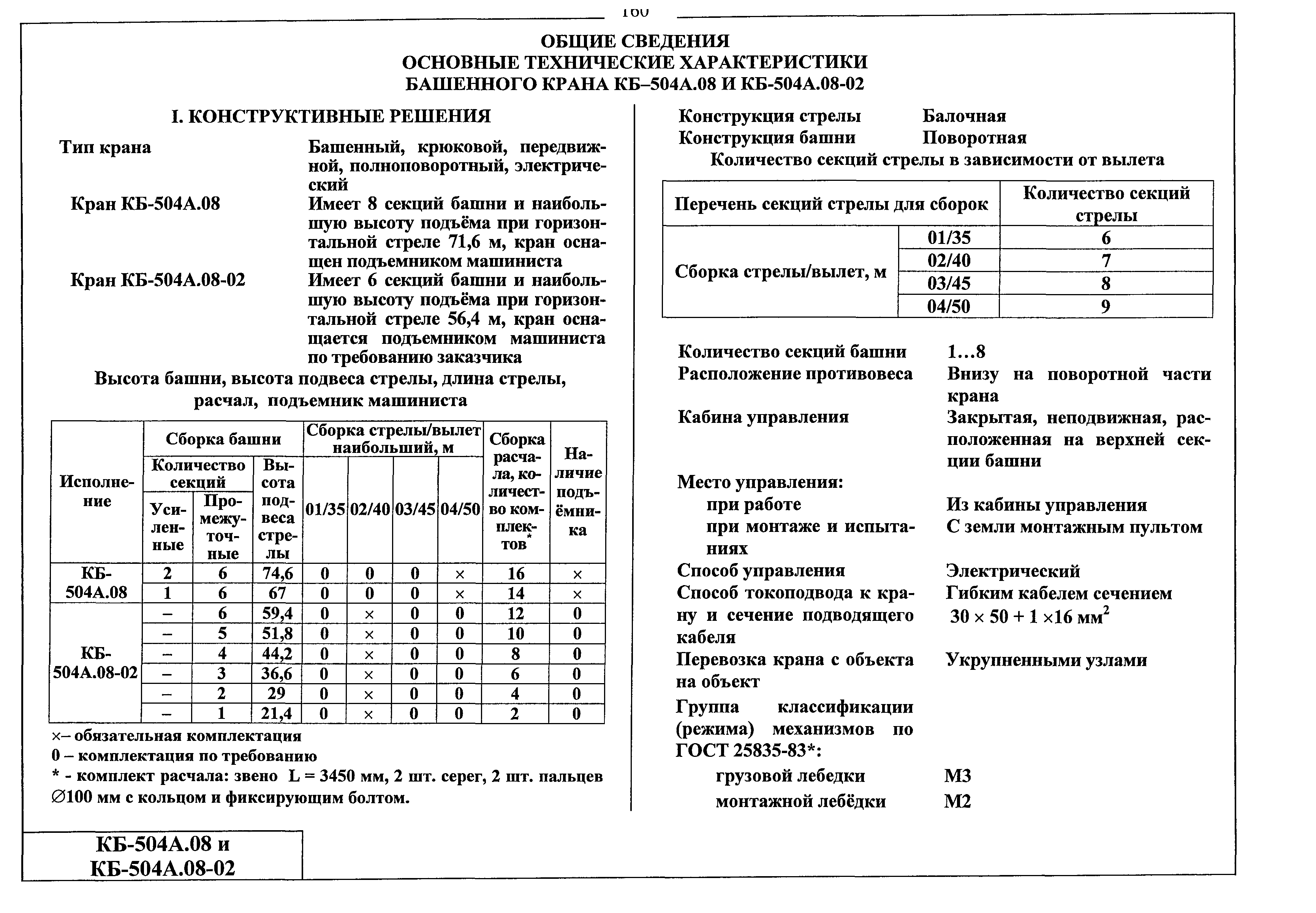 | Оглавление: | Общая часть Техническая характеристика башенных кранов Общие сведения. Основные техзнические характеристики башенных кранов 1. РБК-2.20 2. РБК-3.40 3. 34К 4. 32ТТ 5. РБК-5.60 6. 56К 7. 80LC 8. КБ-311 9. КБ-473 (исполнение -00 … -04) 10. КБ-473 (исполнение -05 … -09) 11. КБ-474 (исполнение -00; -01; -02; -03; -10; -11; -12; -13; -14) 12. КБ-405.1А; КБ-405.1А-01; КБ-405.1А-02; КБ-405.2А 13. КБ-415 УХЛ 14. КБ-408.21 15. КБ-411.06 16. КБМ-401П (исполнение -00; -08; … -33; -36 … -39) 17. 180ЕС-Н10 18. КБ-504А.08 и КБ-504А.08-02 Приложение - "О системе ограничения зоны работы башенного крана в стесненных условиях" "СОЗР" |