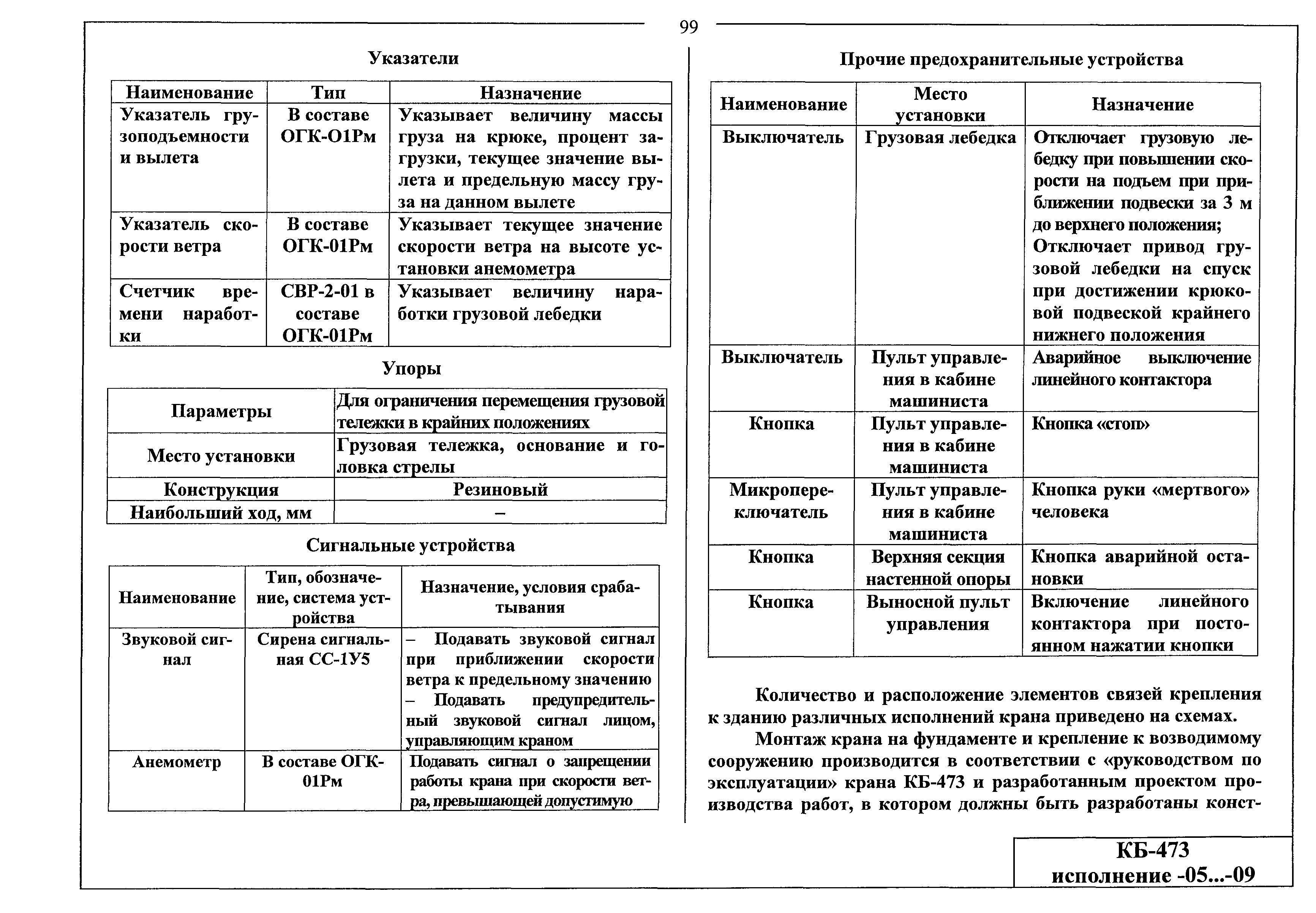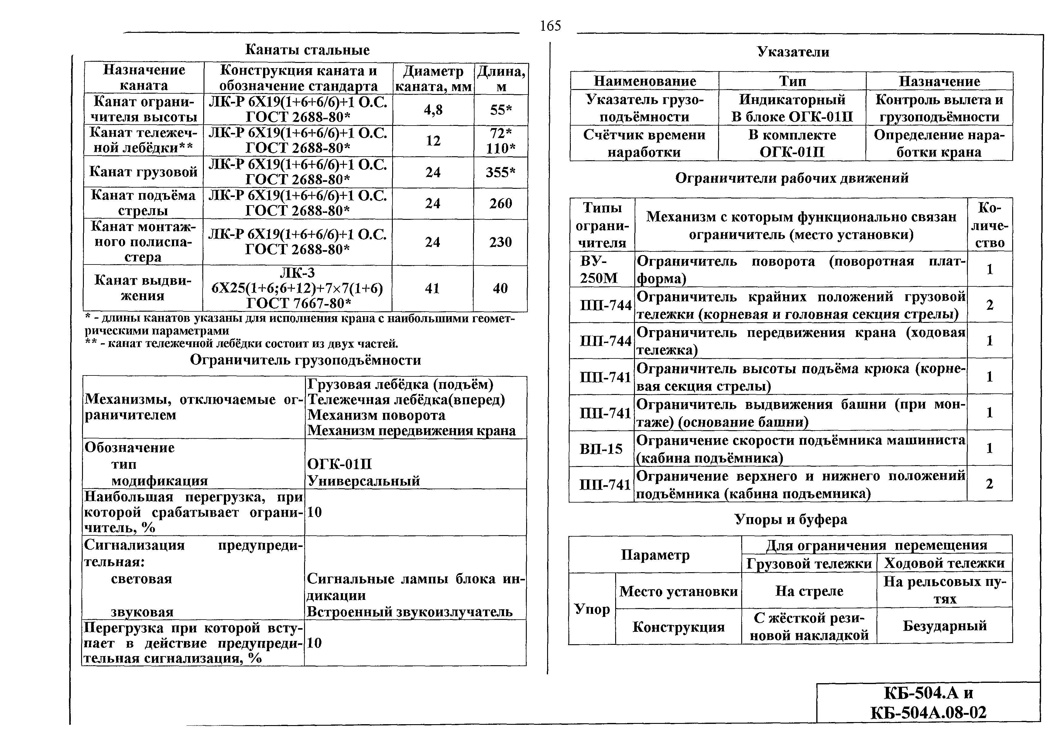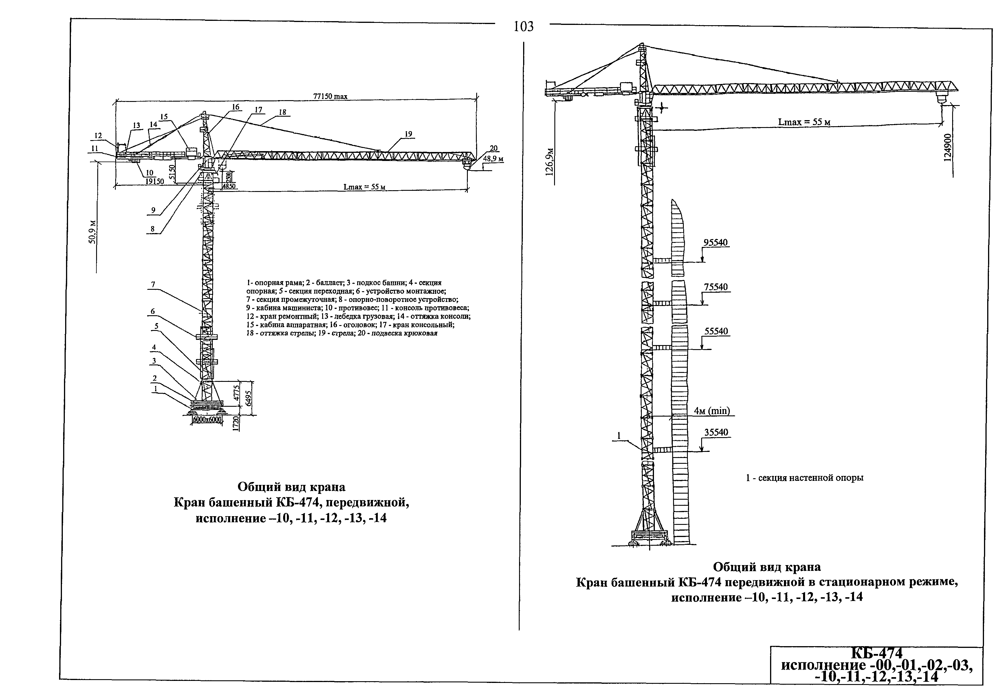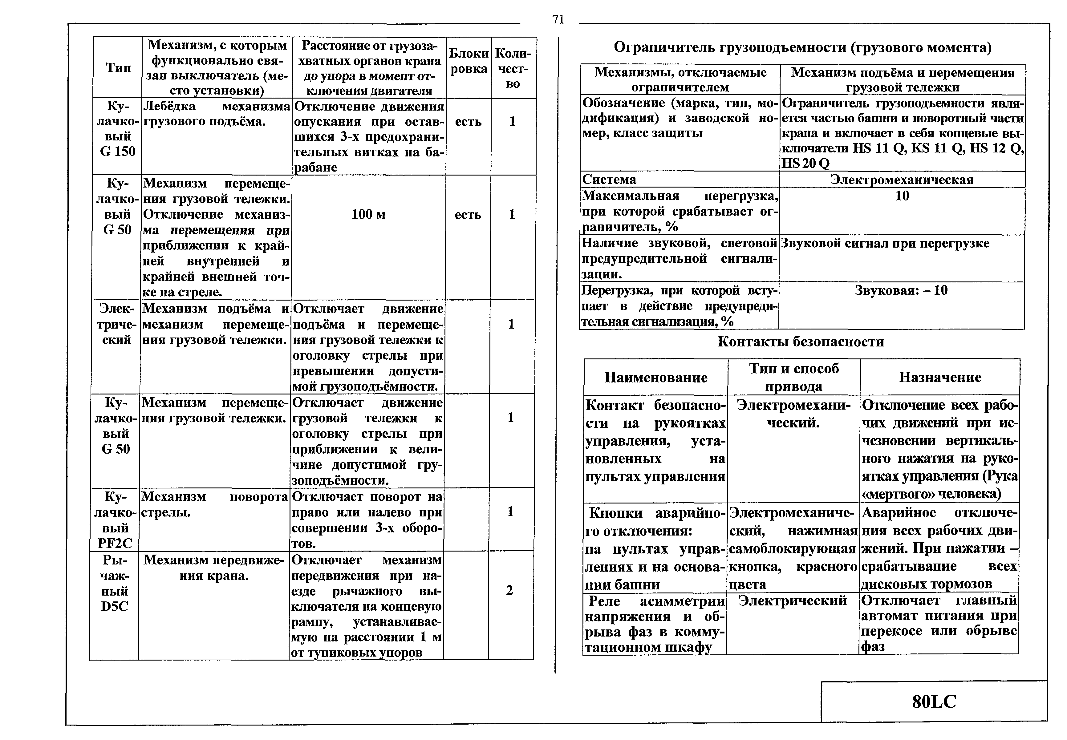 | Оглавление: | Общая часть Техническая характеристика башенных кранов Общие сведения. Основные техзнические характеристики башенных кранов 1. РБК-2.20 2. РБК-3.40 3. 34К 4. 32ТТ 5. РБК-5.60 6. 56К 7. 80LC 8. КБ-311 9. КБ-473 (исполнение -00 … -04) 10. КБ-473 (исполнение -05 … -09) 11. КБ-474 (исполнение -00; -01; -02; -03; -10; -11; -12; -13; -14) 12. КБ-405.1А; КБ-405.1А-01; КБ-405.1А-02; КБ-405.2А 13. КБ-415 УХЛ 14. КБ-408.21 15. КБ-411.06 16. КБМ-401П (исполнение -00; -08; … -33; -36 … -39) 17. 180ЕС-Н10 18. КБ-504А.08 и КБ-504А.08-02 Приложение - "О системе ограничения зоны работы башенного крана в стесненных условиях" "СОЗР" |