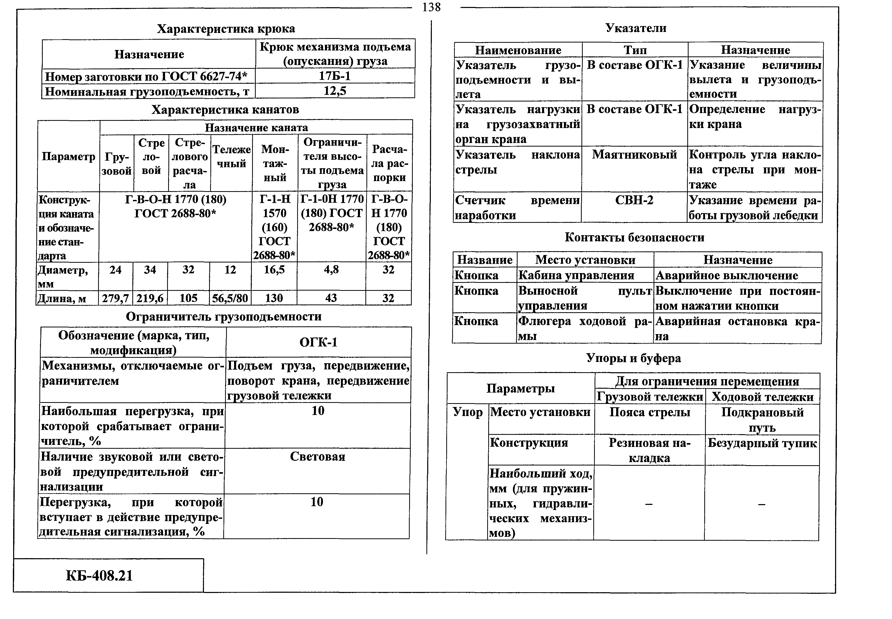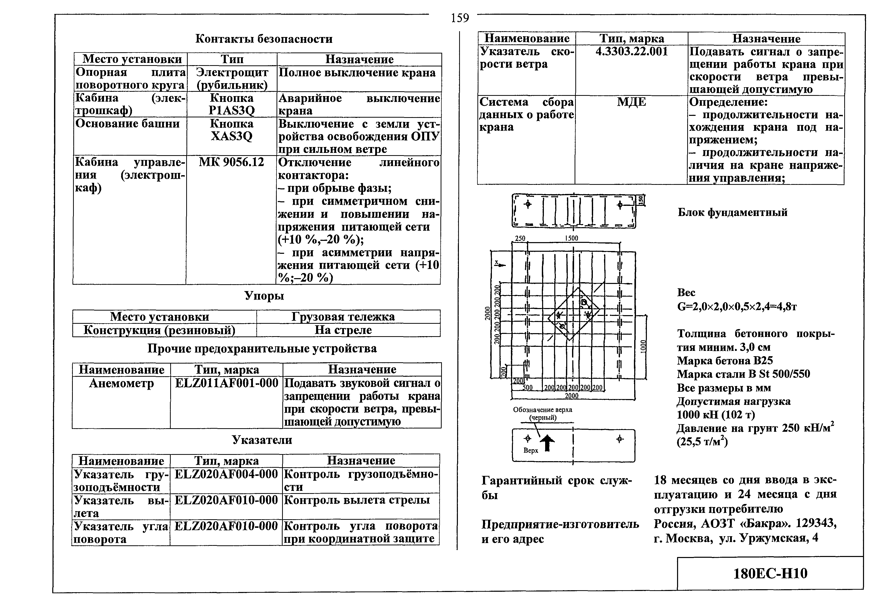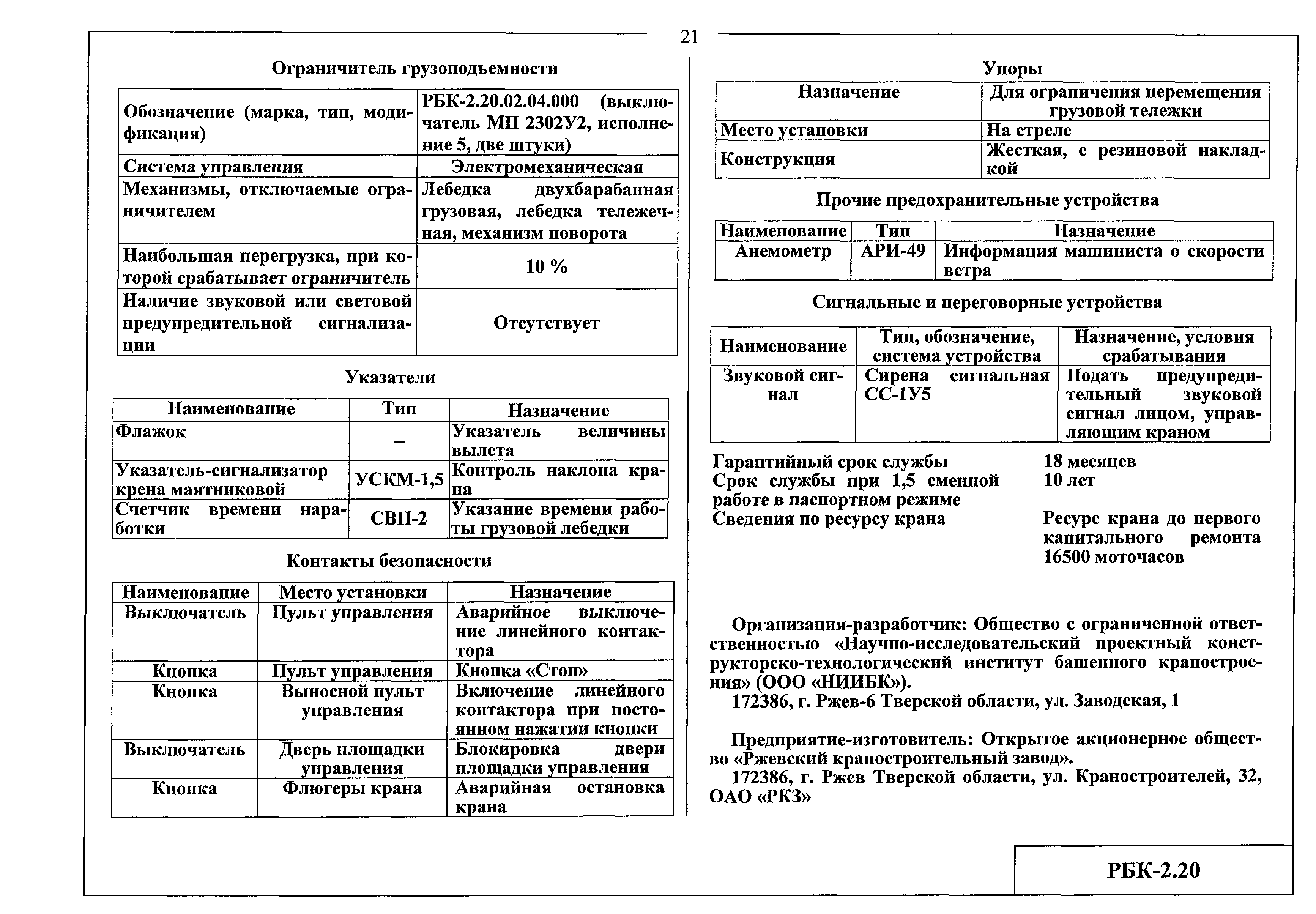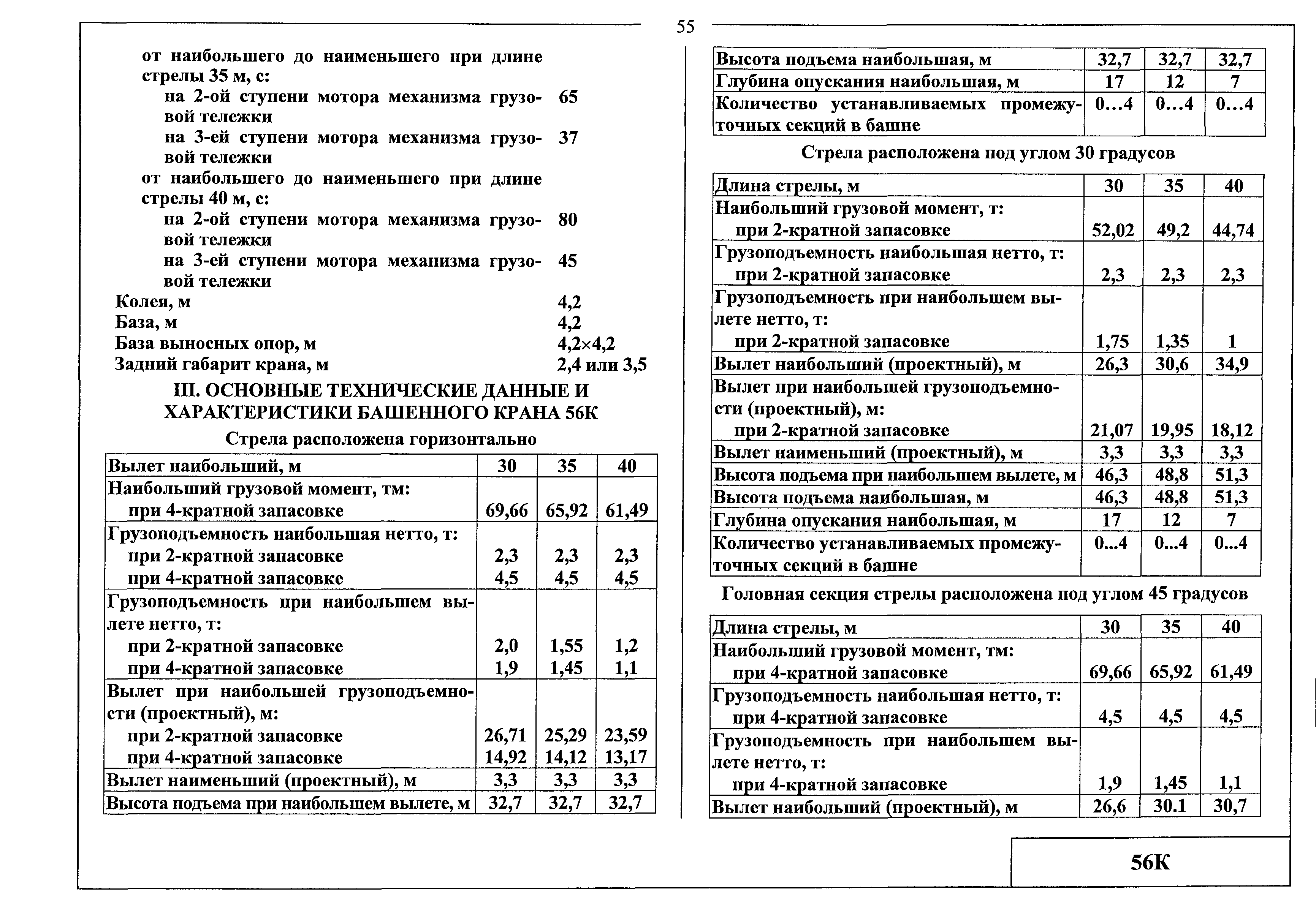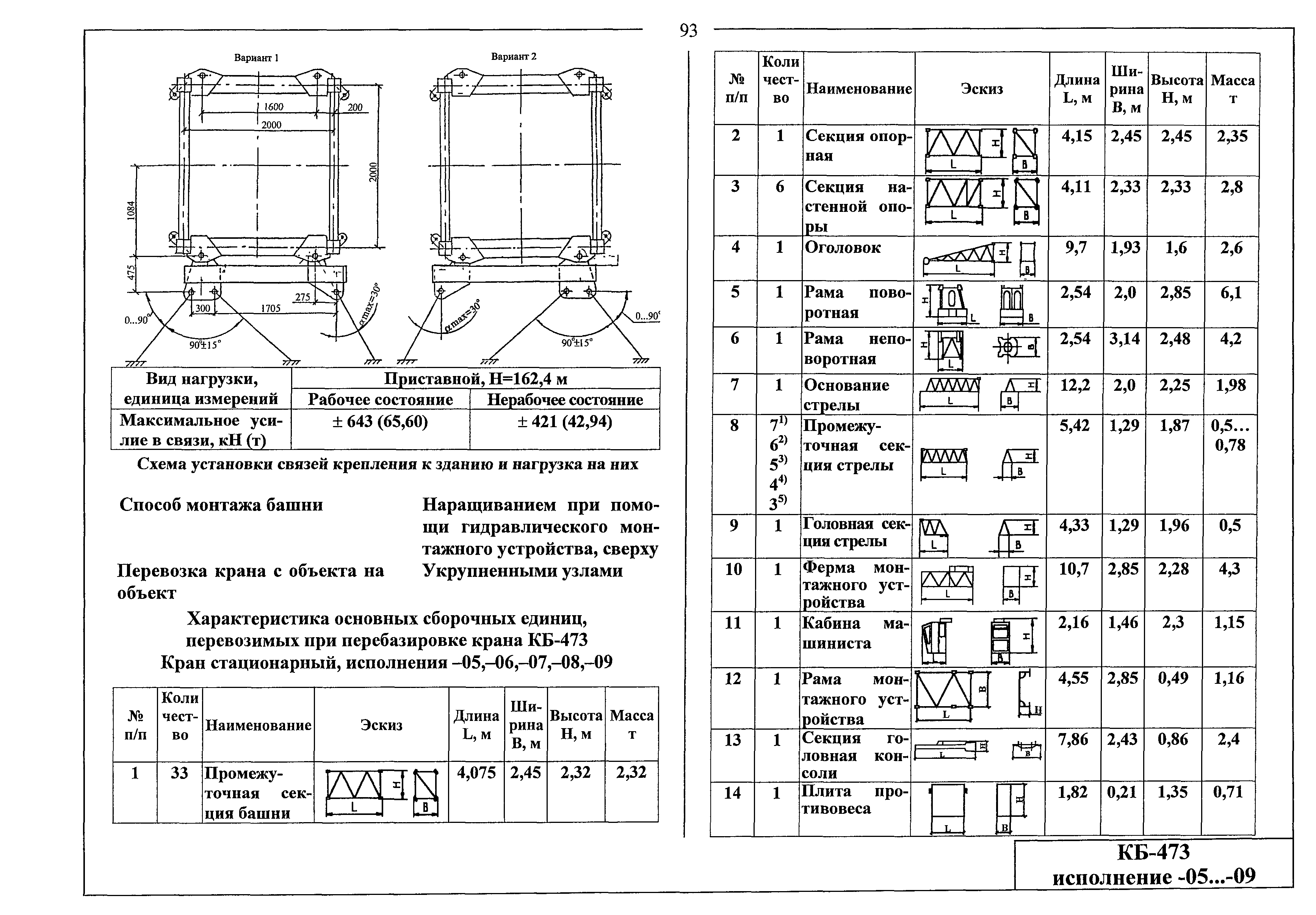 | Оглавление: | Общая часть Техническая характеристика башенных кранов Общие сведения. Основные техзнические характеристики башенных кранов 1. РБК-2.20 2. РБК-3.40 3. 34К 4. 32ТТ 5. РБК-5.60 6. 56К 7. 80LC 8. КБ-311 9. КБ-473 (исполнение -00 … -04) 10. КБ-473 (исполнение -05 … -09) 11. КБ-474 (исполнение -00; -01; -02; -03; -10; -11; -12; -13; -14) 12. КБ-405.1А; КБ-405.1А-01; КБ-405.1А-02; КБ-405.2А 13. КБ-415 УХЛ 14. КБ-408.21 15. КБ-411.06 16. КБМ-401П (исполнение -00; -08; … -33; -36 … -39) 17. 180ЕС-Н10 18. КБ-504А.08 и КБ-504А.08-02 Приложение - "О системе ограничения зоны работы башенного крана в стесненных условиях" "СОЗР" |